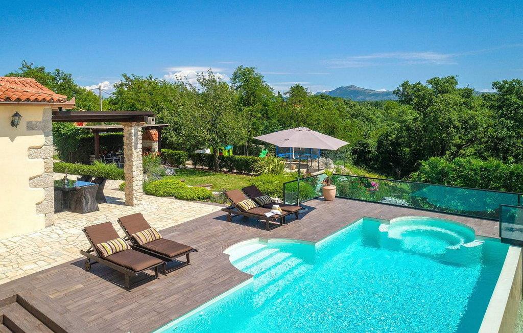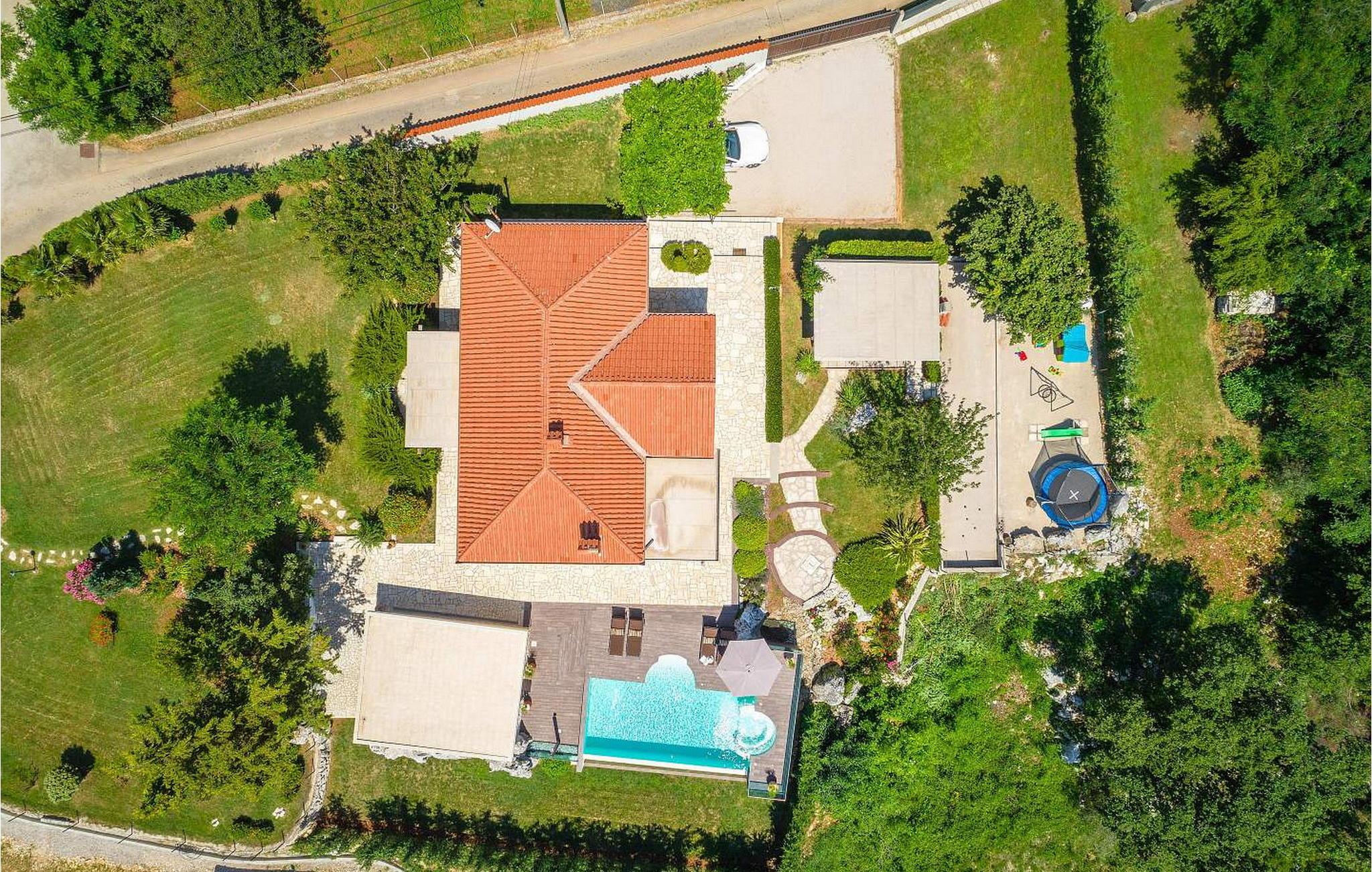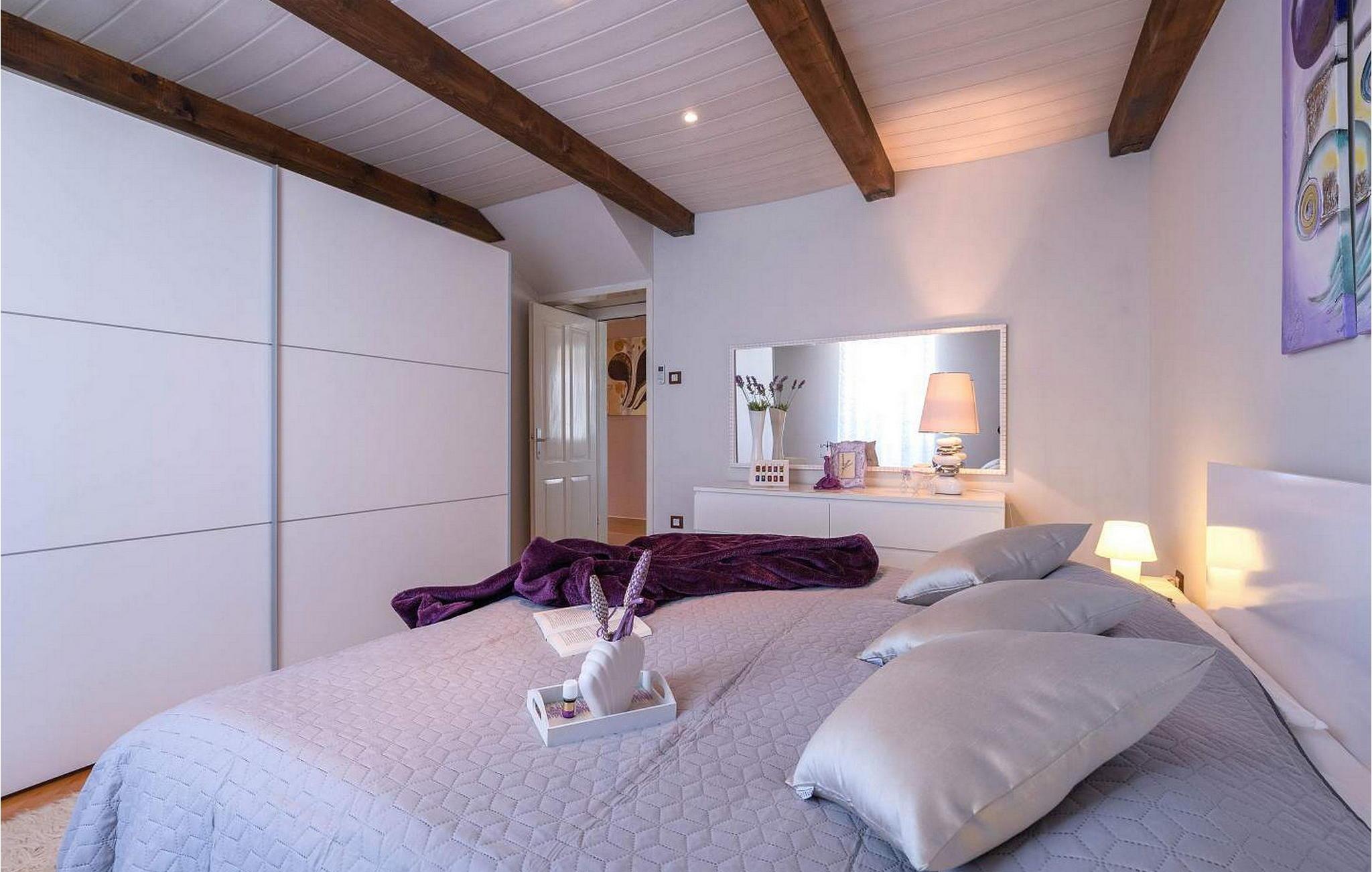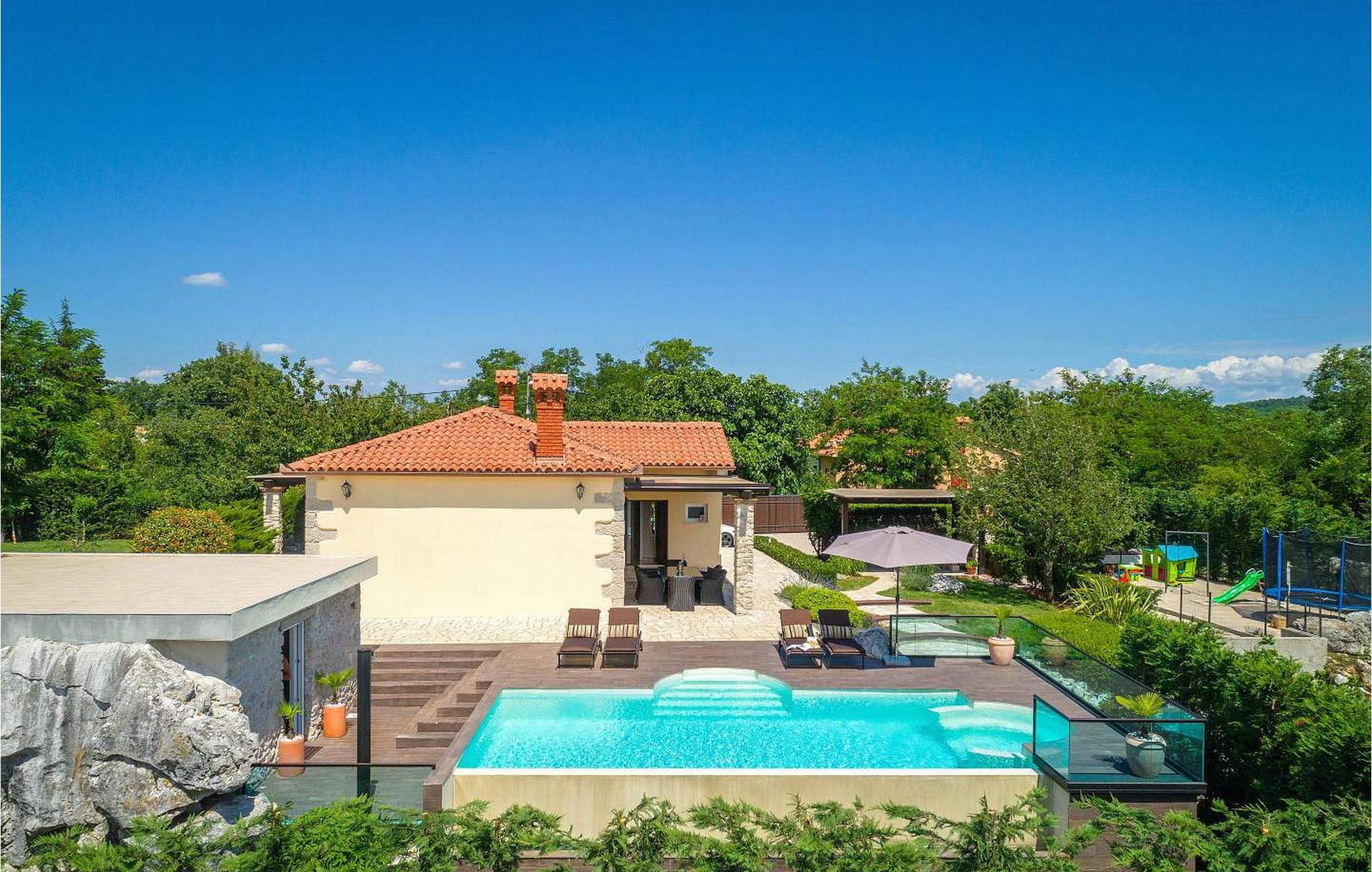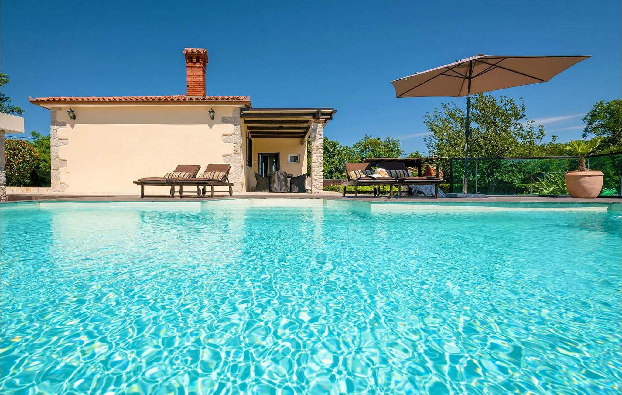 Vila Amneris er et attraktivt, fuldstændig renoveret gammelt stenhus beliggende i en høj beliggenhed i udkanten af byen Labin. På egen, delvist indhegnet grund på 4.000 kvm med en dejlig panoramaudsigt, har villaens gæster brug af en 38 kvm stor privat swimmingpool, solterrasse med liggestole, tre terrasser med spisefaciliteter og havemøbler, grill, legeplads , bocciabane og to overdækkede parkeringspladser. Denne villa med pool til 4-6 gæster har et boligareal på 115 kvm, indrettet med moderne stil møbler af høj kvalitet med typiske istriske detaljer. Villaen består af køkken, stue med spiseplads, to soveværelser til to, et med dobbeltseng og et med en dobbeltseng og en enkeltseng, bad/toilet og separat toilet. I det smagfuldt indrettede værtshusområde, som er blevet fuldstændig renoveret og er attraktivt takket være den funktion, originale stenmur, er der endnu et fuldt udstyret køkken med tallerkener, et spisebord, satellit-tv og en sovesofa (sover én). Bemærk venligst, at denne ejendom ikke accepterer ungdomsgrupper eller polterabends. En ungdomsgruppe på denne ejendom er en gruppe bestående af personer på 26 år eller derunder. Book ikke denne ejendom, hvis du er en ungdomsgruppe eller et polterabend, da din reservation vil blive afvist efter booking, hvilket kan omfatte ved ankomst til ejendommen eller under dit ophold, og du vil ikke blive refunderet.