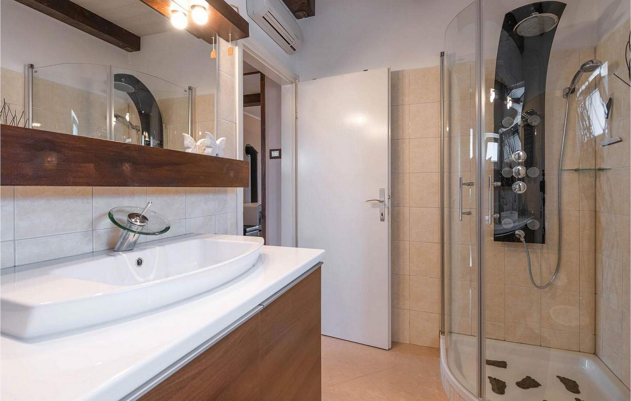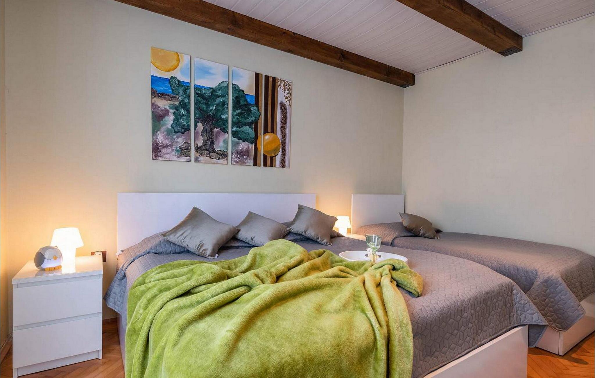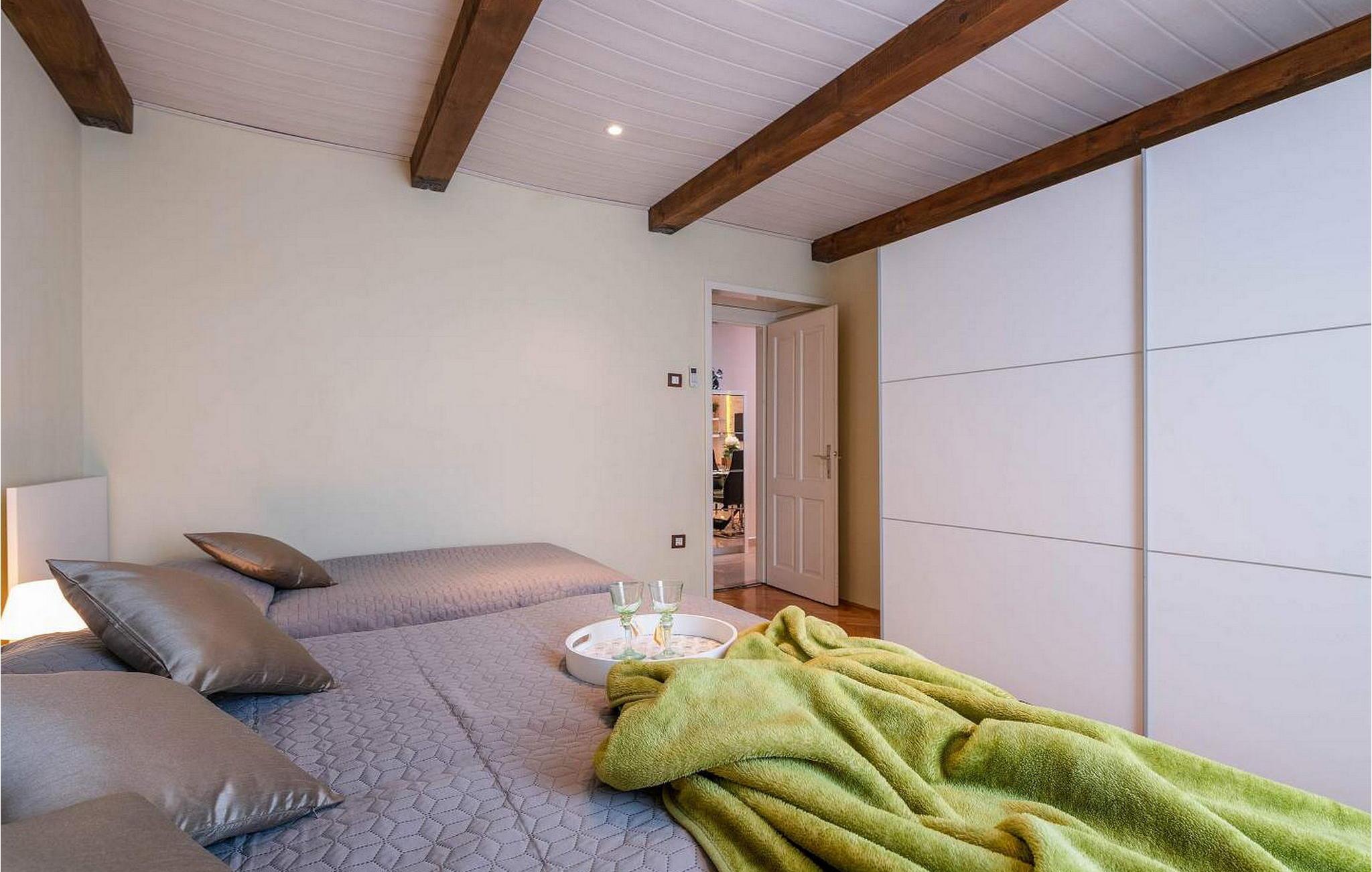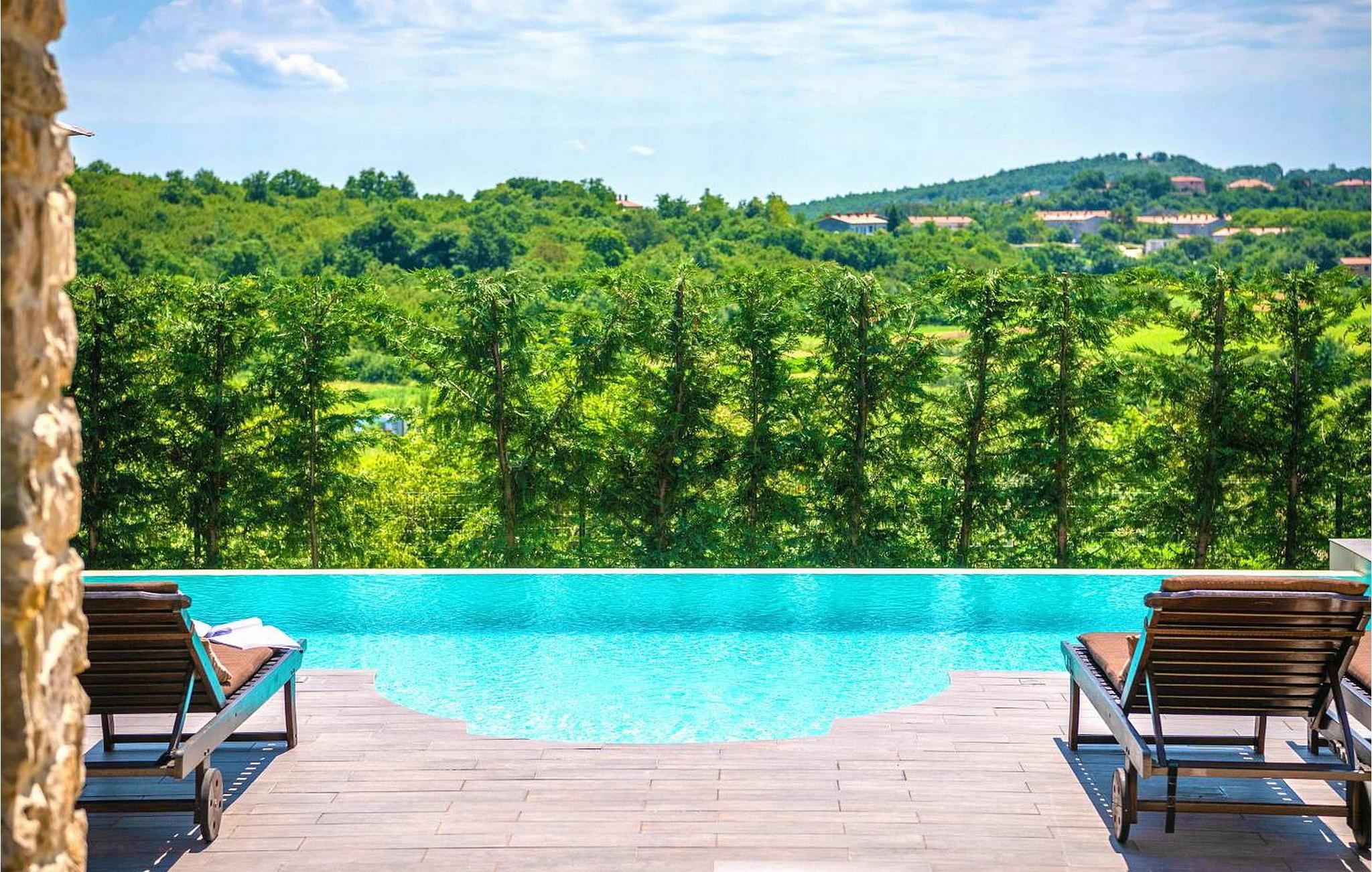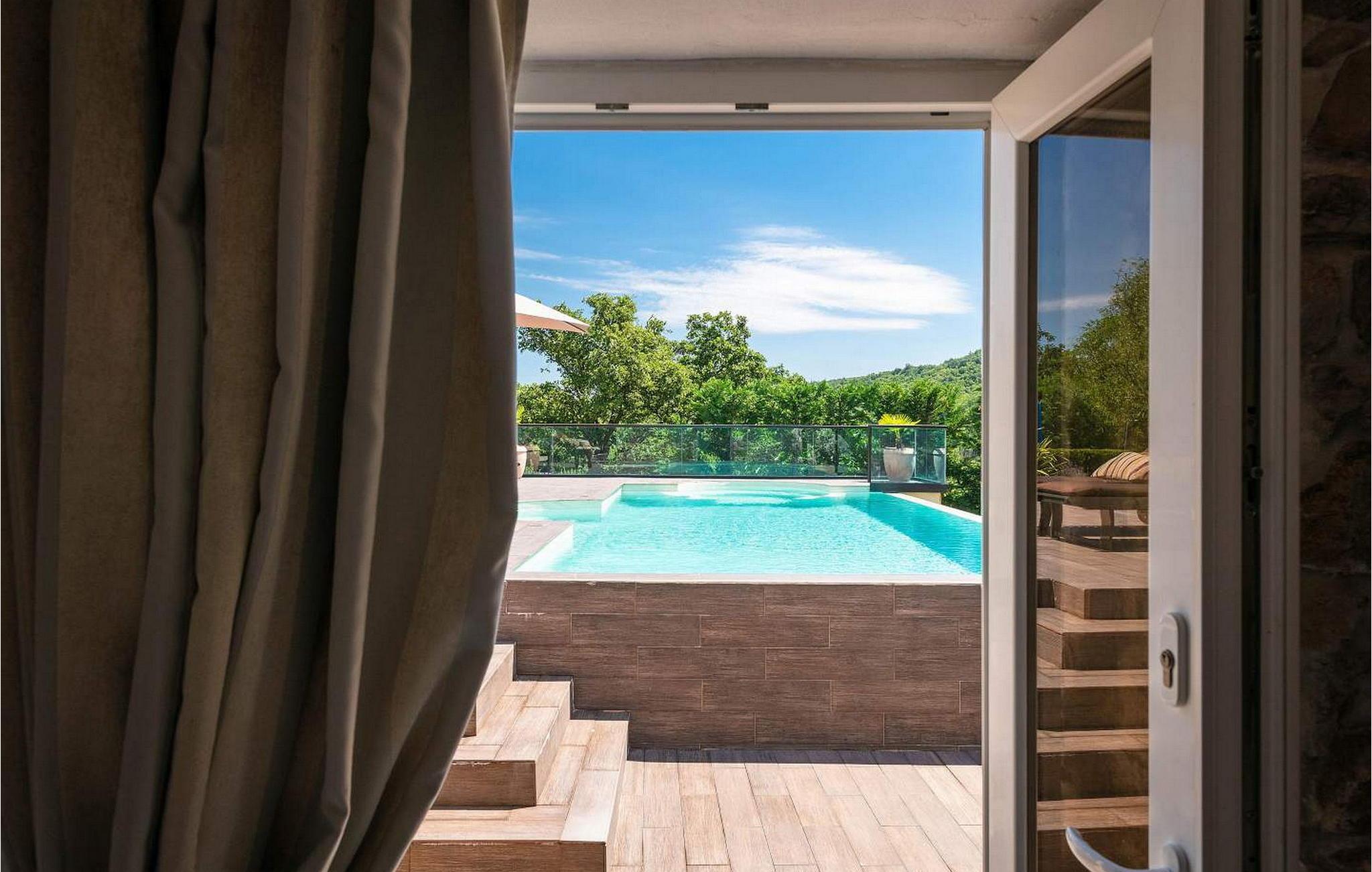 Vila Amneris er et attraktivt, fuldstændig renoveret gammelt stenhus beliggende i en høj beliggenhed i udkanten af byen Labin. På egen, delvist indhegnet grund på 4.000 kvm med en dejlig panoramaudsigt, har villaens gæster brug af en 38 kvm stor privat swimmingpool, solterrasse med liggestole, tre terrasser med spisefaciliteter og havemøbler, grill, legeplads , bocciabane og to overdækkede parkeringspladser. Denne villa med pool til 4-6 gæster har et boligareal på 115 kvm, indrettet med moderne stil møbler af høj kvalitet med typiske istriske detaljer. Villaen består af køkken, stue med spiseplads, to soveværelser til to, et med dobbeltseng og et med en dobbeltseng og en enkeltseng, bad/toilet og separat toilet. I det smagfuldt indrettede værtshusområde, som er blevet fuldstændig renoveret og er attraktivt takket være den funktion, originale stenmur, er der endnu et fuldt udstyret køkken med tallerkener, et spisebord, satellit-tv og en sovesofa (sover én). Bemærk venligst, at denne ejendom ikke accepterer ungdomsgrupper eller polterabends. En ungdomsgruppe på denne ejendom er en gruppe bestående af personer på 26 år eller derunder. Book ikke denne ejendom, hvis du er en ungdomsgruppe eller et polterabend, da din reservation vil blive afvist efter booking, hvilket kan omfatte ved ankomst til ejendommen eller under dit ophold, og du vil ikke blive refunderet.