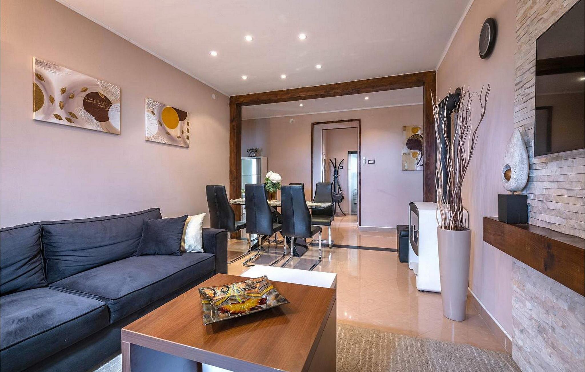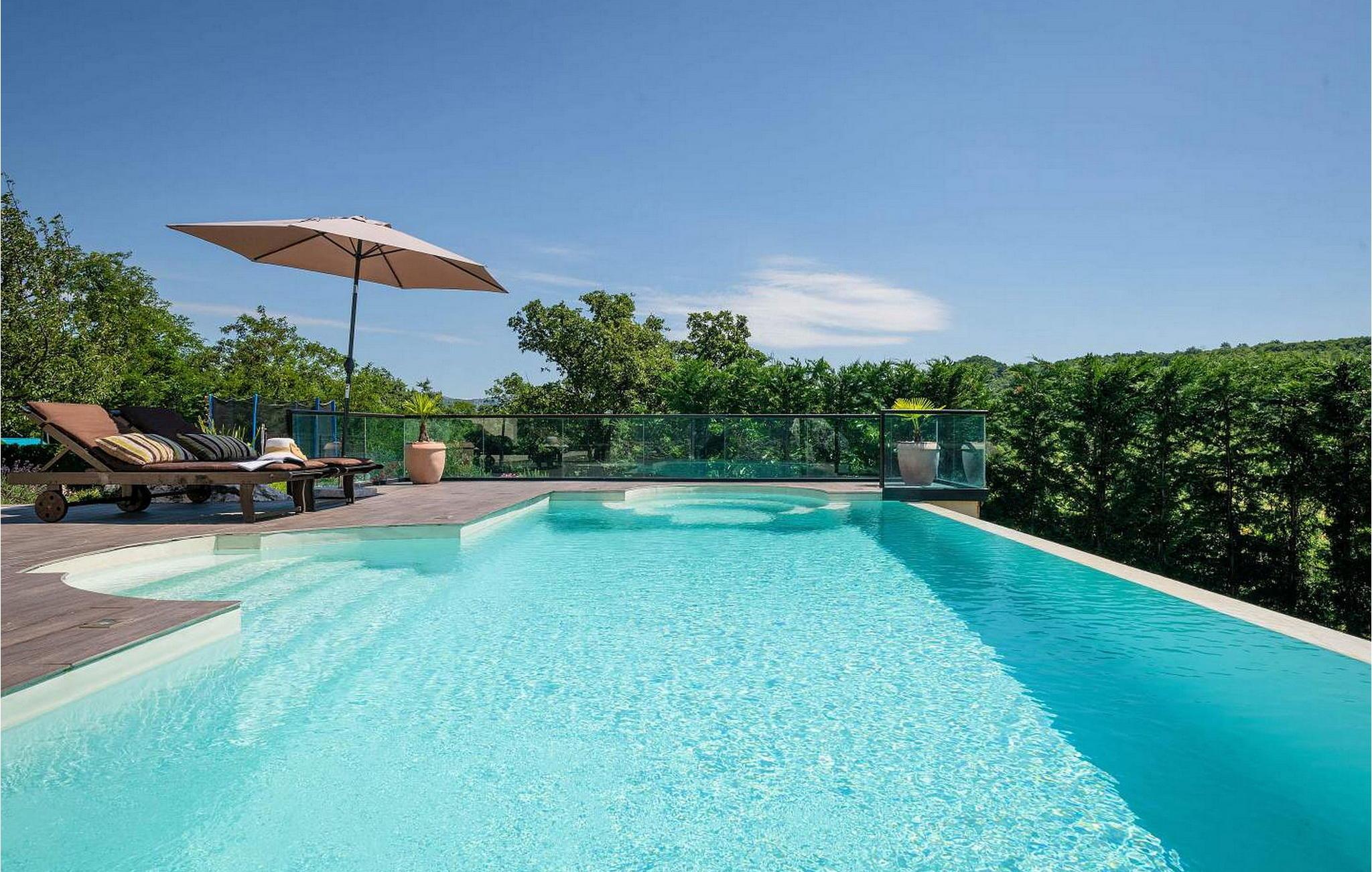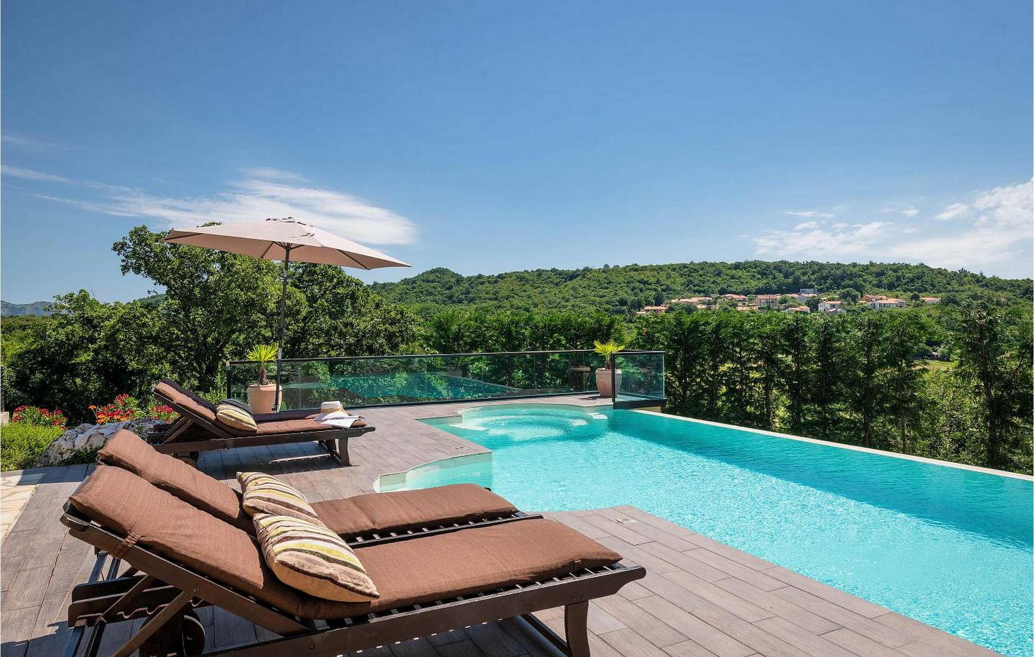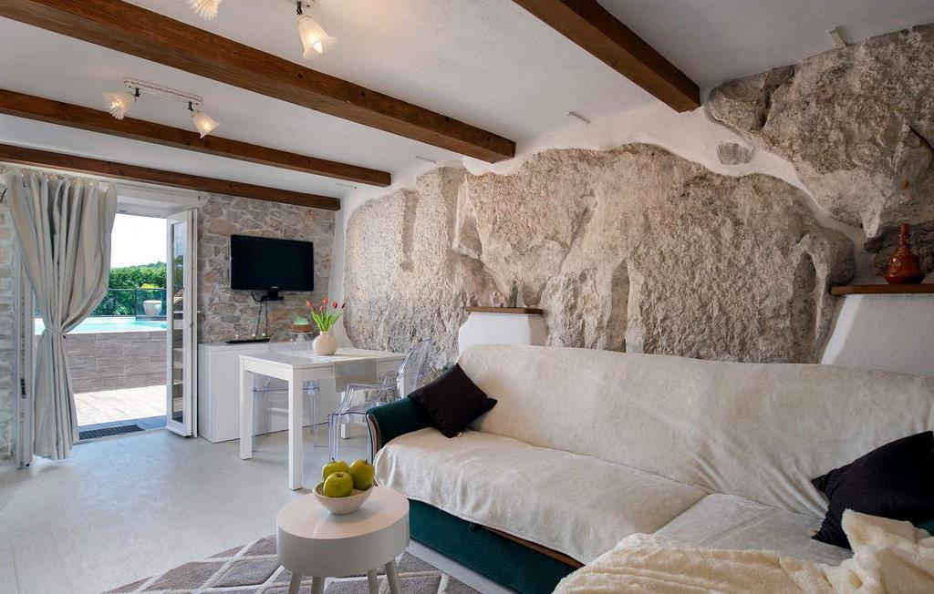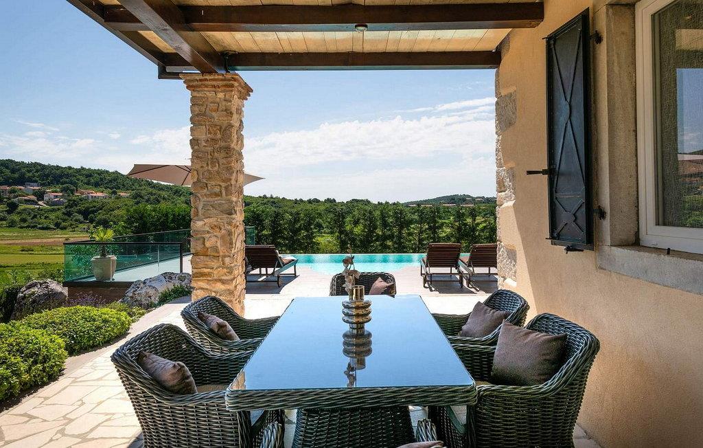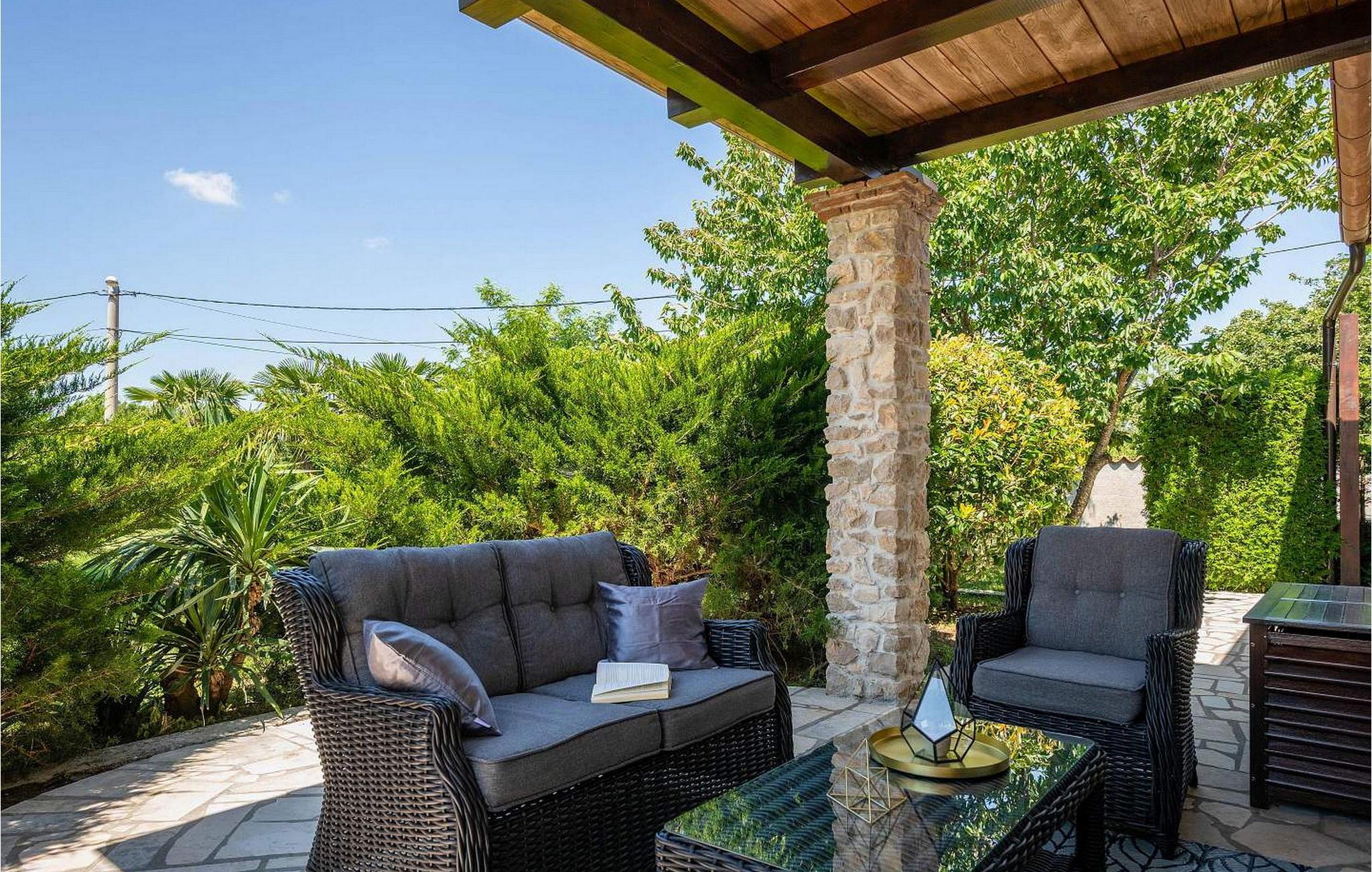 Vila Amneris er et attraktivt, fuldstændig renoveret gammelt stenhus beliggende i en høj beliggenhed i udkanten af byen Labin. På egen, delvist indhegnet grund på 4.000 kvm med en dejlig panoramaudsigt, har villaens gæster brug af en 38 kvm stor privat swimmingpool, solterrasse med liggestole, tre terrasser med spisefaciliteter og havemøbler, grill, legeplads , bocciabane og to overdækkede parkeringspladser. Denne villa med pool til 4-6 gæster har et boligareal på 115 kvm, indrettet med moderne stil møbler af høj kvalitet med typiske istriske detaljer. Villaen består af køkken, stue med spiseplads, to soveværelser til to, et med dobbeltseng og et med en dobbeltseng og en enkeltseng, bad/toilet og separat toilet. I det smagfuldt indrettede værtshusområde, som er blevet fuldstændig renoveret og er attraktivt takket være den funktion, originale stenmur, er der endnu et fuldt udstyret køkken med tallerkener, et spisebord, satellit-tv og en sovesofa (sover én). Bemærk venligst, at denne ejendom ikke accepterer ungdomsgrupper eller polterabends. En ungdomsgruppe på denne ejendom er en gruppe bestående af personer på 26 år eller derunder. Book ikke denne ejendom, hvis du er en ungdomsgruppe eller et polterabend, da din reservation vil blive afvist efter booking, hvilket kan omfatte ved ankomst til ejendommen eller under dit ophold, og du vil ikke blive refunderet.