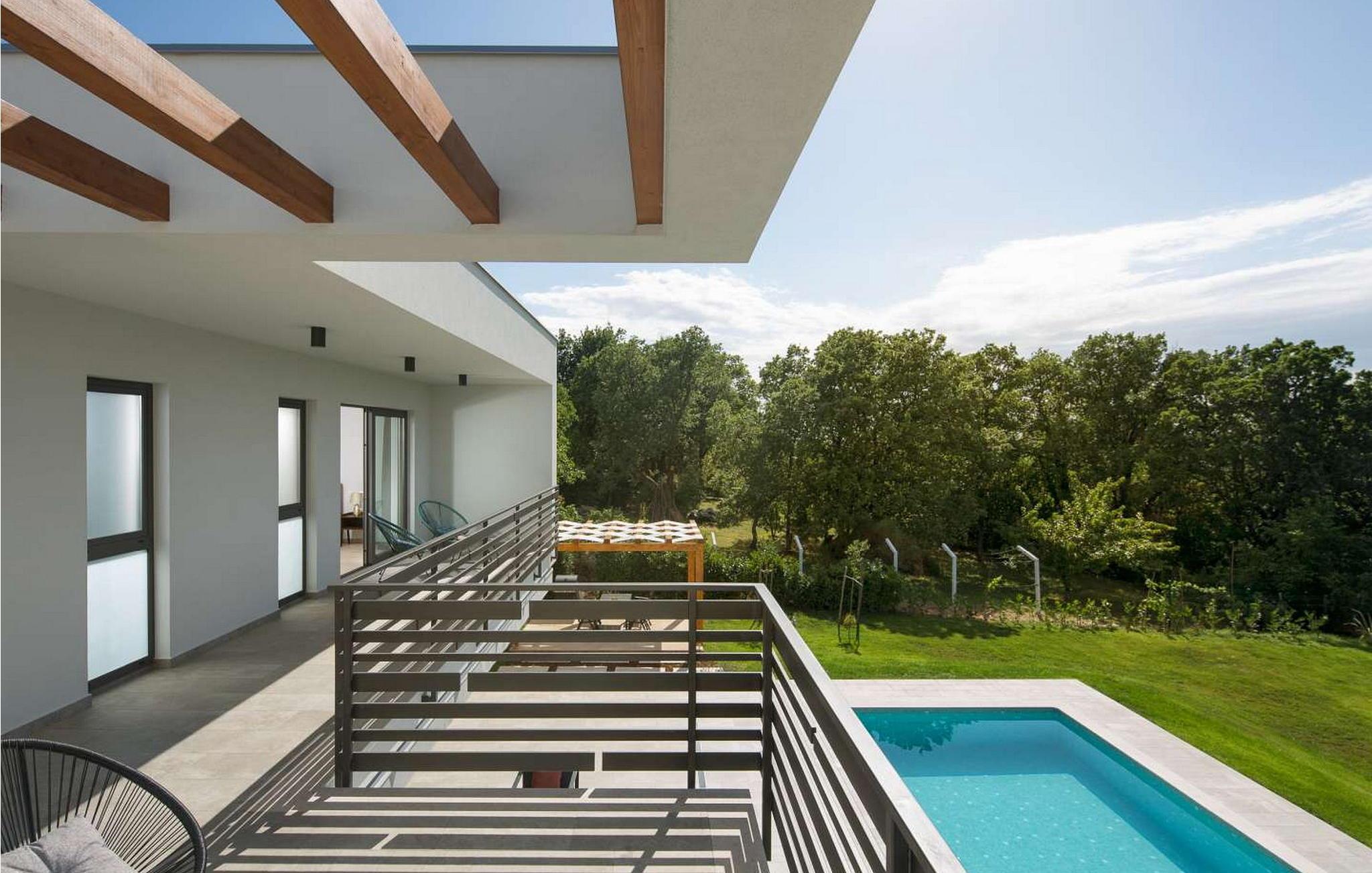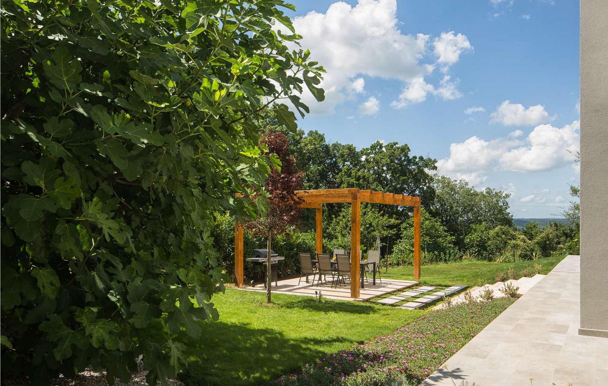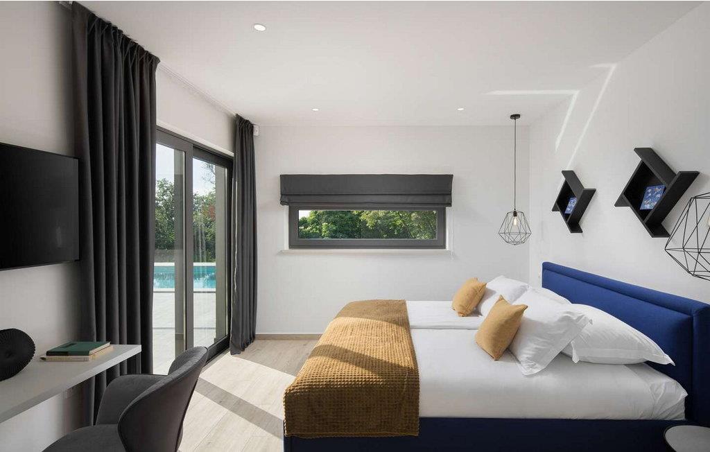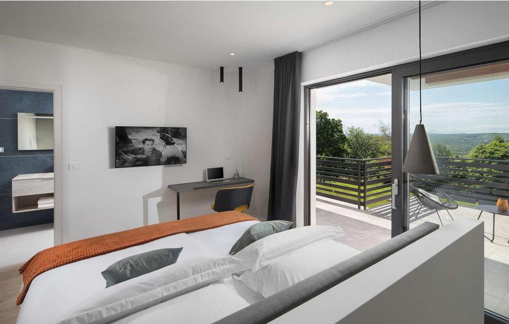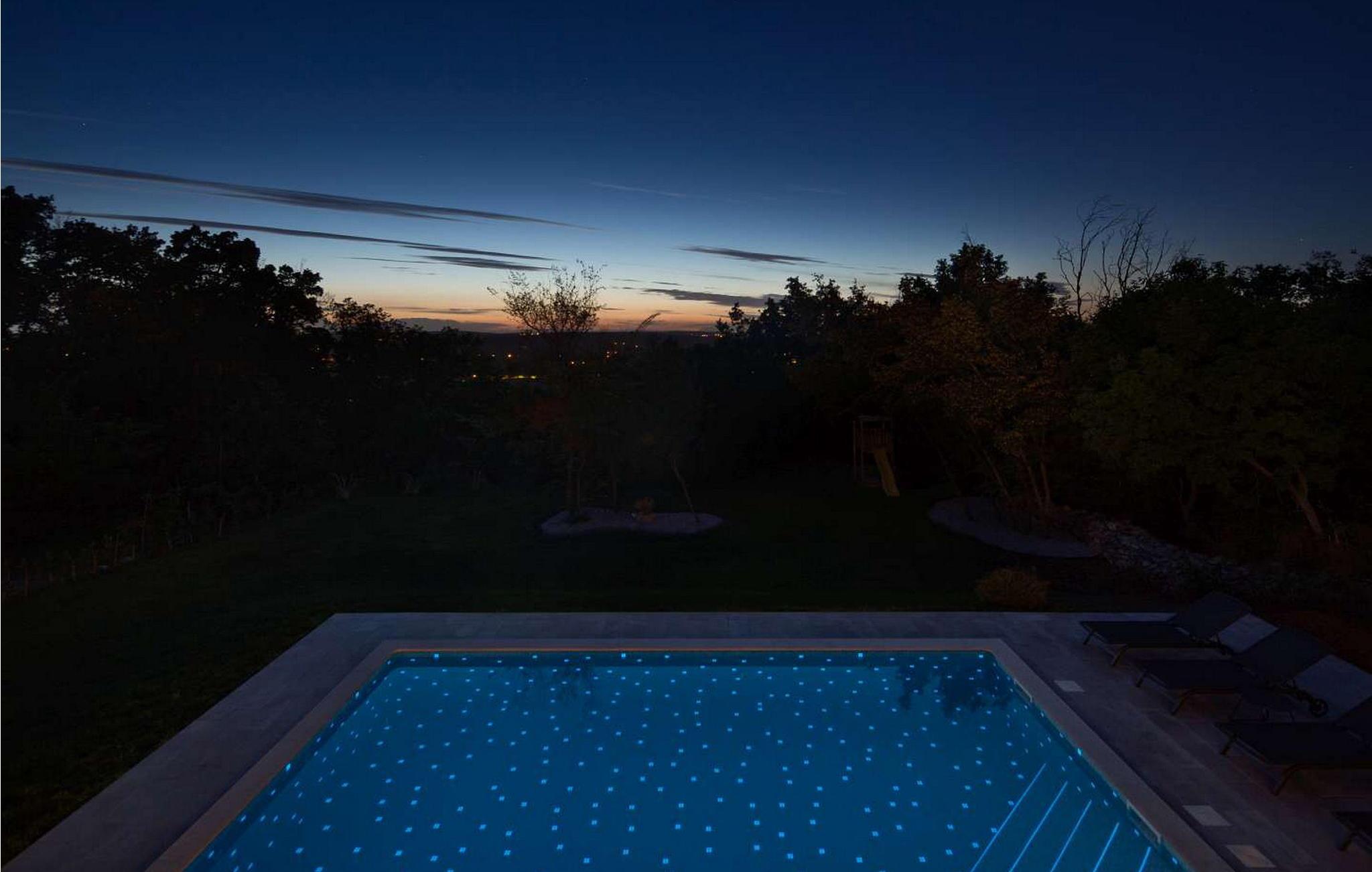 Villa Amelia er et moderne hus med swimmingpool, kun 500 m fra byen Labin. På velholdt ejendom byder huset på pool med lysende fliser, der giver en særlig effekt om natten. Huset ligger ud til en skov og har en smuk panoramaudsigt over den grønne dal. Ved udgang fra stuen er der overdækket altan med opholdsområde og solterrasse langs hele altanen (8x3 m). Gæsterne har til deres rådighed liggestole, udendørs bruser, baldakin med grill og spisebord, legeplads, garage til to køretøjer og flere parkeringspladser. Byen Labin ligger kun 5 minutters gang væk og turistbyen Rabac med forskellige fritids- og gastronomiske tilbud samt smukke strande kun 5 km fra huset. Feriehus til 6 gæster er fordelt på to etager. I stueetagen er der en stue med pejs, siddesofa og store glasvinduer med udsigt over poolen, spisestue og fuldt udstyret køkken, et soveværelse med en-suite badeværelse og et separat toilet. På første sal er der to soveværelser med dobbeltsenge, hver med en-suite badeværelser og udgang til balkon med siddepladser. På denne etage er der også et legerum til mindre børn. Huset er fuldt airconditioneret og opvarmet. Bemærk venligst, at denne ejendom ikke accepterer ungdomsgrupper eller polterabends. En ungdomsgruppe på denne ejendom er en gruppe bestående af personer på 26 år eller derunder. Book ikke denne ejendom, hvis du er en ungdomsgruppe eller et polterabend, da din reservation vil blive afvist efter booking, hvilket kan omfatte ved ankomst til ejendommen eller under dit ophold, og du vil ikke blive refunderet.
