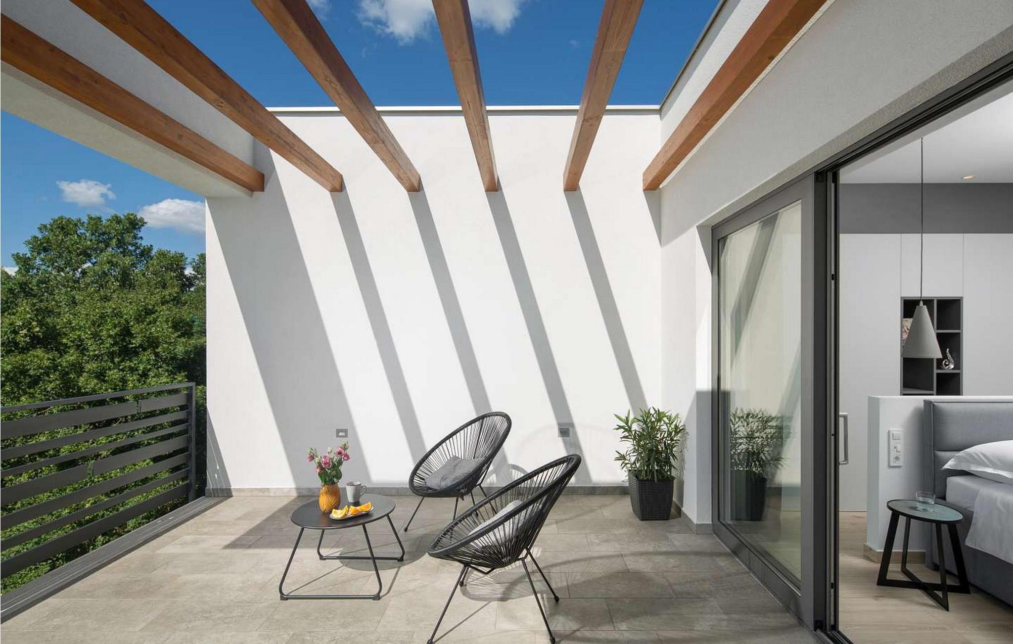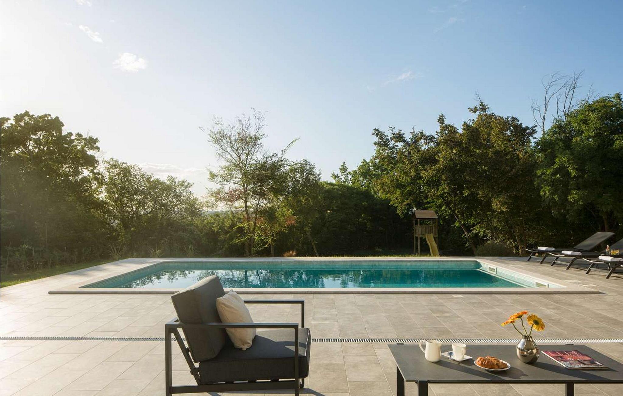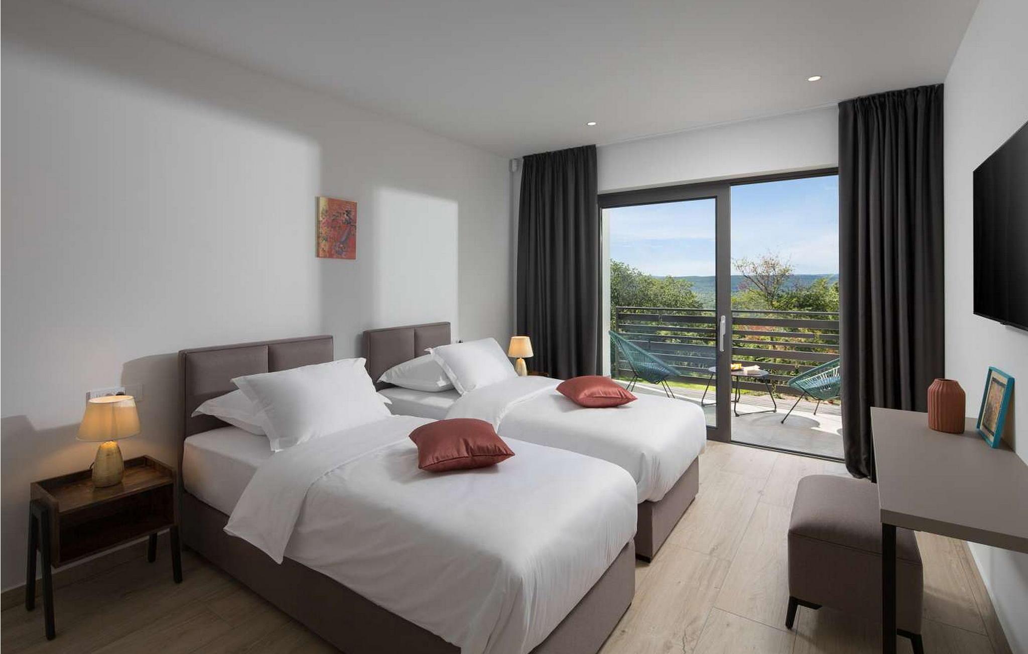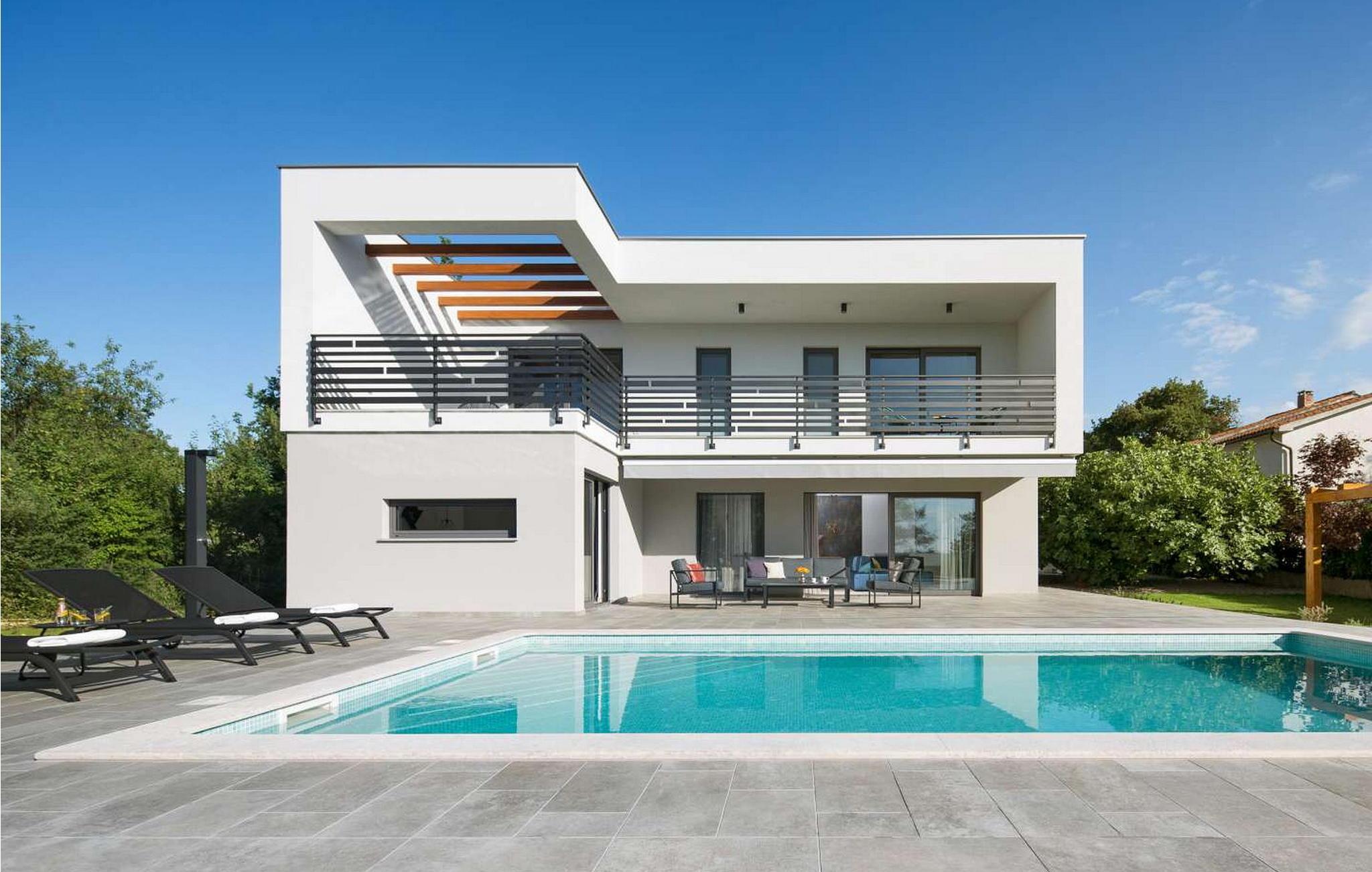 Villa Amelia er et moderne hus med swimmingpool, kun 500 m fra byen Labin. På velholdt ejendom byder huset på pool med lysende fliser, der giver en særlig effekt om natten. Huset ligger ud til en skov og har en smuk panoramaudsigt over den grønne dal. Ved udgang fra stuen er der overdækket altan med opholdsområde og solterrasse langs hele altanen (8x3 m). Gæsterne har til deres rådighed liggestole, udendørs bruser, baldakin med grill og spisebord, legeplads, garage til to køretøjer og flere parkeringspladser. Byen Labin ligger kun 5 minutters gang væk og turistbyen Rabac med forskellige fritids- og gastronomiske tilbud samt smukke strande kun 5 km fra huset. Feriehus til 6 gæster er fordelt på to etager. I stueetagen er der en stue med pejs, siddesofa og store glasvinduer med udsigt over poolen, spisestue og fuldt udstyret køkken, et soveværelse med en-suite badeværelse og et separat toilet. På første sal er der to soveværelser med dobbeltsenge, hver med en-suite badeværelser og udgang til balkon med siddepladser. På denne etage er der også et legerum til mindre børn. Huset er fuldt airconditioneret og opvarmet. Bemærk venligst, at denne ejendom ikke accepterer ungdomsgrupper eller polterabends. En ungdomsgruppe på denne ejendom er en gruppe bestående af personer på 26 år eller derunder. Book ikke denne ejendom, hvis du er en ungdomsgruppe eller et polterabend, da din reservation vil blive afvist efter booking, hvilket kan omfatte ved ankomst til ejendommen eller under dit ophold, og du vil ikke blive refunderet.