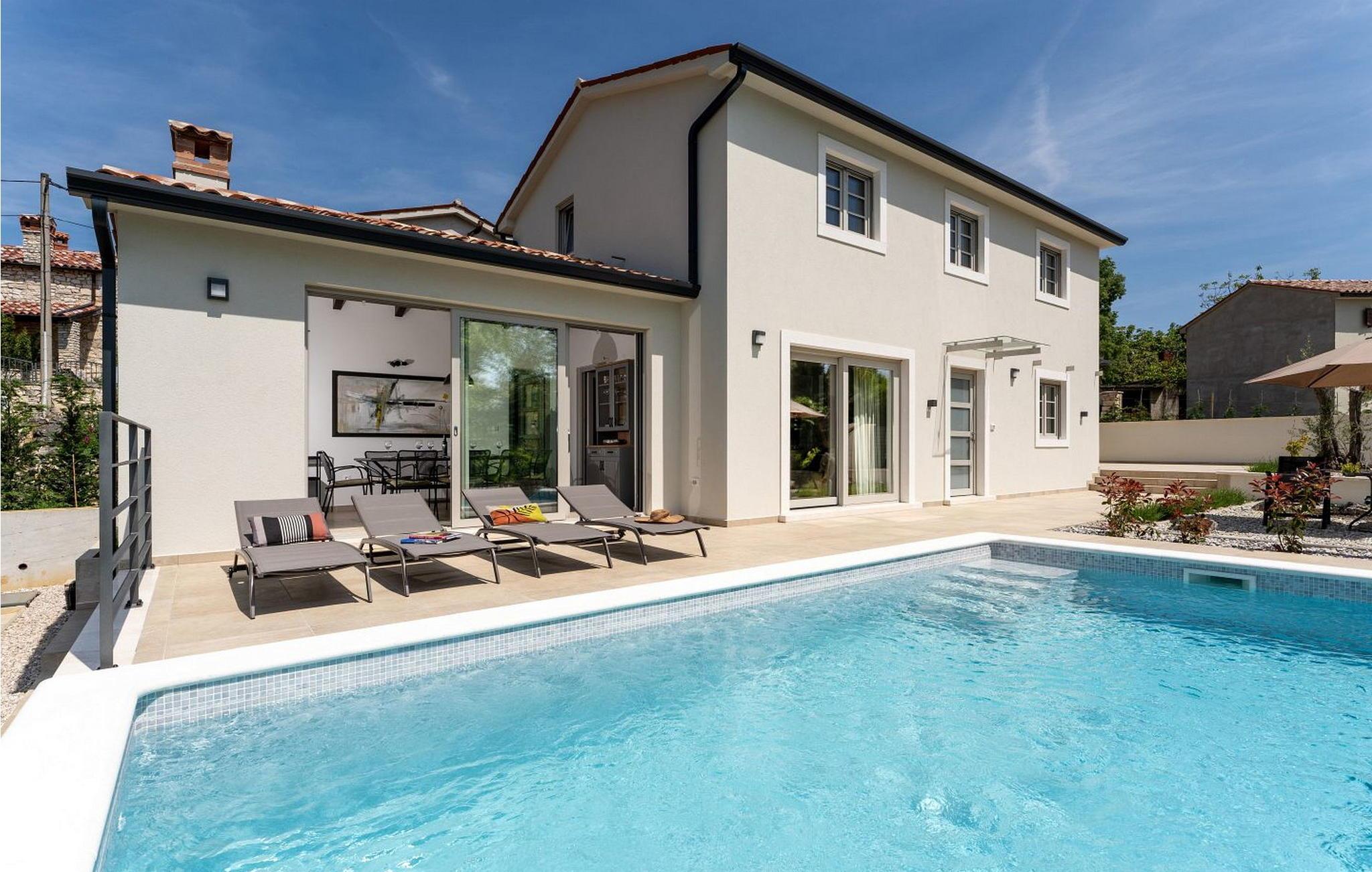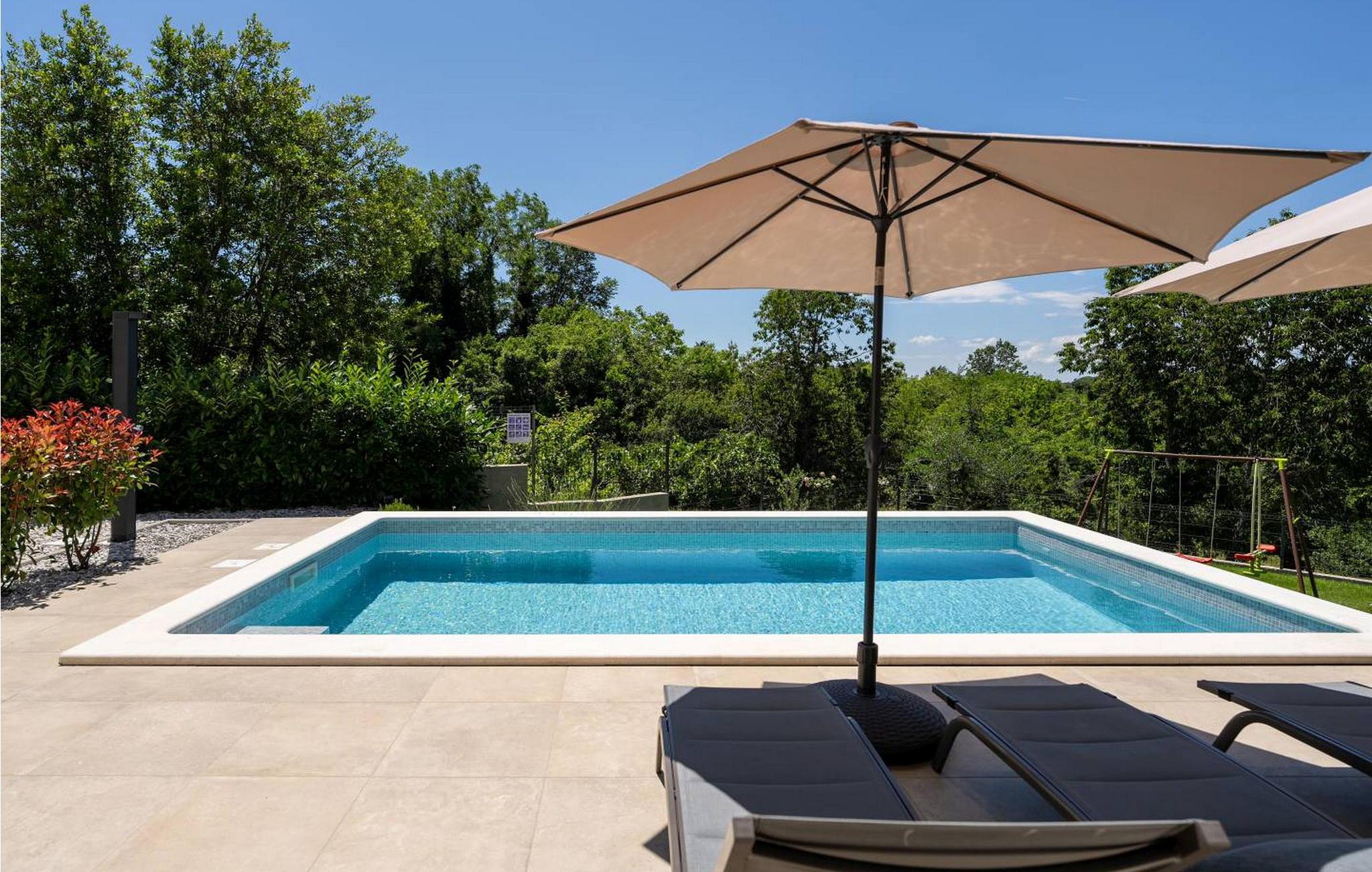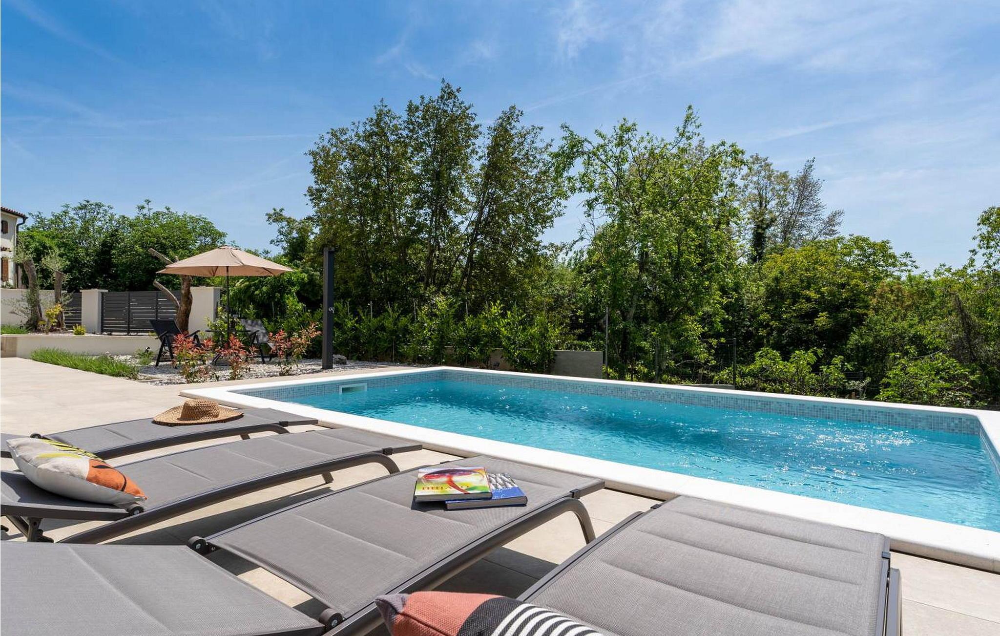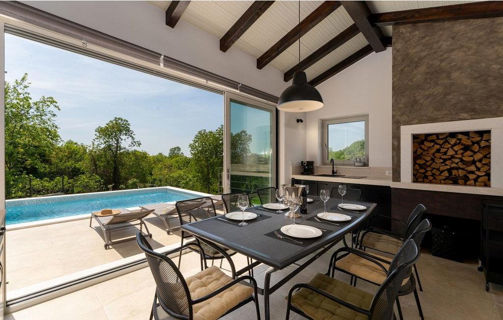 Villa Dana er et moderne og hyggeligt feriehus med pool, hvor alle detaljer hører til et smukt koncept. På lukket og velholdt ejendom kan gæsterne benytte pool, liggestole, udendørs bruser, opholdsområde, køkkenhave og flere parkeringspladser. Ved siden af poolen er der et overdækket og lukket sommerkøkken med pejs, komfur og kaffemaskine, med udsigt til pool og skov er det velegnet til hele dagen. Huset ligger i udkanten af en lille landsby, mod sydvest, så der er sol hele dagen. Den nærmeste by er Labin, omkring 3 km væk, stenstrande kan nås i Rabac omkring 8 km væk. Villa Dana, sommerhus til 6 gæster er fordelt på to etager. I stueetagen er der stue med direkte adgang til sommerkøkkenet, spisestue, fuldt udstyret køkken og badeværelse. På første sal er der tre soveværelser og to badeværelser, et med en-suite badeværelse, et med dobbeltseng og et med to enkeltsenge. Bemærk venligst, at denne ejendom ikke accepterer ungdomsgrupper eller polterabends. En ungdomsgruppe på denne ejendom er en gruppe bestående af personer på 26 år eller derunder. Book ikke denne ejendom, hvis du er en ungdomsgruppe eller et polterabend, da din reservation vil blive afvist efter booking, hvilket kan omfatte ved ankomst til ejendommen eller under dit ophold, og du vil ikke blive refunderet.