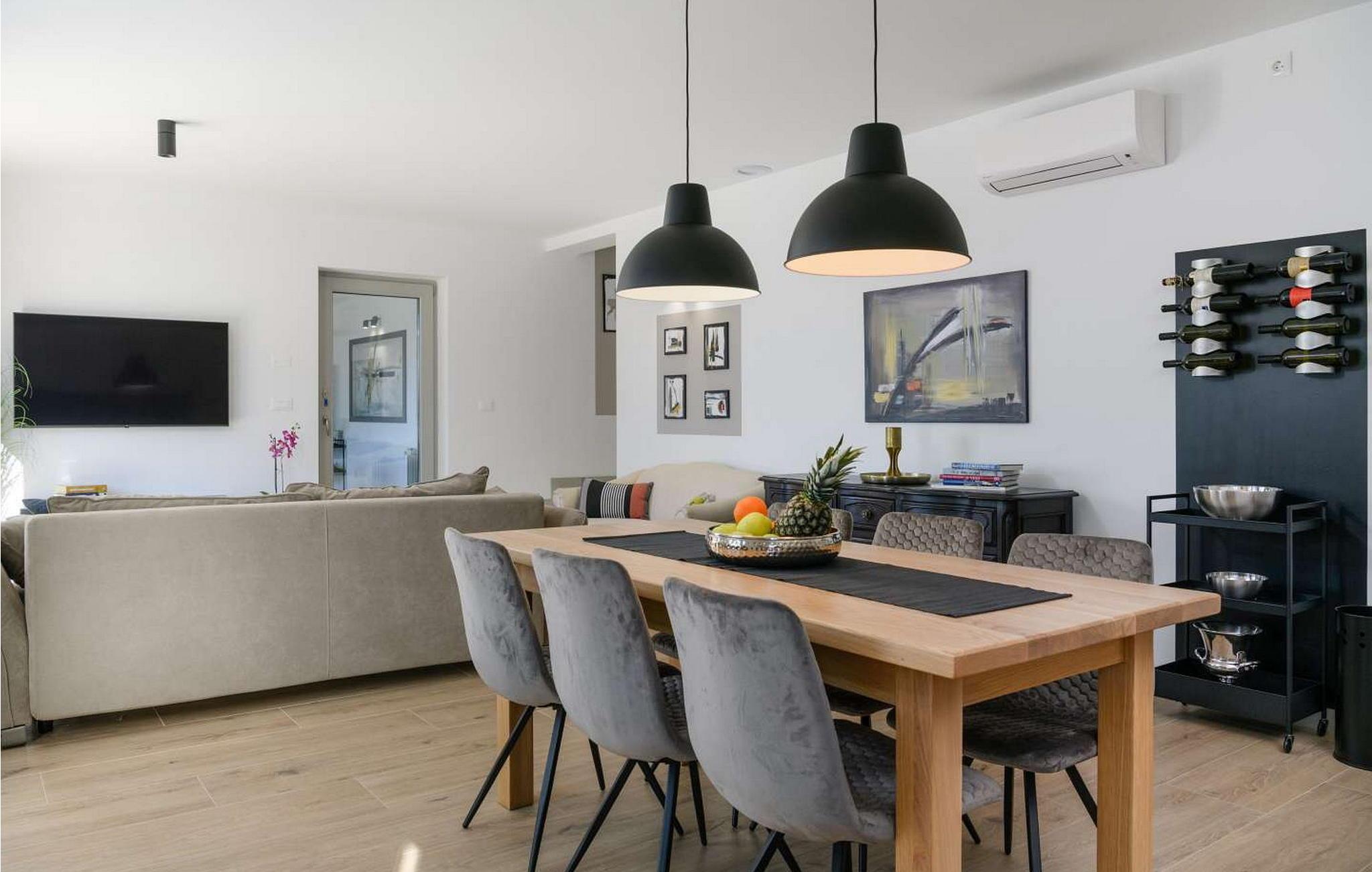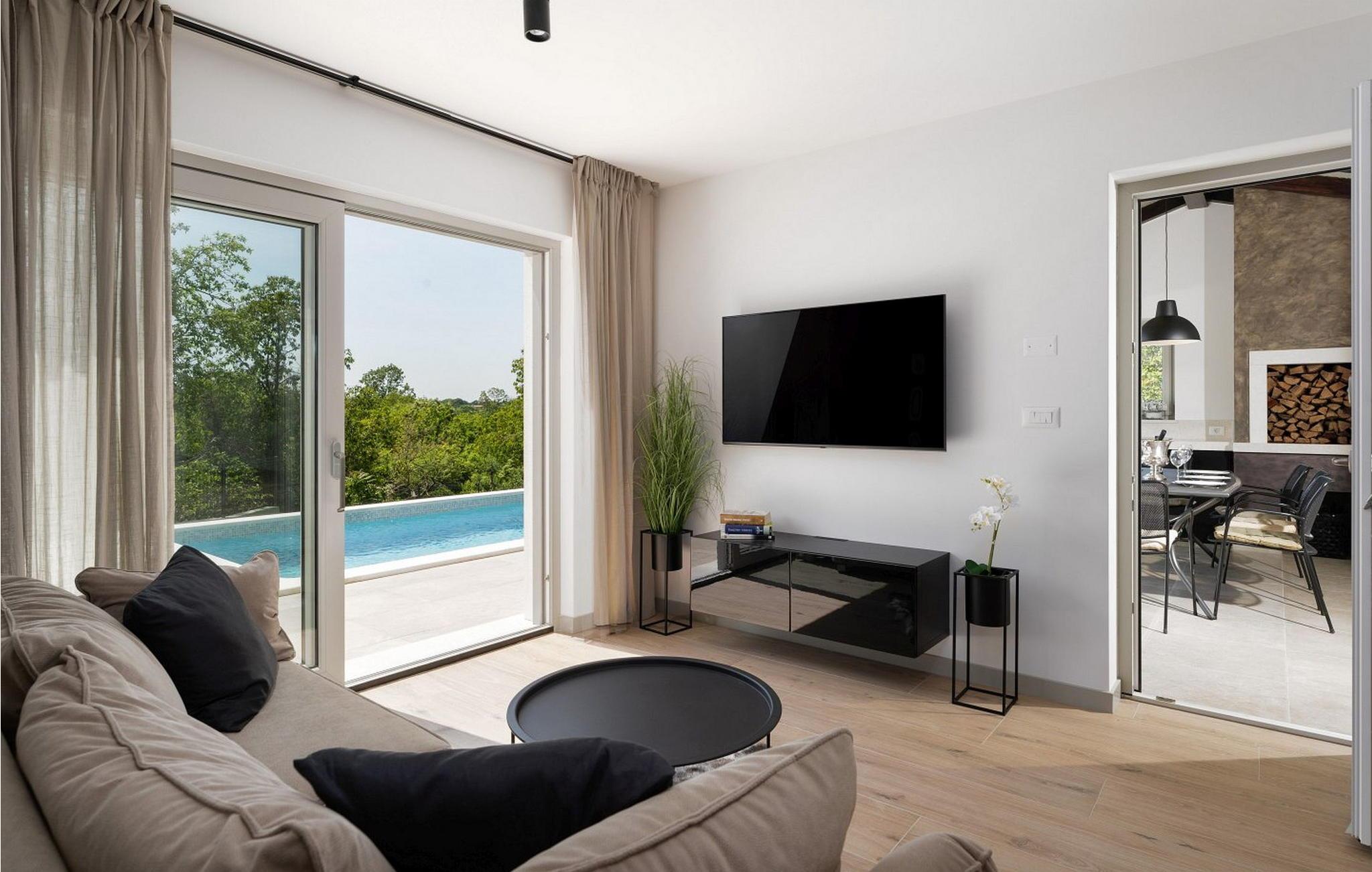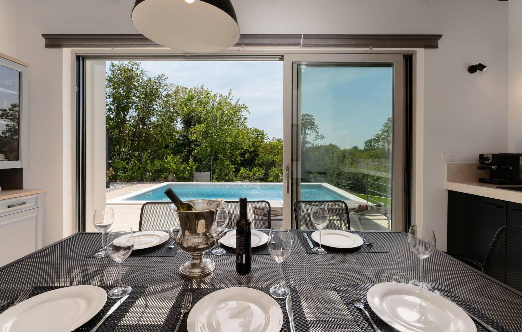 Villa Dana er et moderne og hyggeligt feriehus med pool, hvor alle detaljer hører til et smukt koncept. På lukket og velholdt ejendom kan gæsterne benytte pool, liggestole, udendørs bruser, opholdsområde, køkkenhave og flere parkeringspladser. Ved siden af poolen er der et overdækket og lukket sommerkøkken med pejs, komfur og kaffemaskine, med udsigt til pool og skov er det velegnet til hele dagen. Huset ligger i udkanten af en lille landsby, mod sydvest, så der er sol hele dagen. Den nærmeste by er Labin, omkring 3 km væk, stenstrande kan nås i Rabac omkring 8 km væk. Villa Dana, sommerhus til 6 gæster er fordelt på to etager. I stueetagen er der stue med direkte adgang til sommerkøkkenet, spisestue, fuldt udstyret køkken og badeværelse. På første sal er der tre soveværelser og to badeværelser, et med en-suite badeværelse, et med dobbeltseng og et med to enkeltsenge. Bemærk venligst, at denne ejendom ikke accepterer ungdomsgrupper eller polterabends. En ungdomsgruppe på denne ejendom er en gruppe bestående af personer på 26 år eller derunder. Book ikke denne ejendom, hvis du er en ungdomsgruppe eller et polterabend, da din reservation vil blive afvist efter booking, hvilket kan omfatte ved ankomst til ejendommen eller under dit ophold, og du vil ikke blive refunderet.