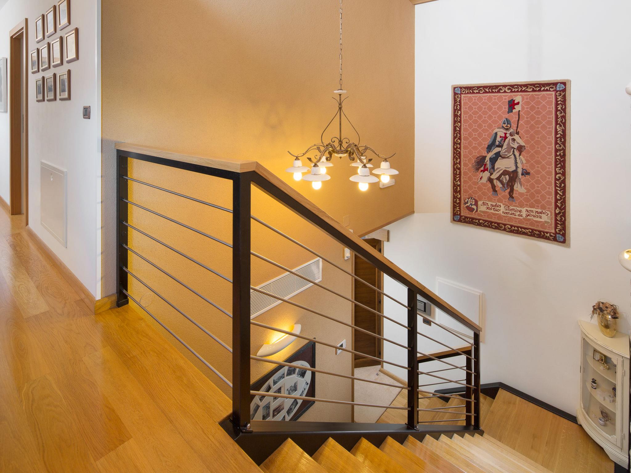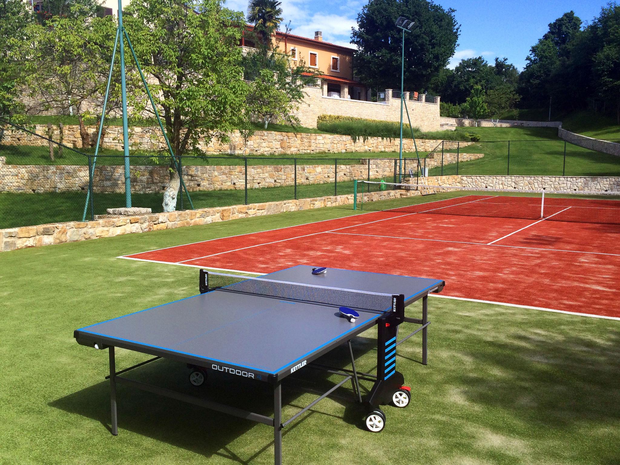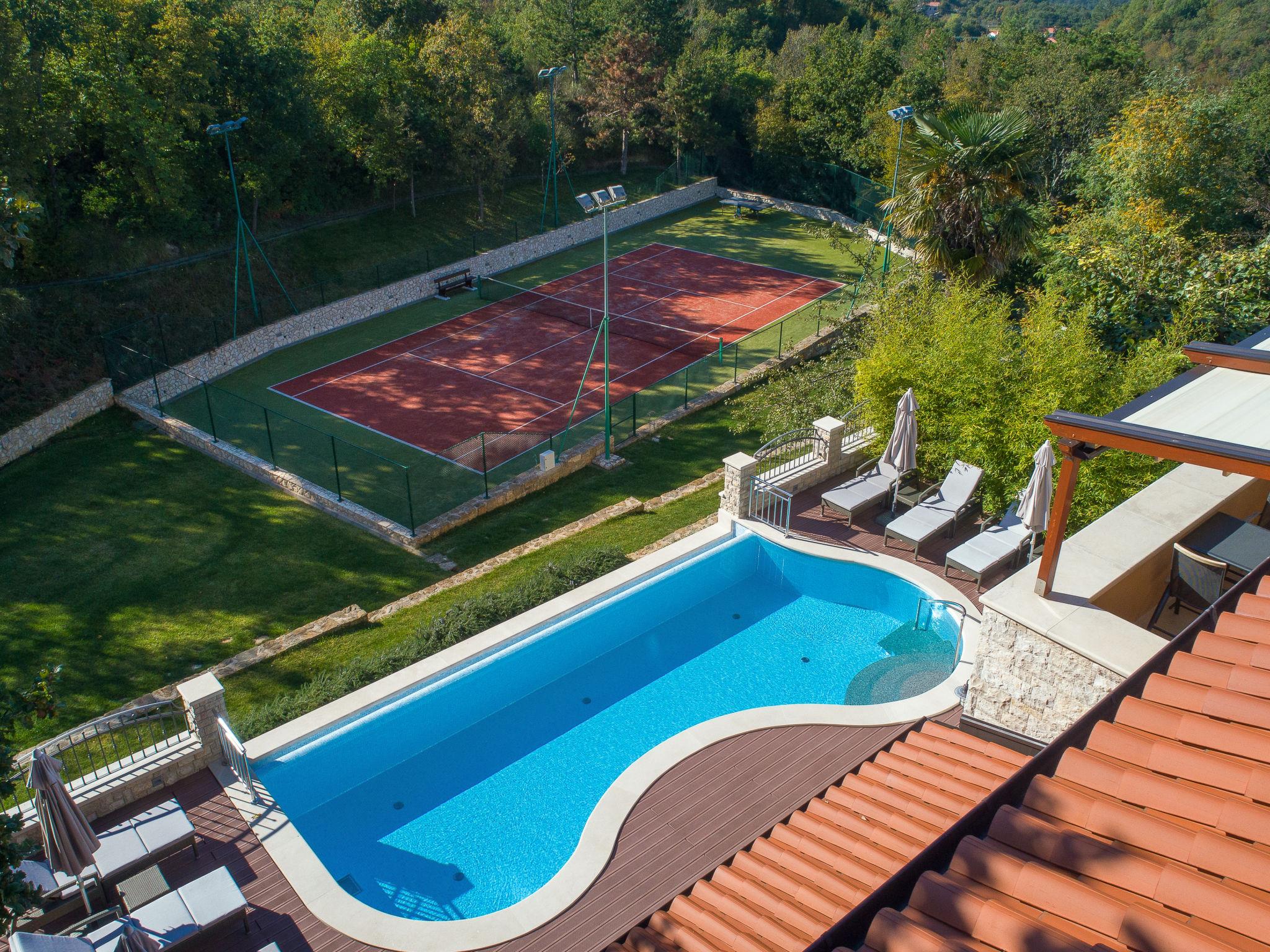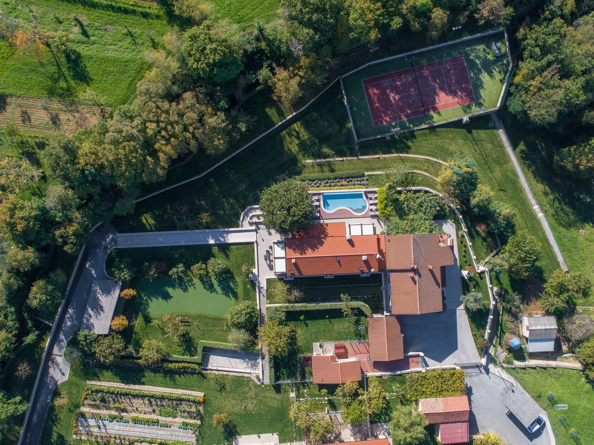 Beautiful villa "Vlastelini", 2 storeys, built in 1921, renovated in 2011. 1 km from the centre of Labin, in a quiet, sunny position on a slope, 3.5 km from the sea, 3.5 km from the beach. Private: property 7'000 m2 (fenced), beautiful garden with lawn and wildlife garden, swimming pool heated (35 m2, depth 140 cm, seasonal availability: 06.Apr. - 12.Oct.) with internal staircase. Unconventional pool shape. Outdoor shower, tennis, floodlit, table tennis, barbecue. In the house: internet access, central heating system, washing machine, tumble dryer. Towel change daily. Roofed, parking (for 4 cars) at the house on the premises. E-charging station. Shop 900 m, restaurant 600 m, bus stop 2.7 km, pebble beach 3.5 km, rocky beach 3.5 km. Walking paths from the house 100 m, cycle lane 150 m. Please note: suitable for families. Groups of teenagers on request only. Animals in the neighbourhood. Traditional tavern in the ground floor with open-hearth fireplace, kitchen (4 induction hot plates, oven, dishwasher, freezer), satellite TV (flatscreen), hi-fi system, DVD player, air conditioning, exit to the pool. Separate WC. Putting green. By groups of young people double deposit is requested on arrival. Swimming pool heated (extra). It is necessary to announce 7 days in advance if the pool heating is required. Welcome pack and champagne upon arrival.