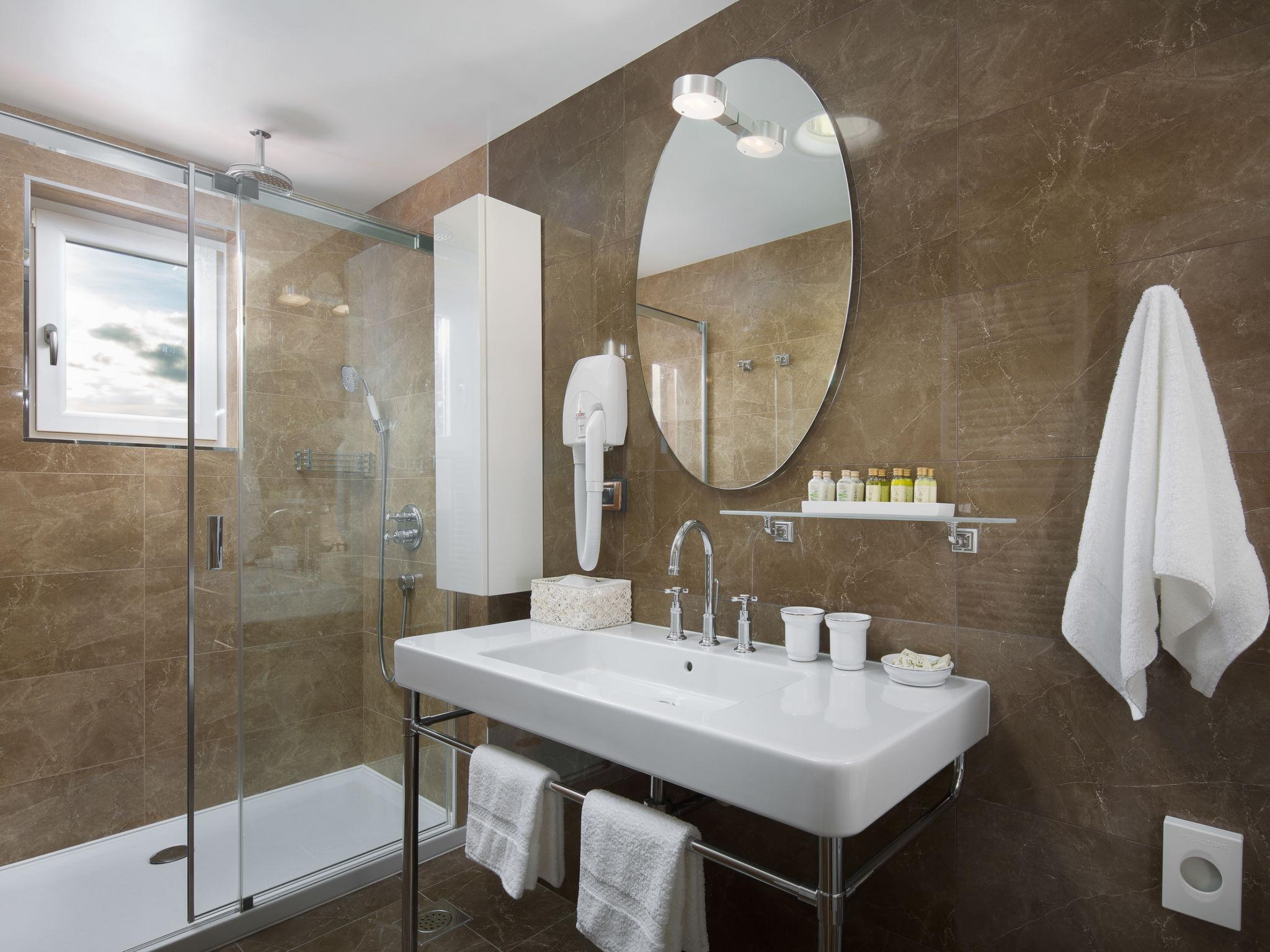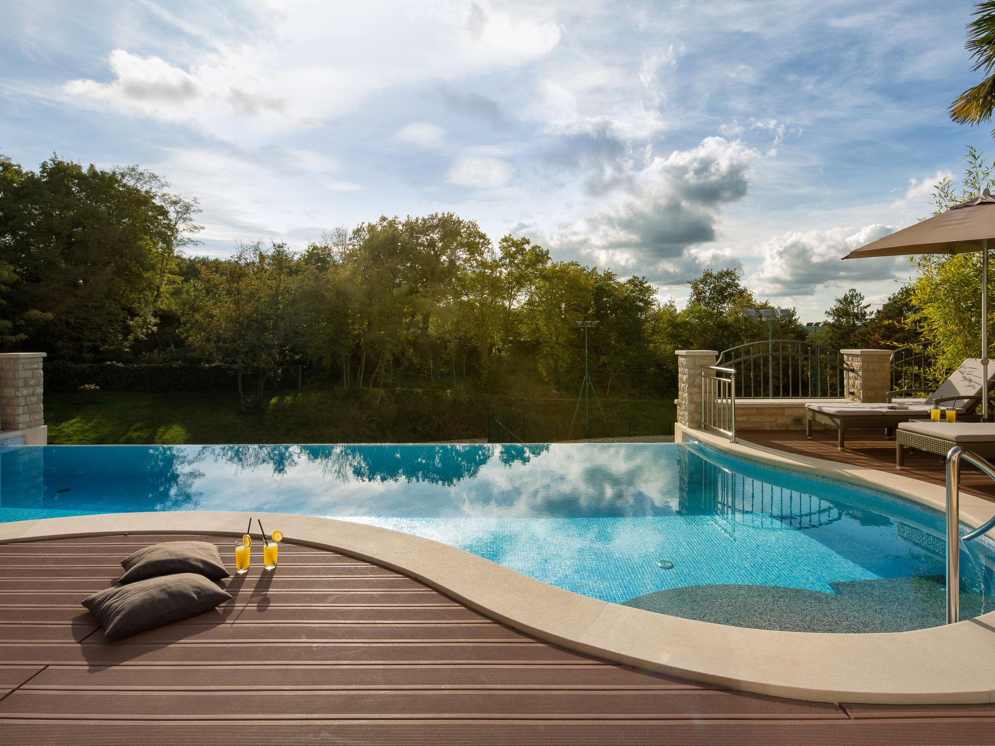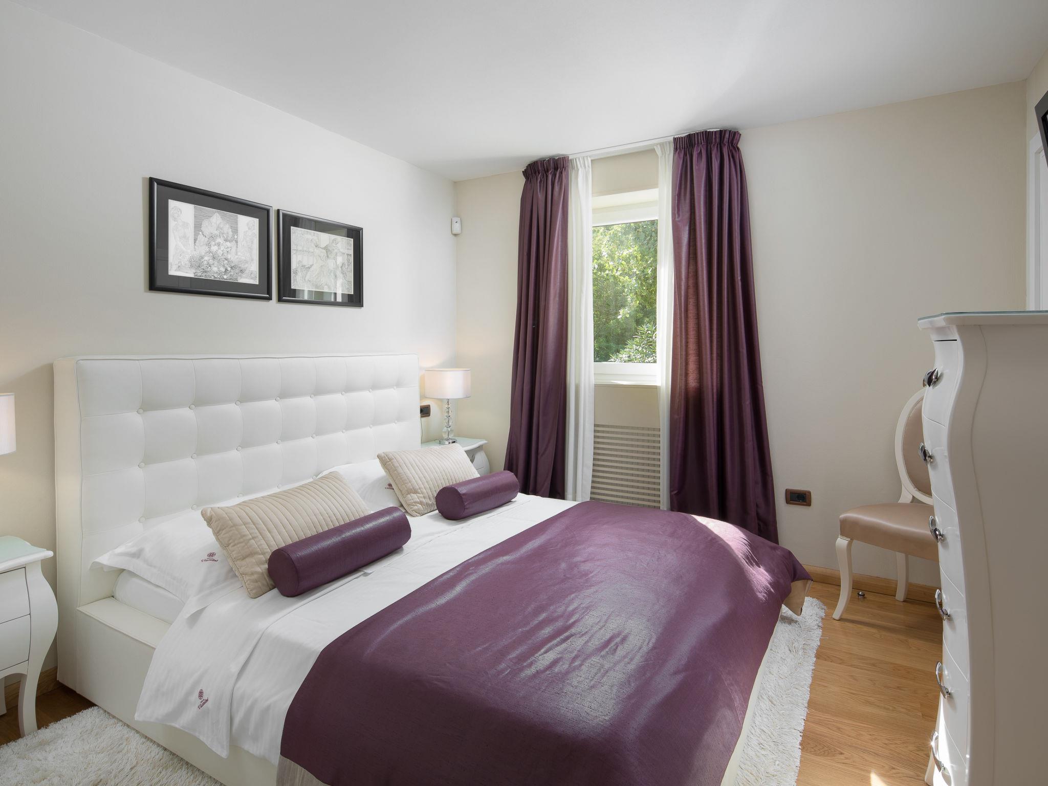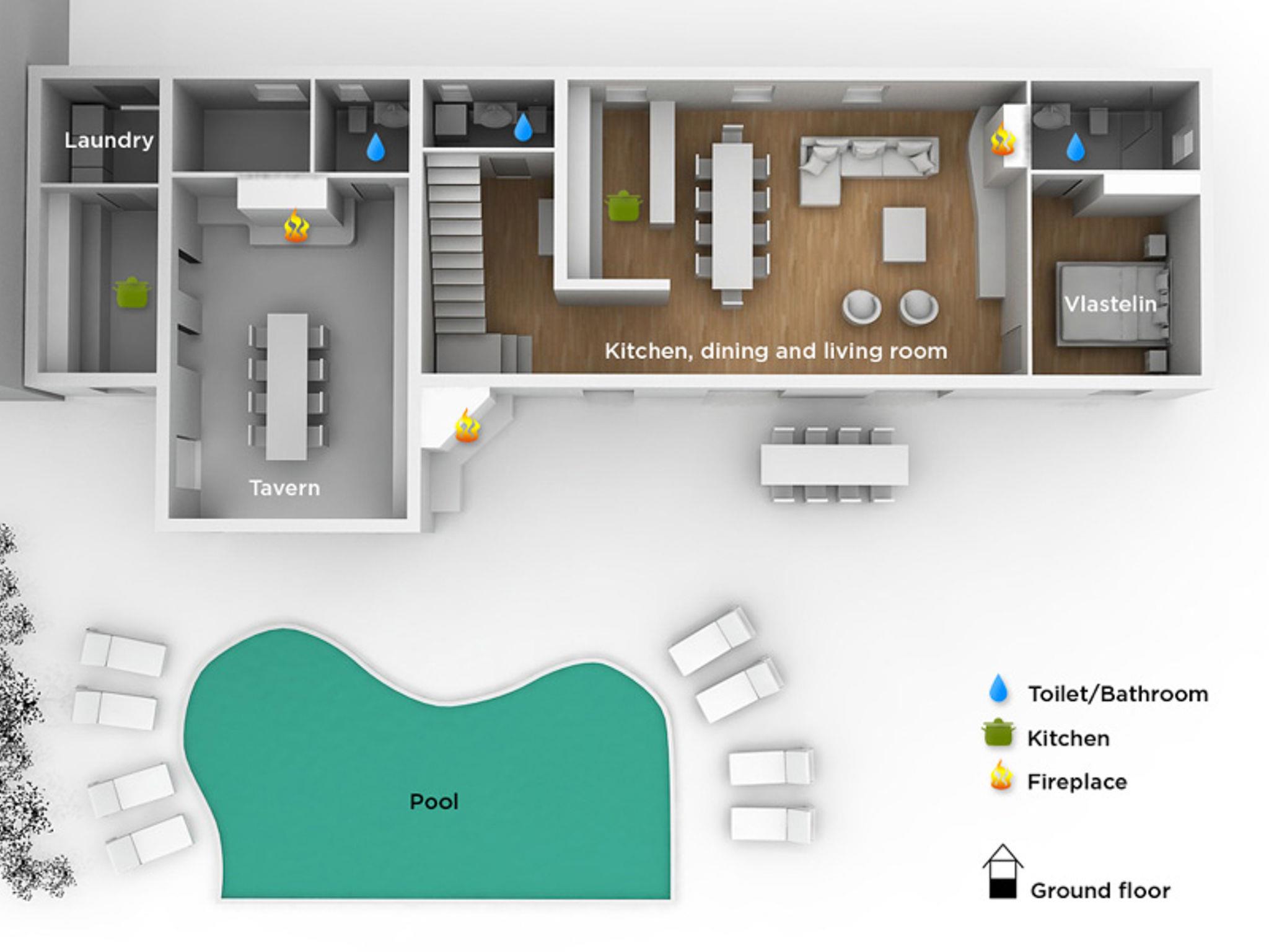 Beautiful villa "Vlastelini", 2 storeys, built in 1921, renovated in 2011. 1 km from the centre of Labin, in a quiet, sunny position on a slope, 3.5 km from the sea, 3.5 km from the beach. Private: property 7'000 m2 (fenced), beautiful garden with lawn and wildlife garden, swimming pool heated (35 m2, depth 140 cm, seasonal availability: 06.Apr. - 12.Oct.) with internal staircase. Unconventional pool shape. Outdoor shower, tennis, floodlit, table tennis, barbecue. In the house: internet access, central heating system, washing machine, tumble dryer. Towel change daily. Roofed, parking (for 4 cars) at the house on the premises. E-charging station. Shop 900 m, restaurant 600 m, bus stop 2.7 km, pebble beach 3.5 km, rocky beach 3.5 km. Walking paths from the house 100 m, cycle lane 150 m. Please note: suitable for families. Groups of teenagers on request only. Animals in the neighbourhood. Traditional tavern in the ground floor with open-hearth fireplace, kitchen (4 induction hot plates, oven, dishwasher, freezer), satellite TV (flatscreen), hi-fi system, DVD player, air conditioning, exit to the pool. Separate WC. Putting green. By groups of young people double deposit is requested on arrival. Swimming pool heated (extra). It is necessary to announce 7 days in advance if the pool heating is required. Welcome pack and champagne upon arrival.