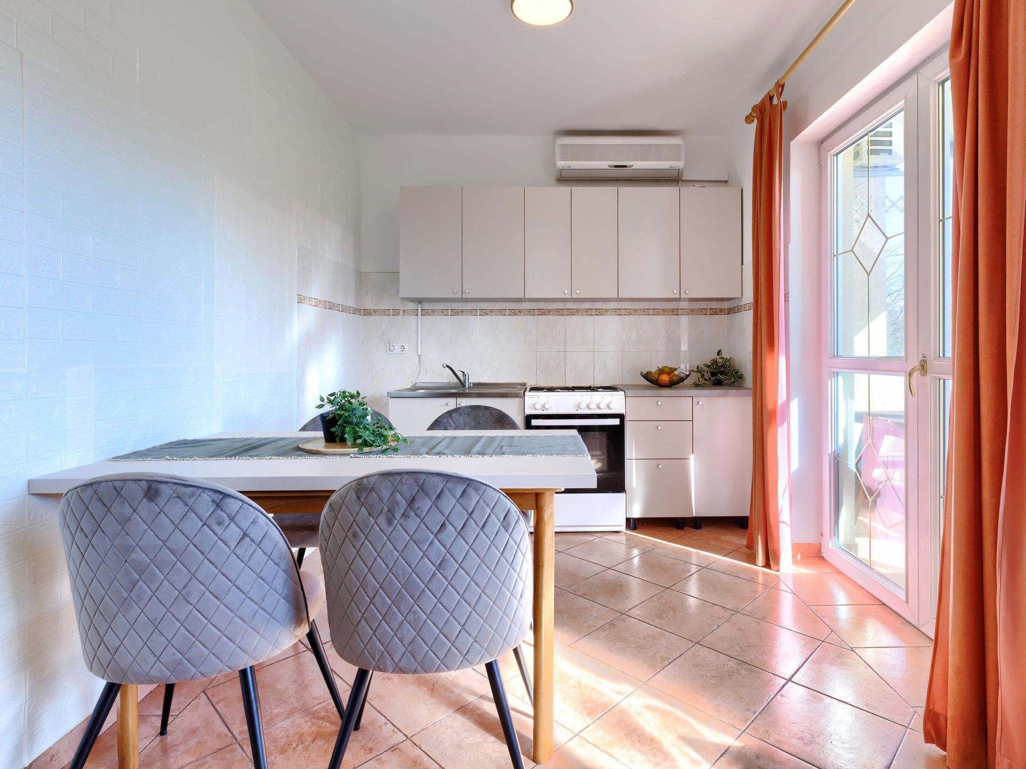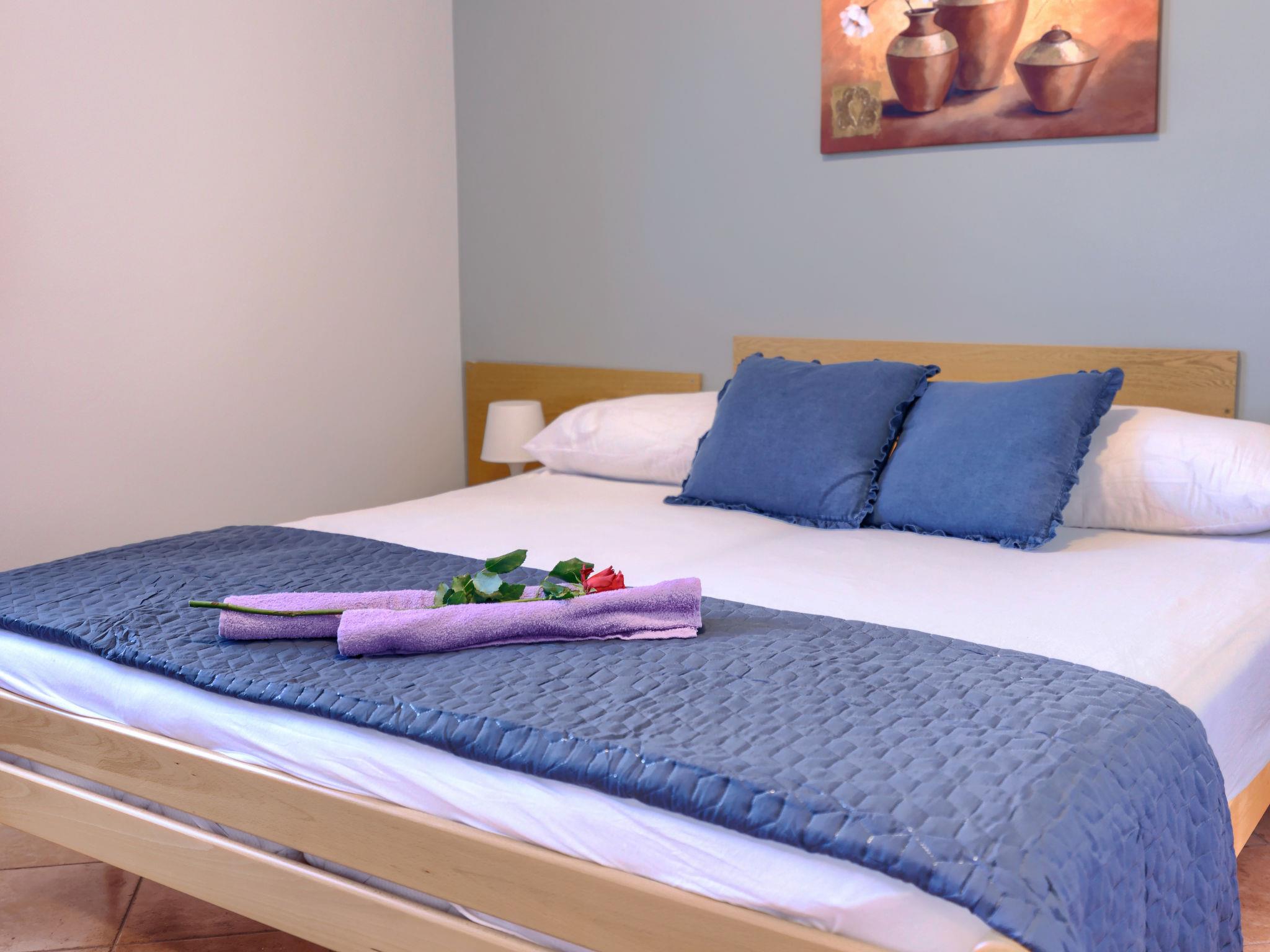 "Gordana", 3-room apartment 50 m2 on 1st floor. Living/dining room with 1 sofabed, satellite TV and air conditioning. Exit to the balcony. 1 room with 2 beds. 1 room with 1 french bed. Kitchenette (oven, 4 ceramic glass hob hotplates, toaster, kettle, freezer, electric coffee machine). Shower/WC. No heating option. Balcony 5 m2. Balcony furniture. View of the swimming pool. Facilities: Internet (WiFi, free). Please note: non-smoking house. The property is one of a type of property or apartment.