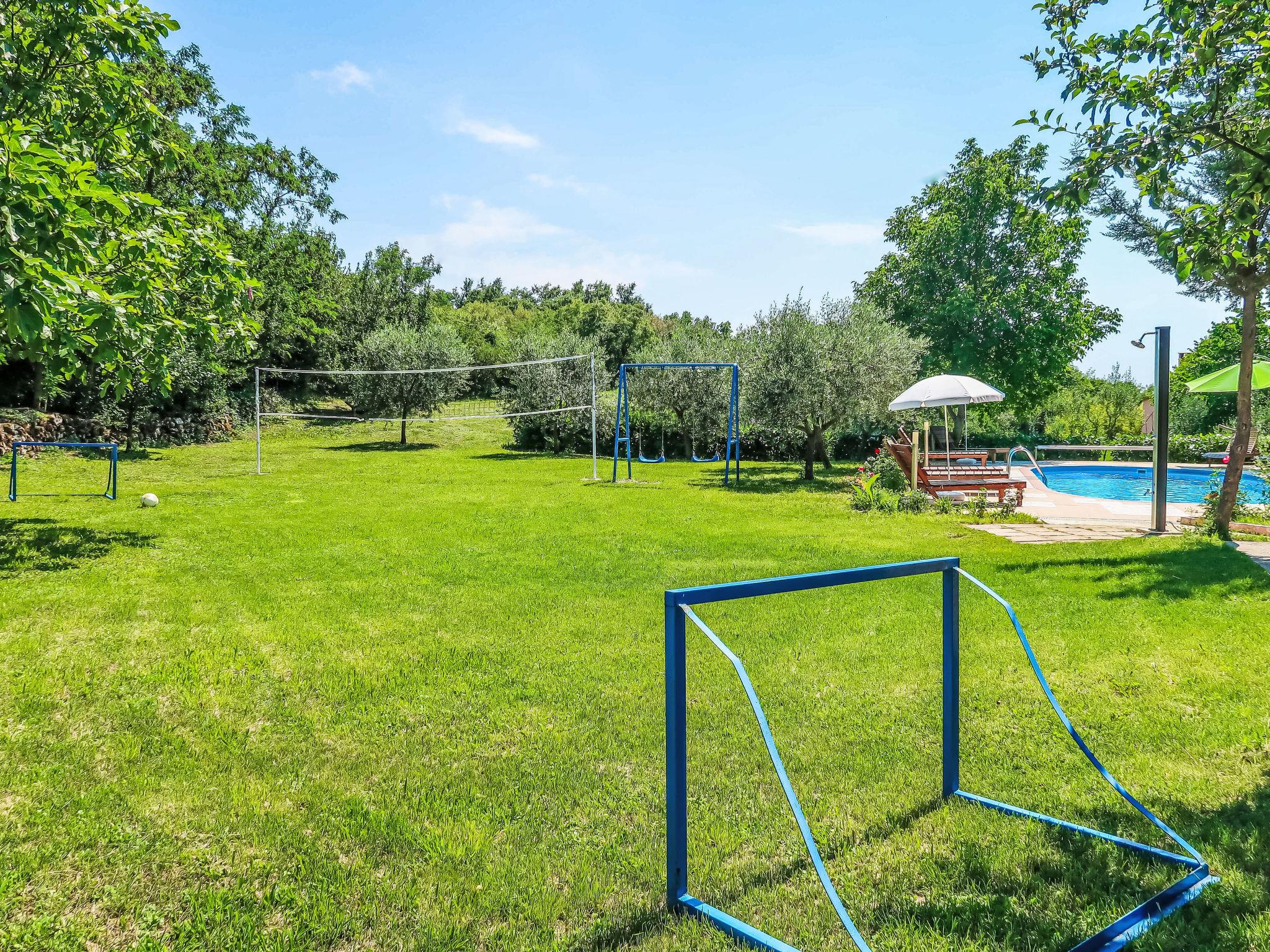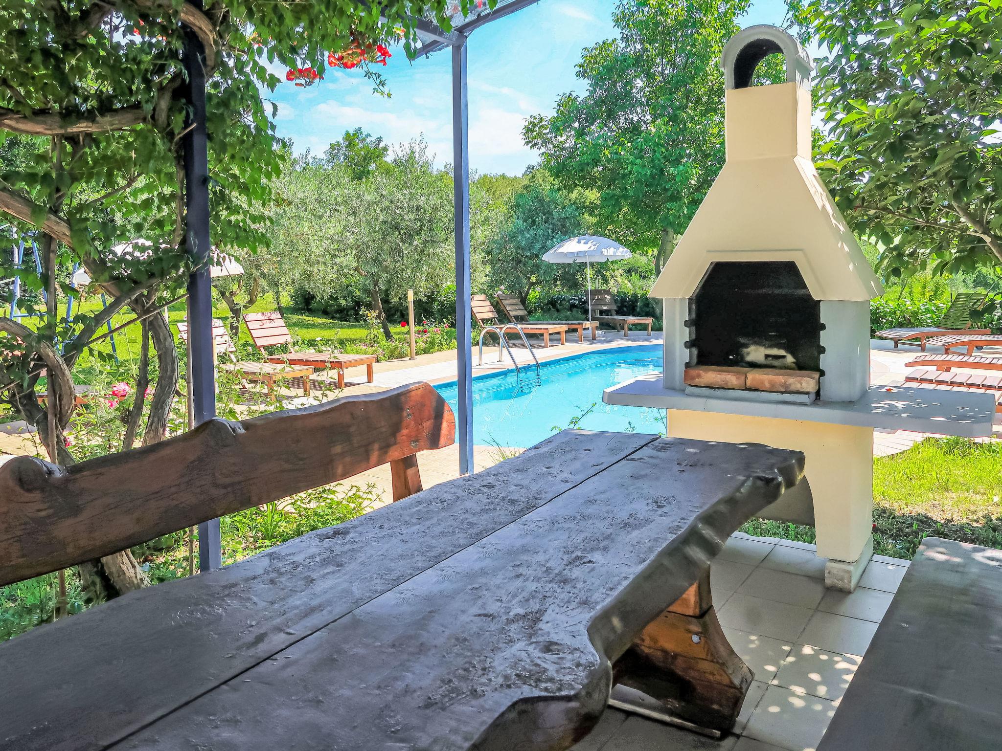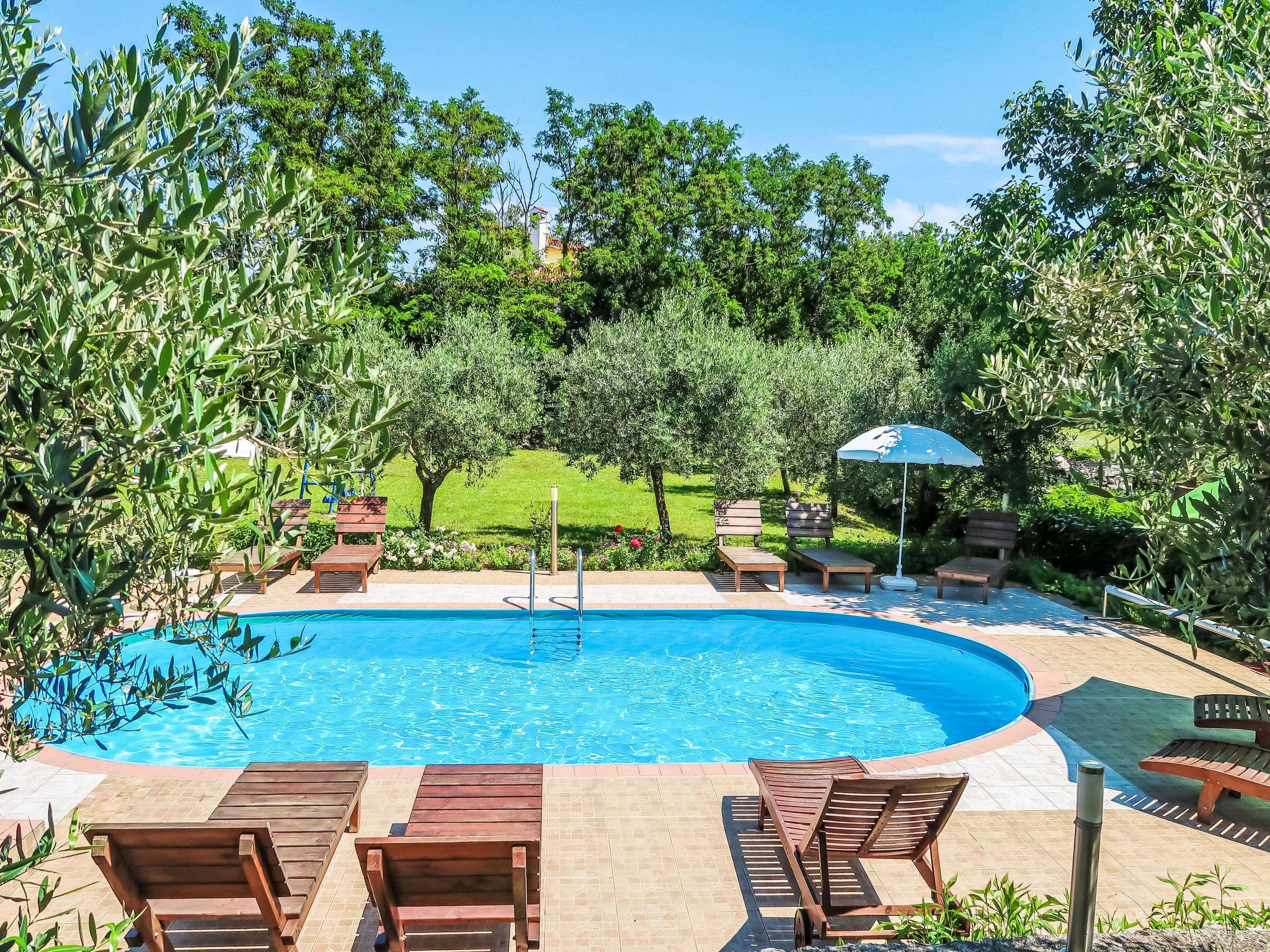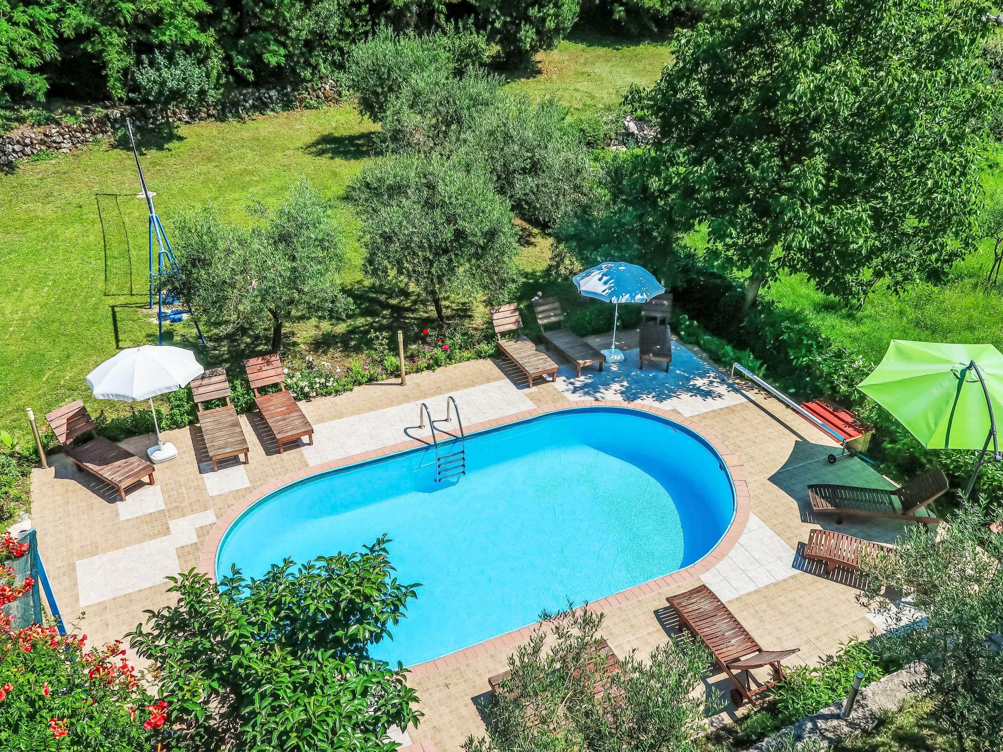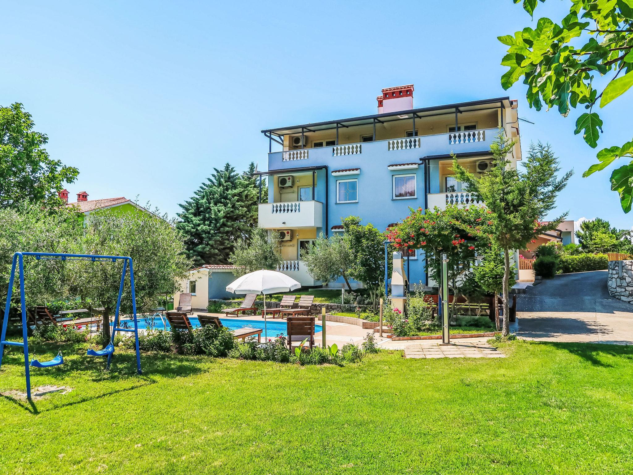 Apartment block "Gordana". In the district of Presika 1 km from the centre of Labin, 5 km from the centre of Rabac, 5 km from the sea, 5 km from the beach. For shared use: property 1'000 m2 with lawn and trees, swimming pool (32 m2, depth 150 cm, seasonal availability: 01.May. - 01.Oct.) with internal staircase. Outdoor shower, volleyball, badminton, terrace, garden furniture, barbecue (swing), pool maintenance by the owner/gardener. In the house: internet access, washing machine (for shared use, extra). Parking on the premises. Shop 800 m, supermarket 2 km, restaurant 2 km, bus stop 1.9 km, pebble beach 5 km, rocky beach 5 km. Marina 5 km. Please note: Additional accommodations can be booked.