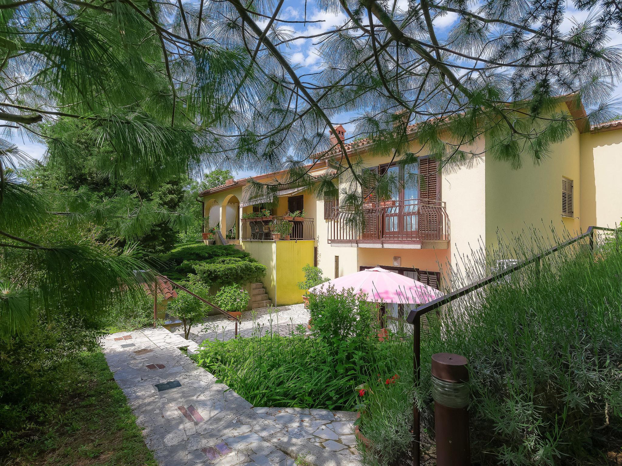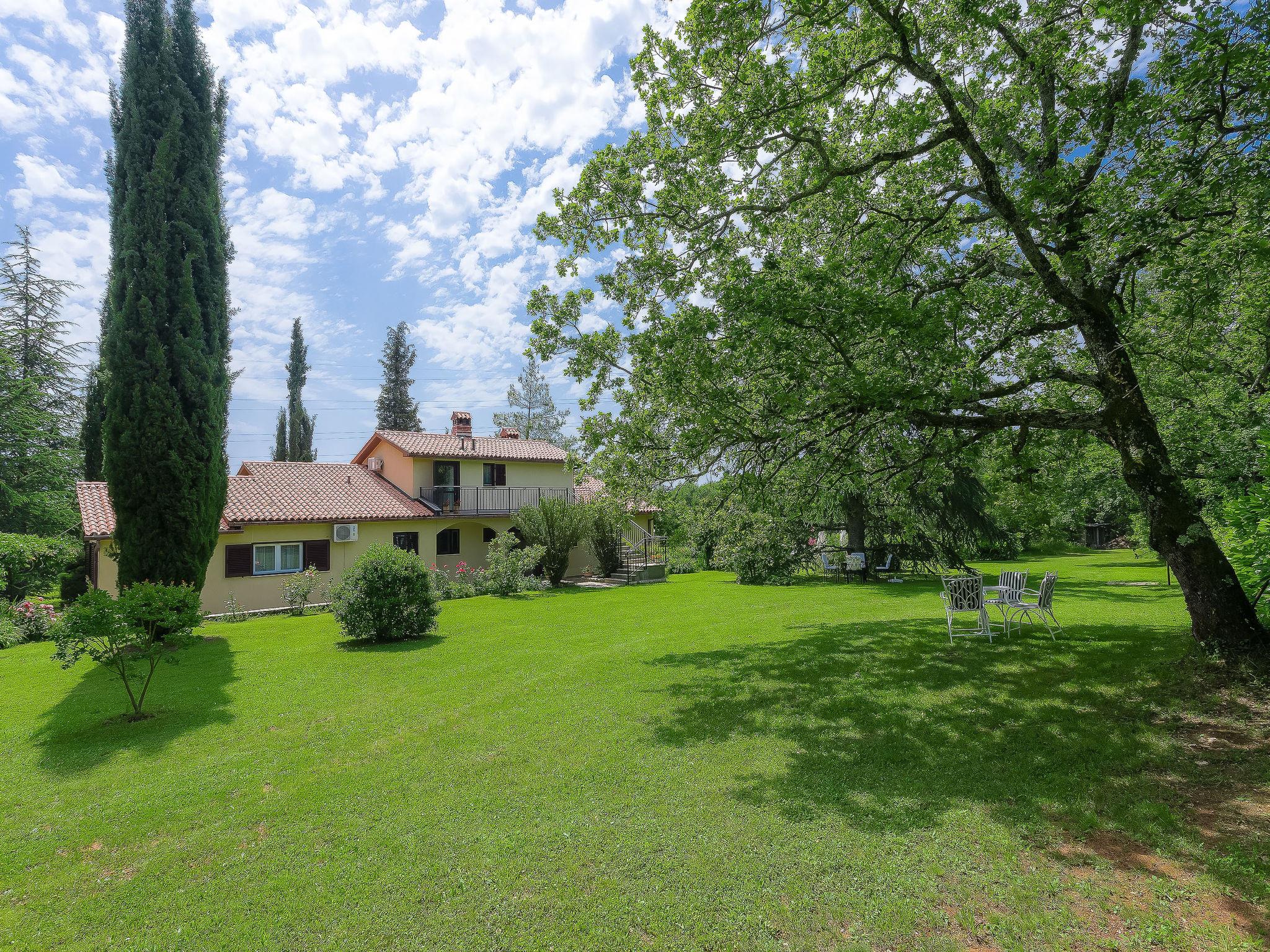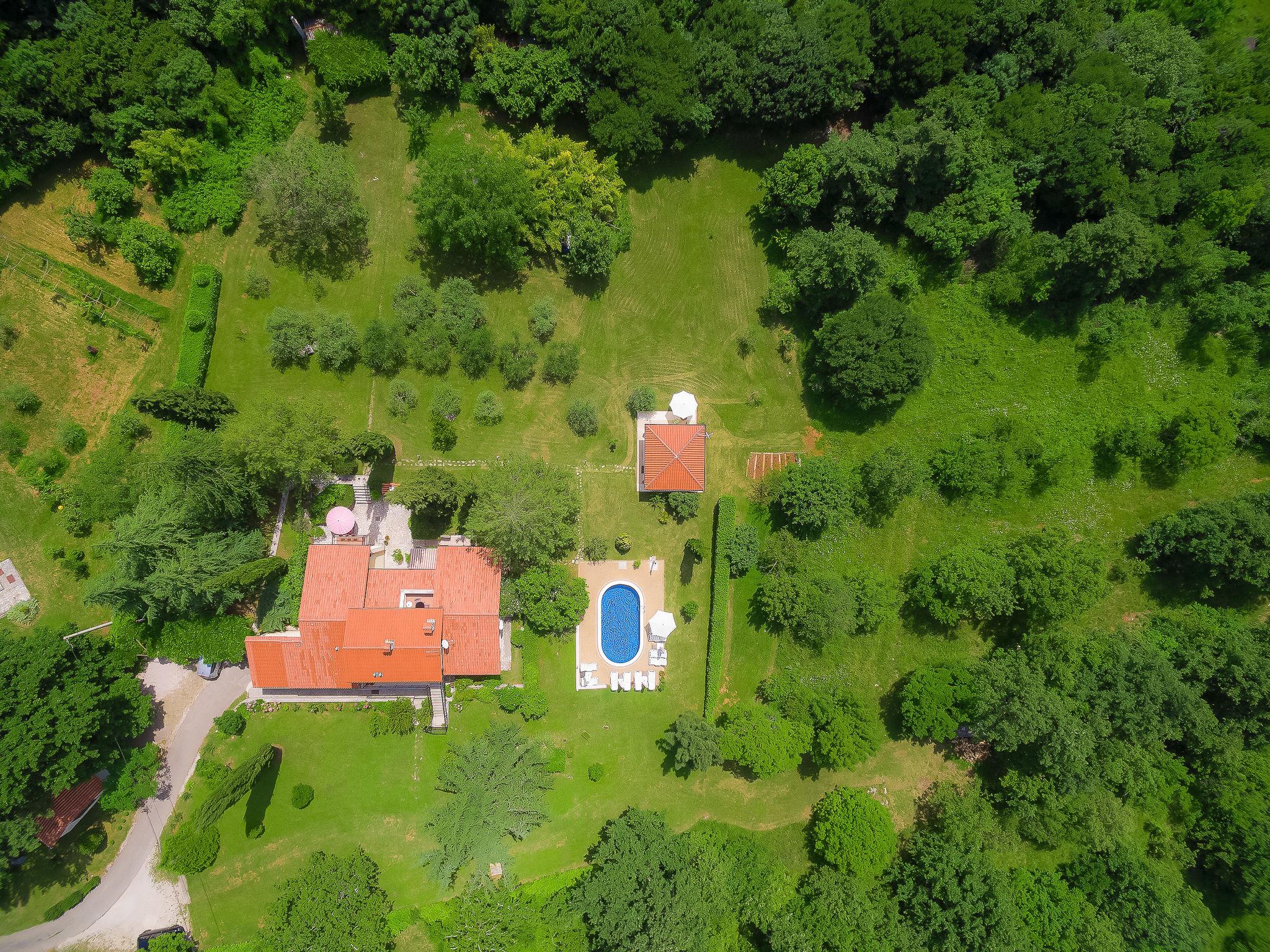 Marceljani 3 km from Labin: Child friendly, beautiful apartment house "Mariza", surrounded by trees. In a quiet, sunny position, 8 km from the sea, in the countryside. For shared use: property 5'000 m2, large garden with plants and trees, lawn for sunbathing, swimming pool (8 x 4 m, depth 140 cm, seasonal availability: 04.May. - 14.Sep. pool opening hours: 08:00-20:00). Outdoor shower, barbecue. In the house: internet access. Parking at the house on the premises. Shop 2 km, restaurant 3 km, bus stop 3.6 km, pebble beach 8 km. Please note: Property ref. HR2880.406.1 is situated on the same property.