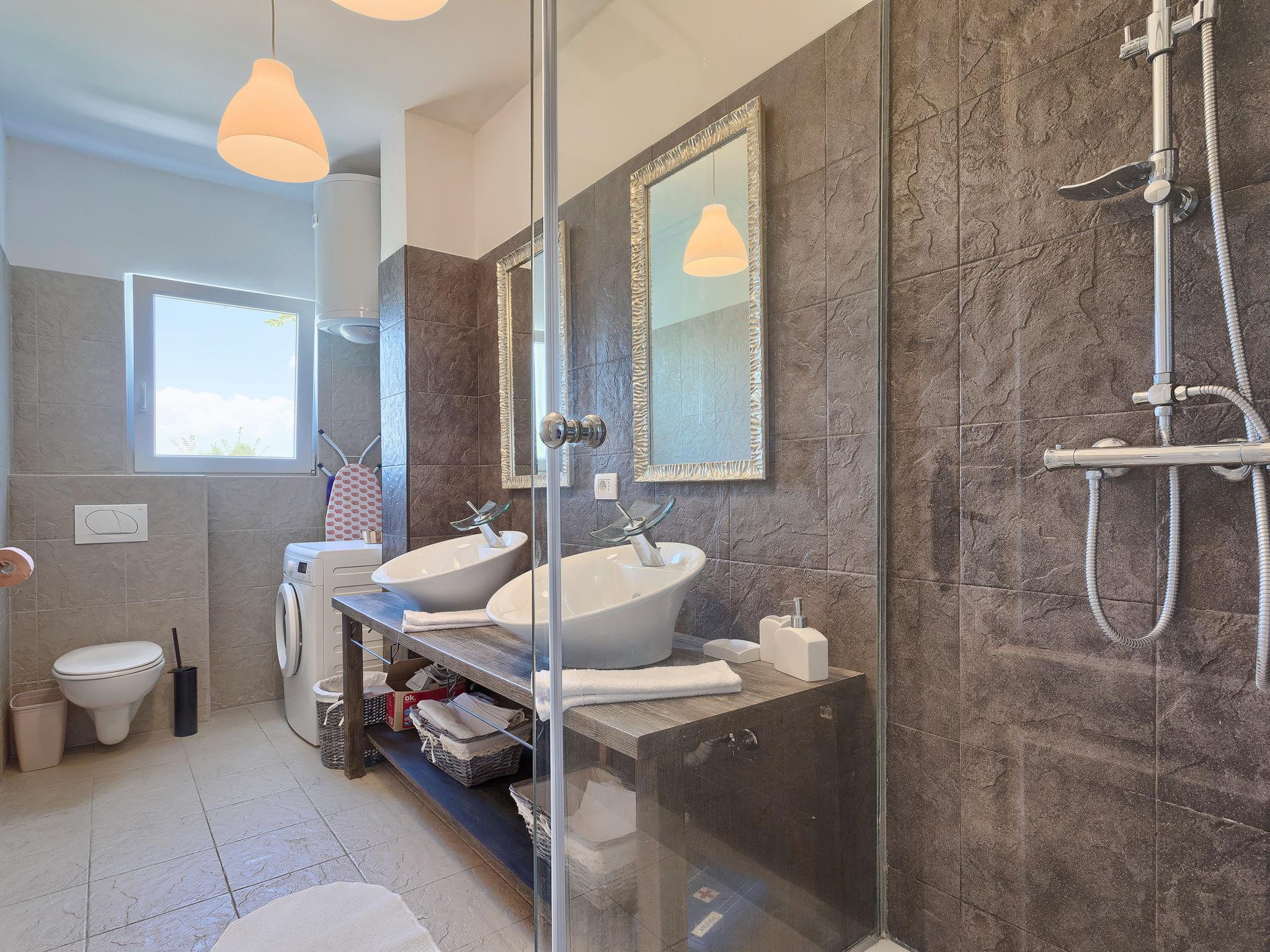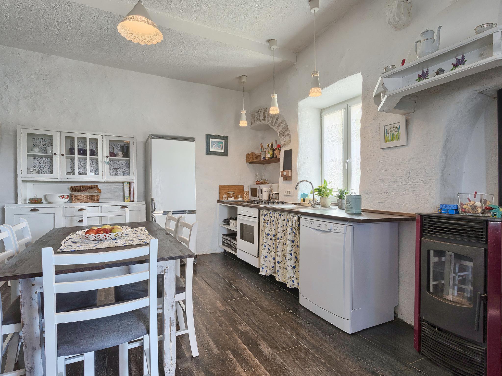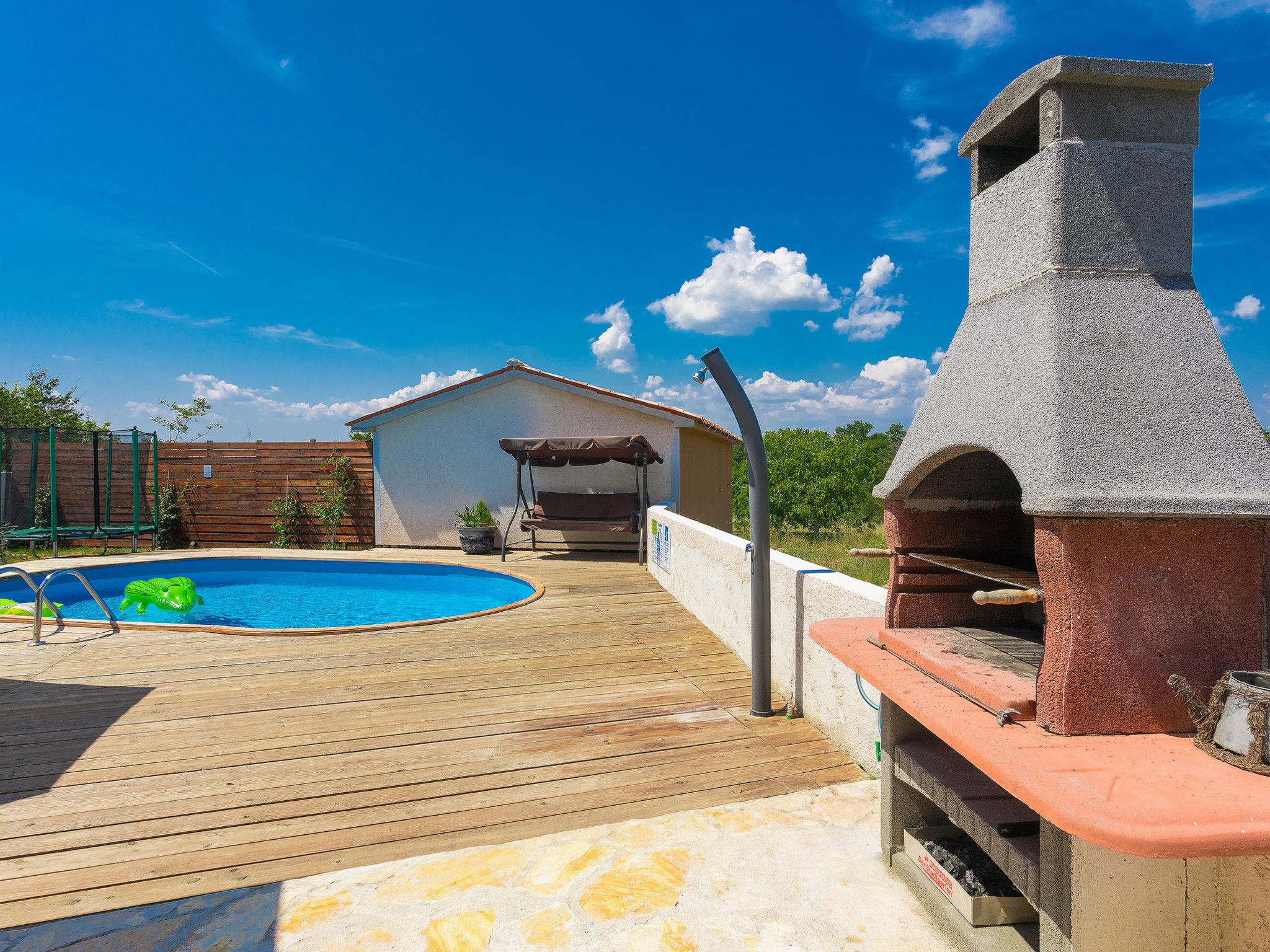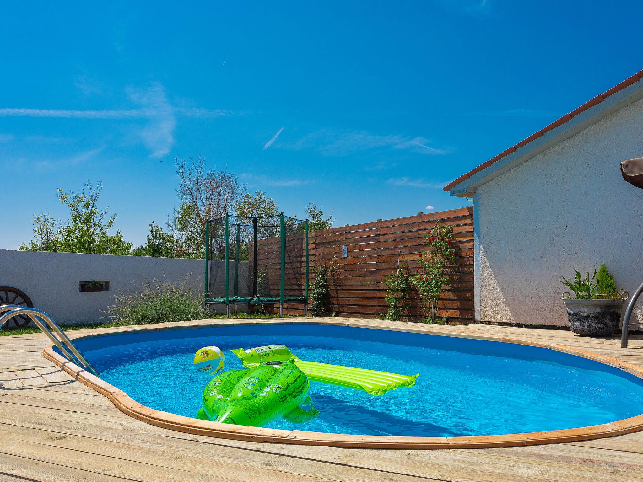Salakovci 4 km from Labin: Beautiful semi-detached house "Stefanina", 2 storeys, built in 1930, renovated in 2017. In a hamlet with 4 houses, in a quiet, sunny position, 7 km from the sea. Private: property 150 m2 (fenced), small garden with lawn, swimming pool (6 x 4 m, depth 120 cm, seasonal availability: 01.Jun. - 28.Sep.). Outdoor shower, barbecue, children's playground (slide, swing). In the house: internet access, washing machine. Parking (for 2 cars) at the house on the premises. Shop 6 km, restaurant 5 km, bus stop 4.3 km, pebble beach 7 km. Tennis 11 km, walking paths from the house 100 m, cycle lane 150 m.