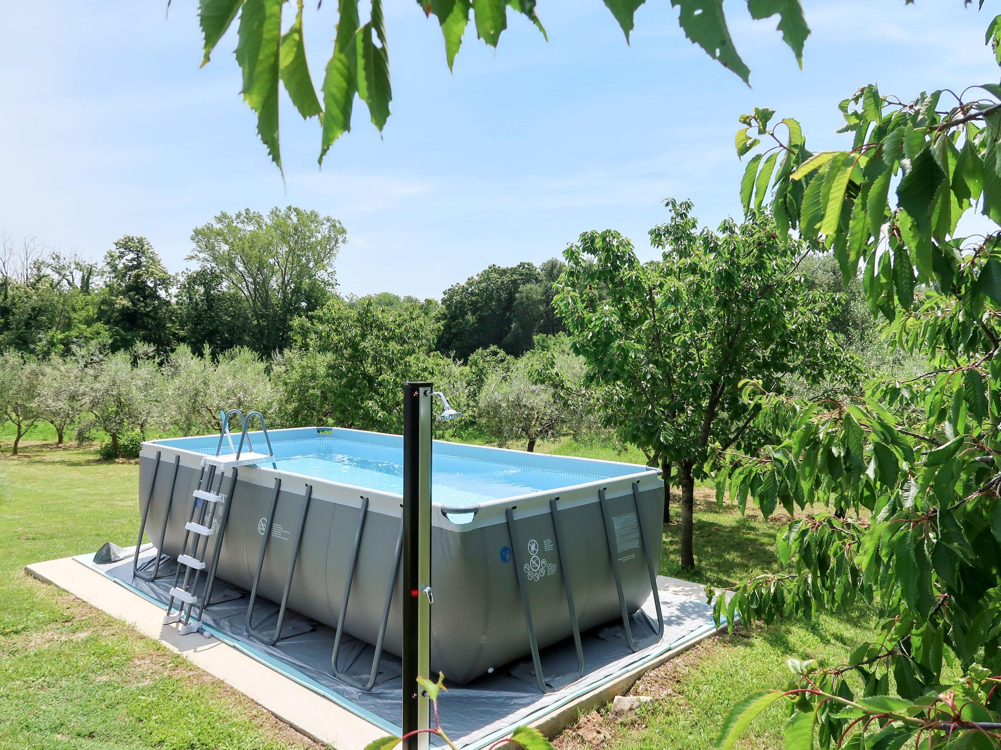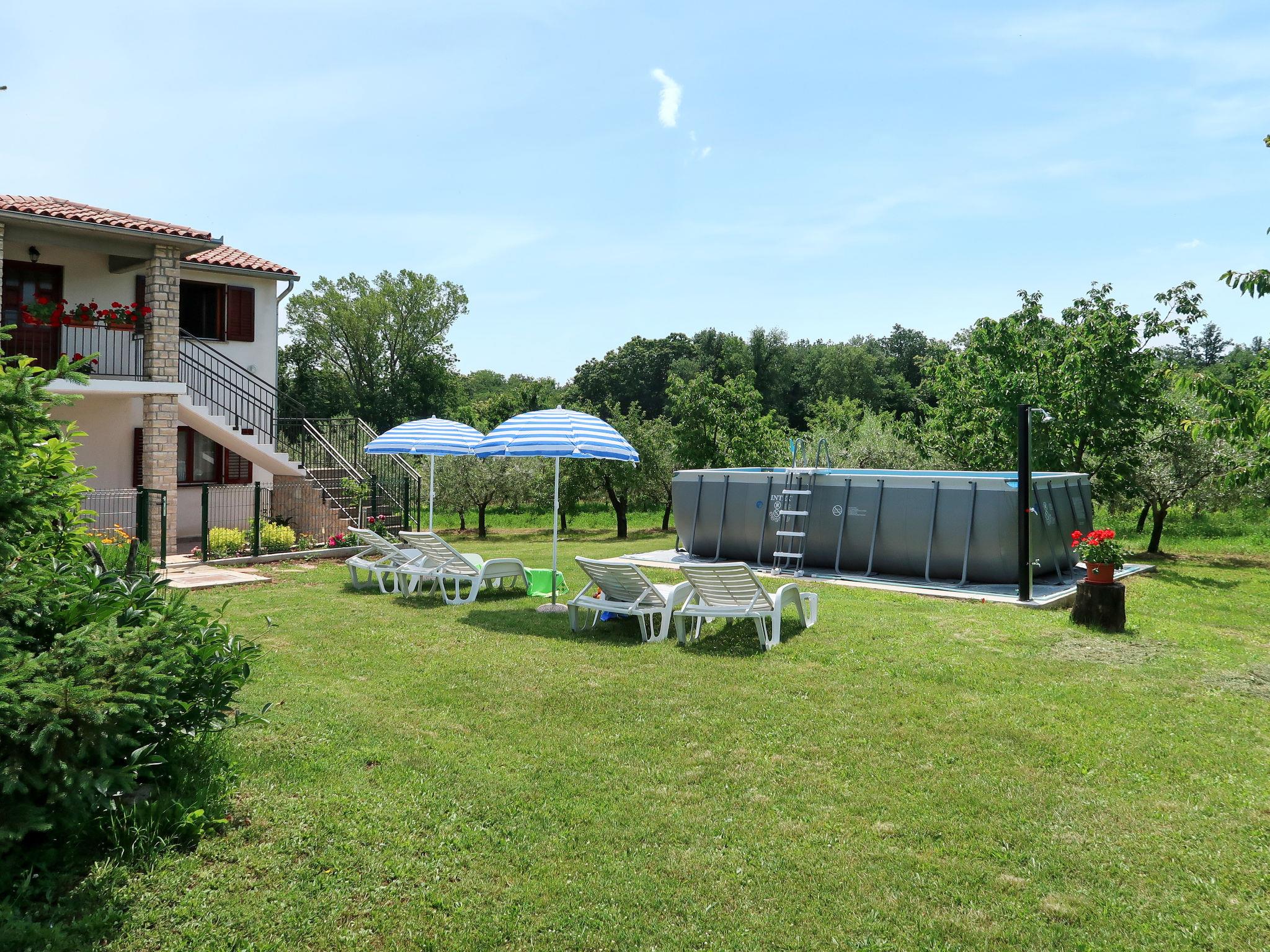 Single-family house "Fortica". In the hamlet Županici 6 km from the centre of Labin, 12 km from the centre of Rabac, 12 km from the sea. Private: property 5'000 m2 with trees, meadow, swimming pool (above ground) (5 x 2 m, 16 m2, depth 130 cm, seasonal availability: 18.May. - 08.Oct.). Outdoor shower, garden furniture. In the house: internet access. Motor access to the house (800 m via unmade road). Parking (for 2 cars) on the premises. Shop 1 km, supermarket 6 km, bus stop 6 km, pebble beach 12 km. Please note: part of the house is closed and unoccupied. Animals in the neighbourhood.