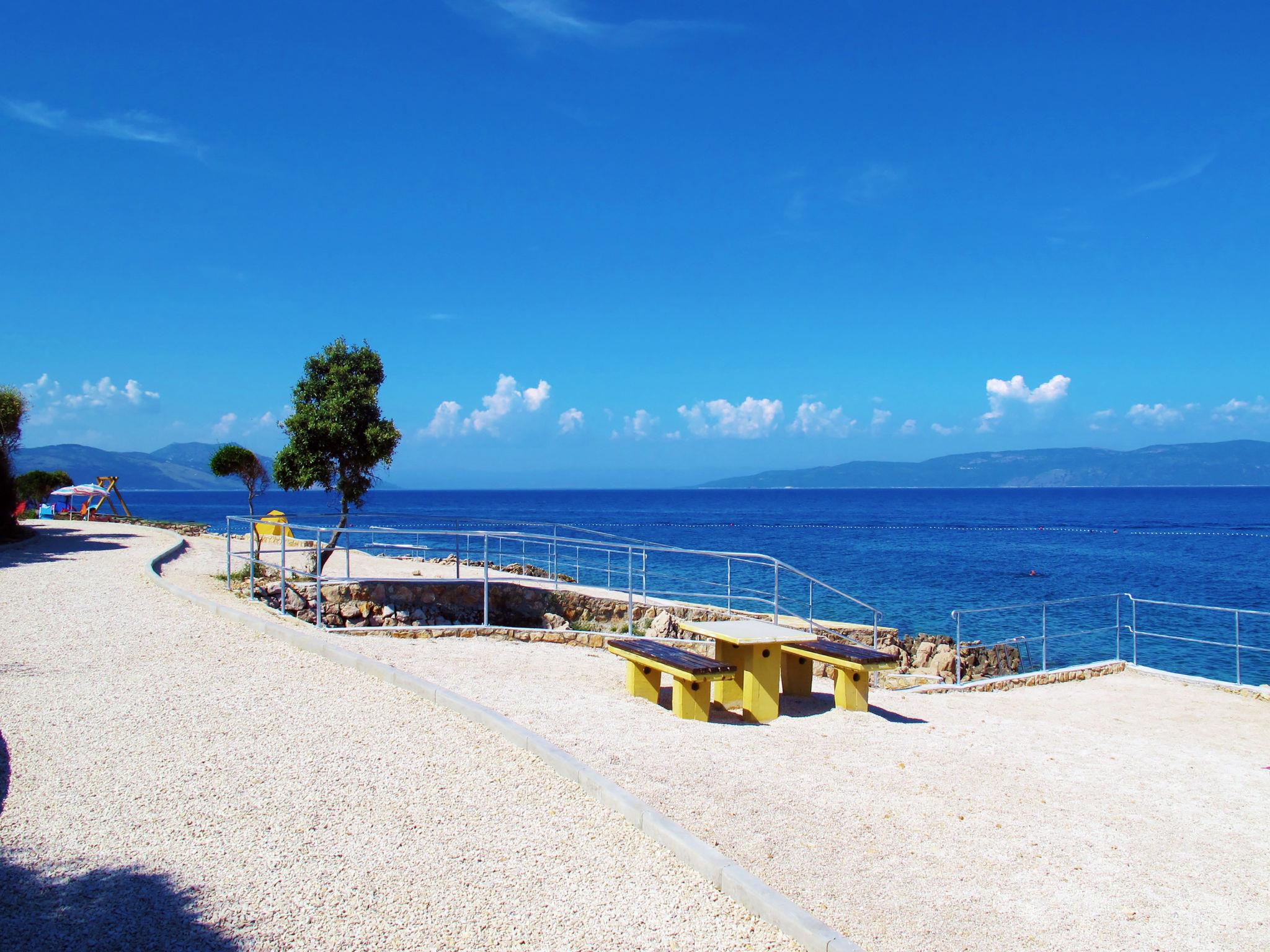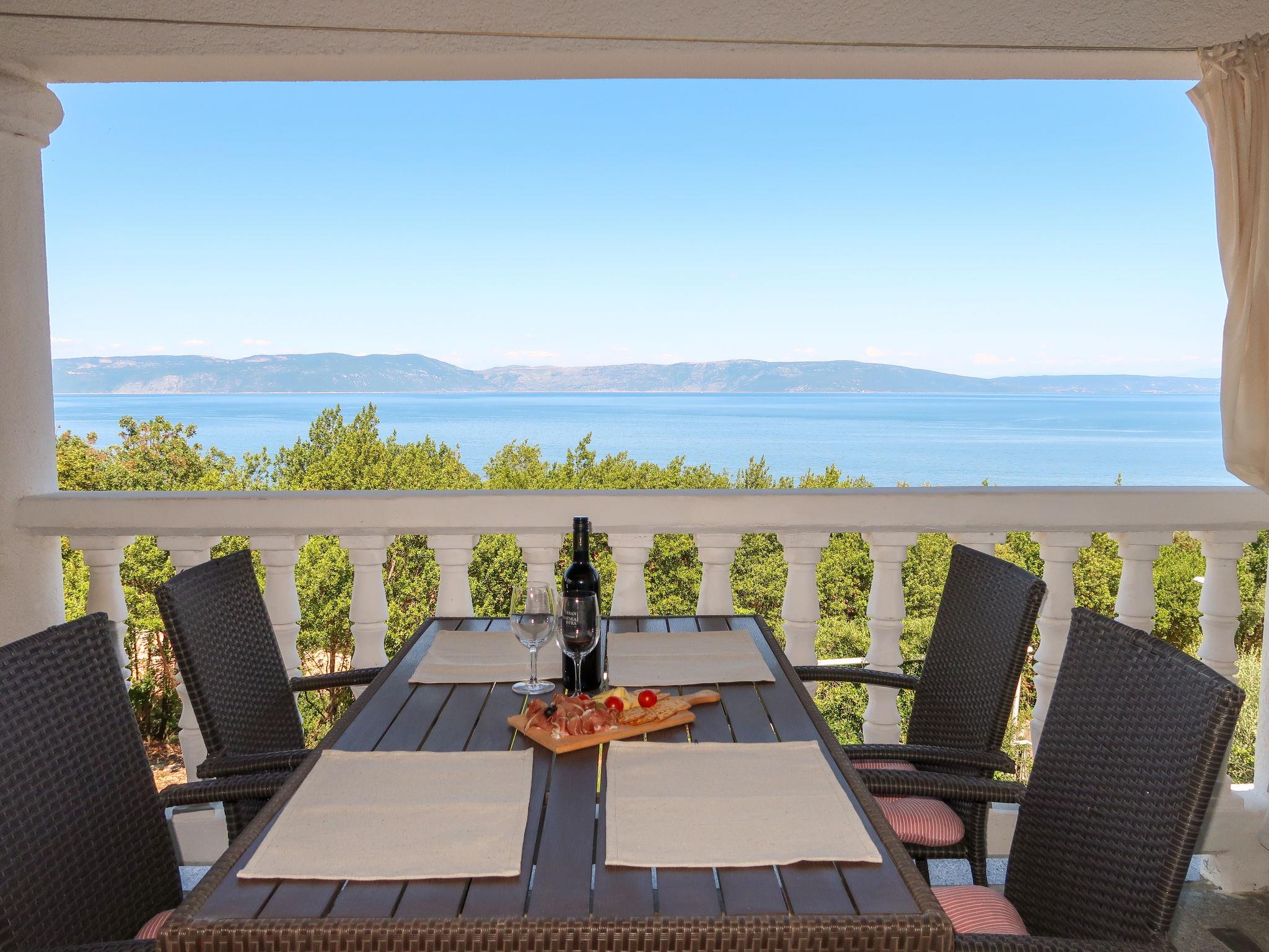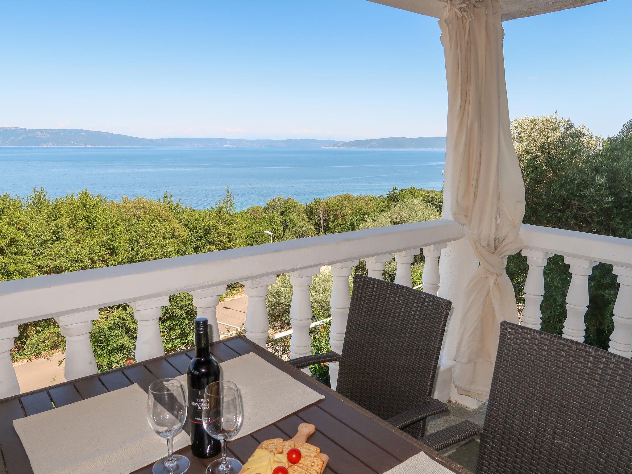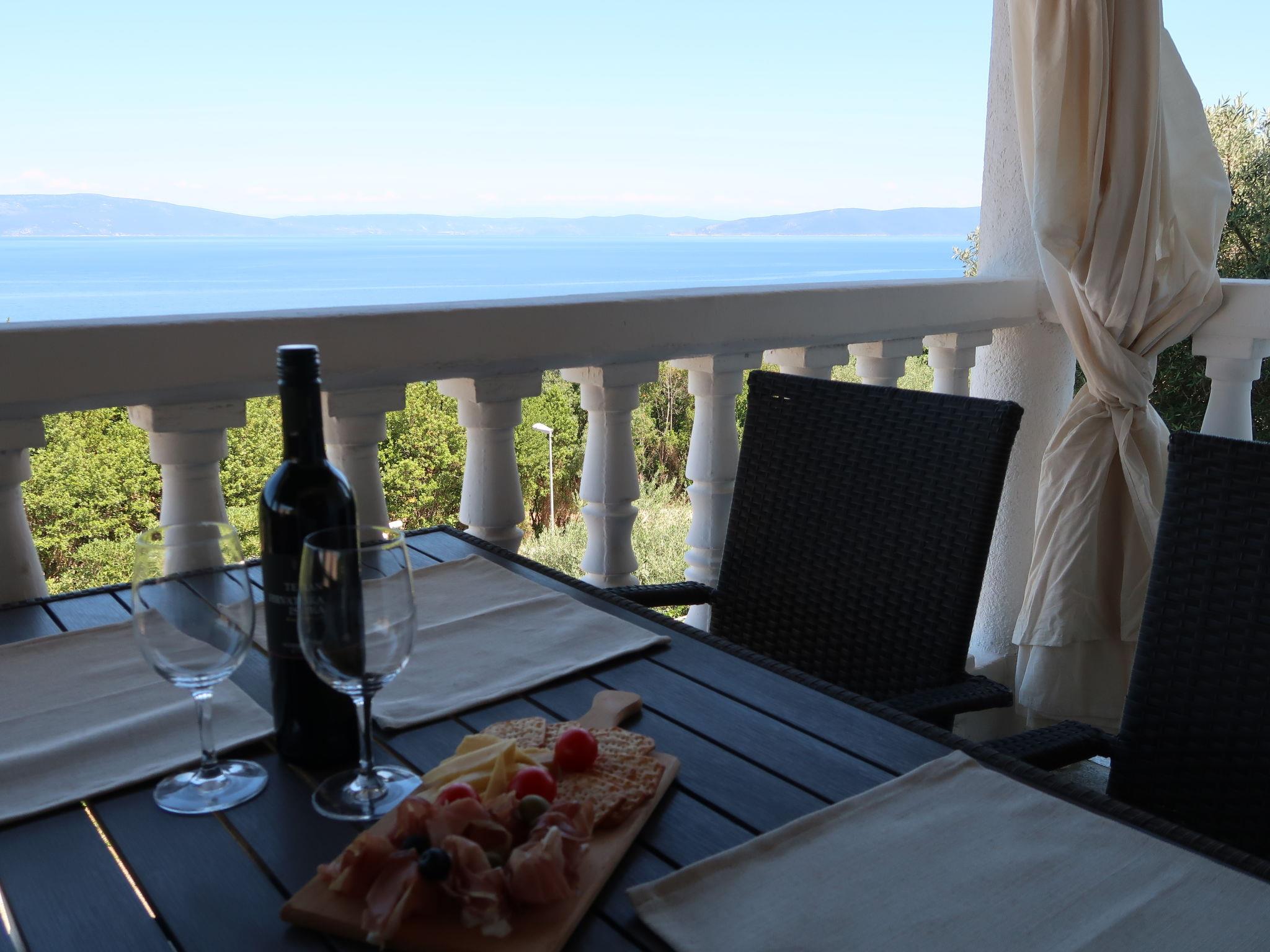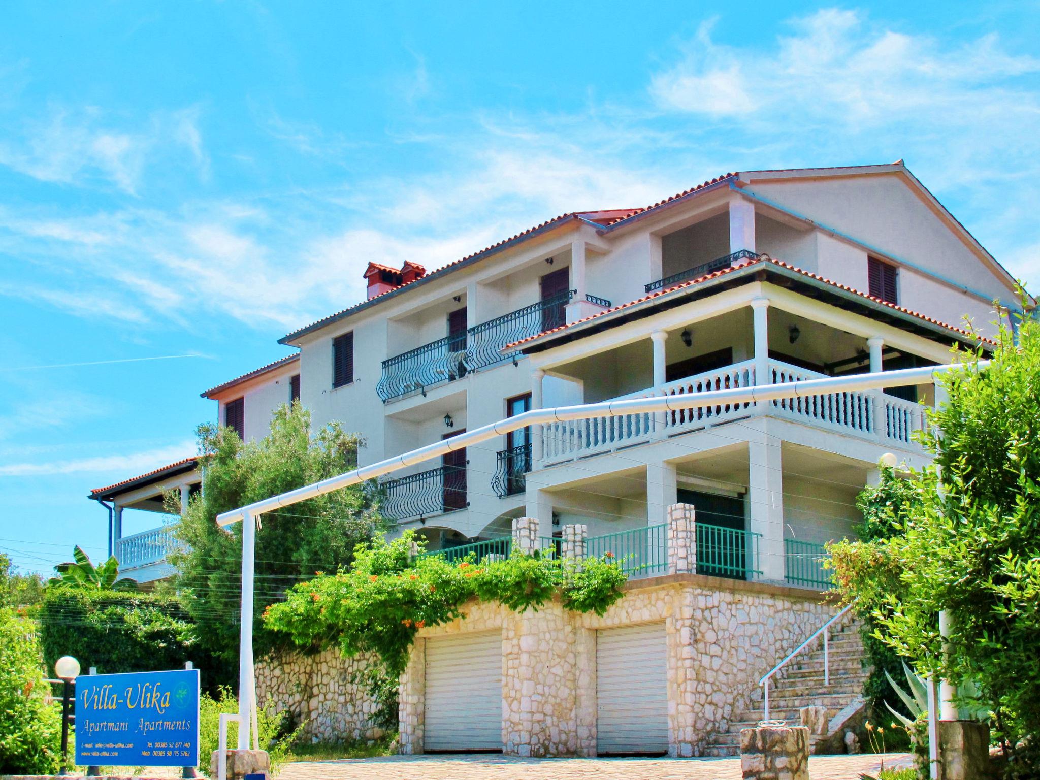 "Ulika", 3-room apartment 60 m2 on 1st floor. Living/sleeping room with 1 bed, 1 pull-out bed and satellite TV. Exit to the balcony. Entrance hall with air conditioning. 1 room with 2 beds. 1 room with 1 french bed (160 cm, length 200 cm). Open kitchen (2 hot plates, dishwasher, 2 gas rings, toaster, kettle, microwave, freezer, electric coffee machine) with dining table. 2 showers/WC. No heating option. Balcony 30 m2. Balcony furniture, deck chairs. View of the sea. Facilities: washing machine, iron. Internet (WiFi, free). Please note: non-smoking house. Maximum 2 pets/ dogs allowed. Private entrance.