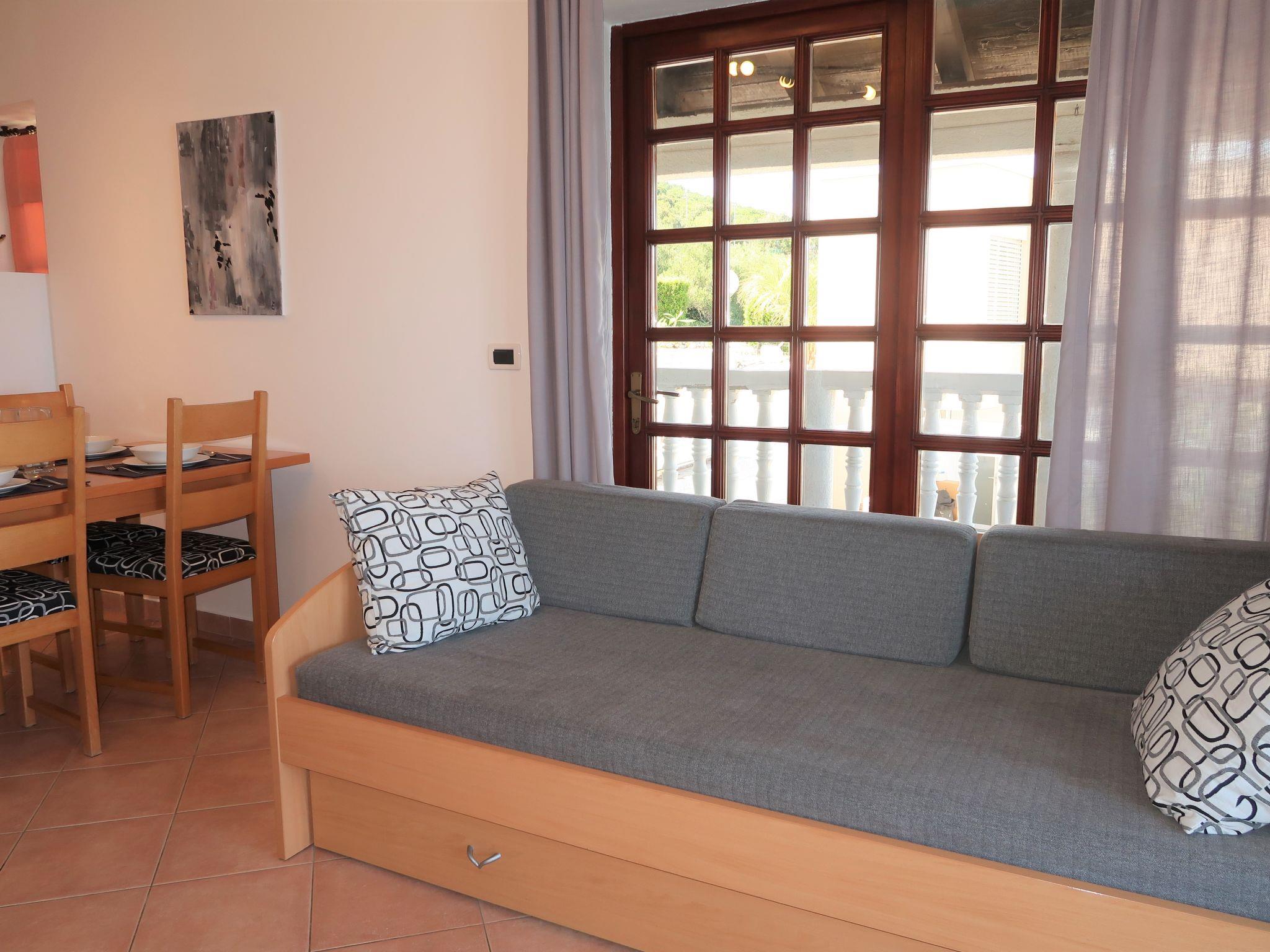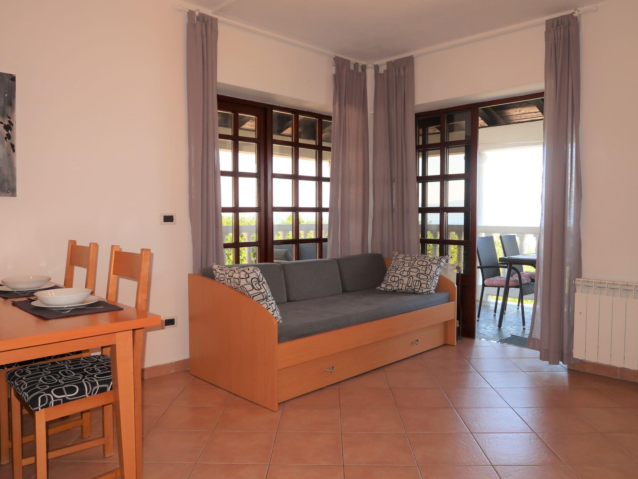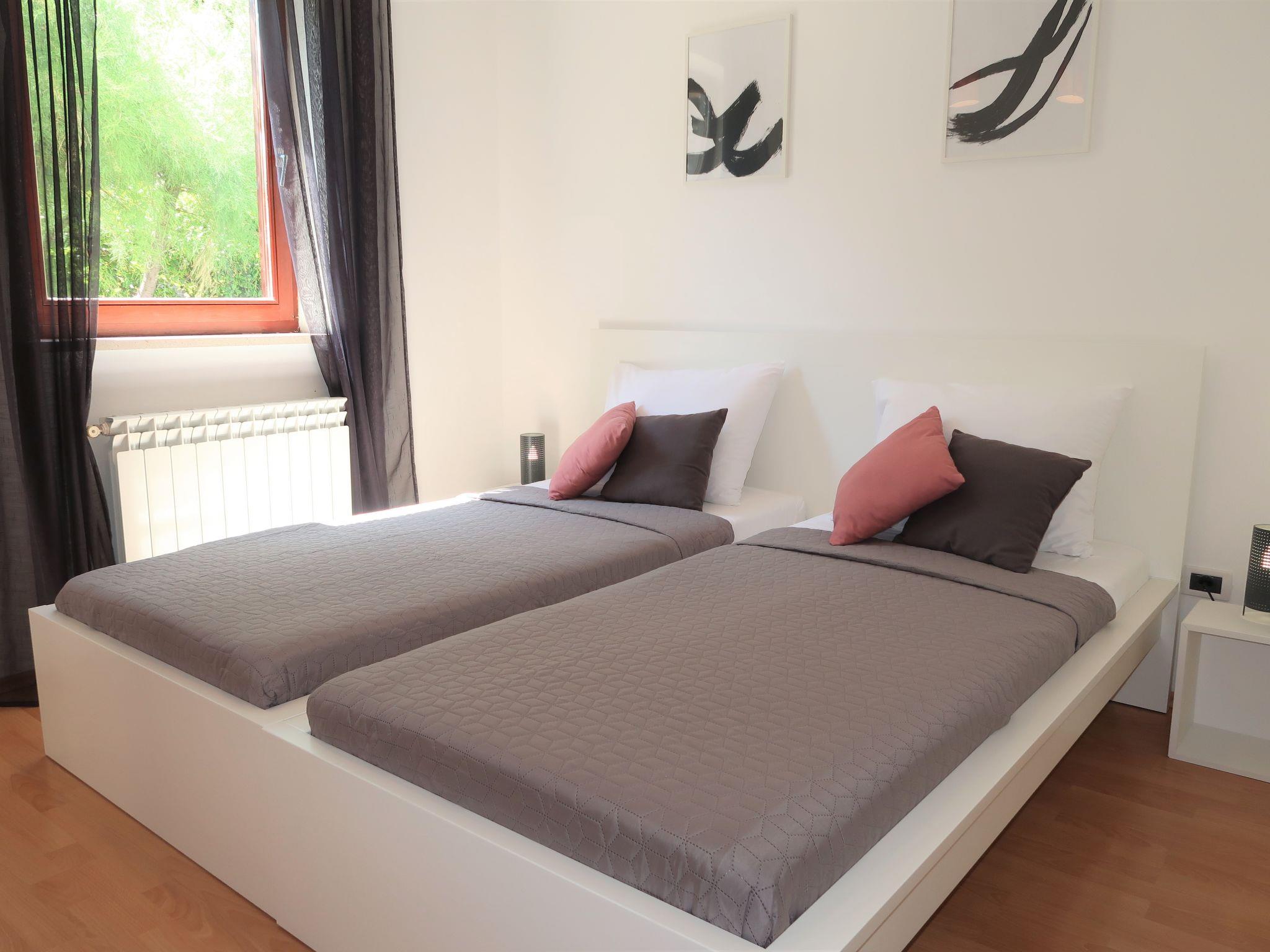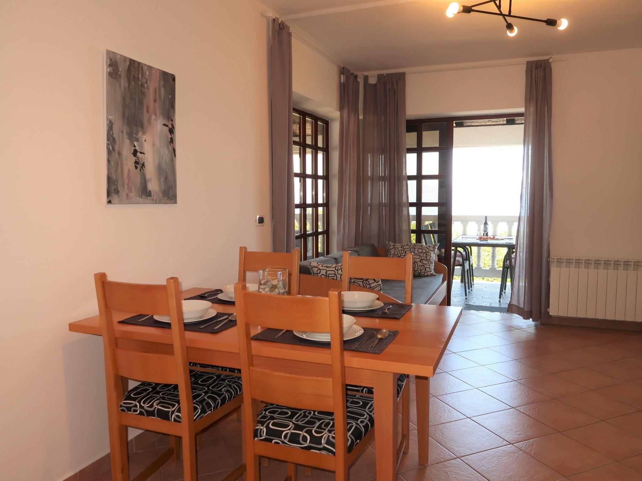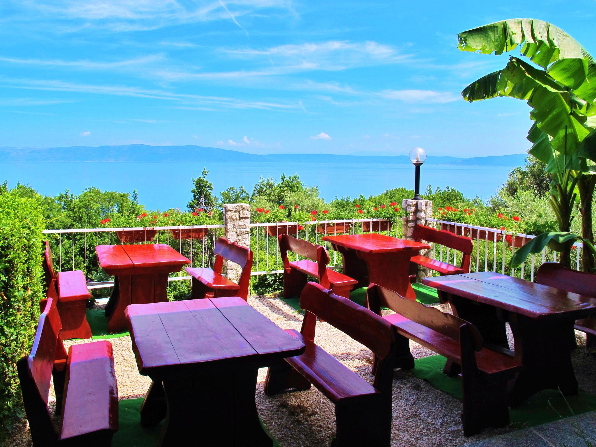 Apartment block "Ulika". 50 m from the centre of Ravni, 12 km from the centre of Labin, 400 m from the sea, 400 m from the beach. For shared use: property 1'100 m2 with plants and flowers. Terrace, garden furniture, barbecue. In the house: internet access. Parking on the premises. Shop 400 m, restaurant 200 m, bus stop 12 km, pebble beach 400 m. Tennis 100 m. Please note: the owner lives in the same residence. On the ground floor:pizzeria.