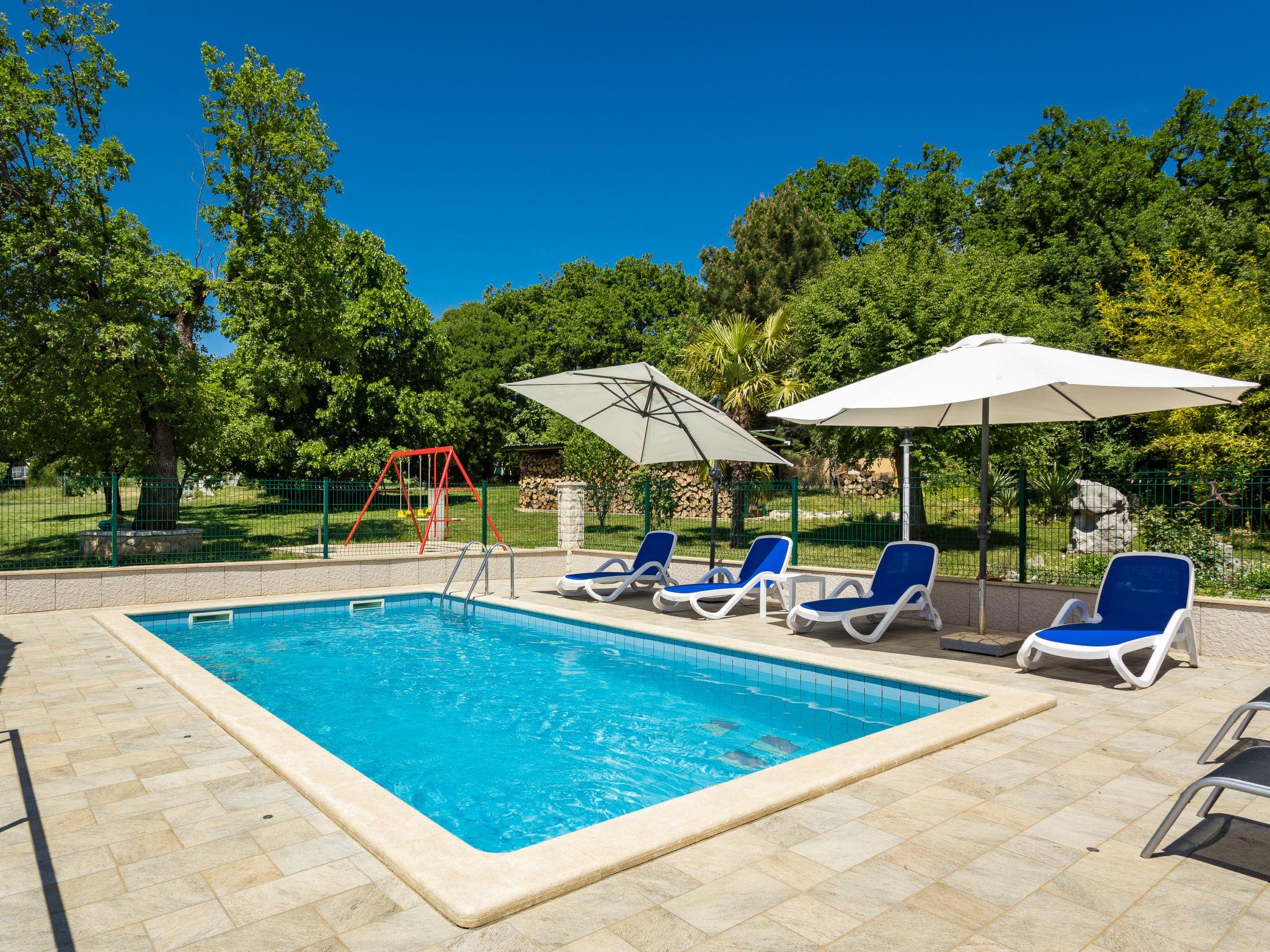 Semi-detached house "Verbanac", 2 storeys. 1.5 km from the centre of Vinez, 2.5 km from the centre of Labin, 7 km from the centre of Rabac, 7 km from the sea. For shared use: property 10'000 m2 with lawn and trees. Private: property 5'000 m2 with lawn and trees, swimming pool (7 x 3 m, 26 m2, depth 135 cm, seasonal availability: 08.May. - 09.Oct.). Outdoor shower, table tennis, badminton, terrace, barbecue (swing), pool maintenance by the owner/gardener. In the house: internet access, washing machine. Parking (for 3 cars) on the premises. Shop 1 km, supermarket 2 km, bus stop 3.1 km, pebble beach 7 km. Marina 7 km. Part of the house is closed and unoccupied.