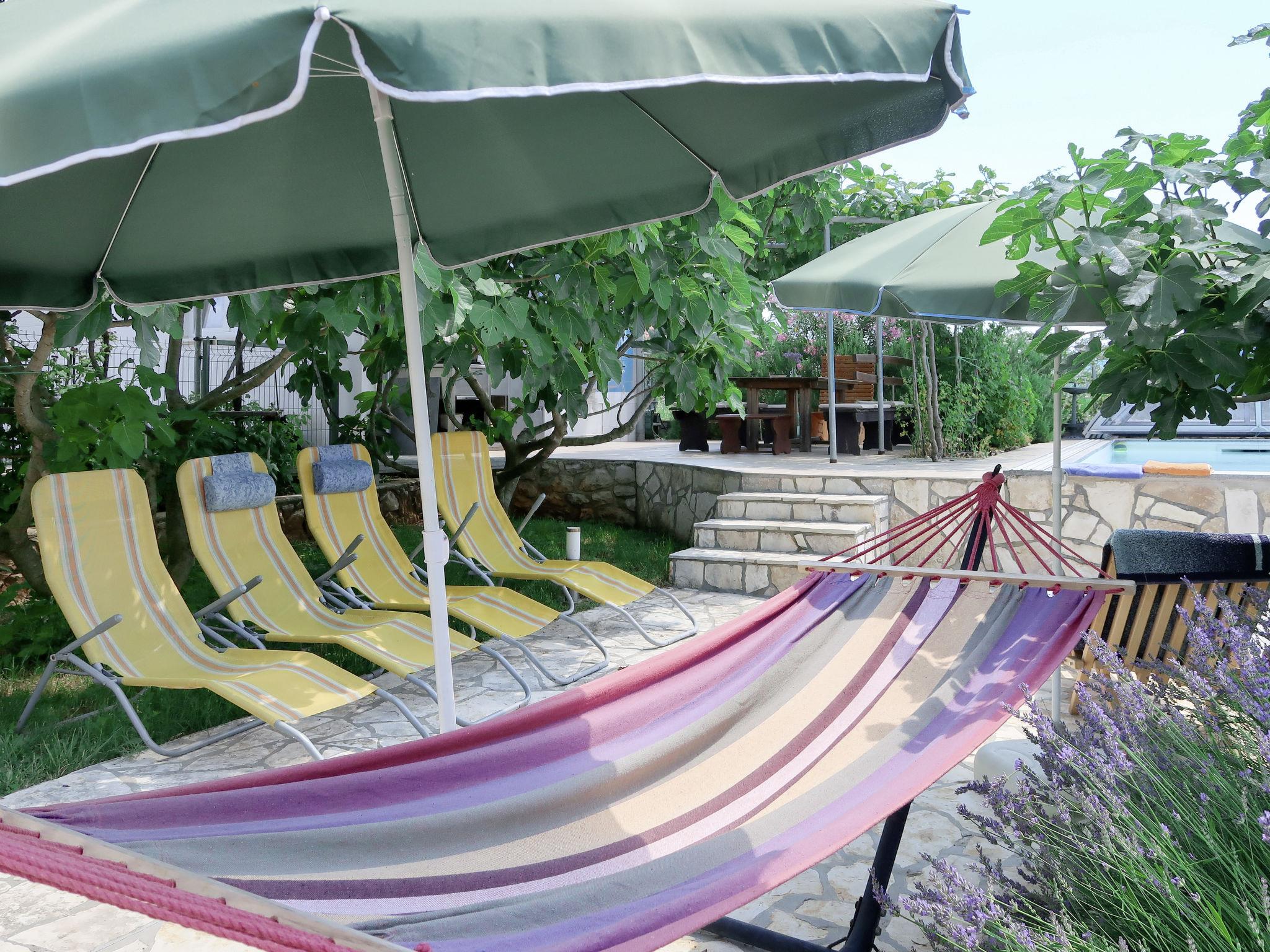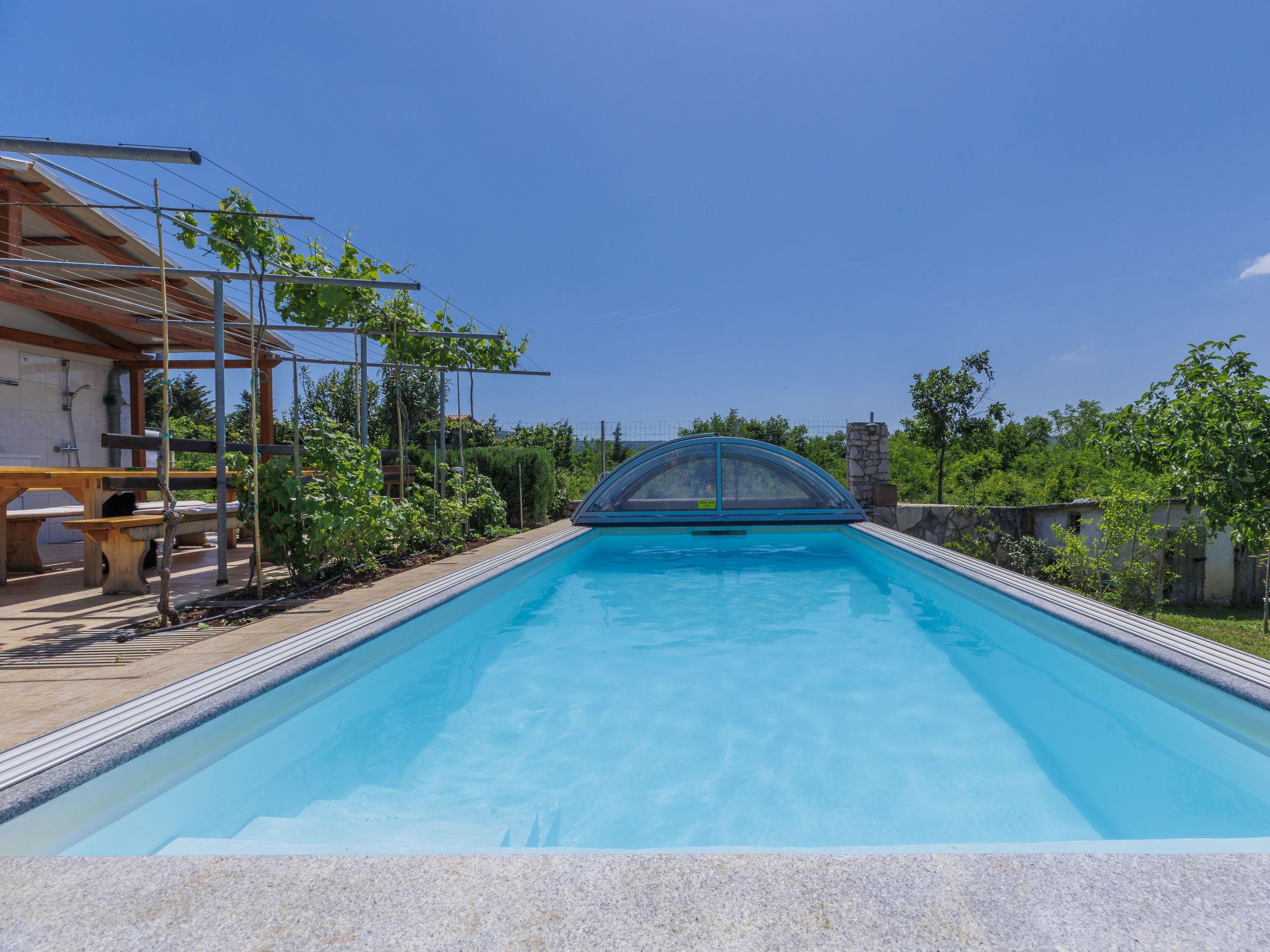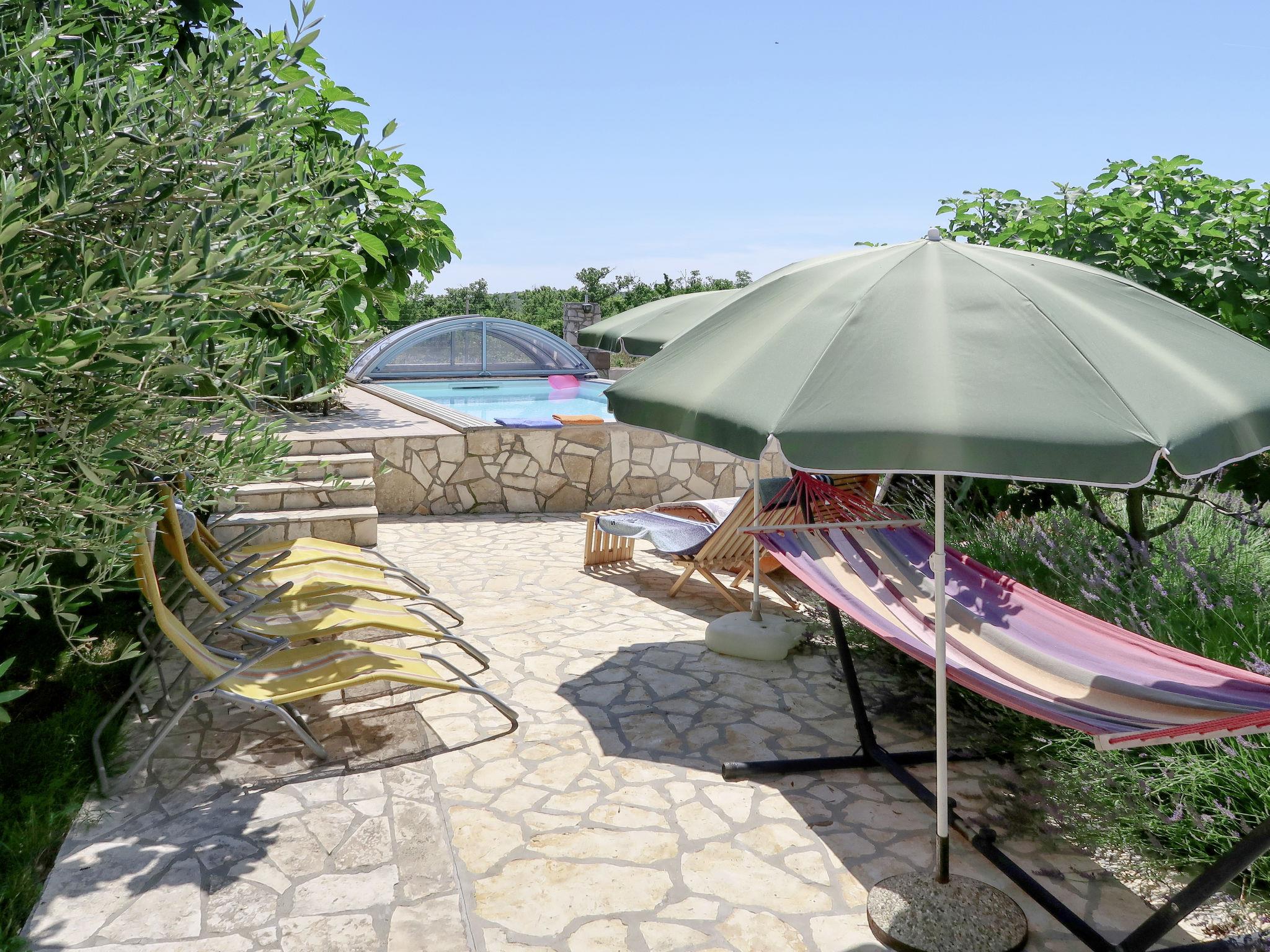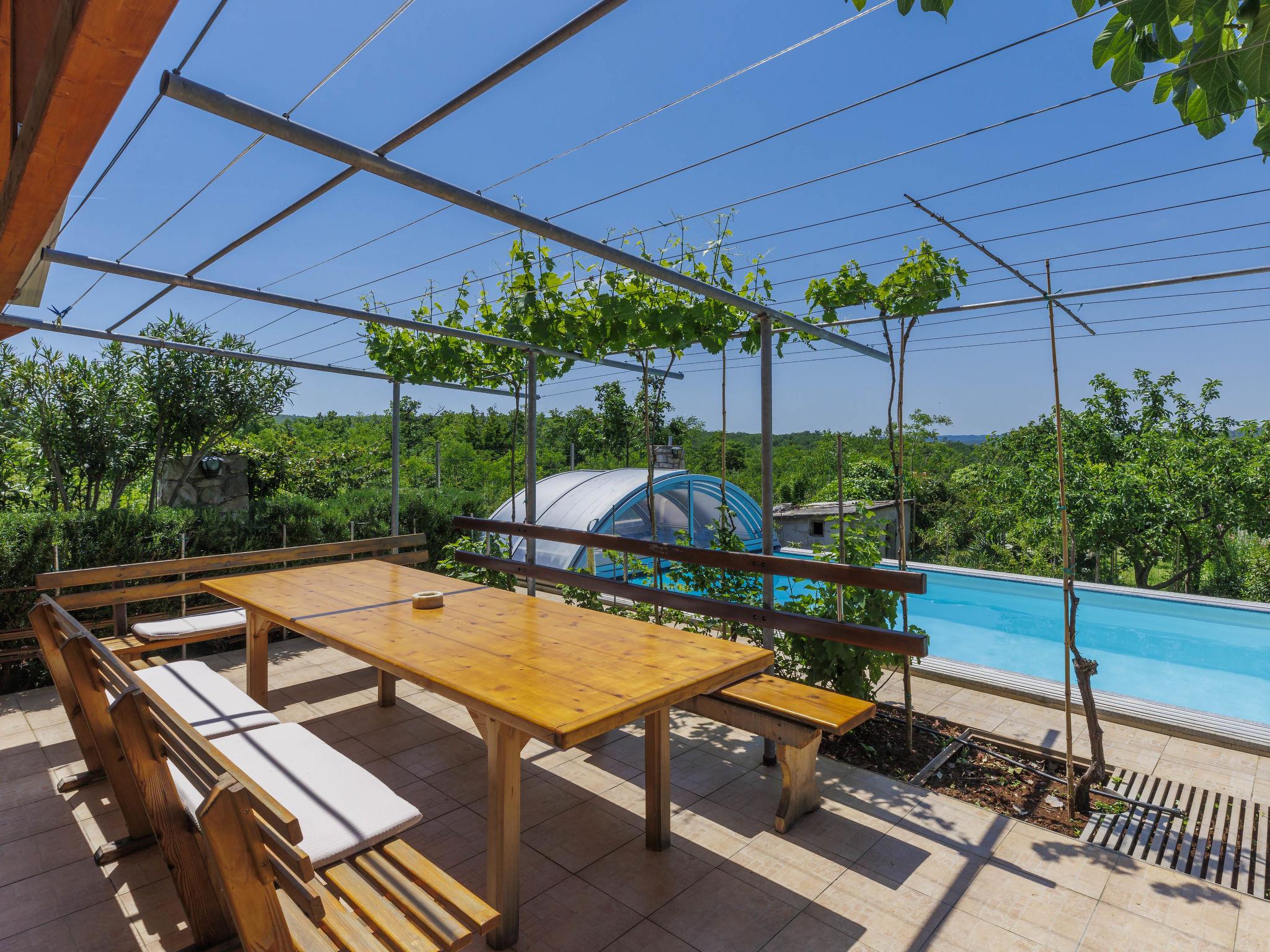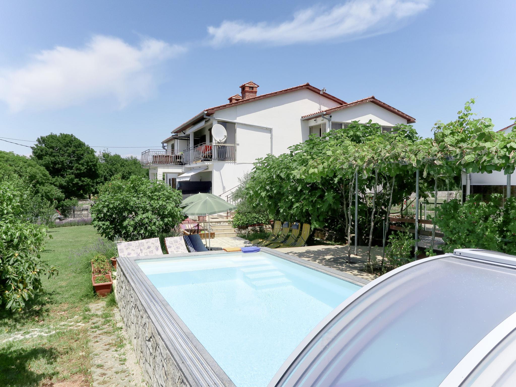 2-family house "Laura". In the hamlet Kapelica 2 km from the centre of Labin, 7 km from the sea. For shared use: property 1'000 m2 with trees, meadow. Private: swimming pool angular, heated (7 x 3 m, 24 m2, depth 140 cm, seasonal availability: 04.Apr. - 06.Nov.) with internal staircase and shutter cover. WC in the pool area, outdoor shower, terrace, garden furniture, barbecue. In the house: internet access, sauna, hot tub. Roofed, parking (for 2 cars) at the house on the premises. Shop 500 m, bus stop 3.7 km, pebble beach 7 km, rocky beach 7 km. Marina 7 km. Please note: airfield 45 km from the property. Private: outdoor kitchen (hobs, oven, dishwasher, refrigerator).