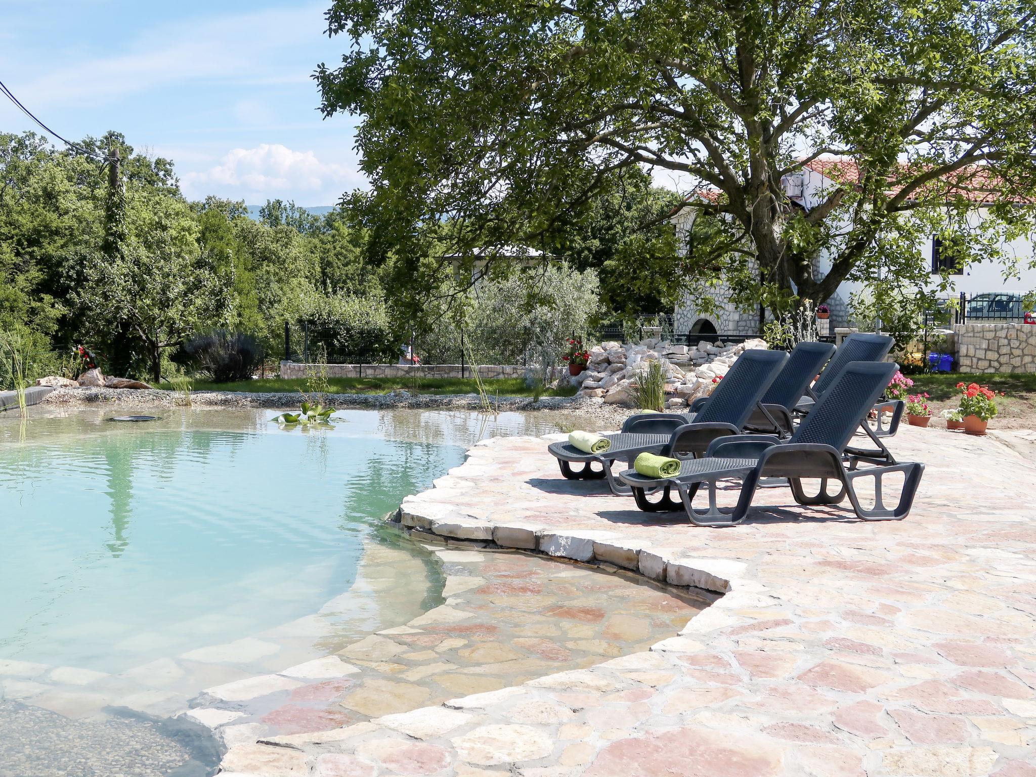 Single-family house "Angelina". In the district of Strmac 4 km from the centre of Labin, 9 km from the centre of Rabac, 9 km from the sea. Private: property 1'300 m2 with lawn and trees, swimming pool (40 m2, depth 135 - 200 cm, seasonal availability: 01.May. - 01.Oct.). Barbecue (slide, swing), pool maintenance by the owner/gardener. In the house: internet access, washing machine. Parking (for 2 cars) on the premises. Supermarket 1 km, bus stop 550 m, pebble beach 9 km, rocky beach 9 km. Marina 9 km. The swimming pool for private use (40 m2, depth 135 - 200 cm, 01.01.-31.12.) is a natural swimming pool with a water depth of 35 cm in some places, which makes it suitable for children.