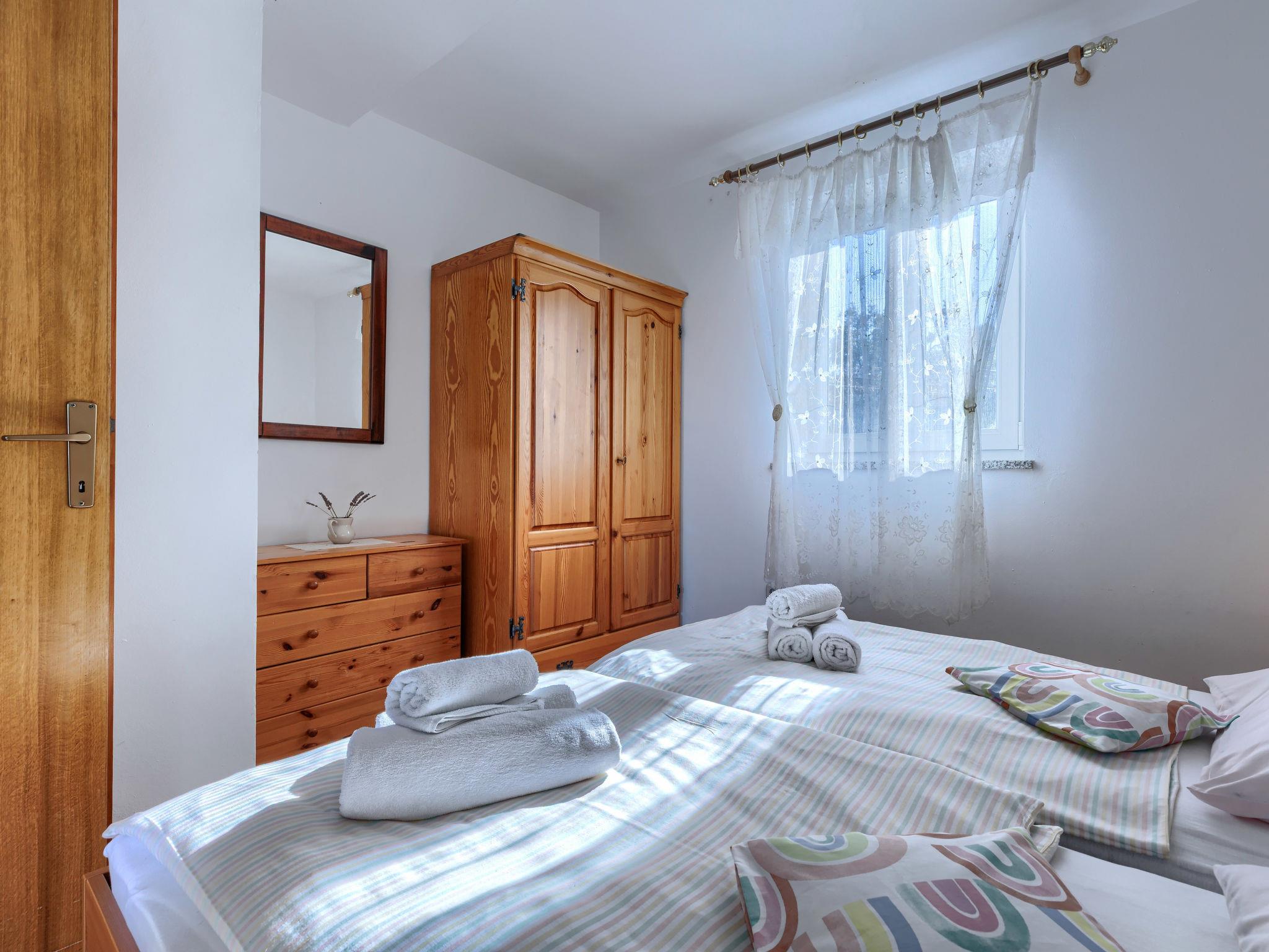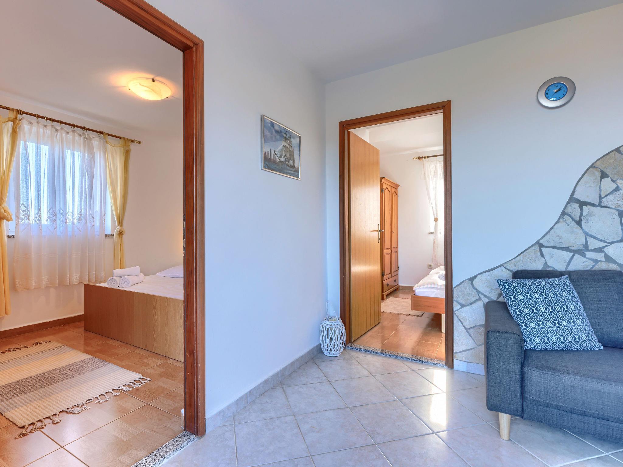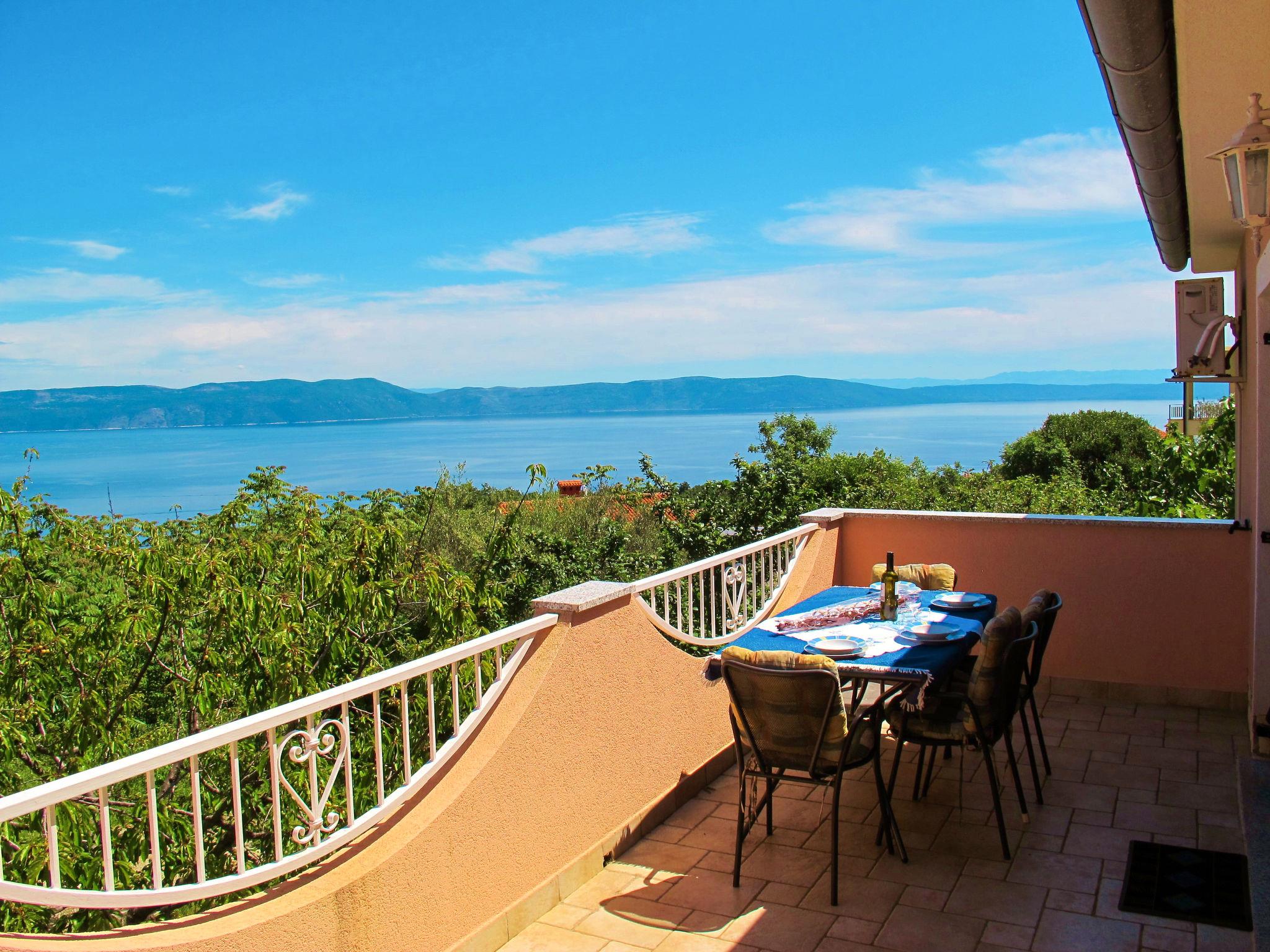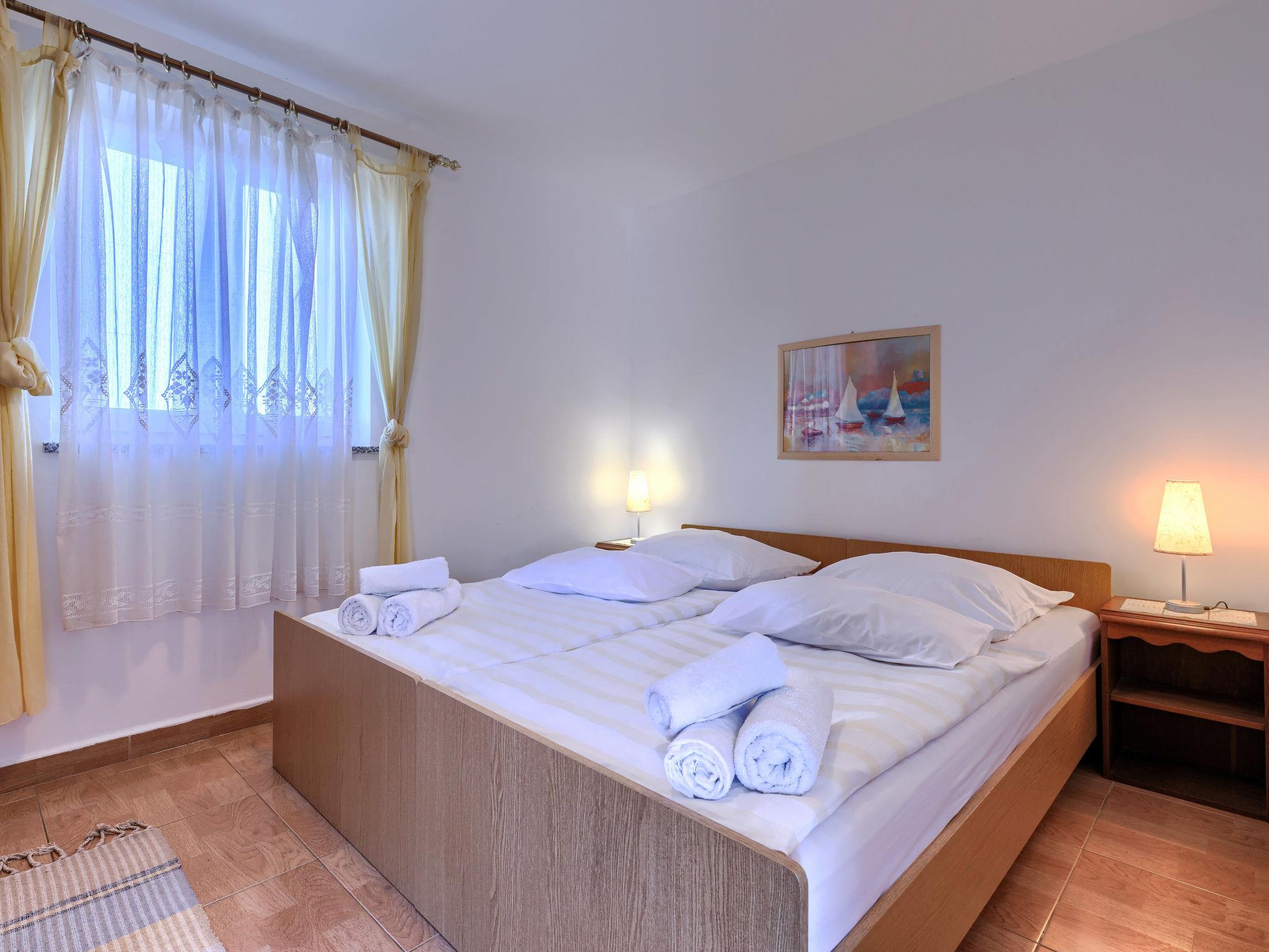 "Teo", 3-room apartment 56 m2 on 1st floor. Living/dining room with satellite TV and air conditioning. Exit to the terrace. 2 rooms, each room with 2 beds. Open kitchen (4 hot plates, oven, toaster, kettle, microwave, freezer, electric coffee machine). Shower/WC. No heating option. Terrace 15 m2. Terrace furniture, deck chairs (2). View of the sea. Facilities: mosquito net. Internet (WiFi, free). Please note: non-smoking house.
