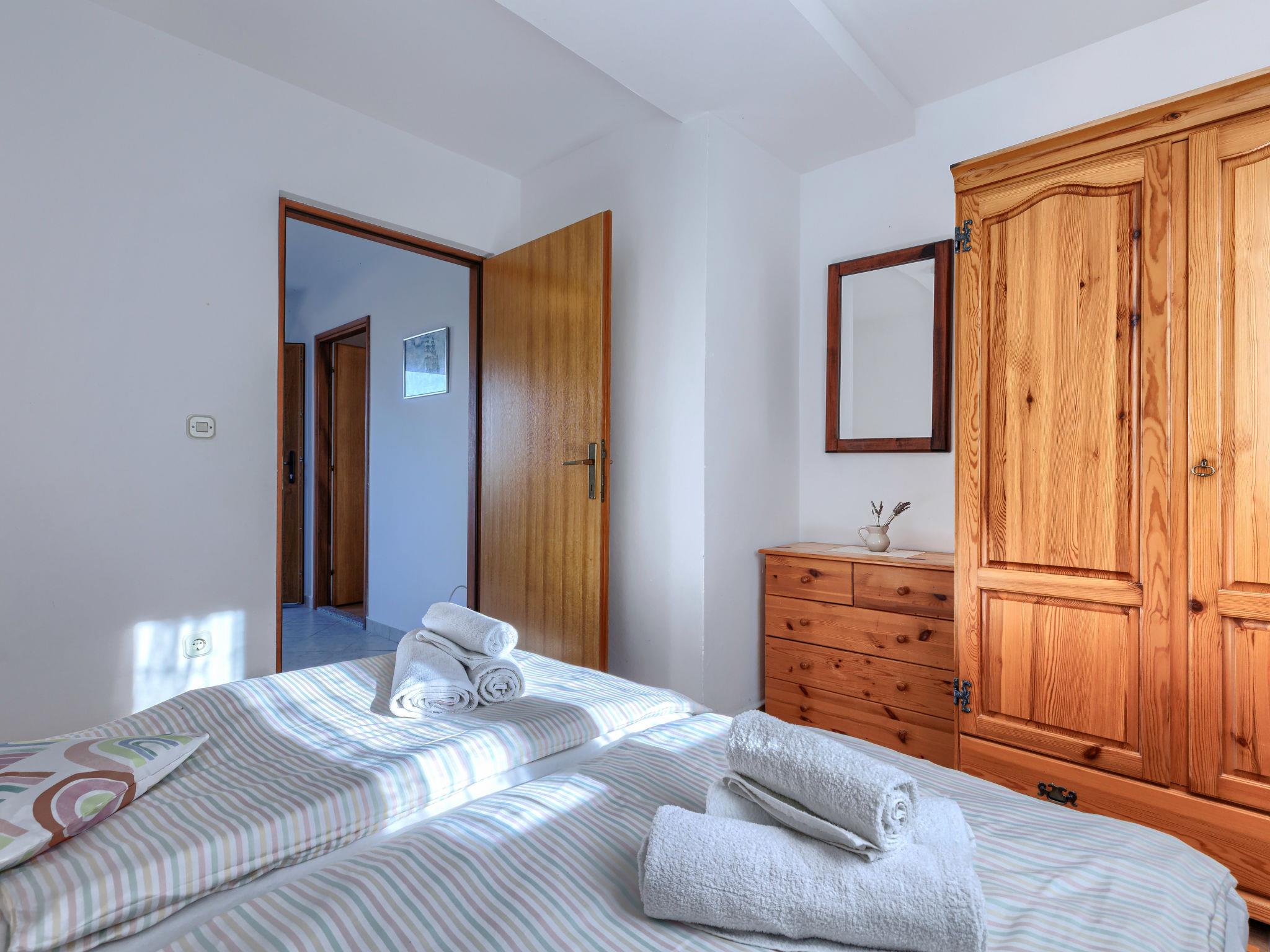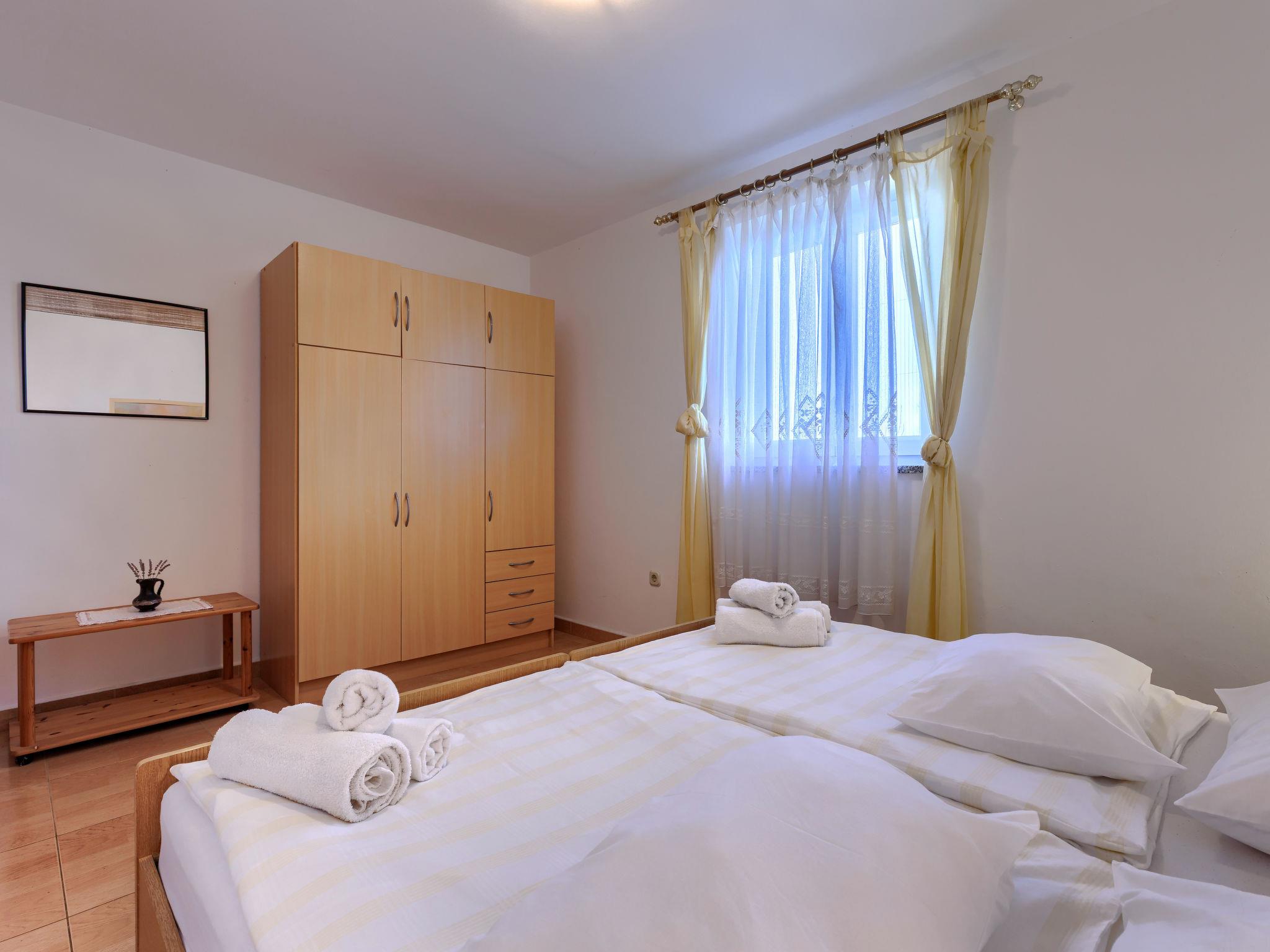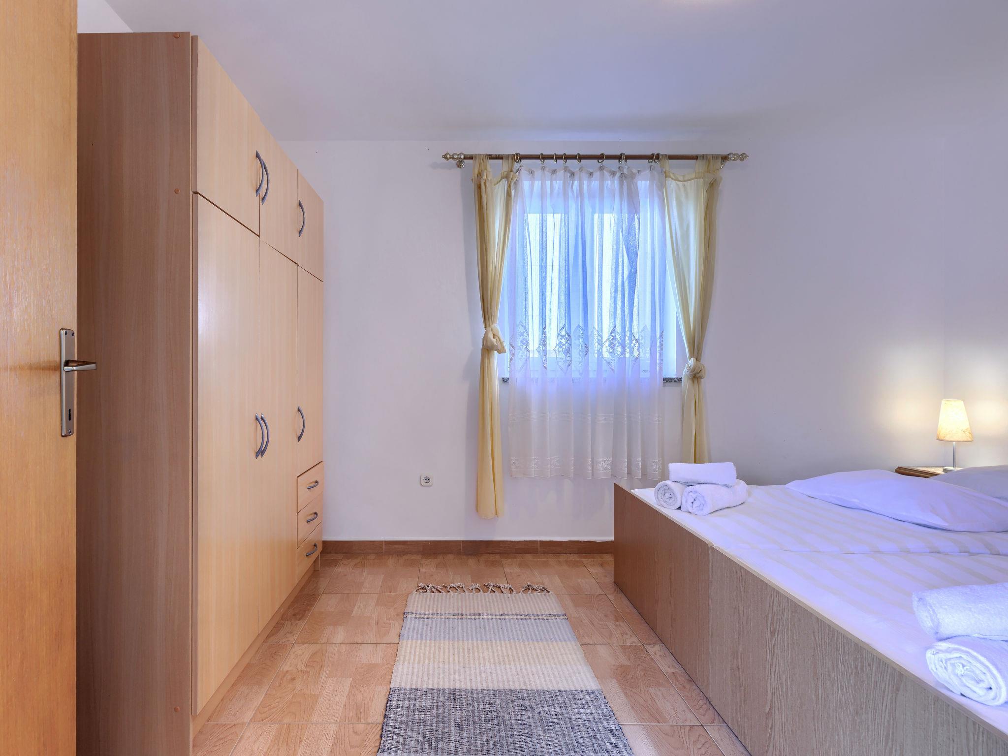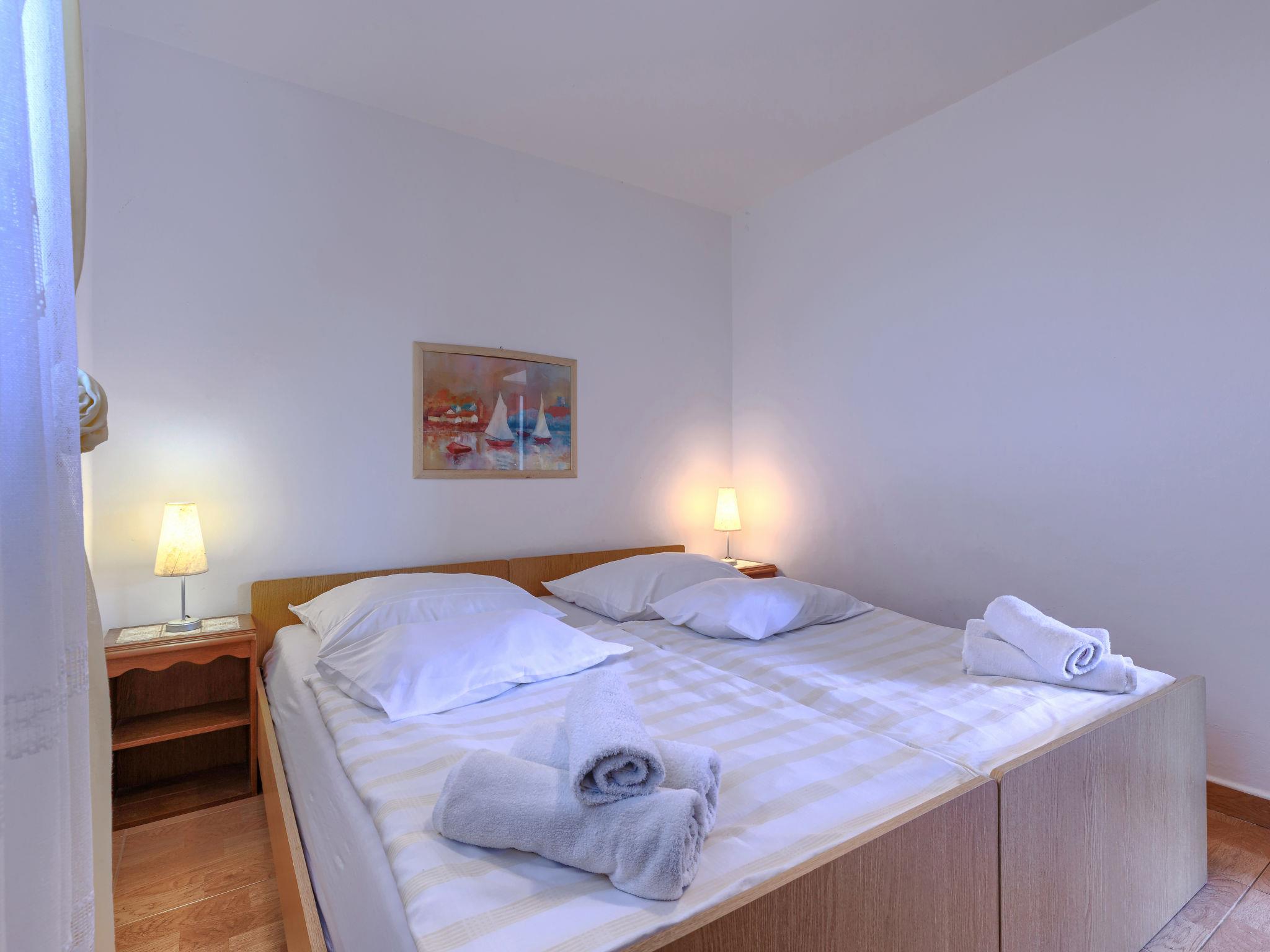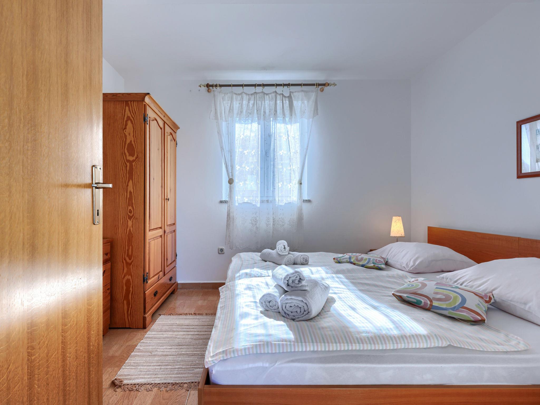 "Teo", 3-room apartment 56 m2 on 1st floor. Living/dining room with satellite TV and air conditioning. Exit to the terrace. 2 rooms, each room with 2 beds. Open kitchen (4 hot plates, oven, toaster, kettle, microwave, freezer, electric coffee machine). Shower/WC. No heating option. Terrace 15 m2. Terrace furniture, deck chairs (2). View of the sea. Facilities: mosquito net. Internet (WiFi, free). Please note: non-smoking house.
