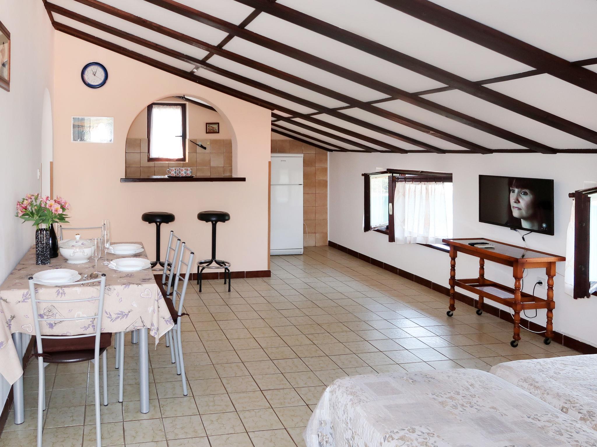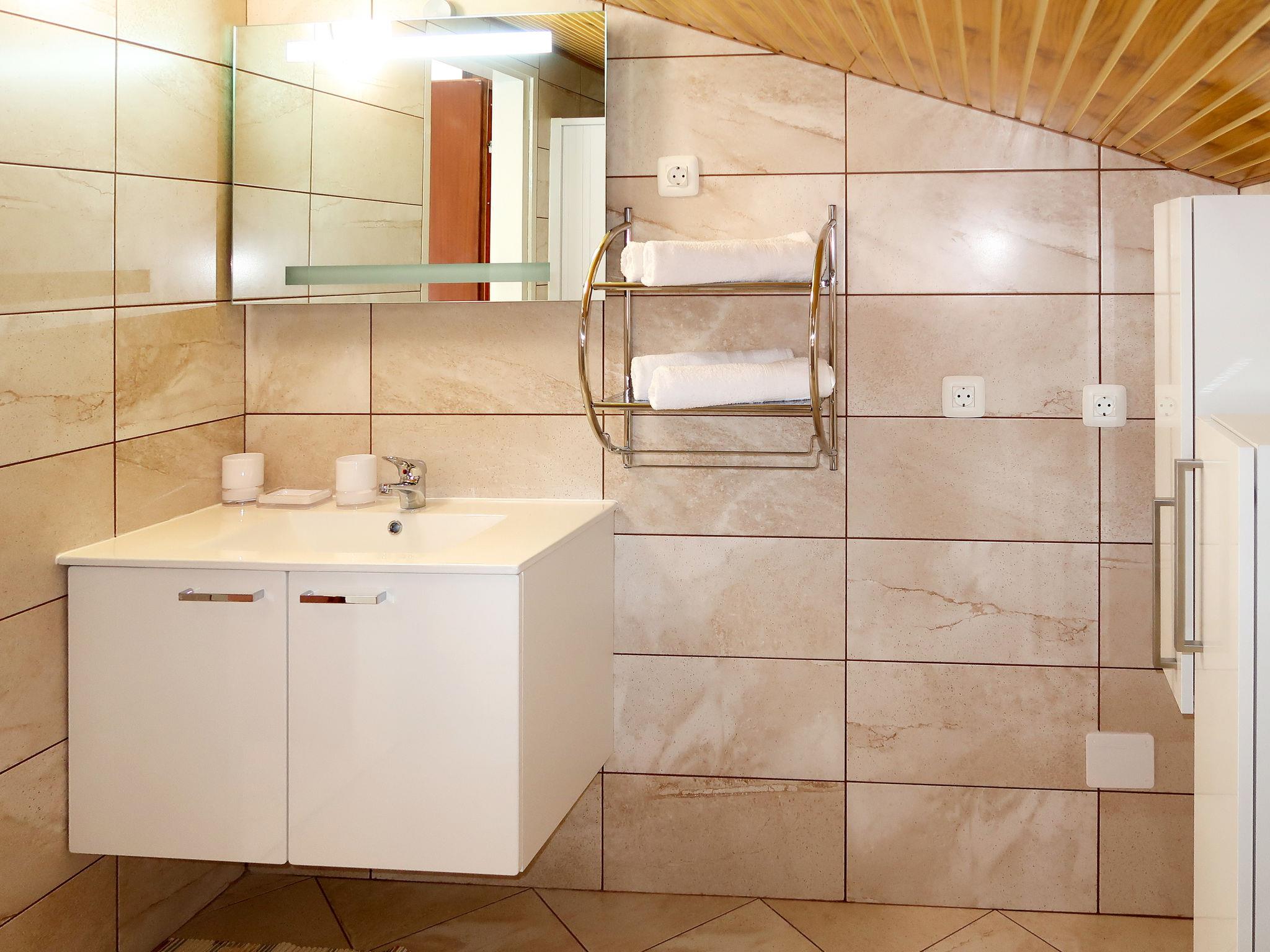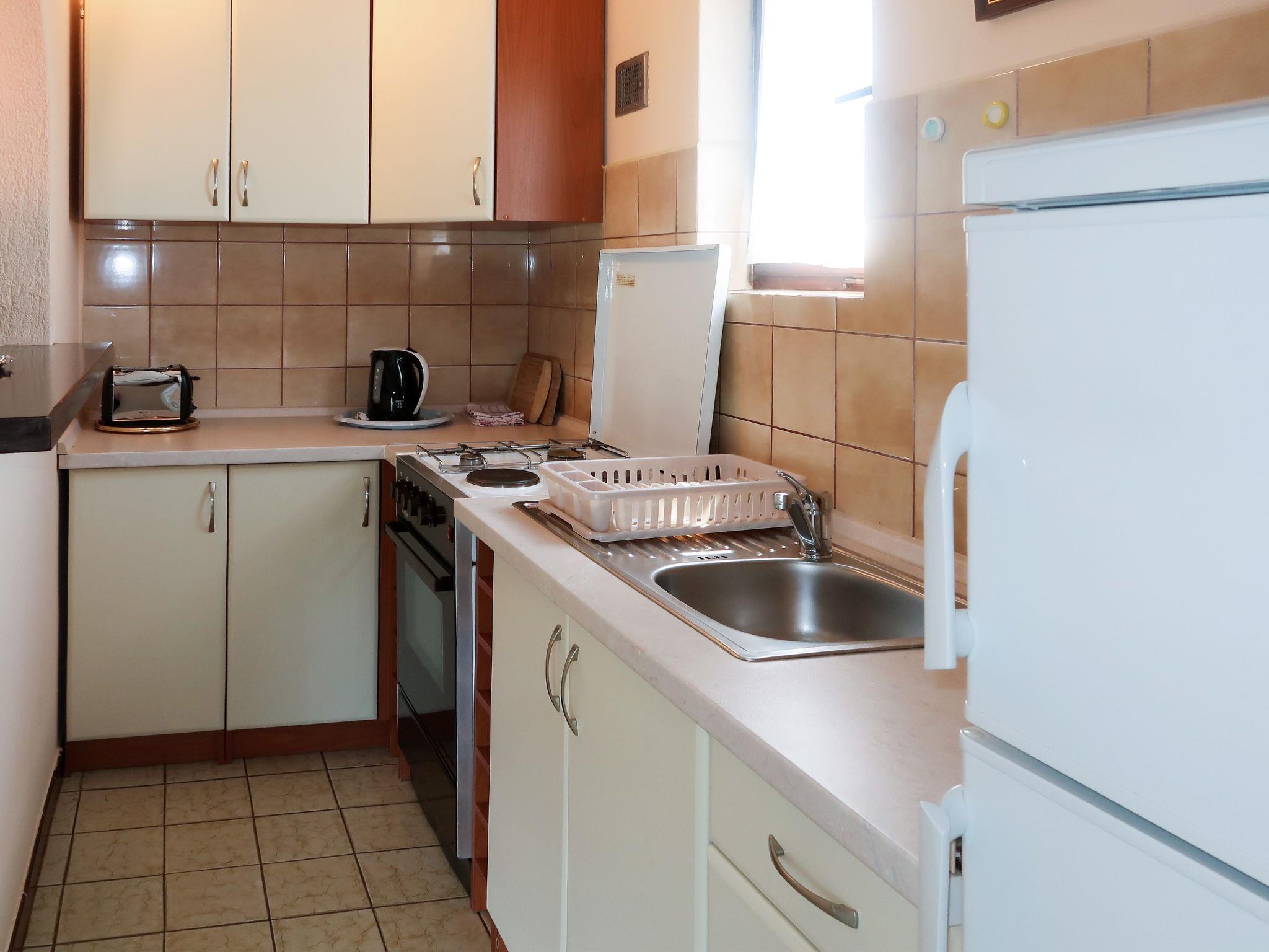 "Violetta", 2-room apartment 56 m2, on the top floor. Living/sleeping room with sloping ceilings with 2 beds, satellite TV and air conditioning. Exit to the terrace. 1 room with sloping ceilings with 1 double bed. With sloping ceilings, open kitchen (2 hot plates, oven, 2 gas rings, toaster, kettle, freezer, electric coffee machine). Shower/WC. No heating option. Terrace. Terrace furniture, box-room. View of the sea. Facilities: Internet (WiFi, free). Please note: non-smoking house. Private entrance. Low placed window in the apartment. 2163-07/06-97-2