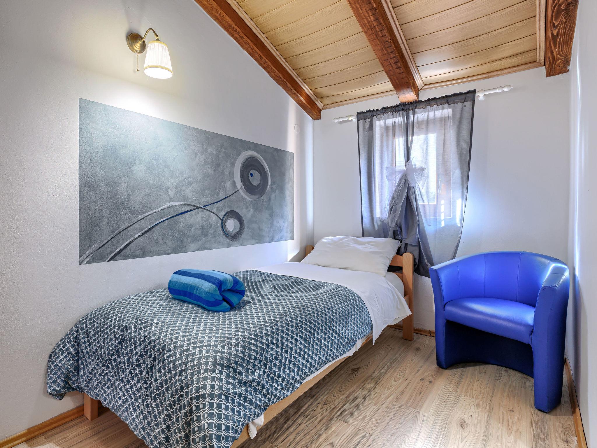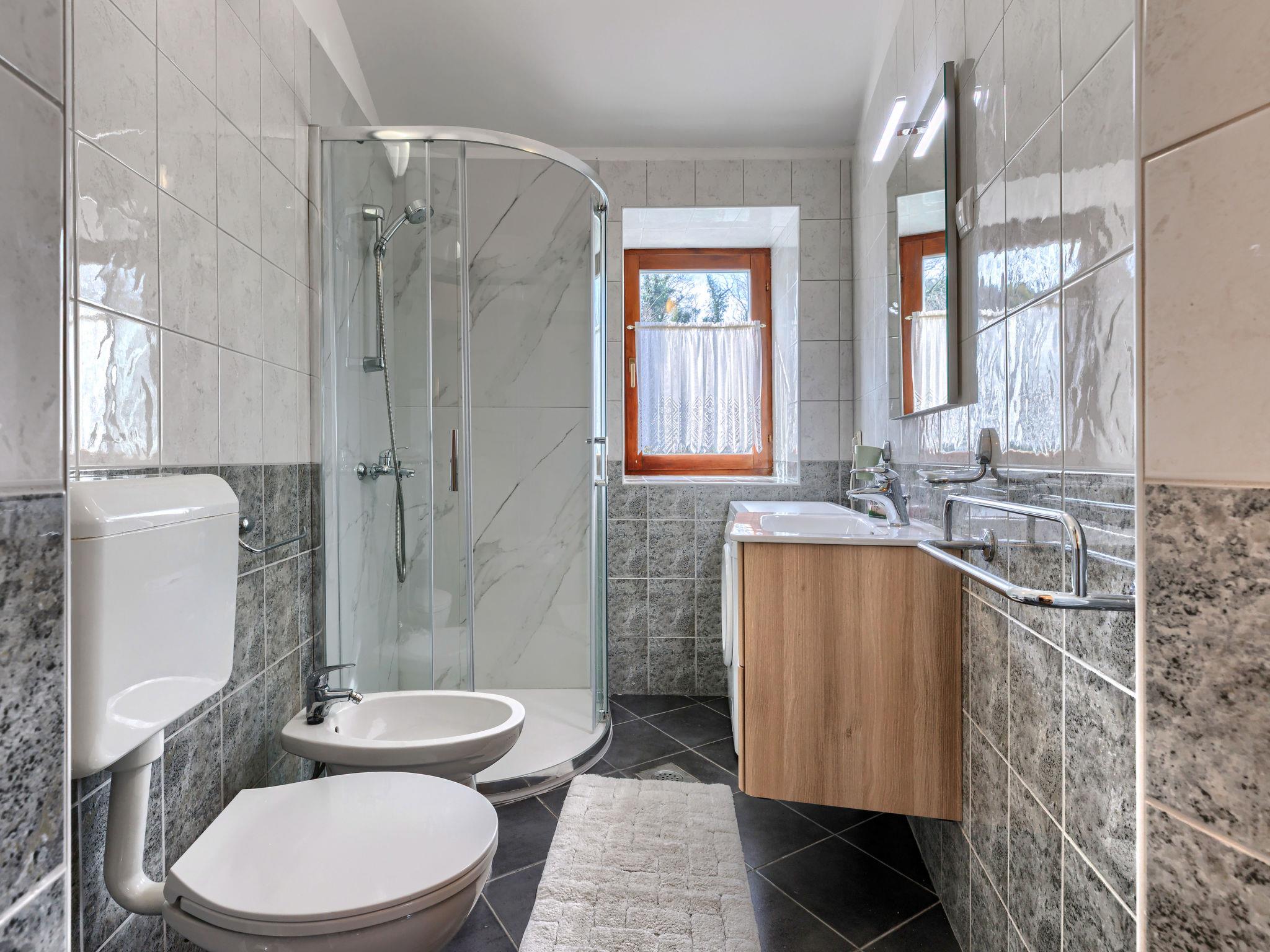 Country house, surrounded by trees and meadows. 8 km from the centre of Labin, 5 km from the sea, in a cul-de-sac. For shared use: property 6'000 m2 with trees, meadow, swimming pool angular (12 x 5 m, depth 135 cm, seasonal availability: 15.May. - 25.Sep.) with internal staircase. Outdoor shower, volleyball court, arbour, terrace, garden furniture, barbecue, children's playground (slide, swing). In the house: internet access. Parking on the premises. Shop 300 m, bus stop 2.9 km, pebble beach 5 km, rocky beach 5 km. Please note: the owner lives on the same property.