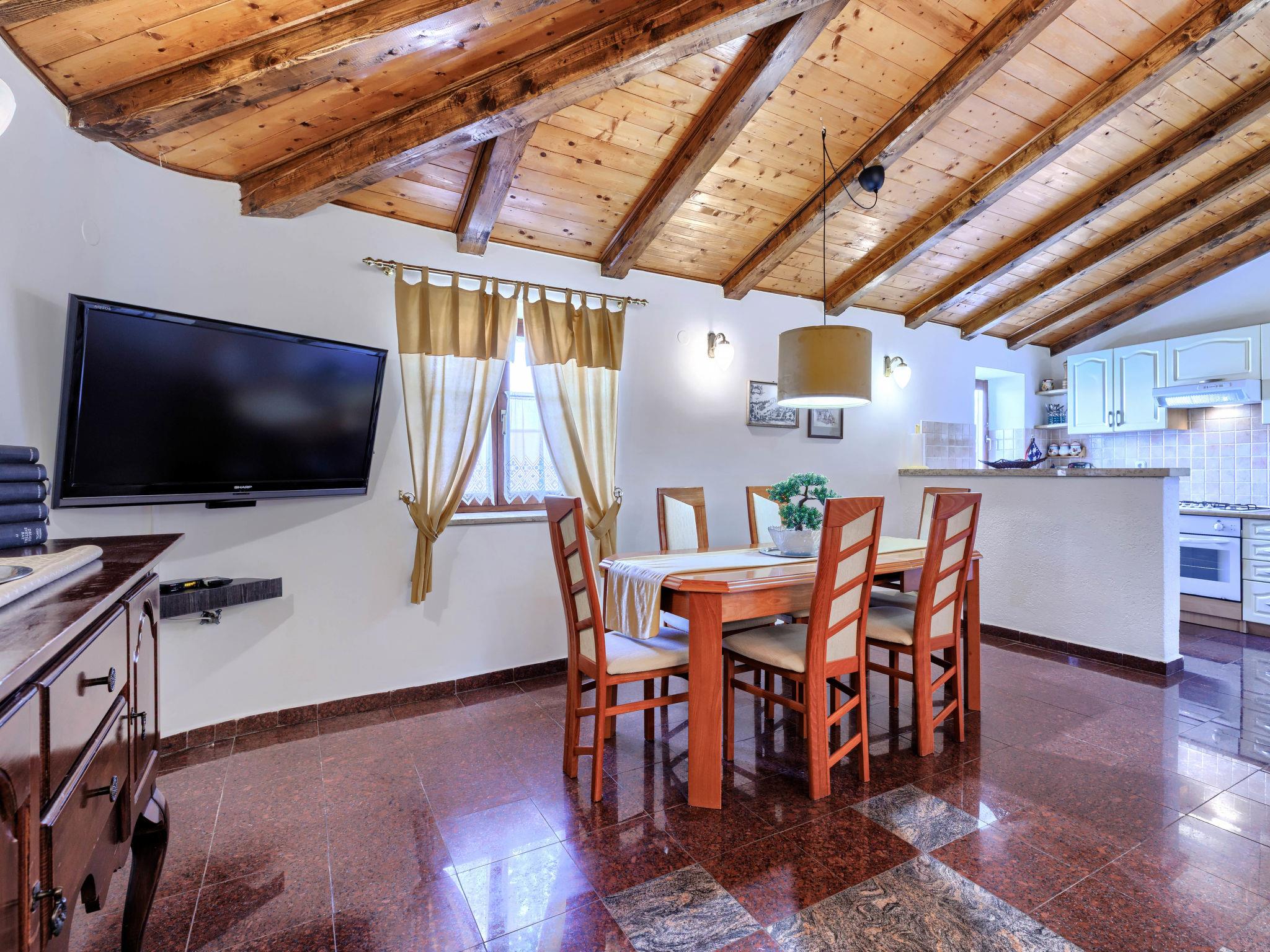 "Rotonda", 4-room house 110 m2 on 2 levels. Living/dining room with satellite TV (flat screen), air conditioning. 1 room with 1 french bed (180 cm, length 200 cm), air conditioning. 1 room with 2 beds. Open kitchen (1 hot plate, oven, dishwasher, 3 gas rings, toaster, kettle, electric coffee machine). Shower/WC. No heating option. Upper floor: 1 room with 1 french bed (180 cm, length 200 cm), air conditioning. Sep. WC. Terrace furniture. Facilities: washing machine, iron, baby cot. Internet (WiFi, free). Please note: non-smoking house. Maximum 1 pet/ dog allowed.