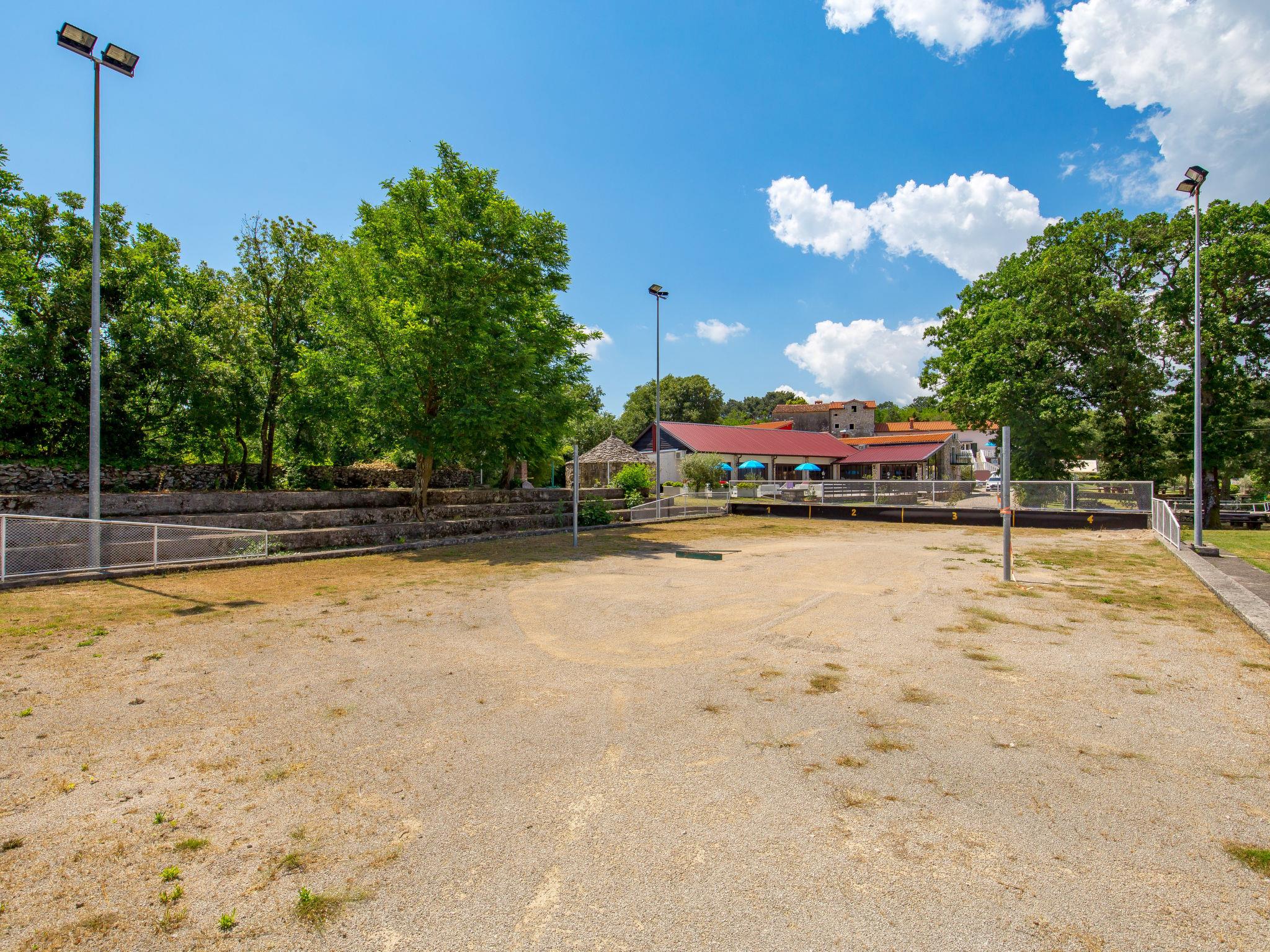 Country house, surrounded by trees and meadows. 8 km from the centre of Labin, 5 km from the sea, in a cul-de-sac. For shared use: property 6'000 m2 with trees, meadow, swimming pool angular (12 x 5 m, depth 135 cm, seasonal availability: 15.May. - 25.Sep.) with internal staircase. Outdoor shower, volleyball court, arbour, terrace, garden furniture, barbecue, children's playground (slide, swing). In the house: internet access. Parking on the premises. Shop 300 m, bus stop 2.9 km, pebble beach 5 km, rocky beach 5 km. Please note: the owner lives on the same property.