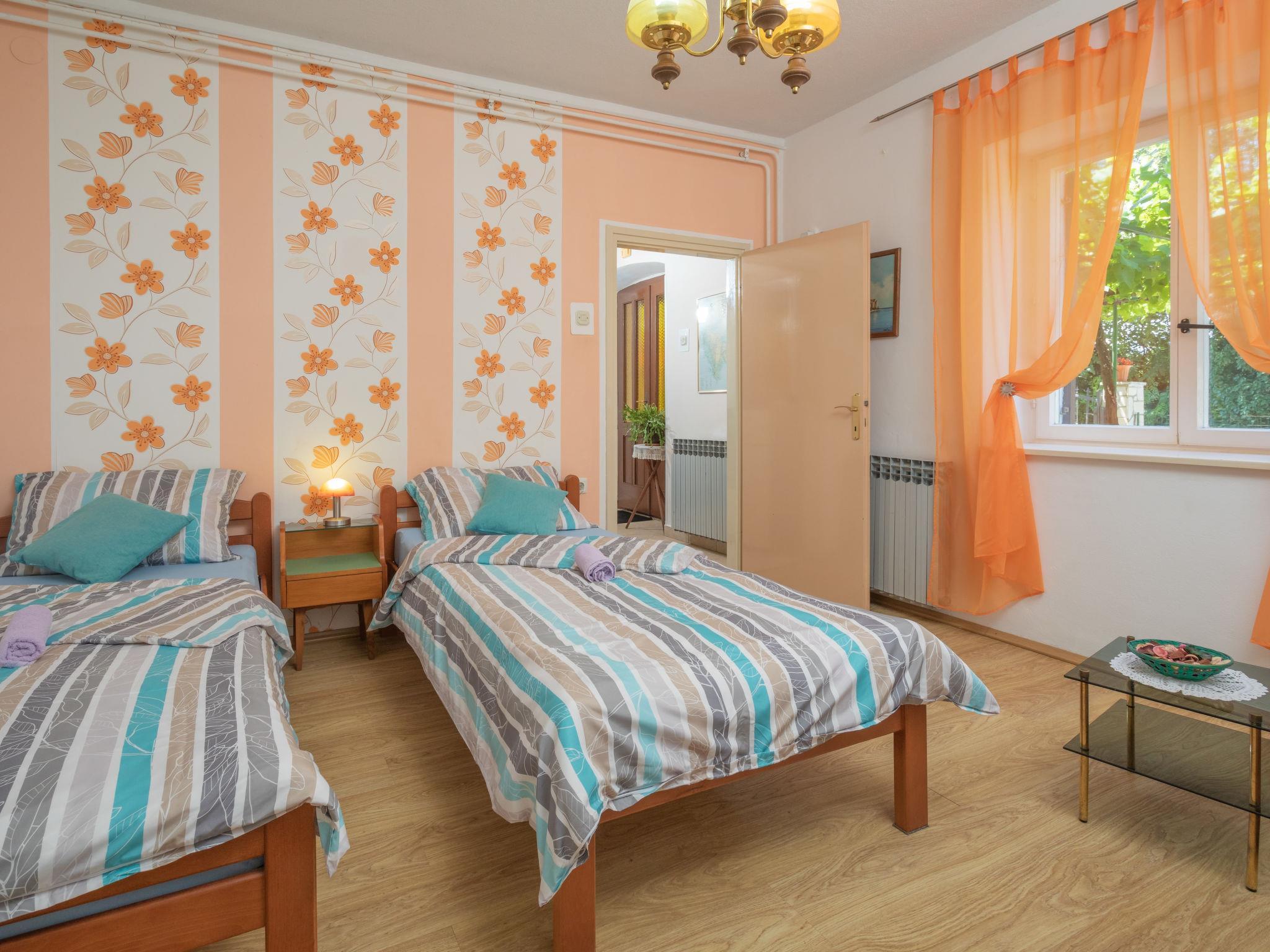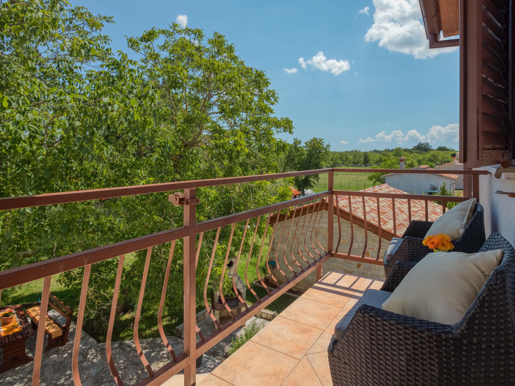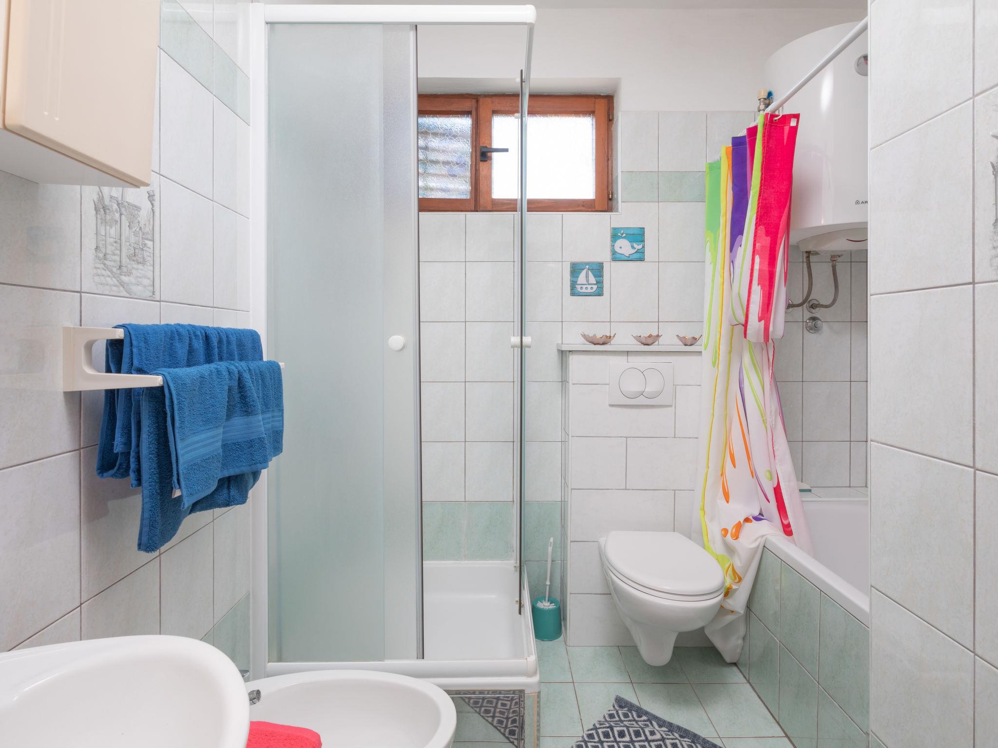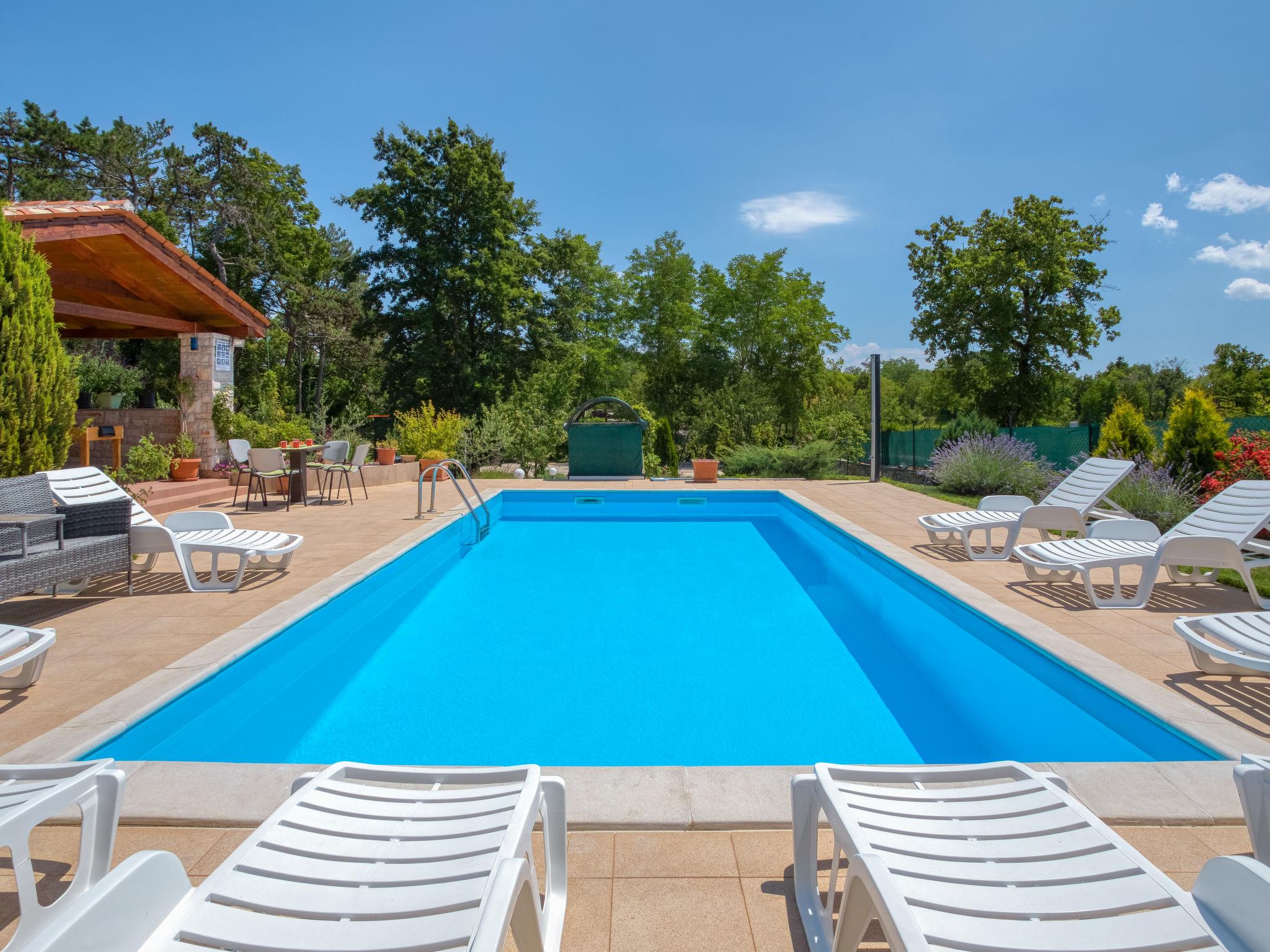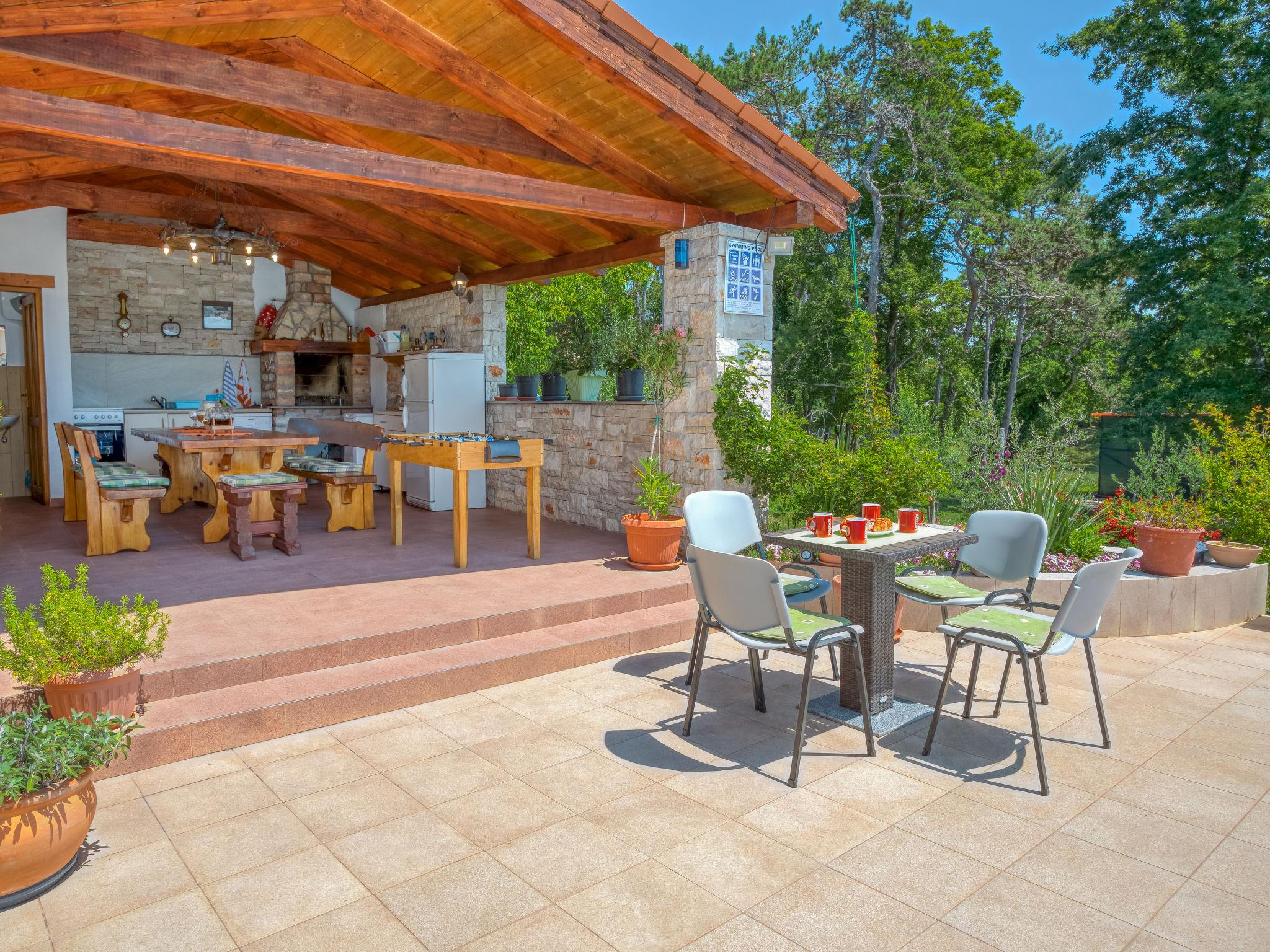 2-family house "Kos", 2 storeys. In the hamlet Šumber 2.5 km from the centre of Nedešcina, 7 km from the centre of Labin, 9 km from the centre of Rabac, 9 km from the sea. Private: property 3'000 m2 with trees, meadow, swimming pool angular (8 x 4 m, depth 135 cm, seasonal availability: 02.May. - 17.Oct.). WC in the pool area, outdoor shower, table tennis, badminton, patio, terrace, garden furniture, barbecue, children's playground (slide, swing). In the house: internet access, table football, trampoline, washing machine (extra). Parking on the premises. Shop 2.5 km, supermarket 7 km, restaurant 2.5 km, bus stop 7.2 km, pebble beach 9 km, rocky beach 9 km. Marina 9 km. Youth groups are not allowed. Private:outdoor kitchen (4 hot plates, dishwasher, oven, freezer).