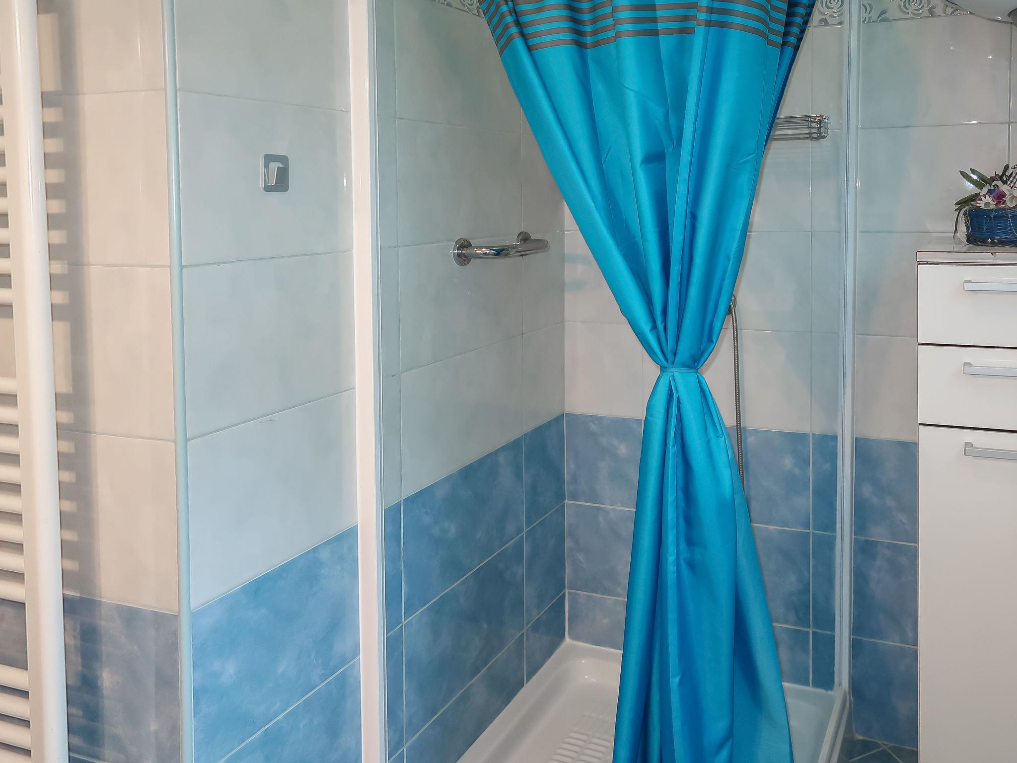 8-room house 150 m2 on 2 levels. Living/dining room with satellite TV and air conditioning. 2 rooms, each room with 2 beds. 1 room with 1 french bed (180 cm). Open kitchen (4 hot plates, oven, microwave, freezer, electric coffee machine). Shower/WC, sep. WC. Upper floor: (exterior staircase) living/dining room with satellite TV and air conditioning. Exit to the balcony. 2 rooms, each room with 1 double bed. 1 room with 1 bed. Open kitchen (4 hot plates, oven, microwave, electric coffee machine). Bath/shower, sep. WC. No heating option. 2 balconies, terrace 25 m2. Terrace furniture, deck chairs. Facilities: iron, baby cot. Internet (WiFi, free). Parking (roofed, 2 cars). Please note: non-smoking house. When there are less than the maximum number of guests staying at the property, one floor will not be available for use.