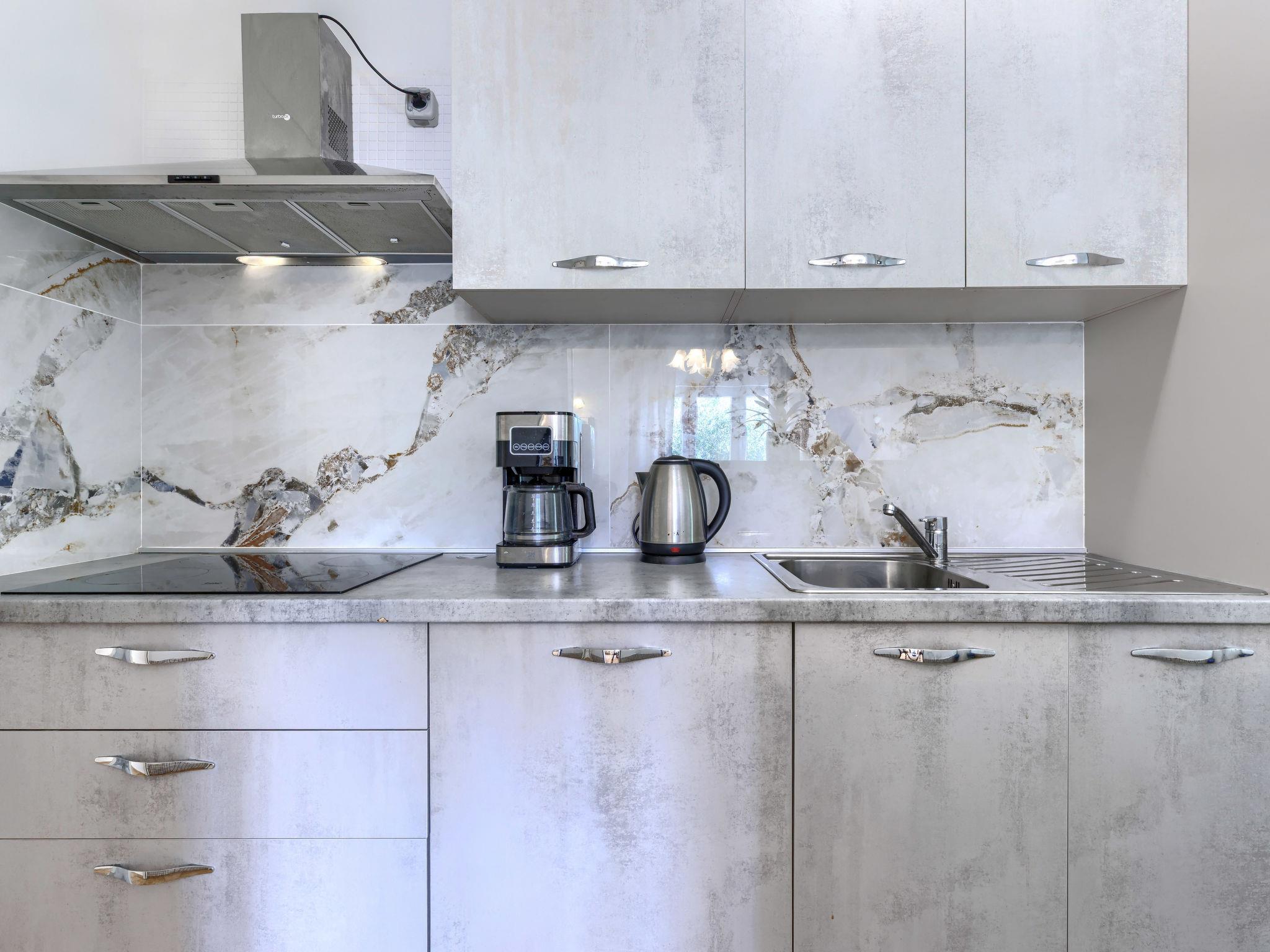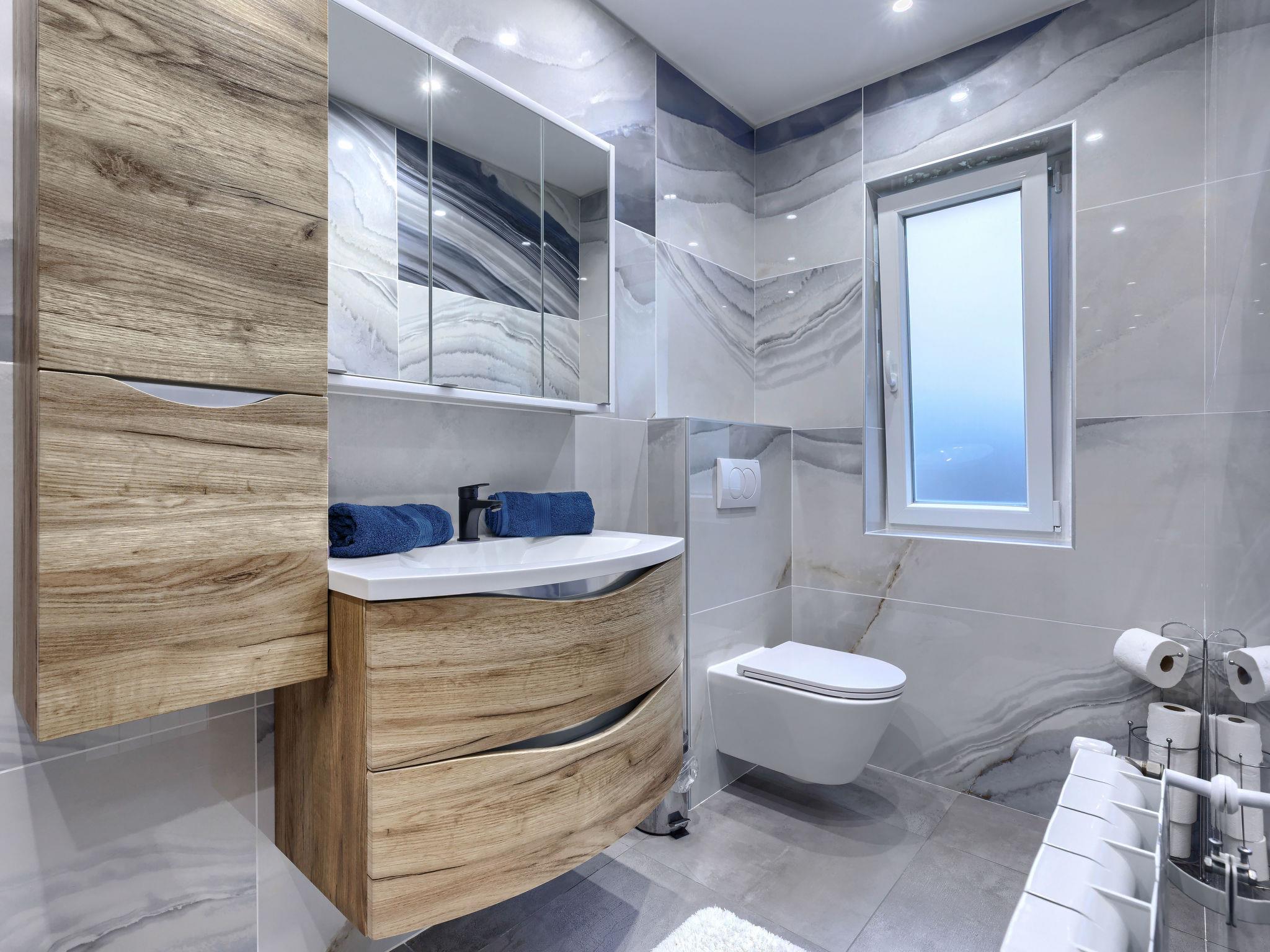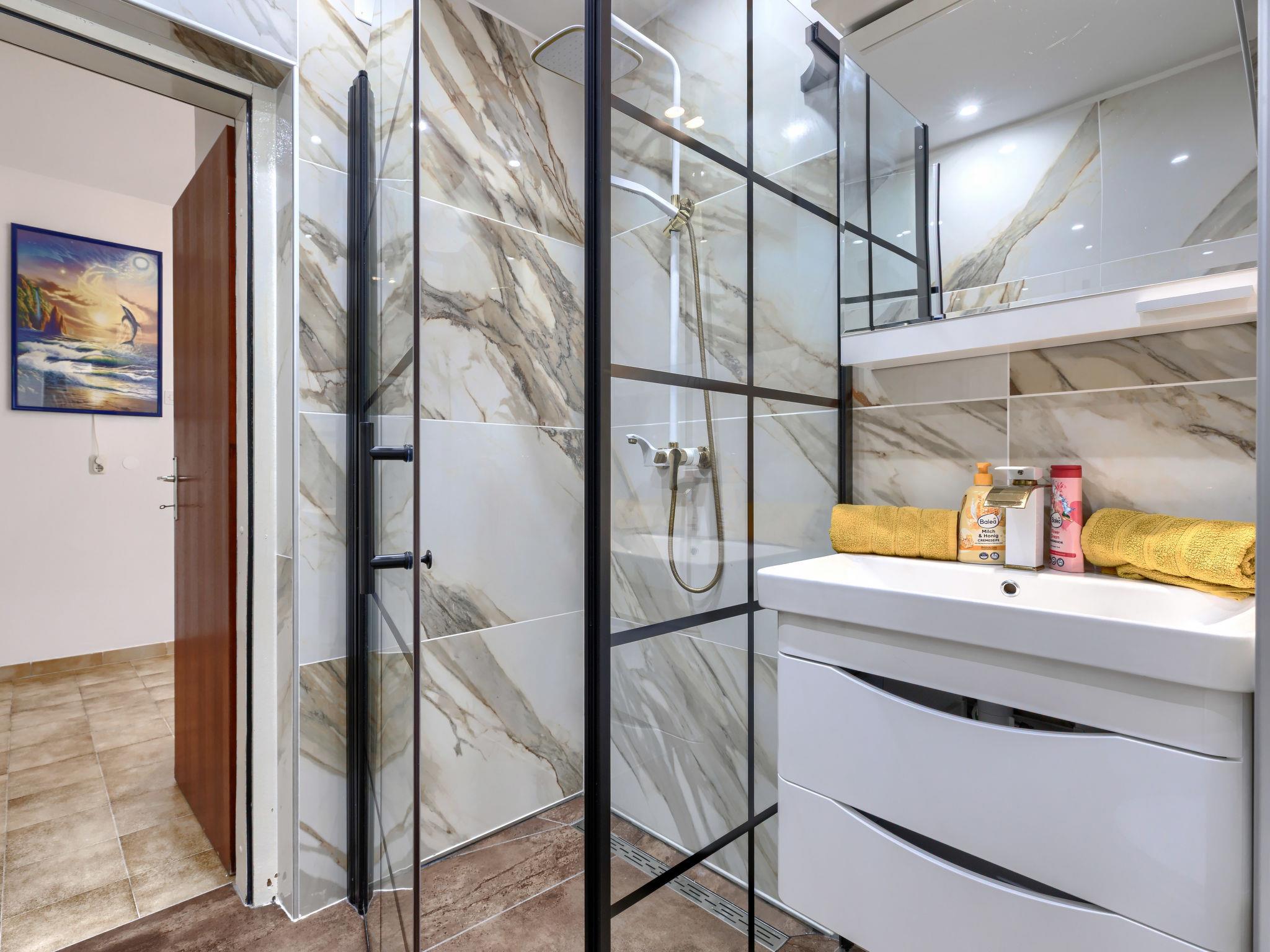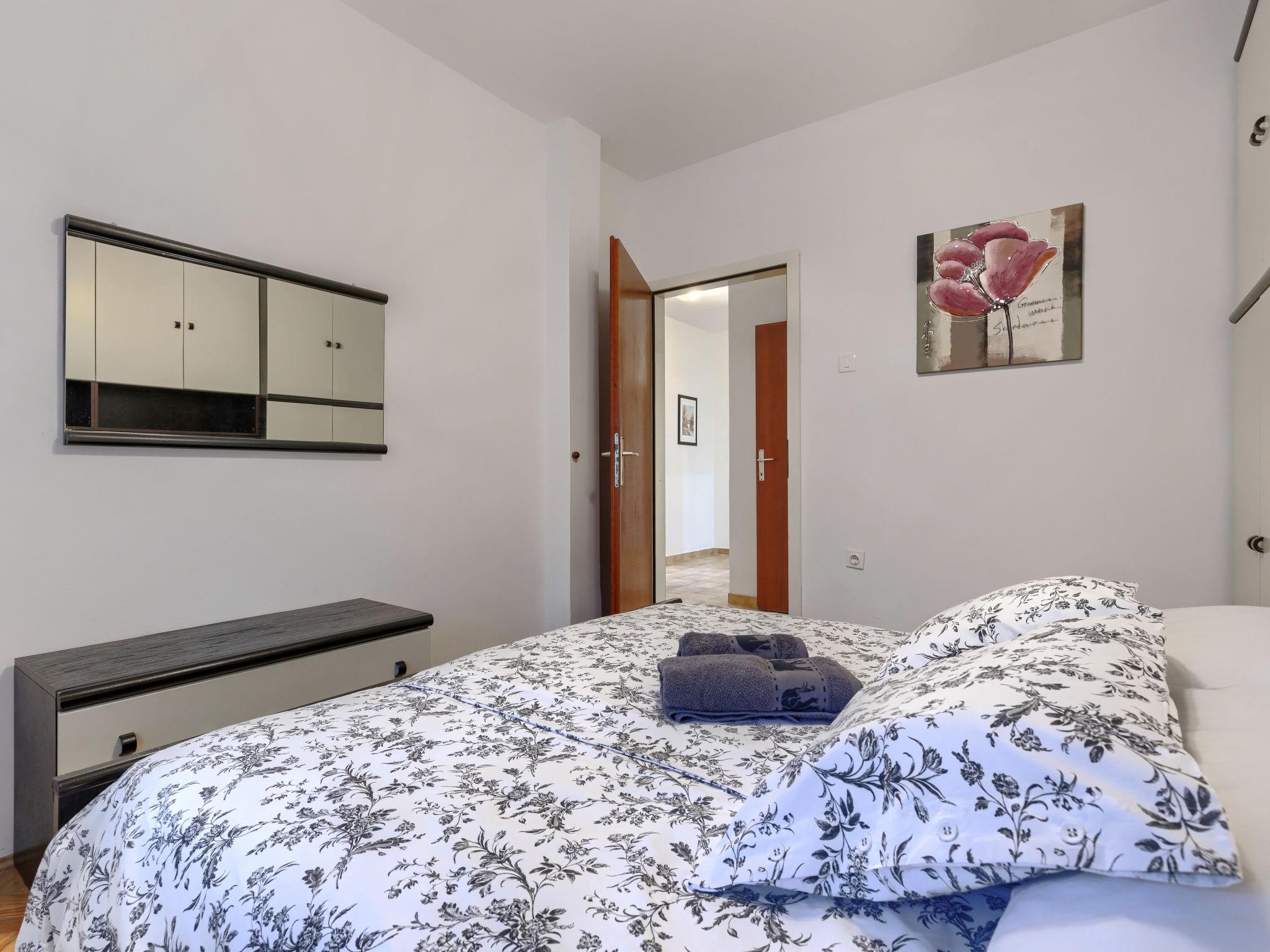 3-room apartment 85 m2, on the ground floor. Living room with open-hearth fireplace (only for decoration), satellite TV, DVD and air conditioning. Exit to the terrace. 1 room with 1 double bed (2 x 90 cm, length 200 cm). 1 room with 1 double bed (2 x 80 cm, length 200 cm). Dining room. Open kitchen (oven, dishwasher, 4 ceramic glass hob hotplates, toaster, kettle, freezer, electric coffee machine). 2 showers/WC. No heating option. Terrace 40 m2 partly roofed. Terrace furniture, deck chairs (2). Facilities: washing machine, iron. Internet (WiFi, free). Please note: non-smoking house.
