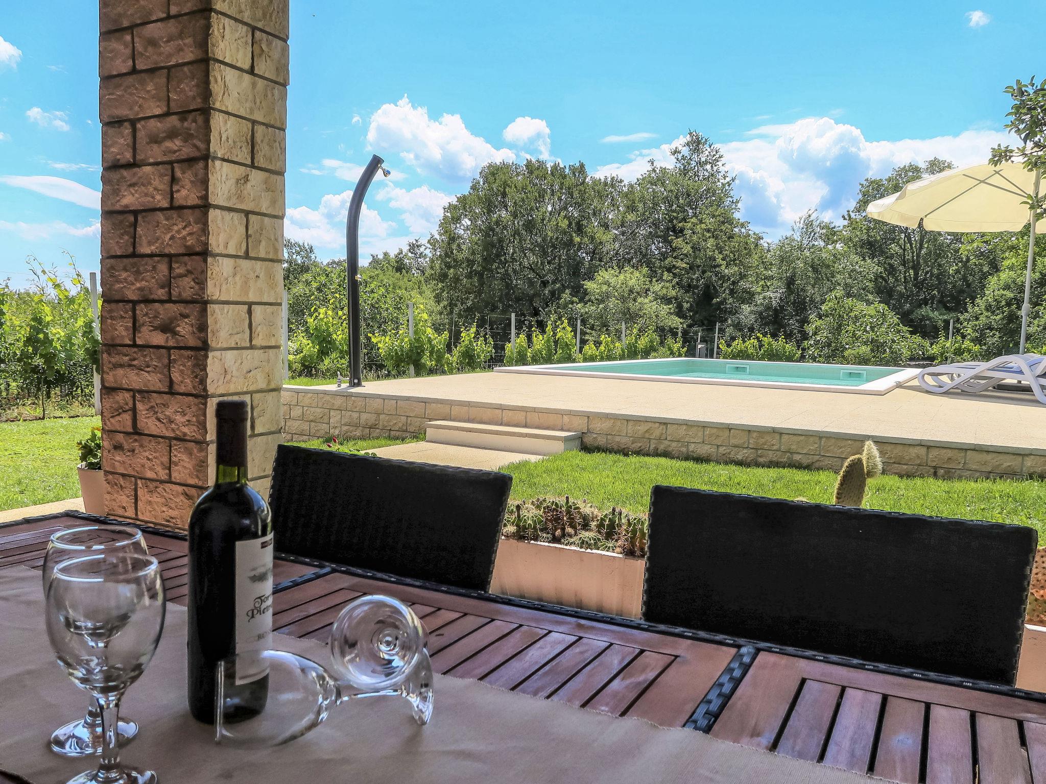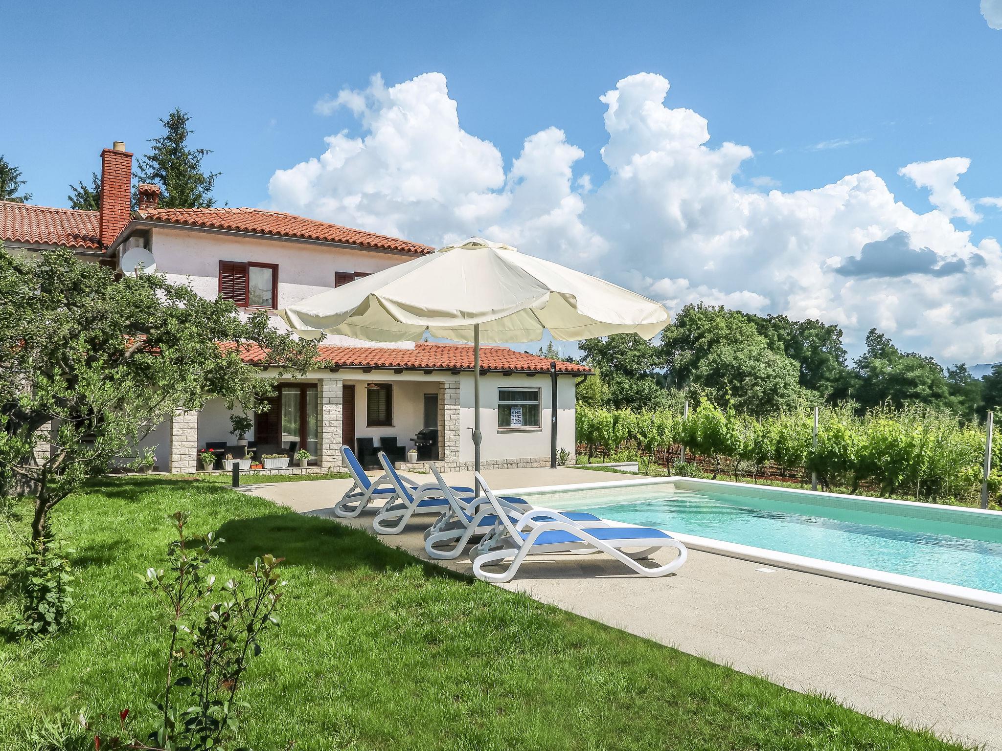 Semi-detached house "Anteo", 2 storeys. In the hamlet Becici 4 km from the centre of Labin, 10 km from the centre of Rabac, 10 km from the sea. Private: property 500 m2 with lawn and trees, swimming pool angular (7 x 4 m, depth 130 cm, seasonal availability: 01.May. - 31.Oct.) with internal staircase. Outdoor shower, terrace, barbecue, pool maintenance by the owner/gardener. In the house: internet access, washing machine. Parking (for 2 cars) on the premises. Supermarket 4 km, bus stop 3.7 km, pebble beach 10 km. Please note: airfield 47 km from the property.