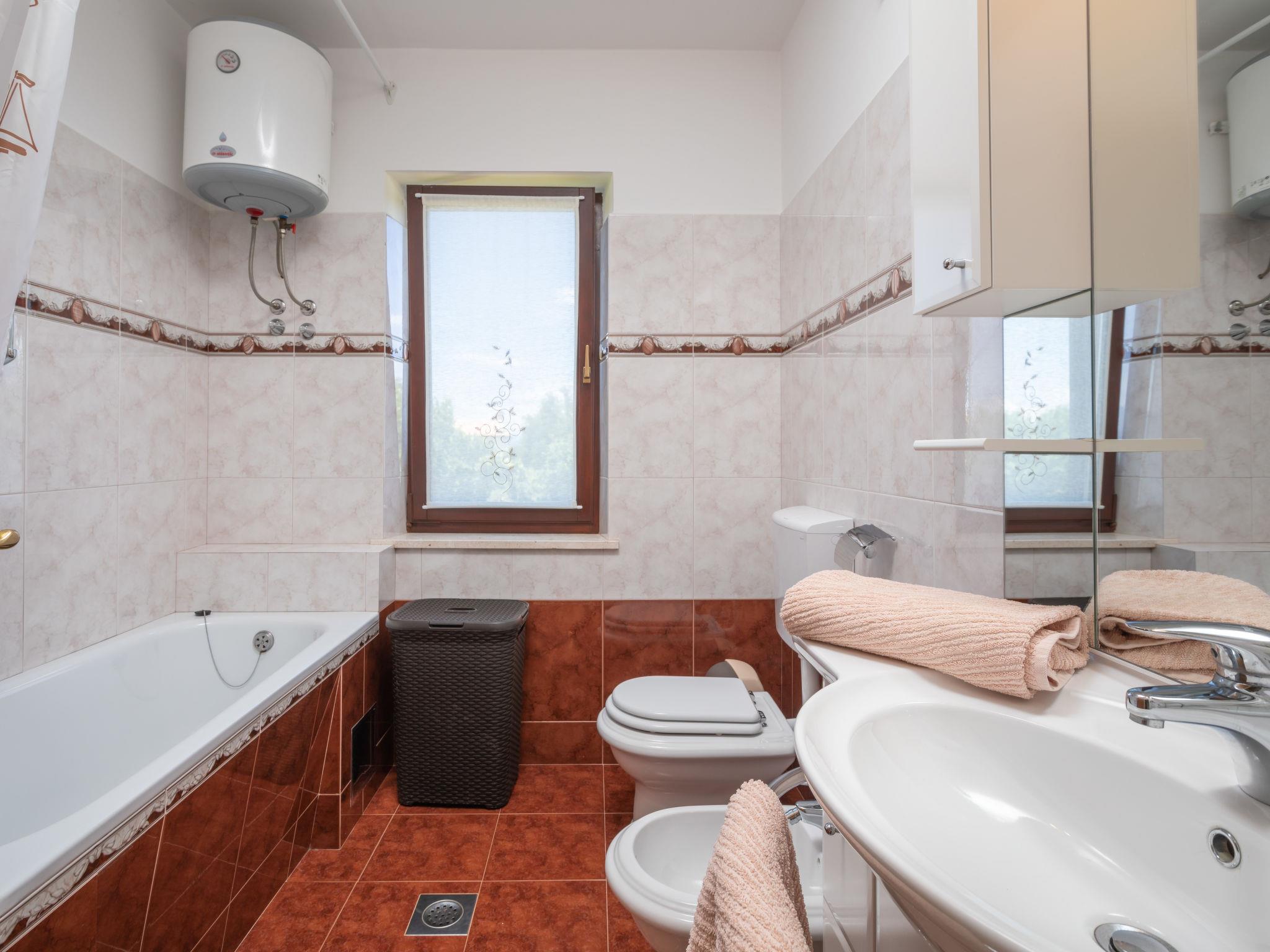 Single-family house "Ana", 2 storeys. In the hamlet Ružici 9 km from the centre of Labin, in a quiet, sunny position, 14 km from the sea, in the countryside. Private: property 3'000 m2, garden wildlife garden and trees, swimming pool angular (7 x 3 m, 24 m2, depth 130 cm, seasonal availability: 22.May. - 11.Sep.). Outdoor shower, terrace, garden furniture, barbecue, children's playground (slide, swing). In the house: internet access, washing machine. Parking (for 2 cars) at the house on the premises. Shop 2 km, supermarket 9 km, restaurant 2 km, café 9 km, bus stop 7.2 km, pebble beach 14 km. Please note: suitable for families. Part of the house is closed and unoccupied. Animals in the neighbourhood. Youth groups are not allowed.