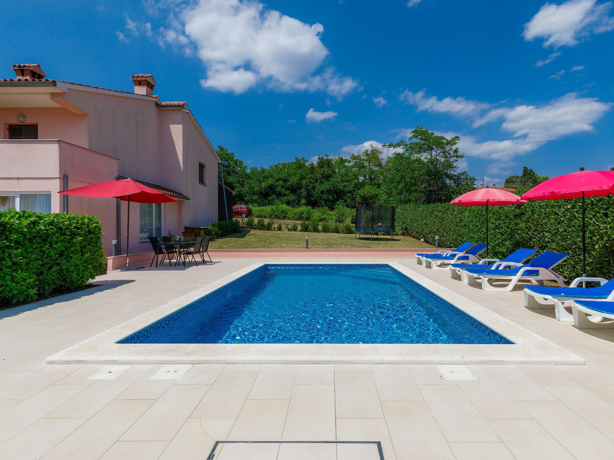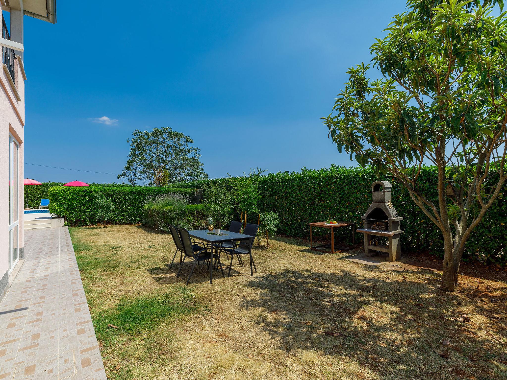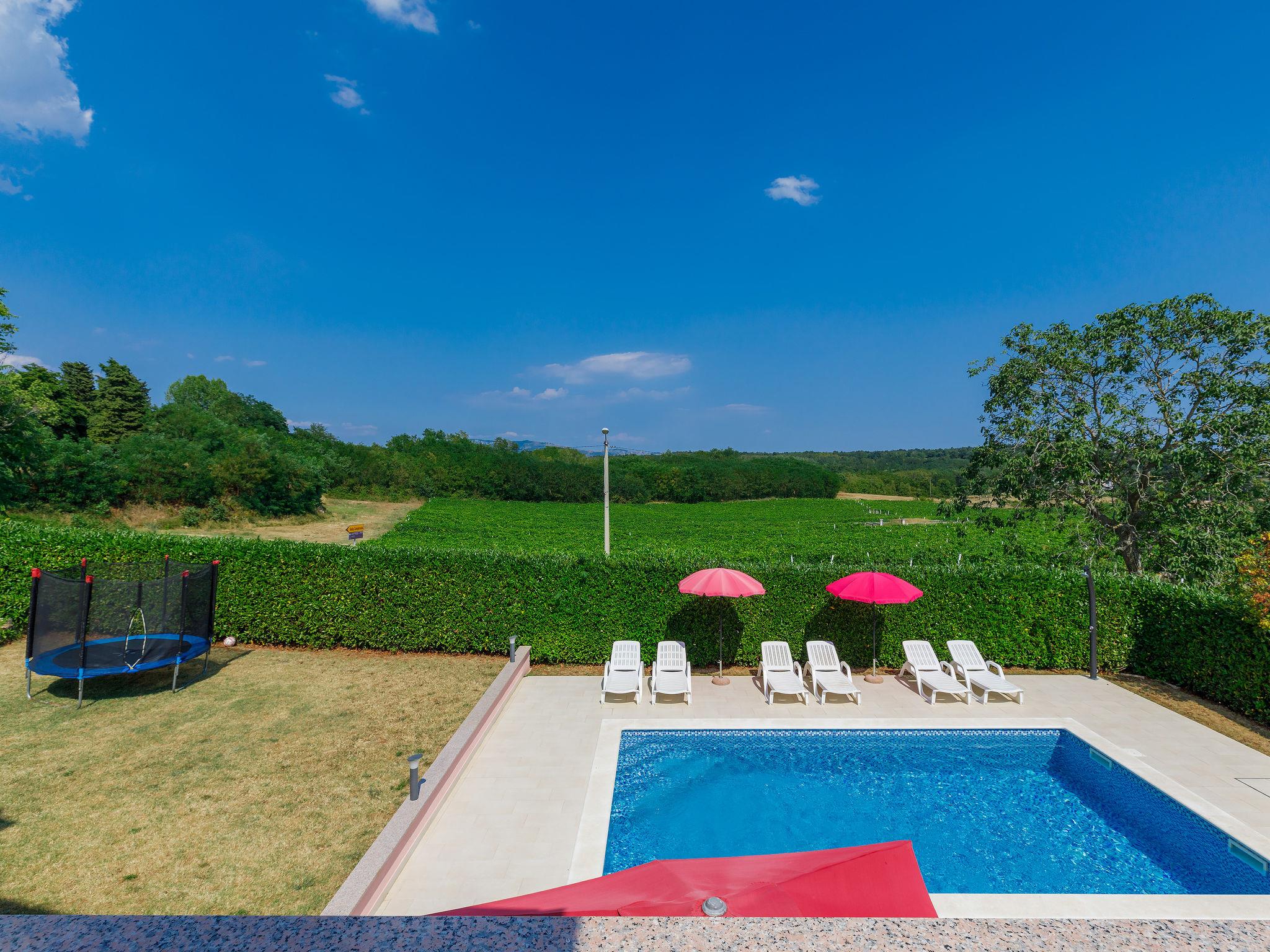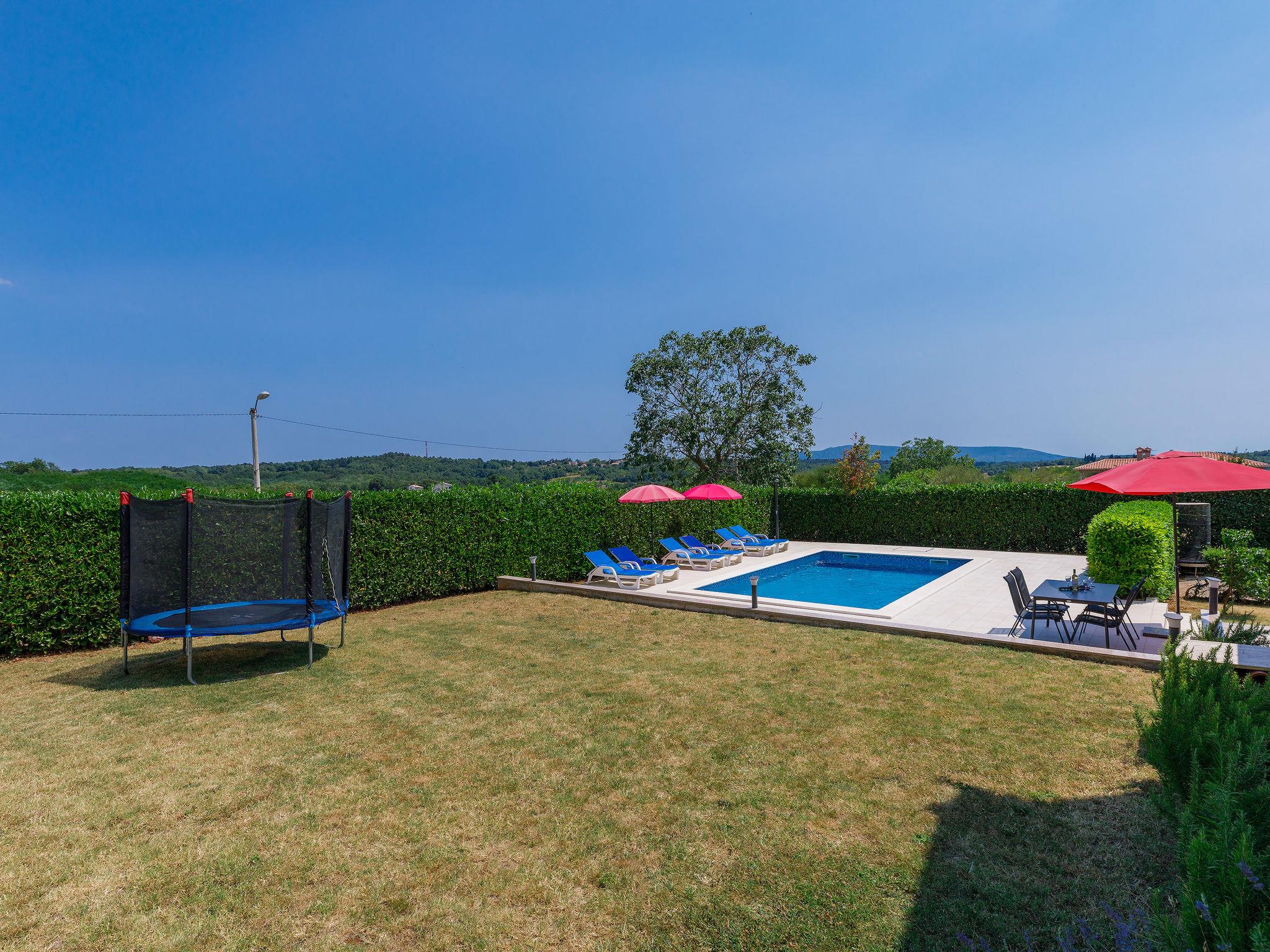 Semi-detached house "Goga", 2 storeys. In the hamlet Sv. Martin 9 km from the centre of Labin, 14 km from the sea, in the countryside. Private: property 700 m2 with wildlife garden, swimming pool angular (7 x 4 m, depth 150 cm, seasonal availability: 04.May. - 05.Oct.) with internal staircase. Outdoor shower, terrace (50 m2), garden furniture, barbecue, pool maintenance by the owner/gardener. In the house: internet access, trampoline, washing machine. Parking (for 4 cars) at the house on the premises. Shop 200 m, supermarket 9 km, restaurant 200 m, bus stop 8.6 km, pebble beach 14 km. The owner does not accept any youth groups. Please note: airfield 50 km from the property. Semi-detached house consists of 2 apartments rented as one unit.