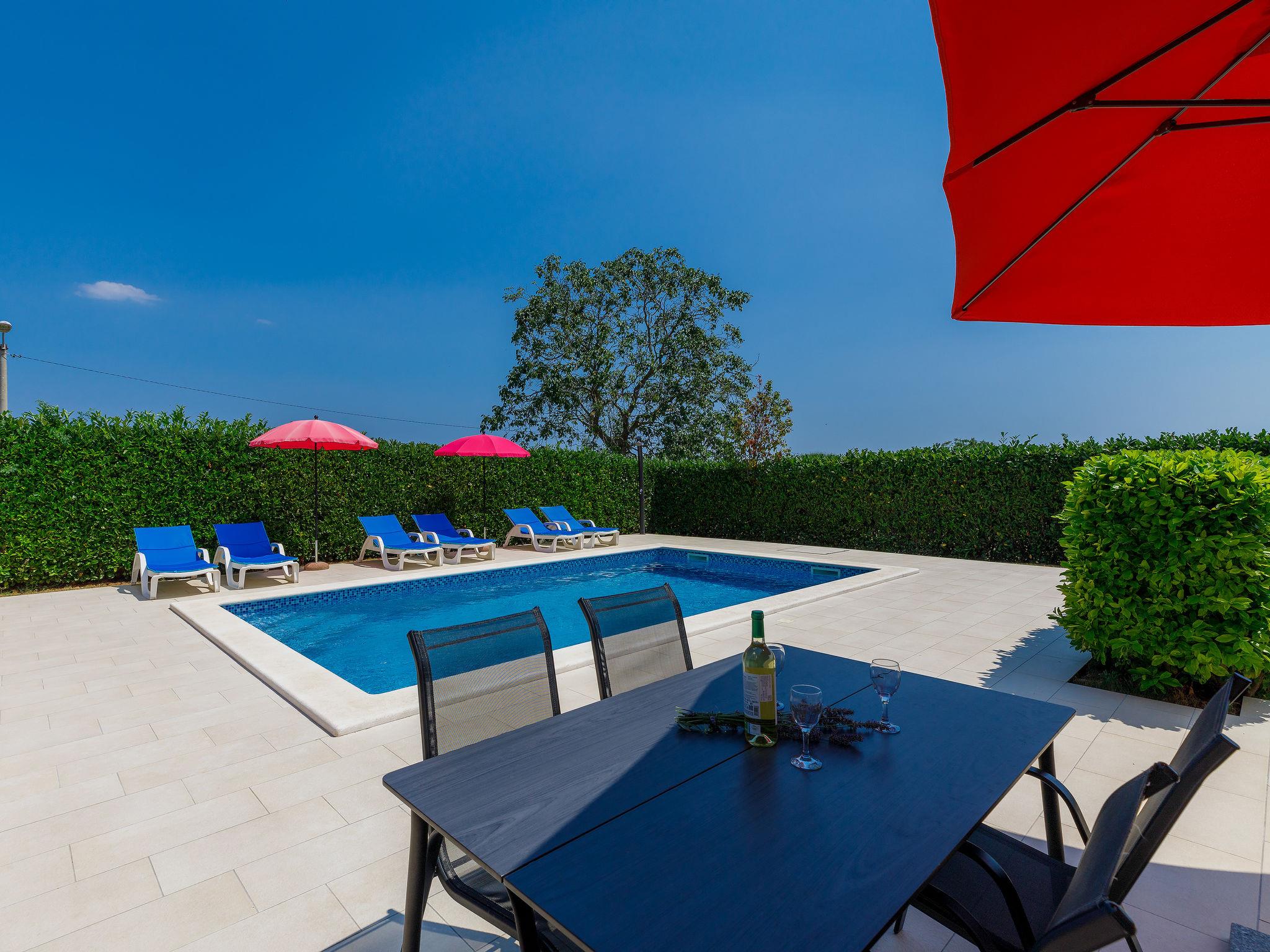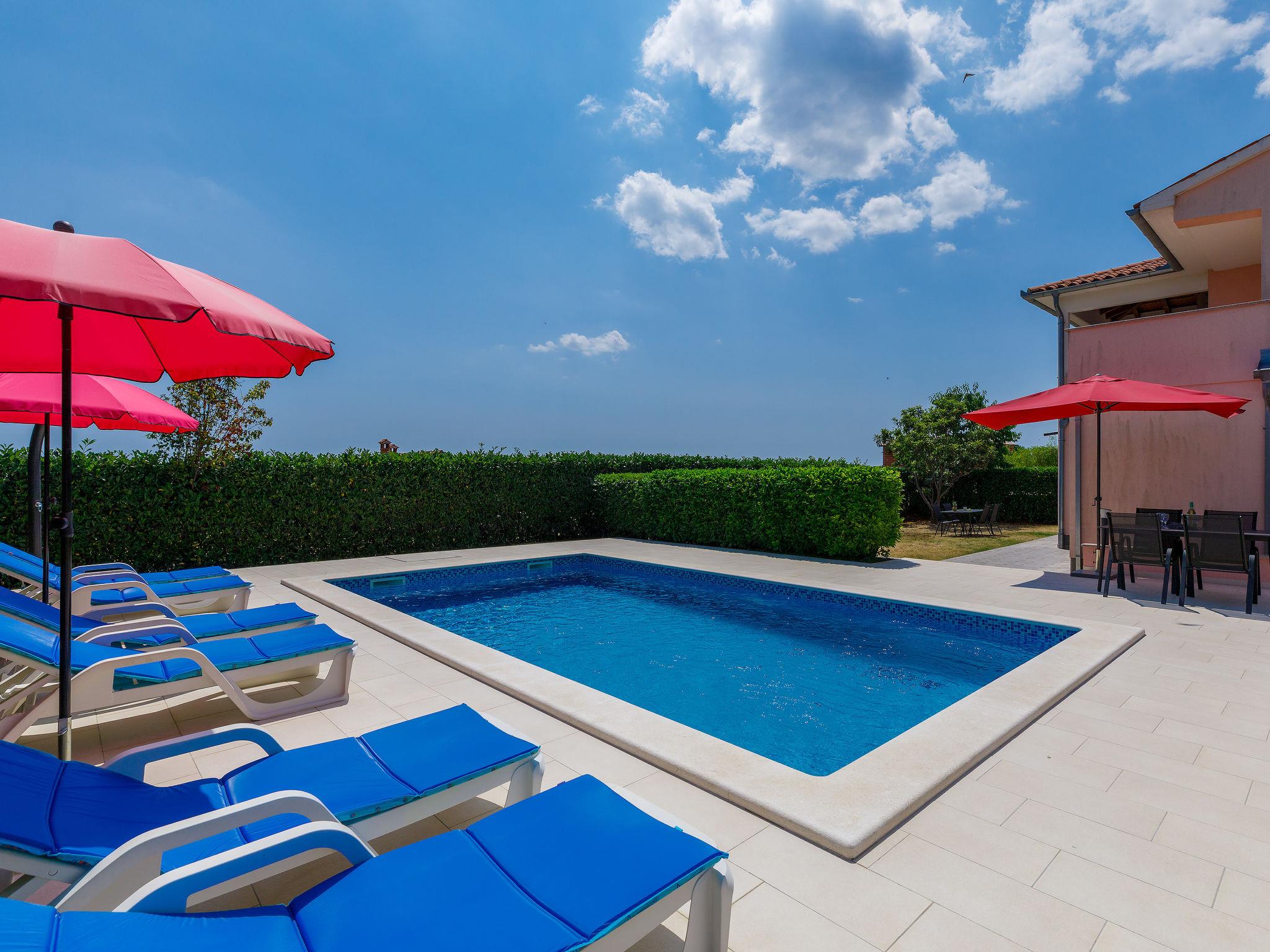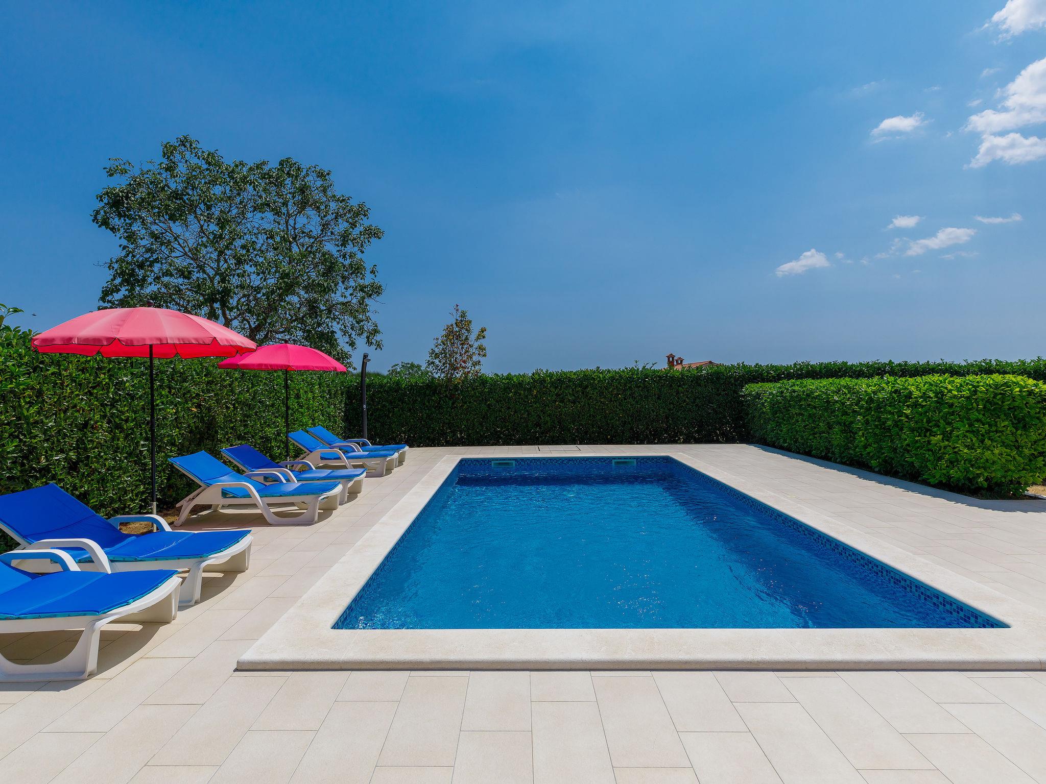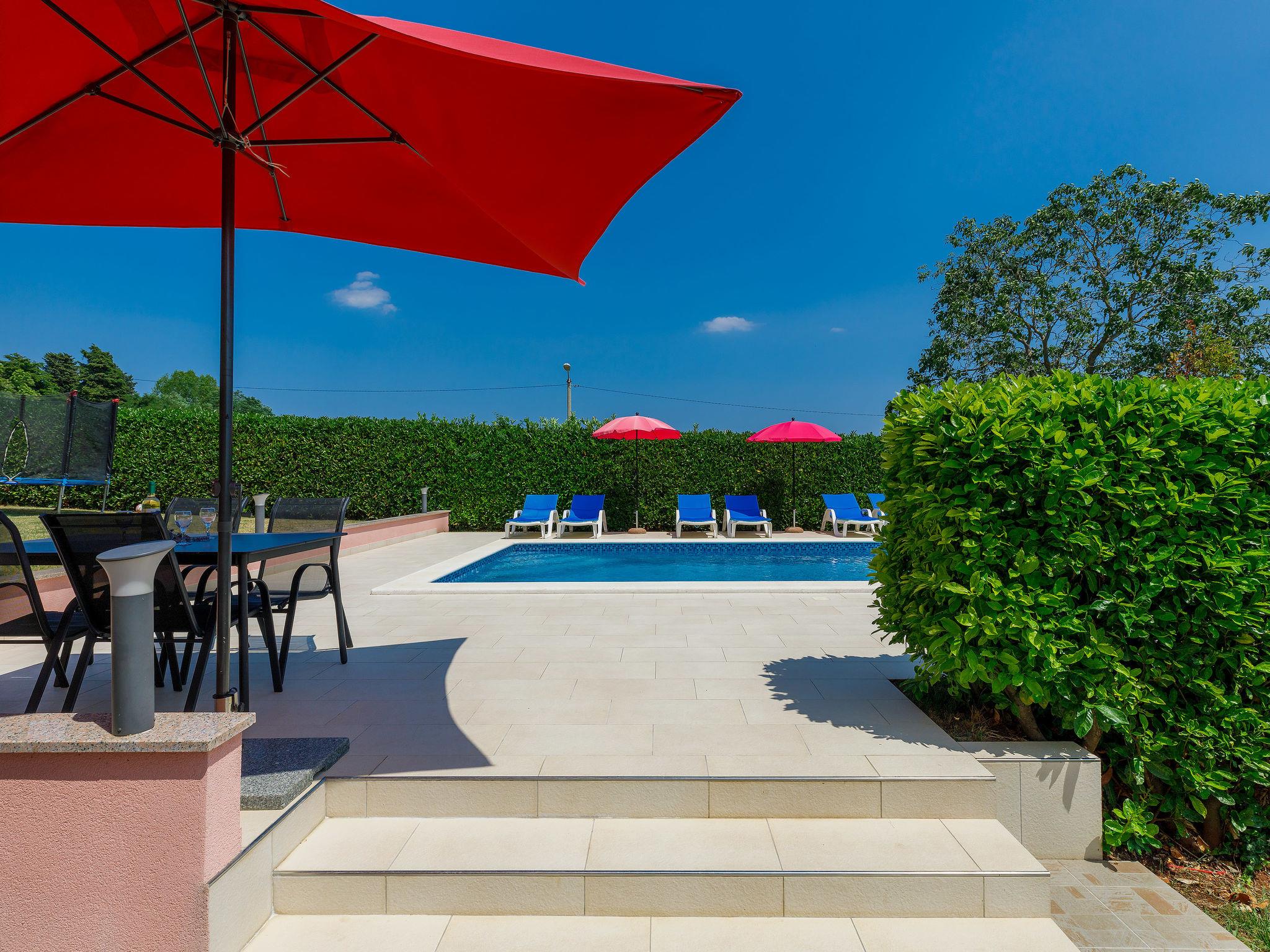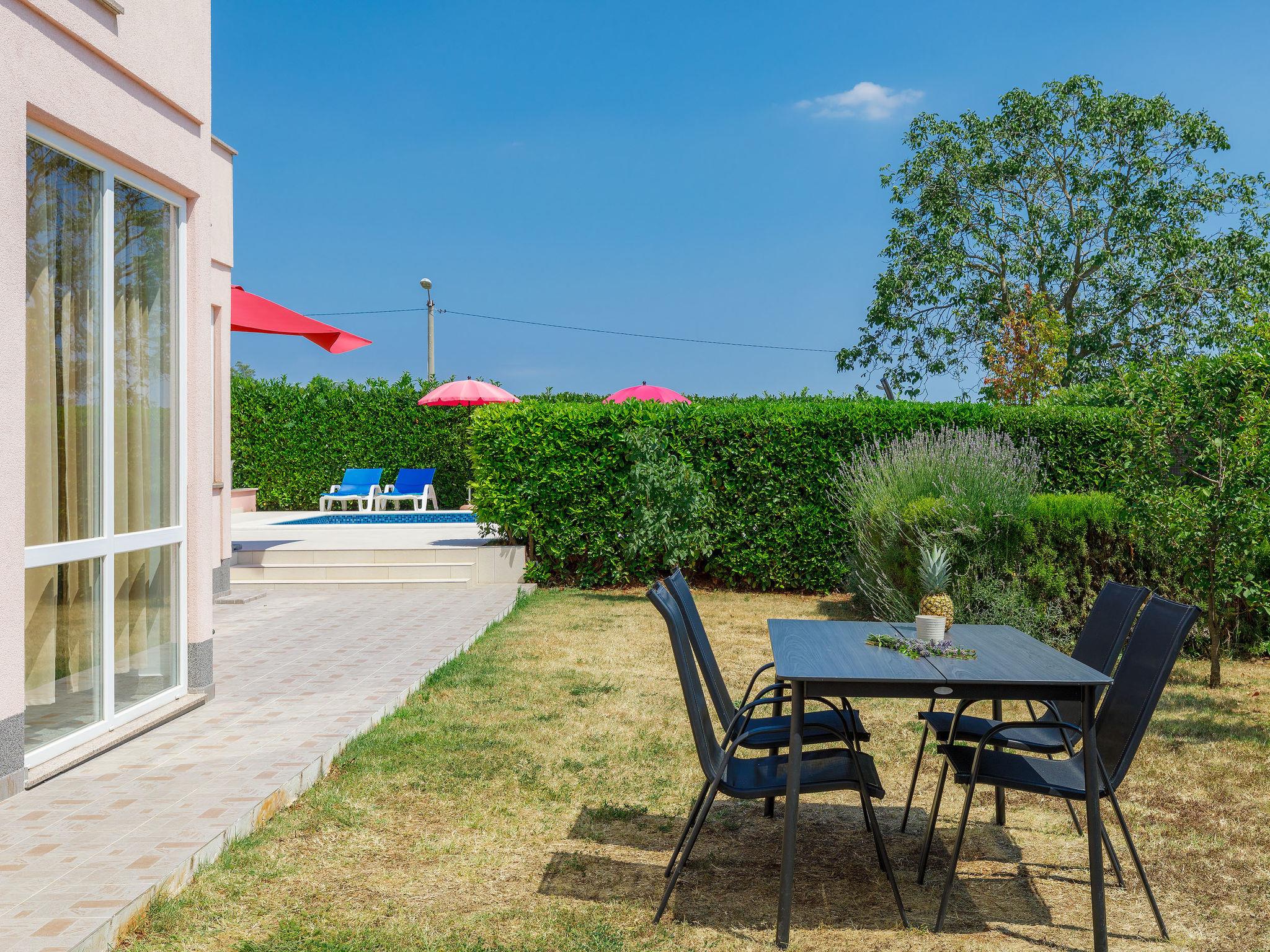 Semi-detached house "Goga", 2 storeys. In the hamlet Sv. Martin 9 km from the centre of Labin, 14 km from the sea, in the countryside. Private: property 700 m2 with wildlife garden, swimming pool angular (7 x 4 m, depth 150 cm, seasonal availability: 04.May. - 05.Oct.) with internal staircase. Outdoor shower, terrace (50 m2), garden furniture, barbecue, pool maintenance by the owner/gardener. In the house: internet access, trampoline, washing machine. Parking (for 4 cars) at the house on the premises. Shop 200 m, supermarket 9 km, restaurant 200 m, bus stop 8.6 km, pebble beach 14 km. The owner does not accept any youth groups. Please note: airfield 50 km from the property. Semi-detached house consists of 2 apartments rented as one unit.