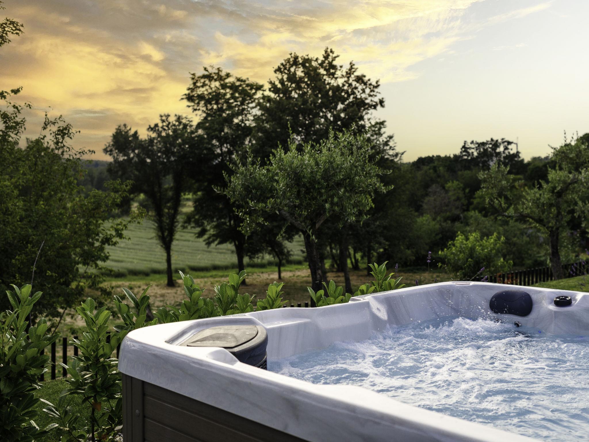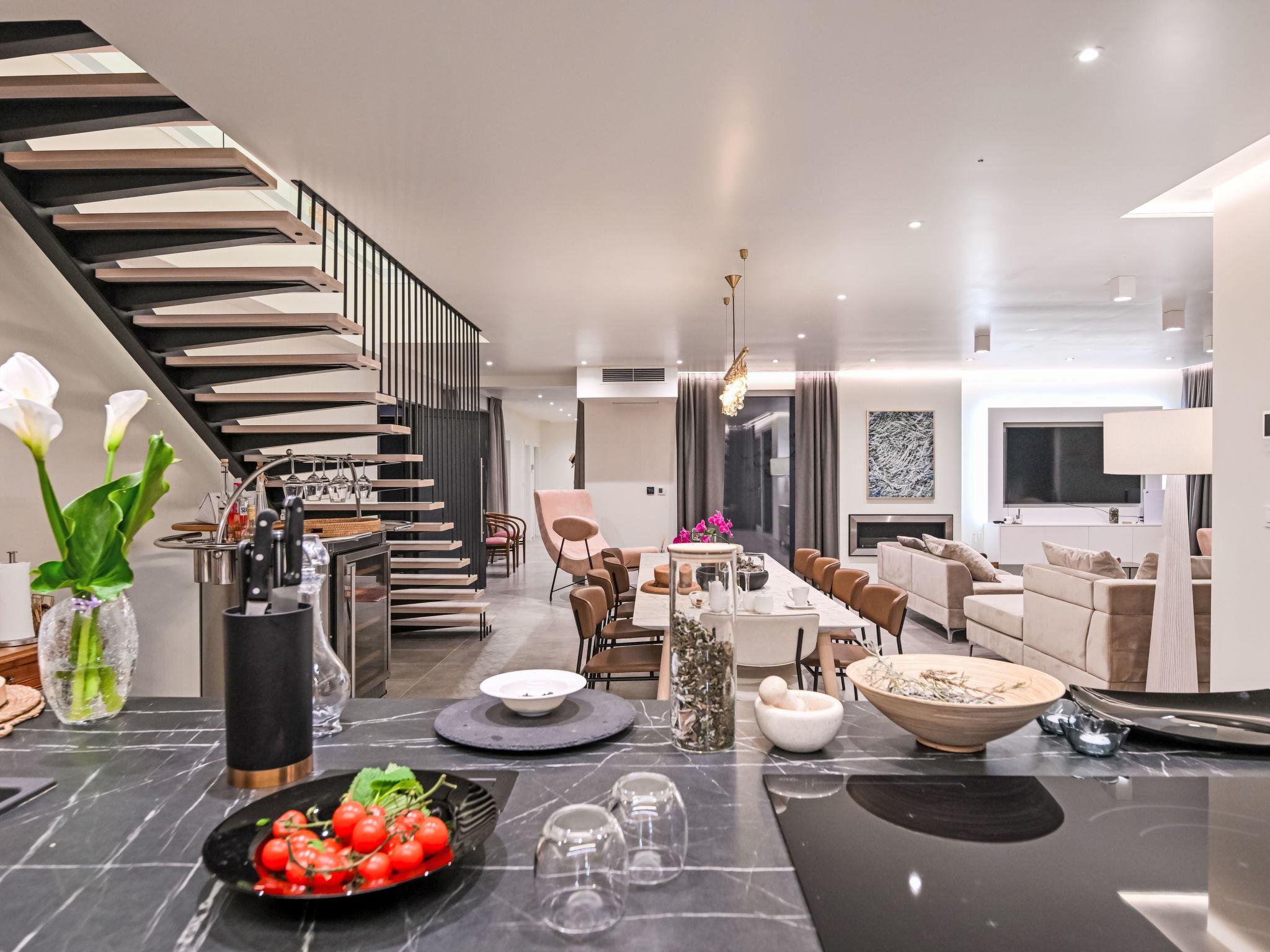 5-room villa 280 m2 on 2 levels. Very beautiful and luxurious furnishings: large living/dining room with satellite TV. Exit to the terrace, to the swimming pool. 1 room with 1 french bed (200 cm, length 210 cm), shower/WC and satellite TV. Exit to the garden. 1 room with 1 french bed (180 cm, length 210 cm), shower/bidet/WC and satellite TV. Exit to the terrace, to the swimming pool. Open kitchen (oven, dishwasher, 5 induction hot plates, toaster, kettle, microwave, freezer, electric coffee machine). Exit to the terrace, to the swimming pool. Shower, sep. WC. Underfloor heating. Upper floor: 1 room with 1 french bed (200 cm, length 210 cm), shower/bidet/WC and satellite TV. Exit to the balcony. 1 room with 1 french bed (200 cm, length 210 cm), shower/WC and satellite TV. Exit to the balcony. Floor heating, forced-air heating. Large balcony 30 m2, terrace 15 m2, roofed. Terrace furniture, balcony furniture, deck chairs. View of the countryside. Facilities: safe, iron, hair dryer. Internet (WiFi, free). Please note: non-smoking house. Fire extinguisher. Available: wine-cooler, 2 x ceramic heated lounger. One bedroom on the ground floor and pool area adapted for people with disabilities.