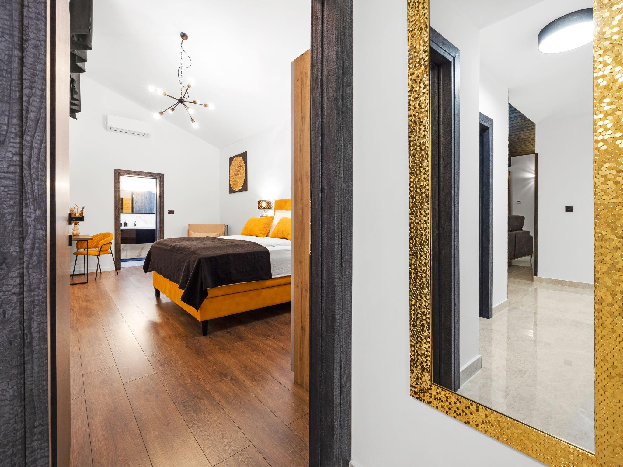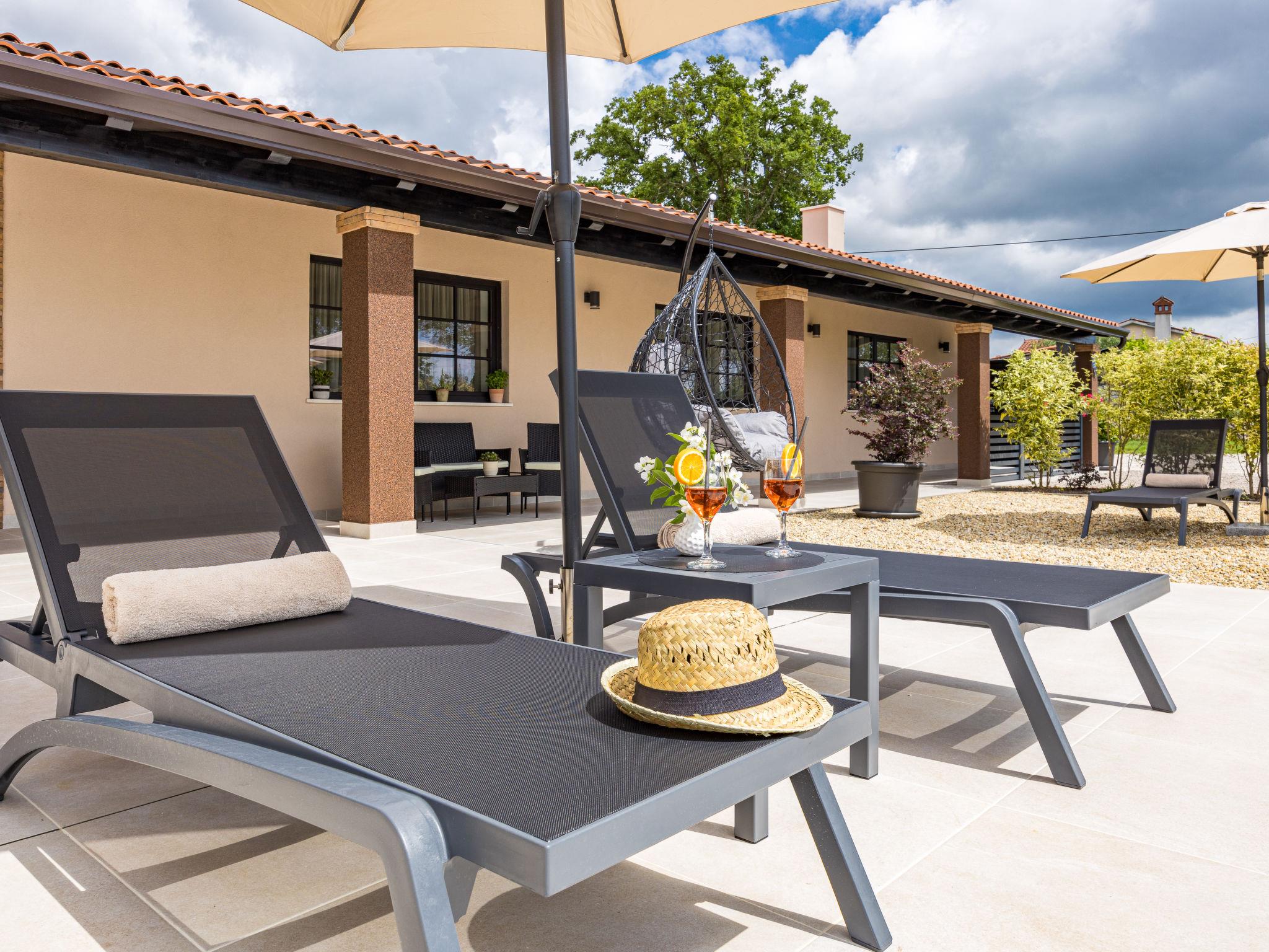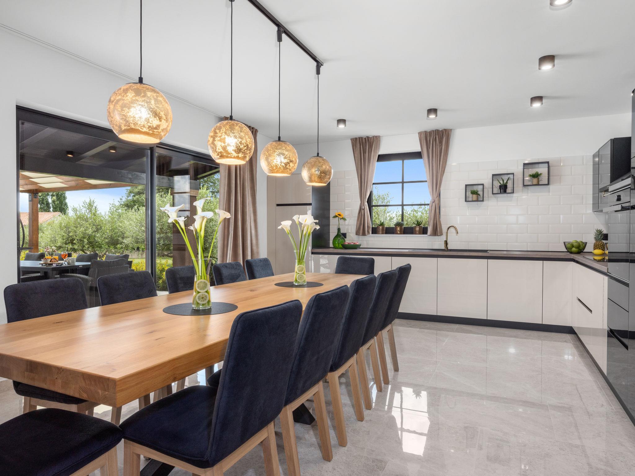 Very beautiful, luxurious single-family house "Villa Venezia". In the hamlet Markoci 6 km from the centre of Labin, 12 km from the centre of Rabac, in a quiet, sunny position, 12 km from the sea, in the countryside. Private: property 10'000 m2 with lawn and wildlife garden, swimming pool angular (40 m2, depth 140 cm, seasonal availability: 29.Mar. - 30.Oct.) with internal staircase. Outdoor shower, hot tub, table tennis, badminton, volleyball court, terrace, garden furniture, barbecue, pool maintenance by the owner/gardener. In the house: internet access, billiard table, washing machine. Parking (for 4 cars) at the house on the premises. Shop 1 km, supermarket 6 km, restaurant 1 km, bus stop 7.1 km, pebble beach 12 km. Please note: airfield 45 km from the property.