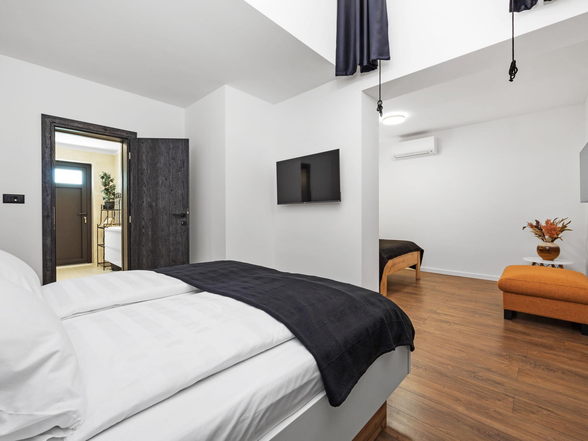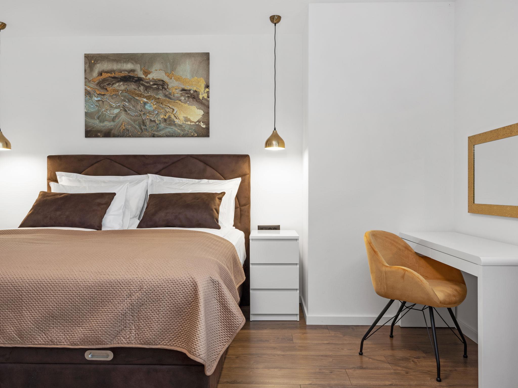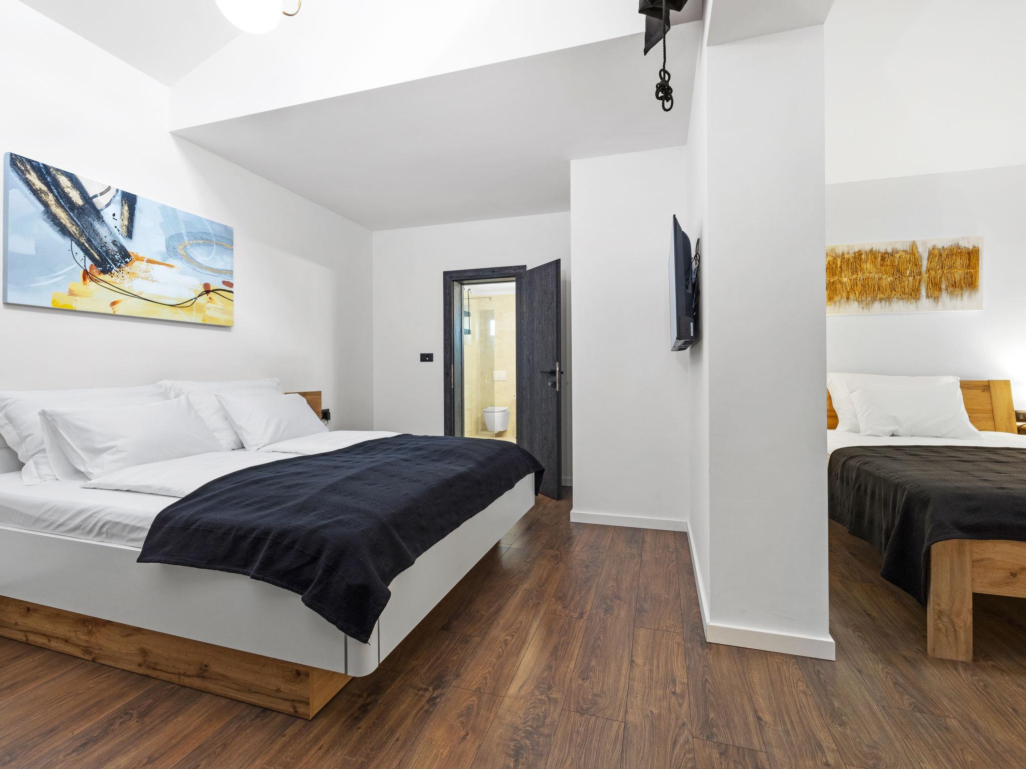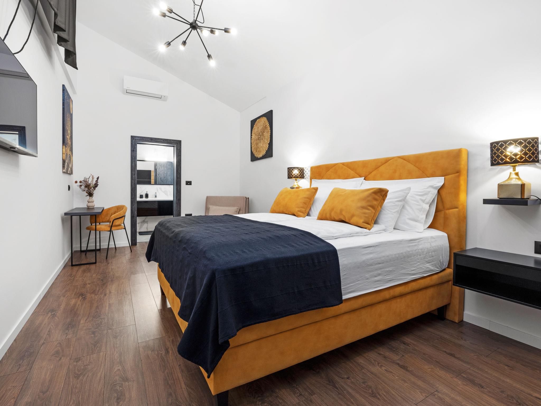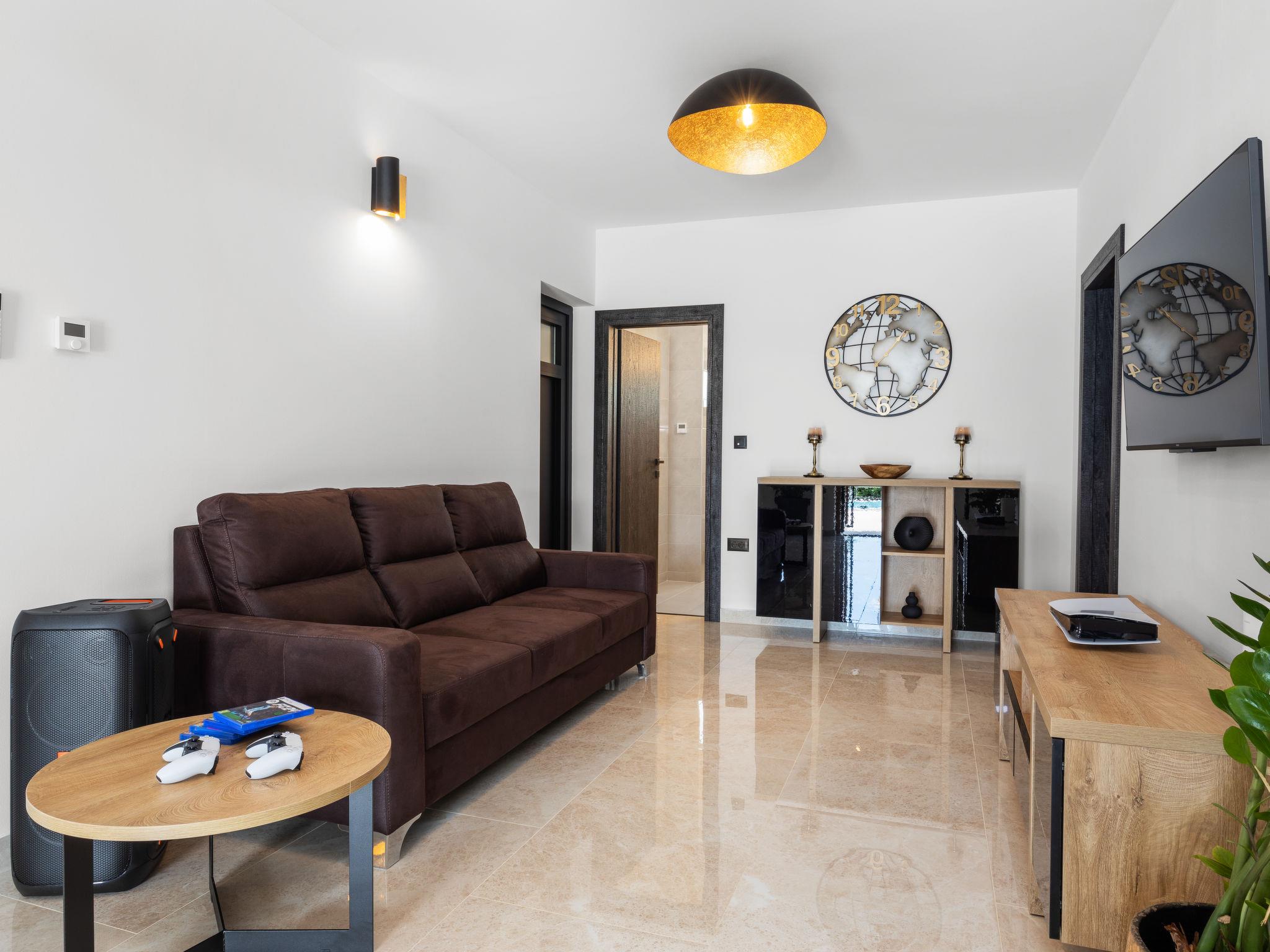 5-room villa 300 m2. Very comfortable and tasteful furnishings: large living/dining room with satellite TV and air conditioning. Exit to the terrace, to the swimming pool. 1 room with 1 french bed (180 cm, length 200 cm), satellite TV and air conditioning. 1 room with 1 sofabed (90 cm, length 200 cm), 1 french bed (180 cm, length 200 cm), satellite TV and air conditioning. 1 room with 1 bed (140 cm, length 200 cm), 1 french bed (180 cm, length 200 cm), shower/WC, double hand-basin, satellite TV and air conditioning. 1 room with 1 sofabed (90 cm, length 200 cm), 1 french bed (180 cm, length 200 cm), shower/WC, satellite TV and air conditioning. Billiard room with open-hearth fireplace, dining table, kitchen corner, shower/WC and satellite TV. Exit to the terrace. Open kitchen (oven, dishwasher, 4 induction hot plates, toaster, kettle, microwave, freezer, electric coffee machine) with air conditioning. Exit to the terrace, to the swimming pool. Shower/WC, sep. WC. Electric heating, air-conditioning. Terrace 100 m2 partly roofed. Terrace furniture, barbecue (portable), deck chairs. Facilities: washing machine, iron, hair dryer. Internet (WiFi, free). Please note: non-smoking house. Fire extinguisher. Available: playstation 5 (included).