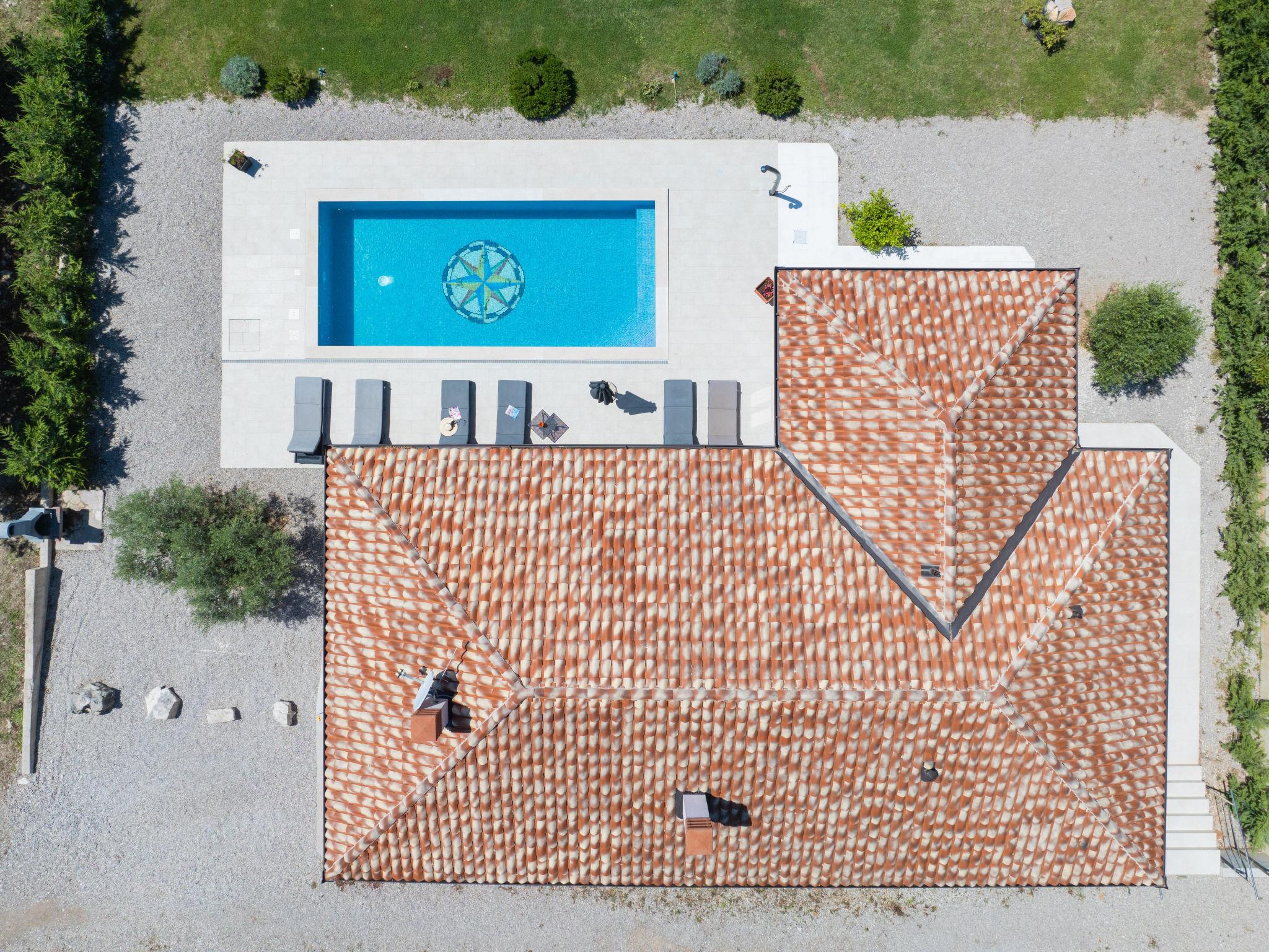 4-room house 105 m2. Living/dining room with satellite TV and air conditioning. Exit to the terrace, to the swimming pool. 1 room with 1 french bed (180 cm, length 200 cm), satellite TV and air conditioning. 1 room with 1 french bed (180 cm, length 200 cm), satellite TV and air conditioning. Exit to the terrace, to the swimming pool. 1 room with 1 bed (90 cm, length 200 cm), 1 pull-out bed (90 cm, length 200 cm), shower/WC. Open kitchen (oven, dishwasher, 4 induction hot plates, toaster, kettle, microwave, freezer, electric coffee machine). Exit to the terrace, to the swimming pool. 2 showers/WC. Electric heating, air-conditioning. Terrace 20 m2, roofed. Terrace furniture, deck chairs. Partial view of the sea. Facilities: washing machine, dryer, iron, hair dryer. Internet (WiFi, free). Please note: non-smoking house.