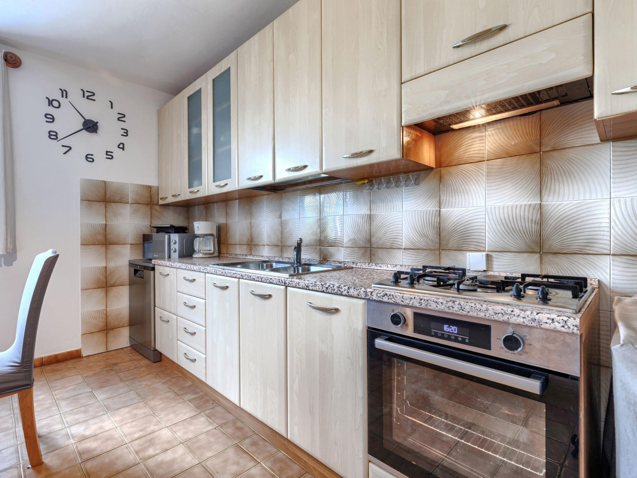 3-room semi-detached house 100 m2 on 2 levels. Living room with satellite TV and air conditioning. Exit to the terrace. Kitchen (1 hot plate, oven, dishwasher, 3 gas rings, toaster, kettle, microwave, freezer, electric coffee machine) with dining table. Shower/WC. Upper floor: 1 room with 1 french bed (200 cm, length 200 cm), satellite TV and air conditioning. Exit to the balcony. 1 room with 1 french bed (160 cm, length 200 cm), satellite TV. Shower/WC. Balcony 8 m2, terrace 20 m2. Terrace furniture, balcony furniture, deck chairs. Partial view of the sea. Facilities: iron, hair dryer. Internet (WiFi, free). Please note: non-smoking house.