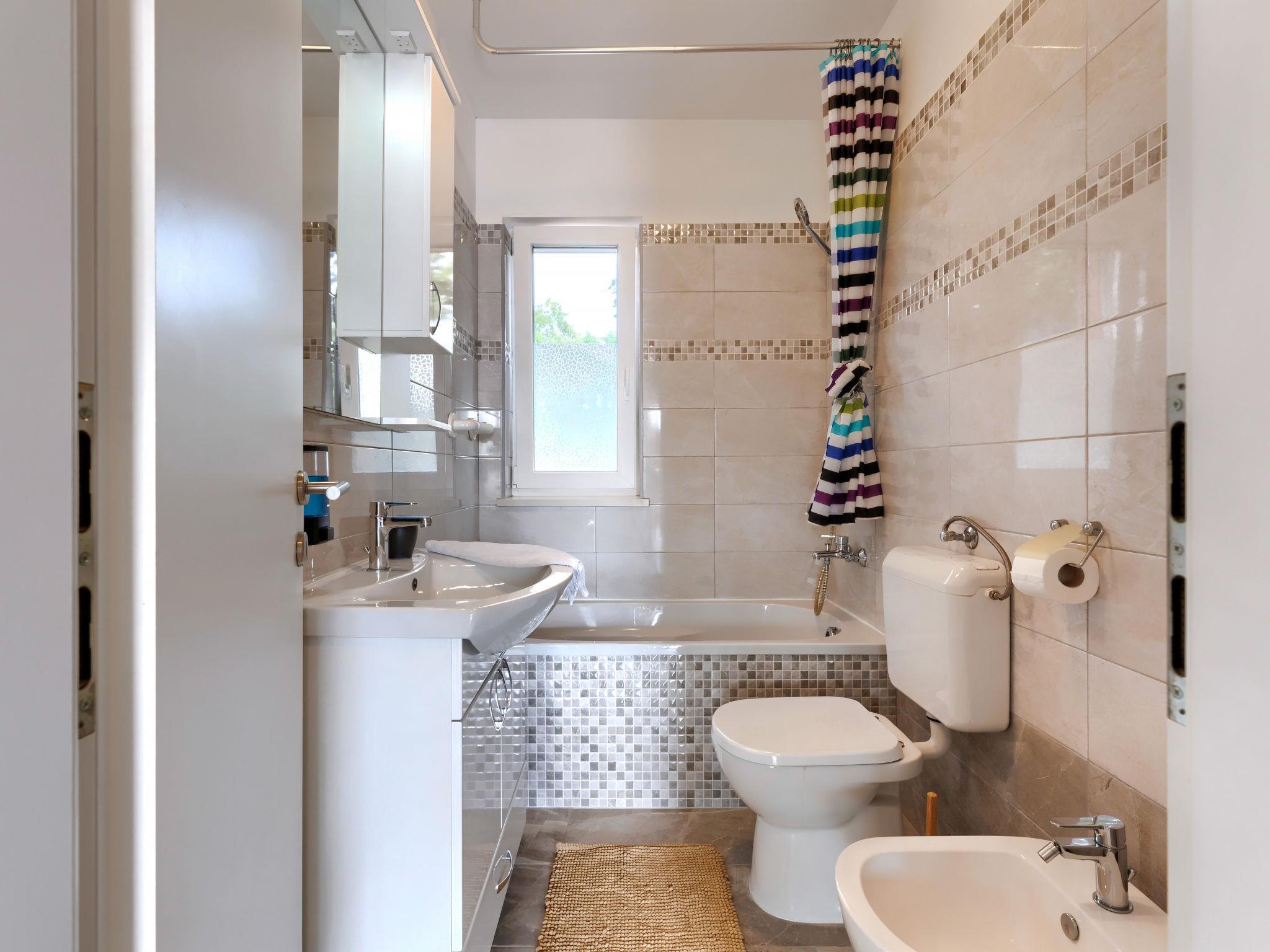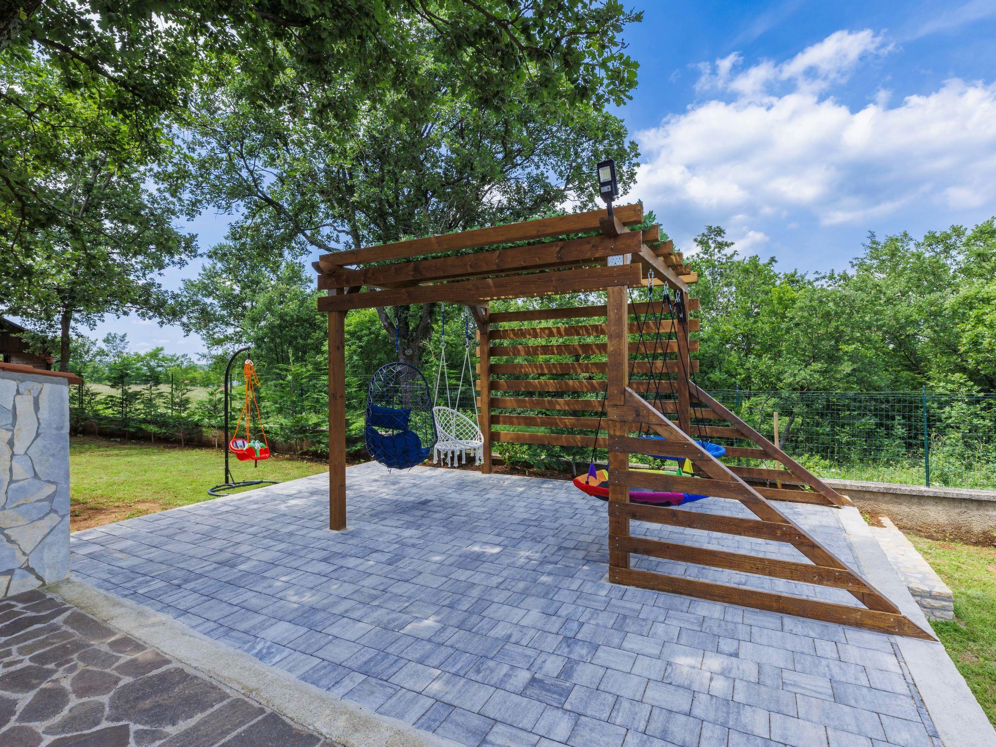 Single-family house "Villa Comottin", 2 storeys, built in 2016. In the hamlet Tomazici 5 km from the centre of Labin, 10 km from the centre of Rabac, 10 km from the sea. Private: property 1'000 m2 with lawn and trees, swimming pool (7 x 4 m, 33 m2, depth 150 cm, seasonal availability: 01.May. - 02.Oct.). Outdoor shower, pool house, terrace (15 m2), garden furniture, barbecue (swing). In the house: internet access, washing machine. Parking (for 4 cars) at the house on the premises. Supermarket 2 km, bus stop 2.2 km, pebble beach 10 km. Marina 10 km. Part of the house is closed and unoccupied.