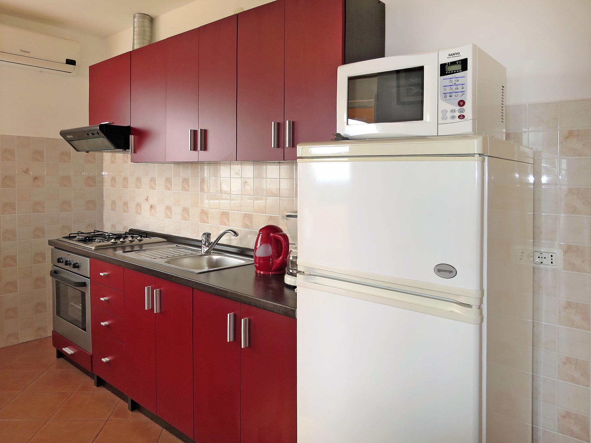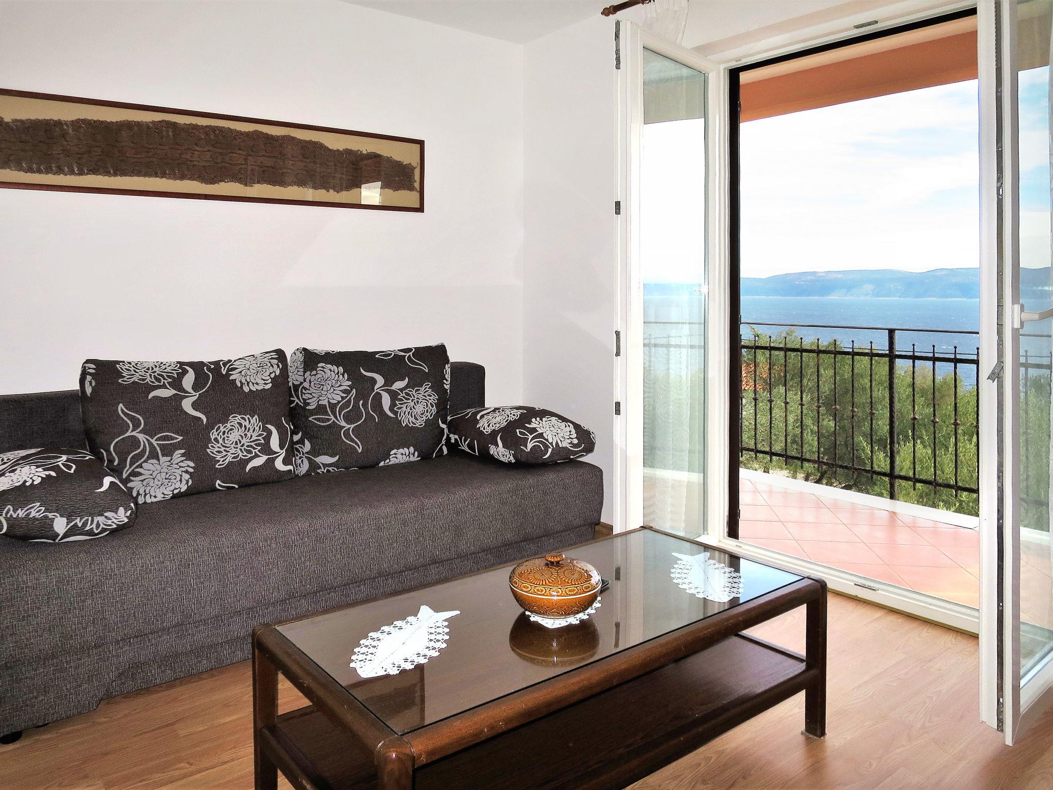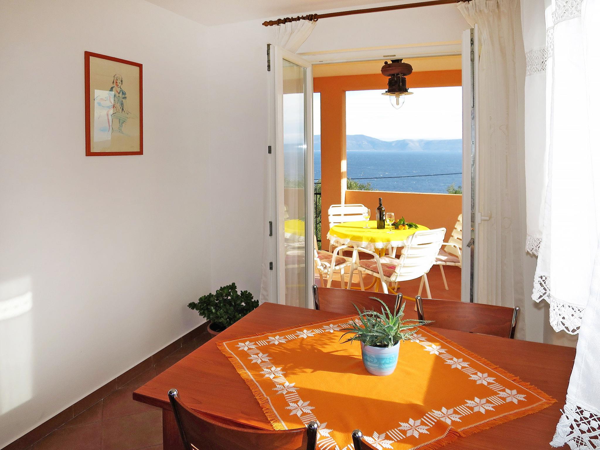"Elsa", 2-room apartment 40 m2 on 1st floor. Living room with 1 double sofabed (160 cm), satellite TV (flat screen). Exit to the balcony. 1 room with 1 french bed (160 cm). Kitchen (1 hot plate, oven, 3 gas rings, toaster, kettle, microwave, freezer, electric coffee machine) with dining table, air conditioning. Exit to the balcony. Shower/bidet/WC. No heating option. Balcony. Balcony furniture. View of the sea. Facilities: Internet (WiFi, free). Please note: non-smokers only.