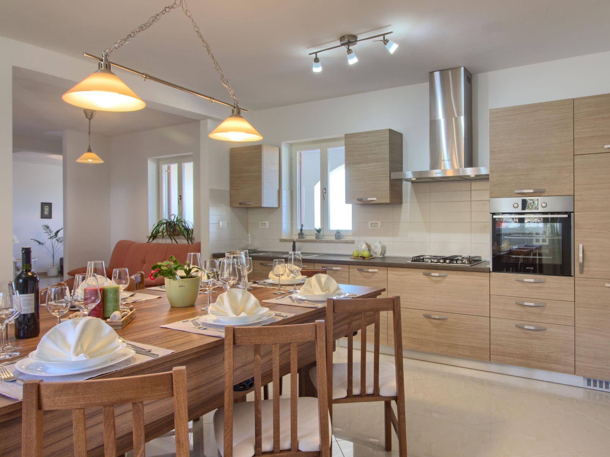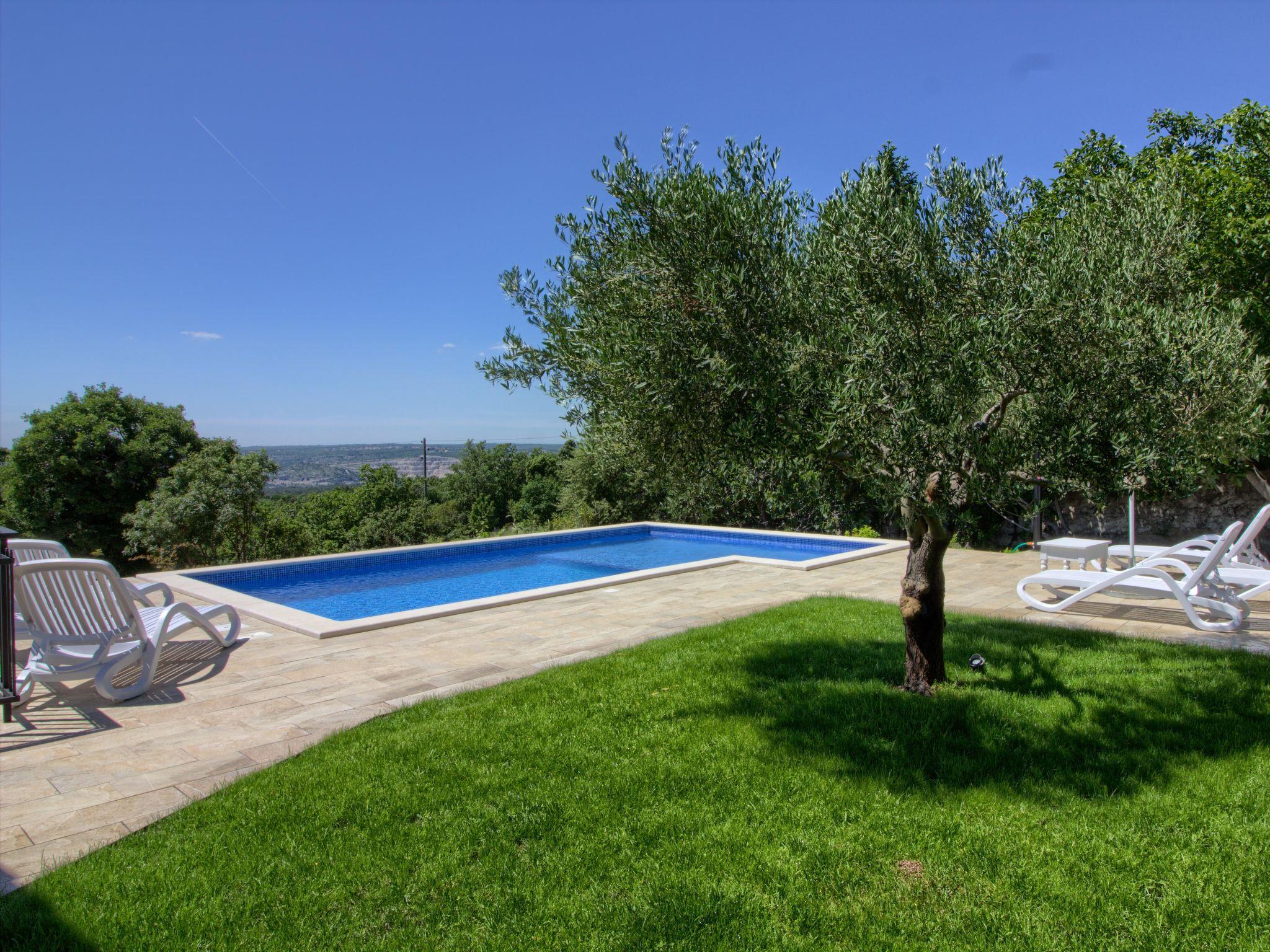Single-family house "Marevista". In the hamlet Brovinje 15 km from the centre of Labin, in a sunny, elevated position, 2 km from the sea, 2 km from the beach. Private: property 1'000 m2 (fenced), garden with lawn and wildlife garden, swimming pool (33 m2, depth 70 - 140 cm, seasonal availability: 04.May. - 26.Oct.) with internal staircase. Unconventional pool shape. Outdoor shower, table tennis, barbecue, children's playground (swing). In the house: internet access, billiard table, table football, washing machine. Parking at the house on the premises. Shop 2 km, restaurant 2 km, bus stop 16.7 km, pebble beach 2 km, rocky beach 2 km. Surf school 10 km, tennis 18 km, walking paths from the house 50 m, cycle lane 100 m.