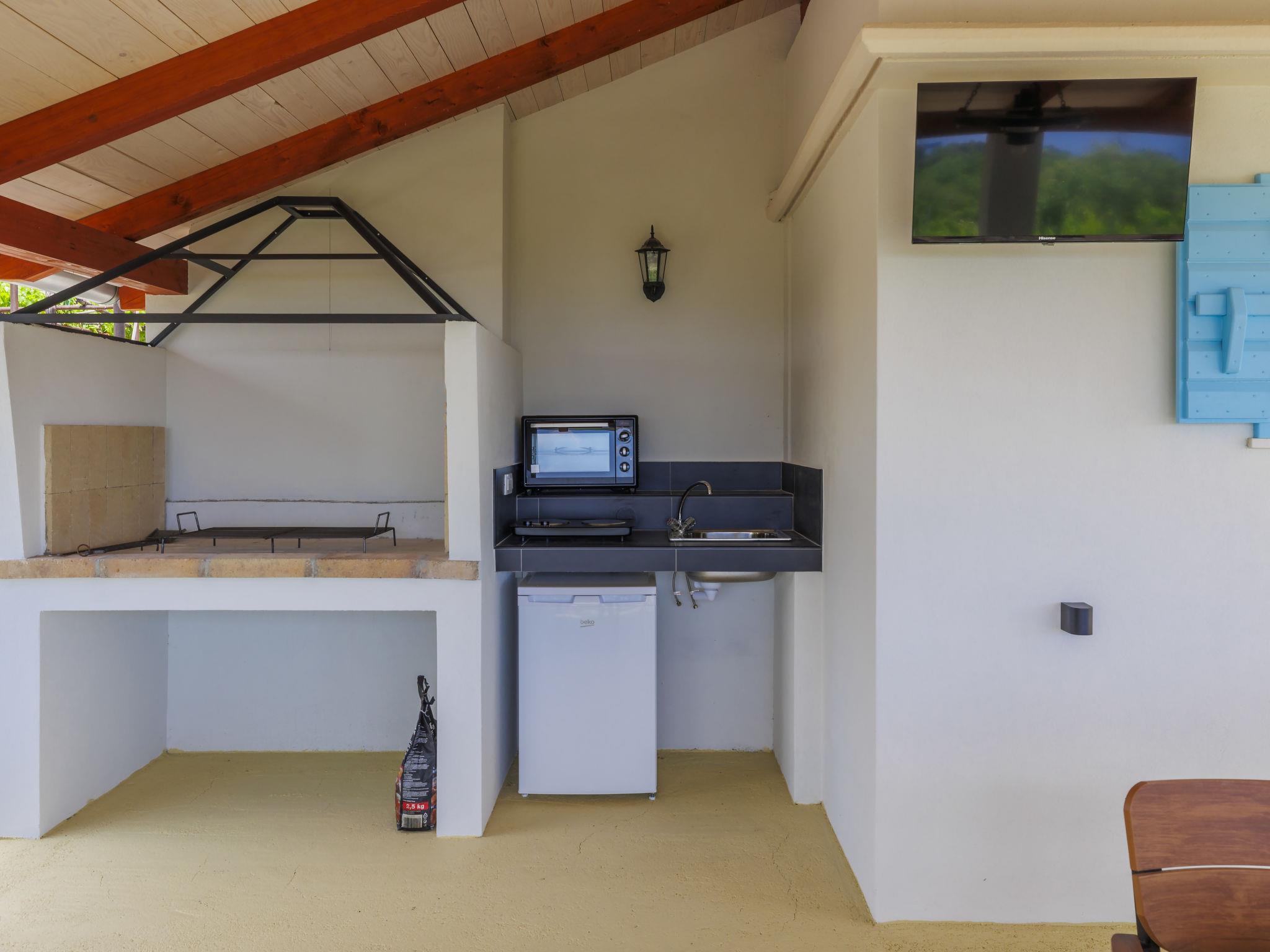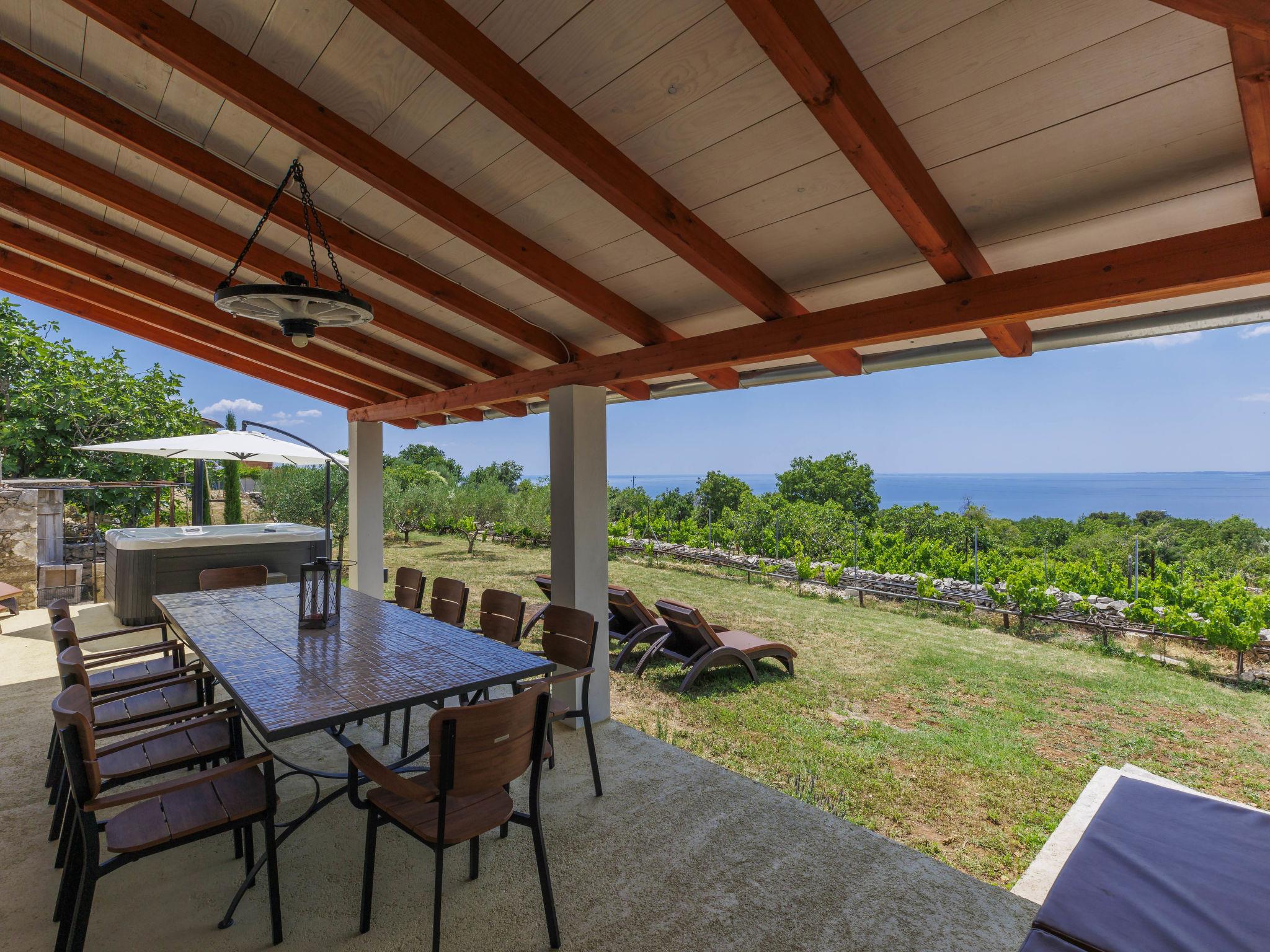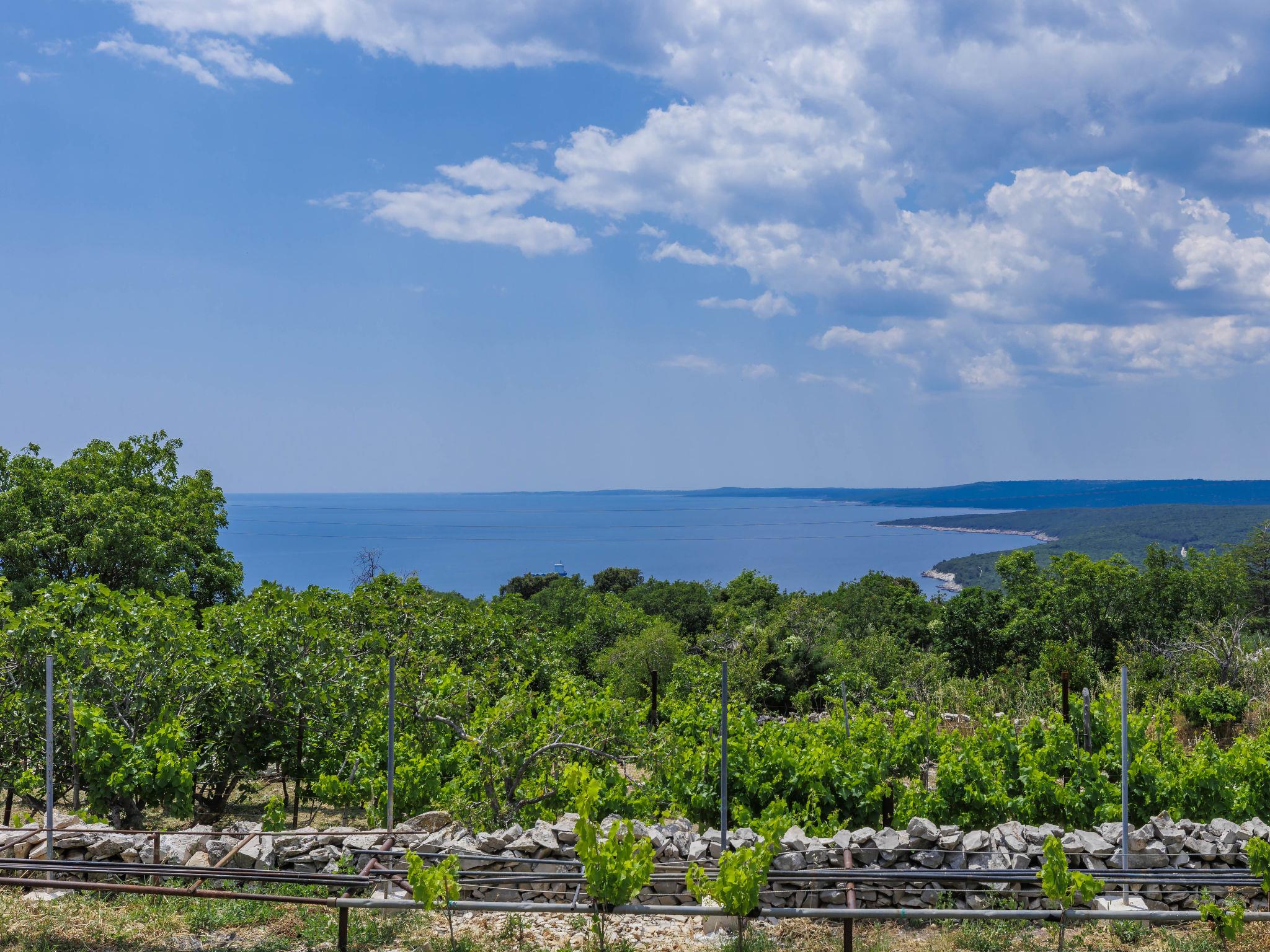 Semi-detached house "Di Nelo". In the hamlet Brovinje 15 km from the centre of Labin, in an elevated position, 3 km from the sea, 3 km from the beach, in a cul-de-sac. Private: property 1'000 m2 (fenced), garden with lawn. Outdoor shower, hot tub, terrace (45 m2), garden furniture, barbecue. In the house: internet access, washing machine. Parking (for 3 cars) at the house on the premises. Shop 2 km, restaurant 2 km, bus stop 17 km, pebble beach 3 km, rocky beach 3 km. Surf school 10 km, tennis 18 km, walking paths from the house 50 m, cycle lane 100 m.