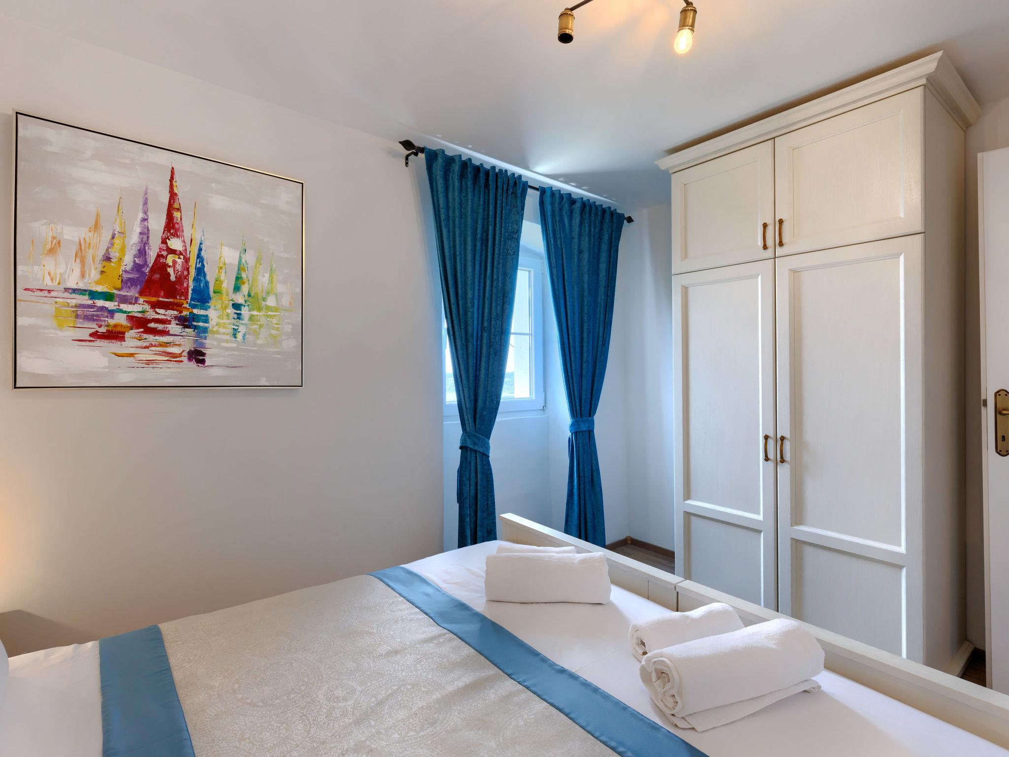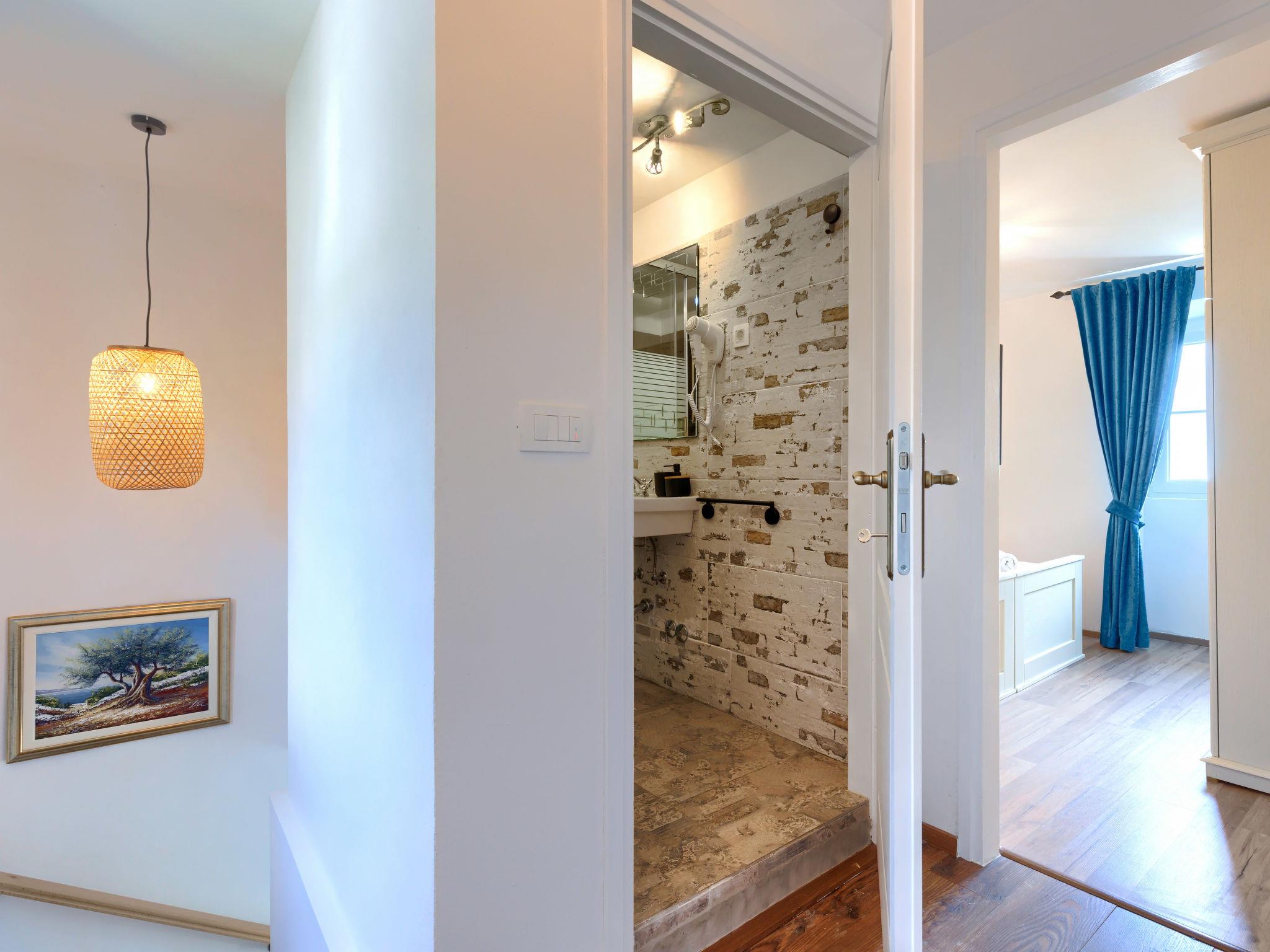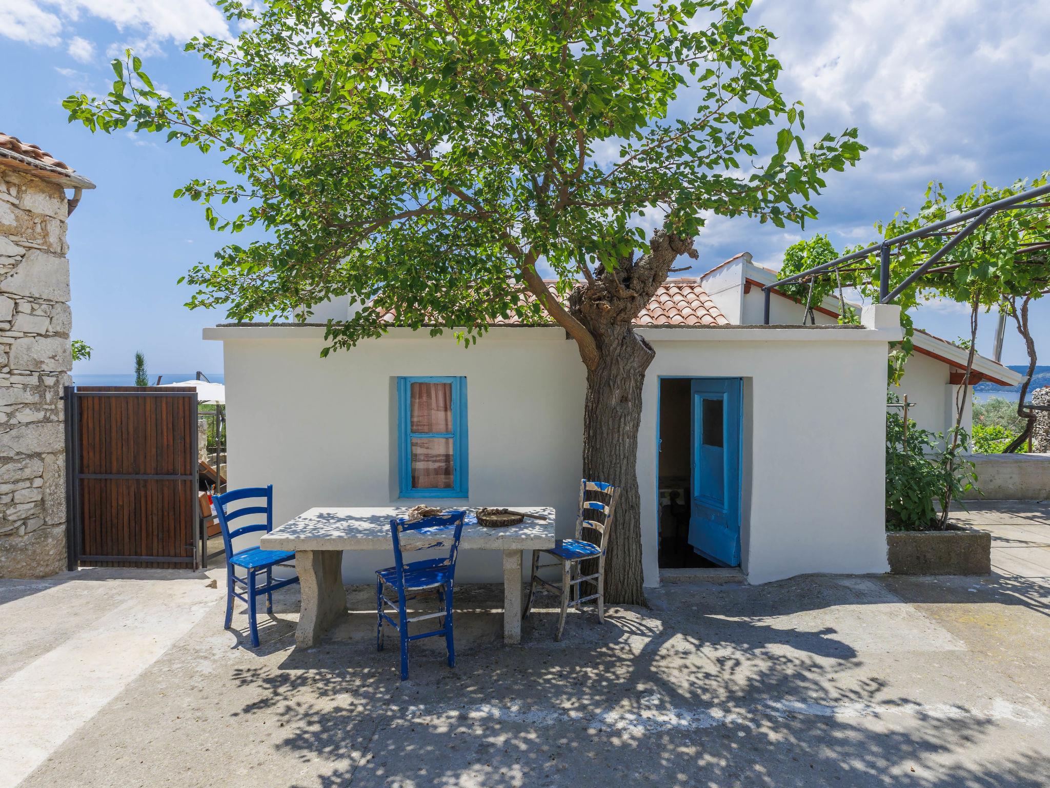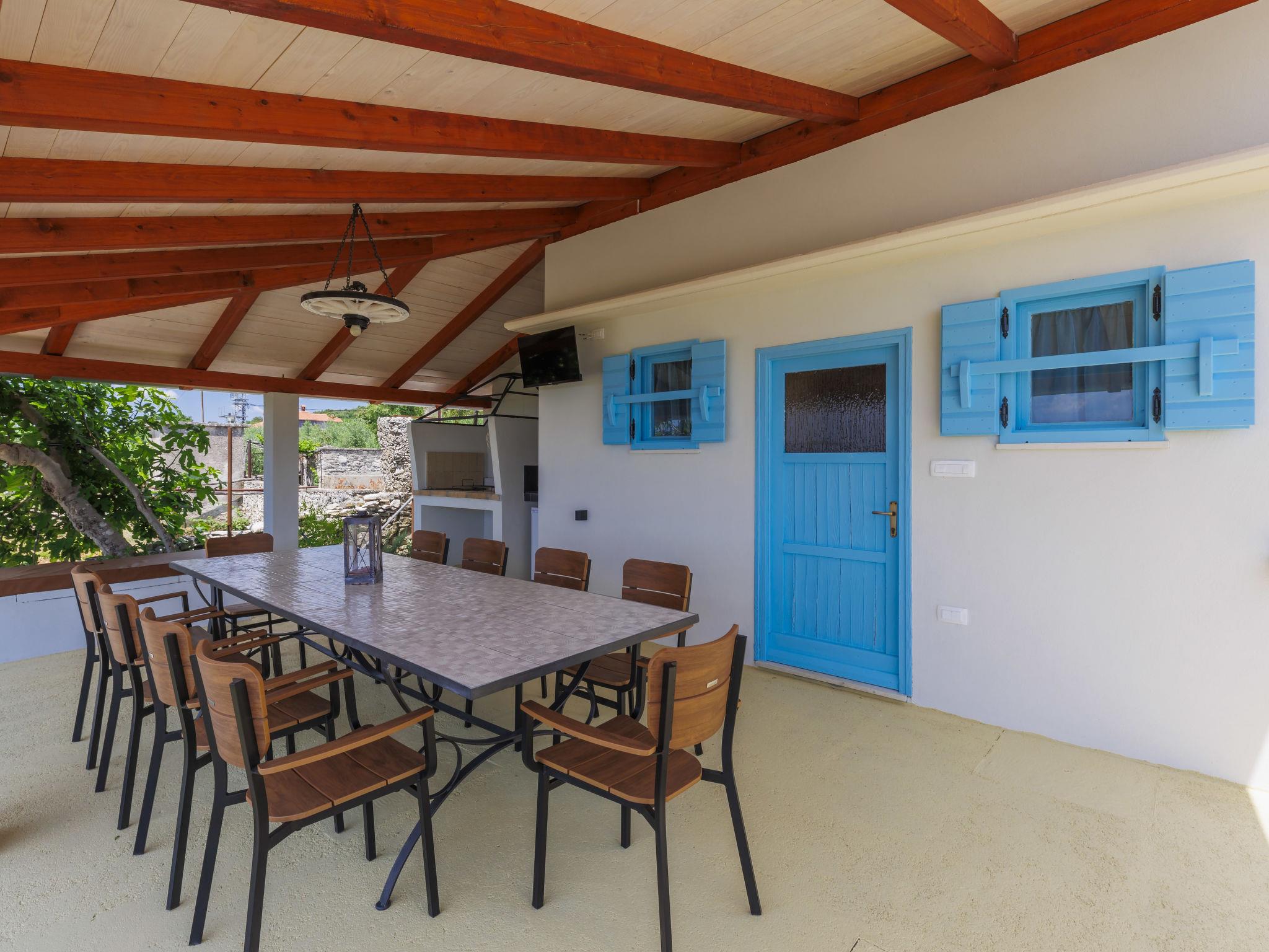 Semi-detached house "Di Nelo". In the hamlet Brovinje 15 km from the centre of Labin, in an elevated position, 3 km from the sea, 3 km from the beach, in a cul-de-sac. Private: property 1'000 m2 (fenced), garden with lawn. Outdoor shower, hot tub, terrace (45 m2), garden furniture, barbecue. In the house: internet access, washing machine. Parking (for 3 cars) at the house on the premises. Shop 2 km, restaurant 2 km, bus stop 17 km, pebble beach 3 km, rocky beach 3 km. Surf school 10 km, tennis 18 km, walking paths from the house 50 m, cycle lane 100 m.