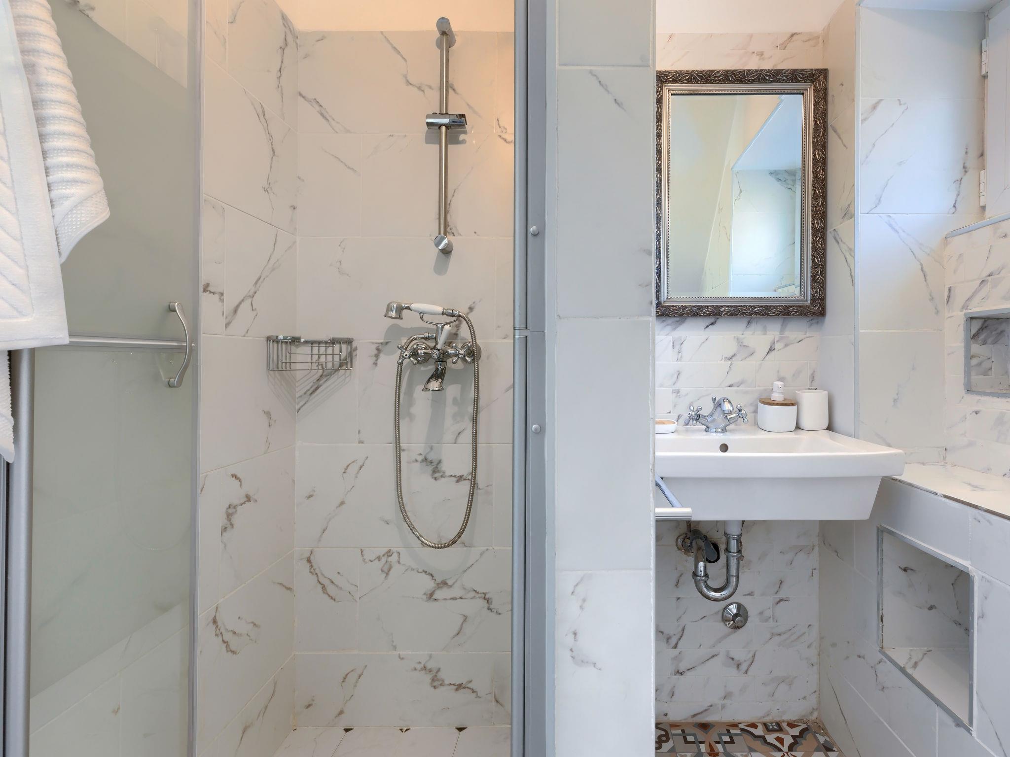 3-room semi-detached house 80 m2 on 2 levels. Dining room with satellite TV, flat screen and air conditioning. Open kitchen (oven, dishwasher, 4 ceramic glass hob hotplates, kettle, microwave, freezer, electric coffee machine). Shower/WC. Upper floor: 1 room with 2 beds (80 cm, length 200 cm), air conditioning. 1 room with 3 beds (90 cm, length 200 cm), air conditioning. Shower/WC. Deck chairs. Beautiful view of the sea. Facilities: safe, baby cot, hair dryer. Internet (WiFi, free). Maximum 2 pets/ dogs allowed.