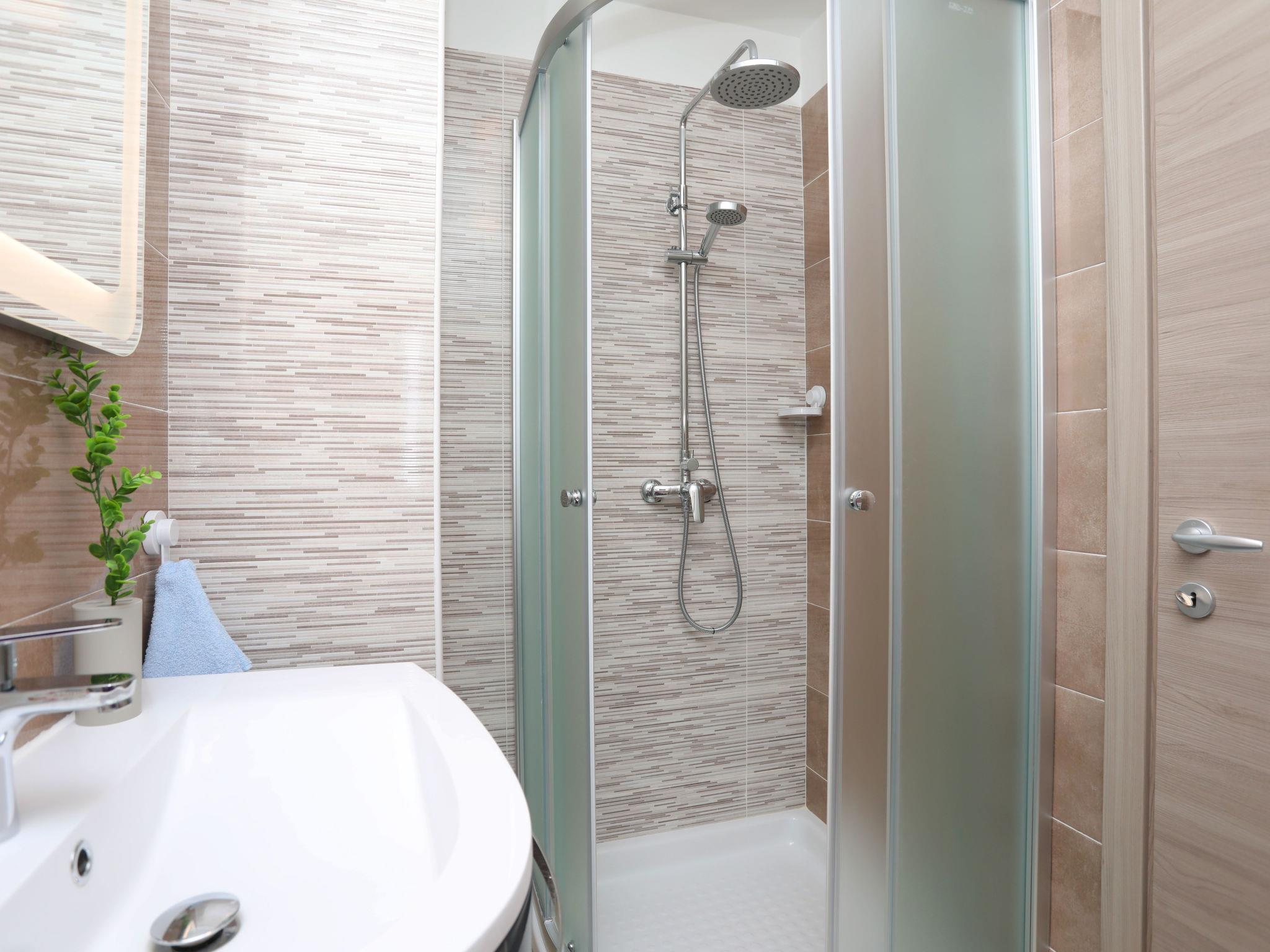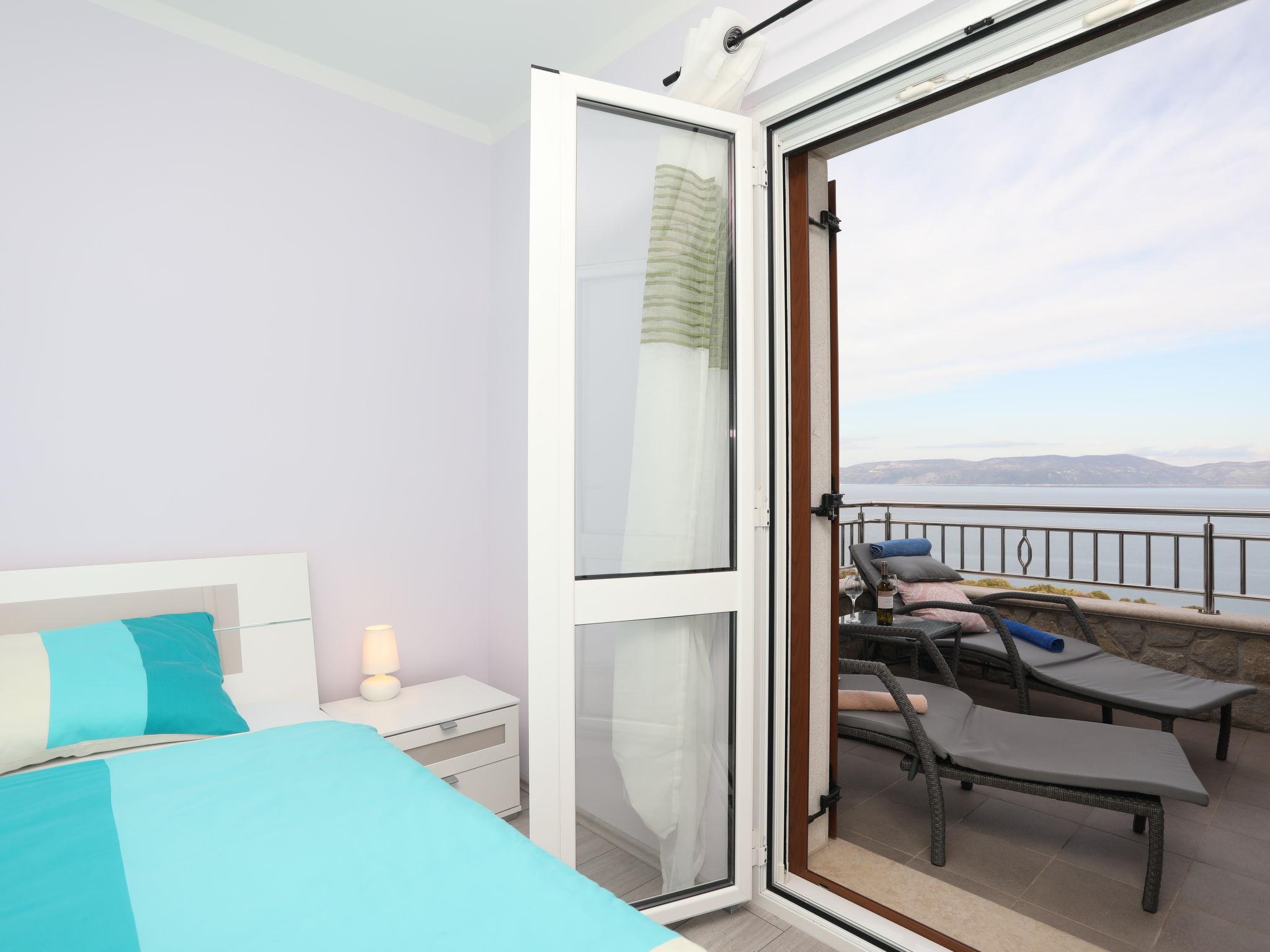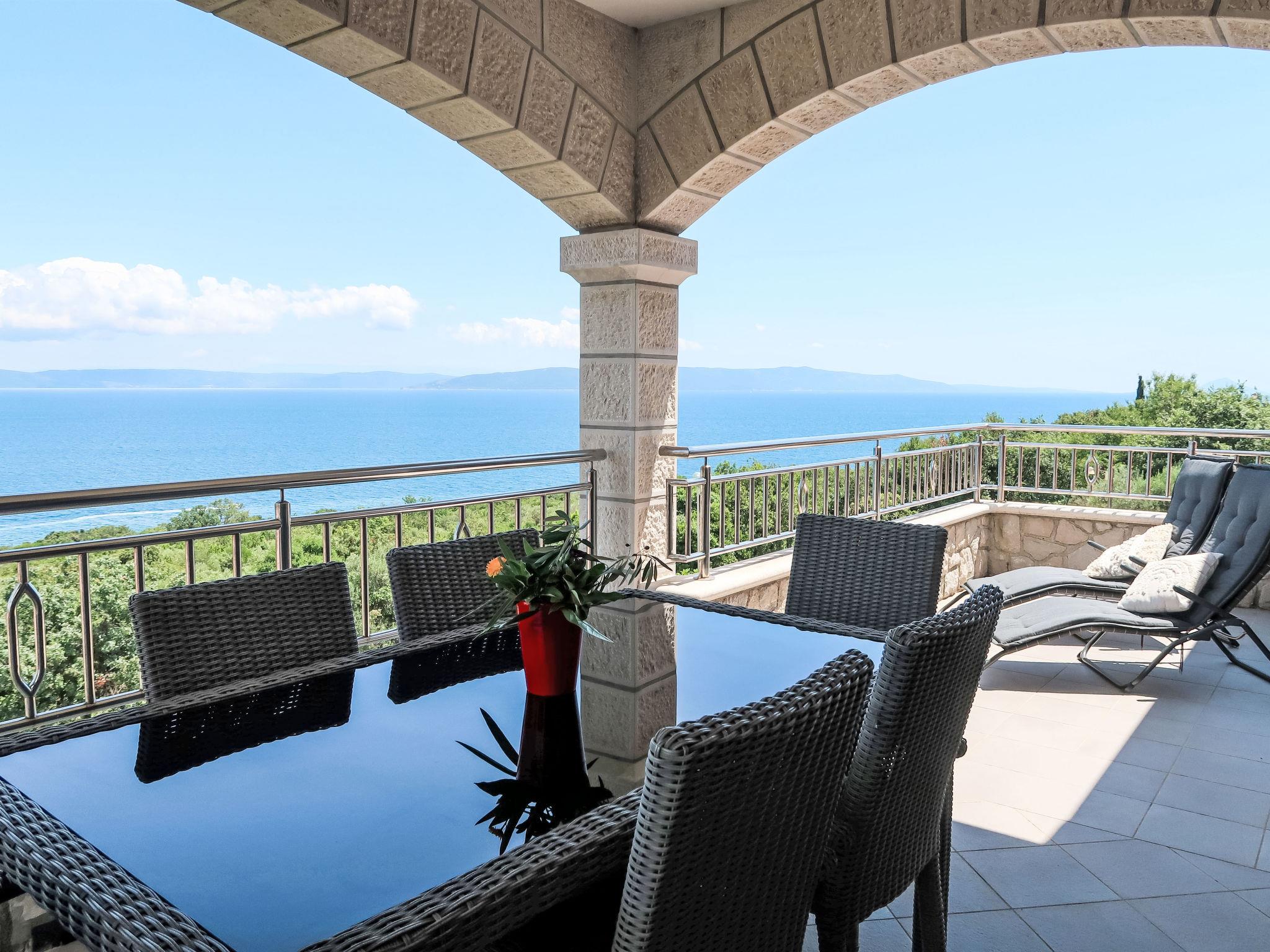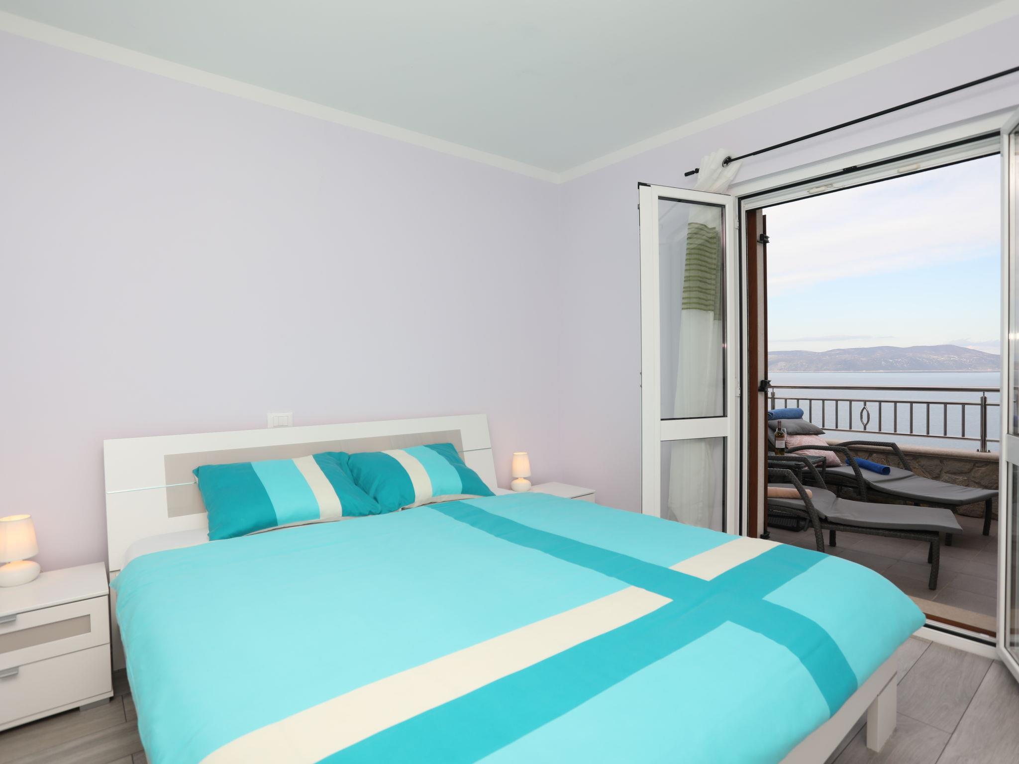 4-room apartment 120 m2 on 1st floor. Comfortable and beautiful furnishings: living/dining room with satellite TV and air conditioning. Exit to the balcony. 1 room with 2 beds (90 cm, length 200 cm). 1 room with 1 french bed (160 cm, length 200 cm). 1 room with 1 french bed (160 cm, length 200 cm). Exit to the balcony. Open kitchen (2 hot plates, oven, dishwasher, 2 gas rings, toaster, kettle, freezer, electric coffee machine). Shower/WC, bath/shower/WC. Electric heating. No heating option. Large balcony 36 m2, balcony 8 m2. Balcony furniture. Very beautiful view of the sea. Facilities: washing machine, iron, mosquito net, hair dryer. Internet (WiFi, free). Please note: non-smoking house.