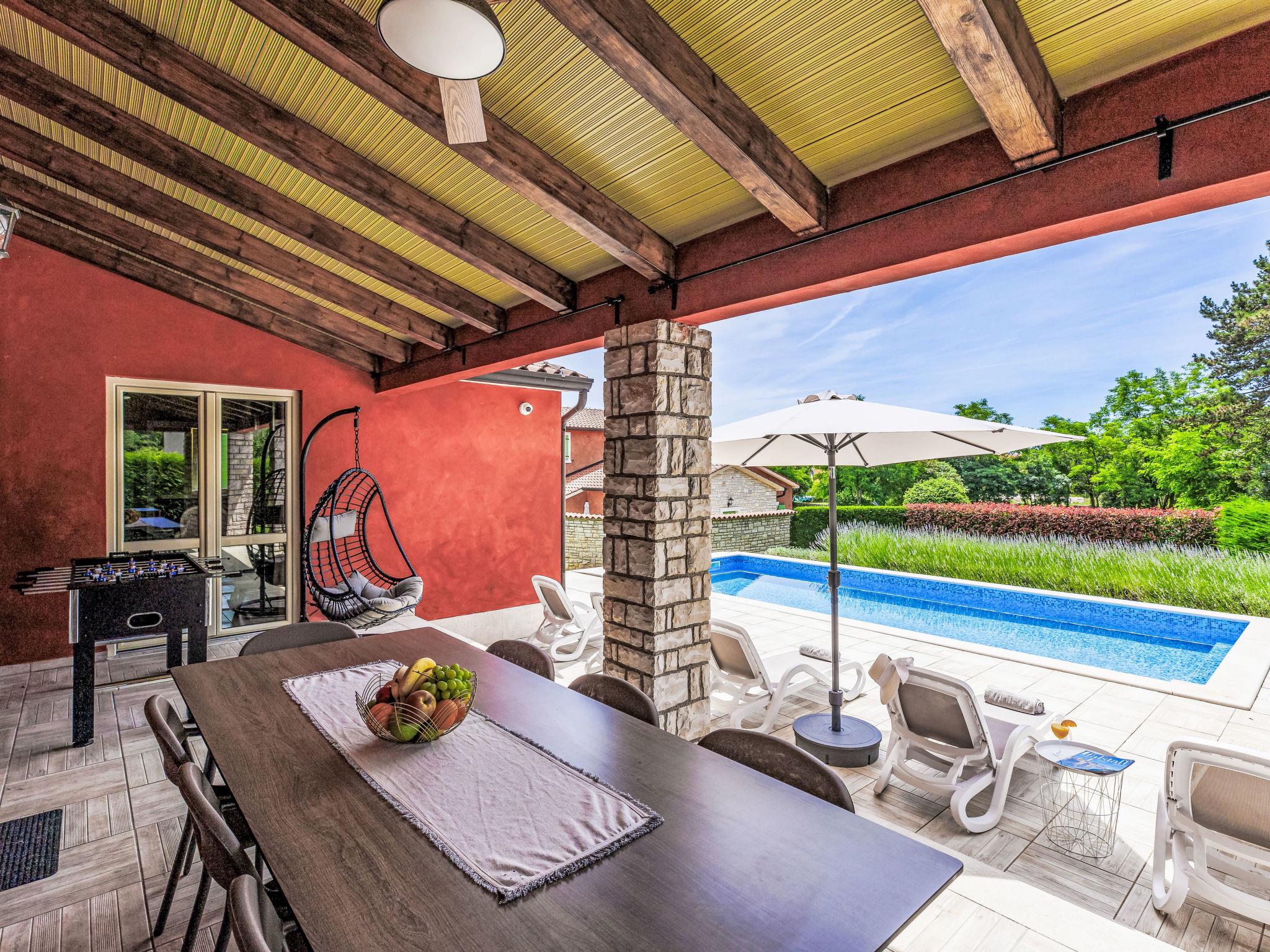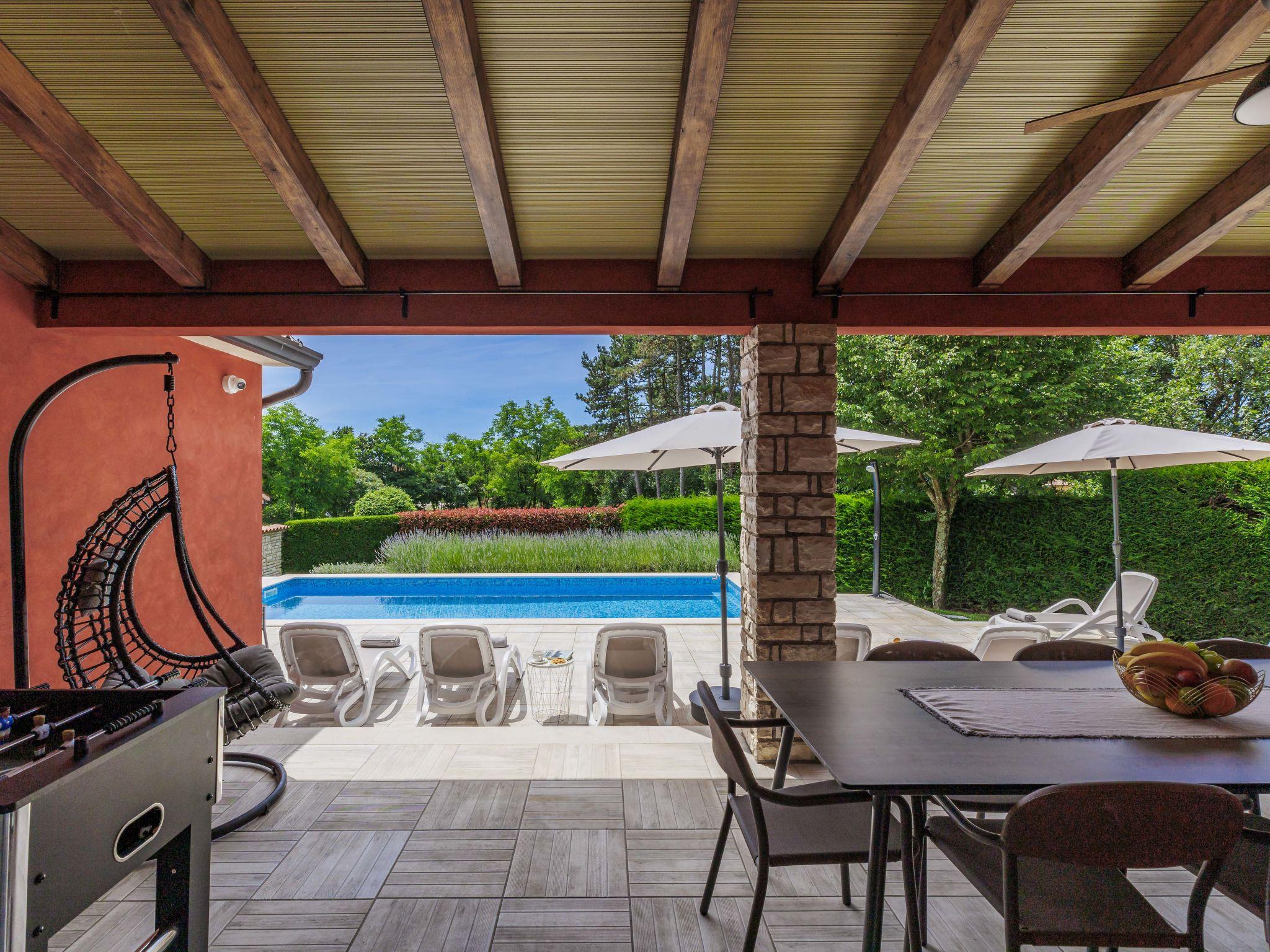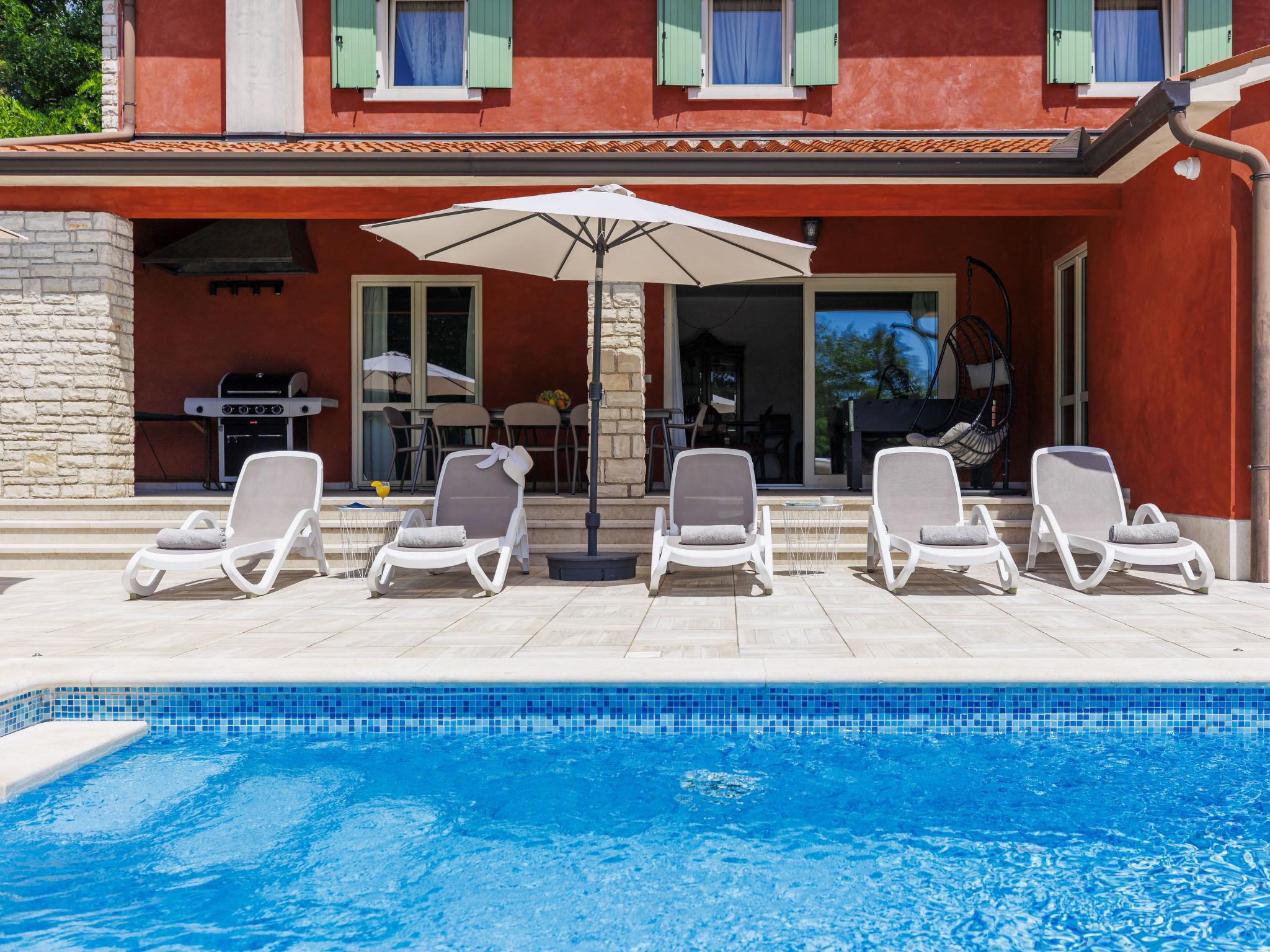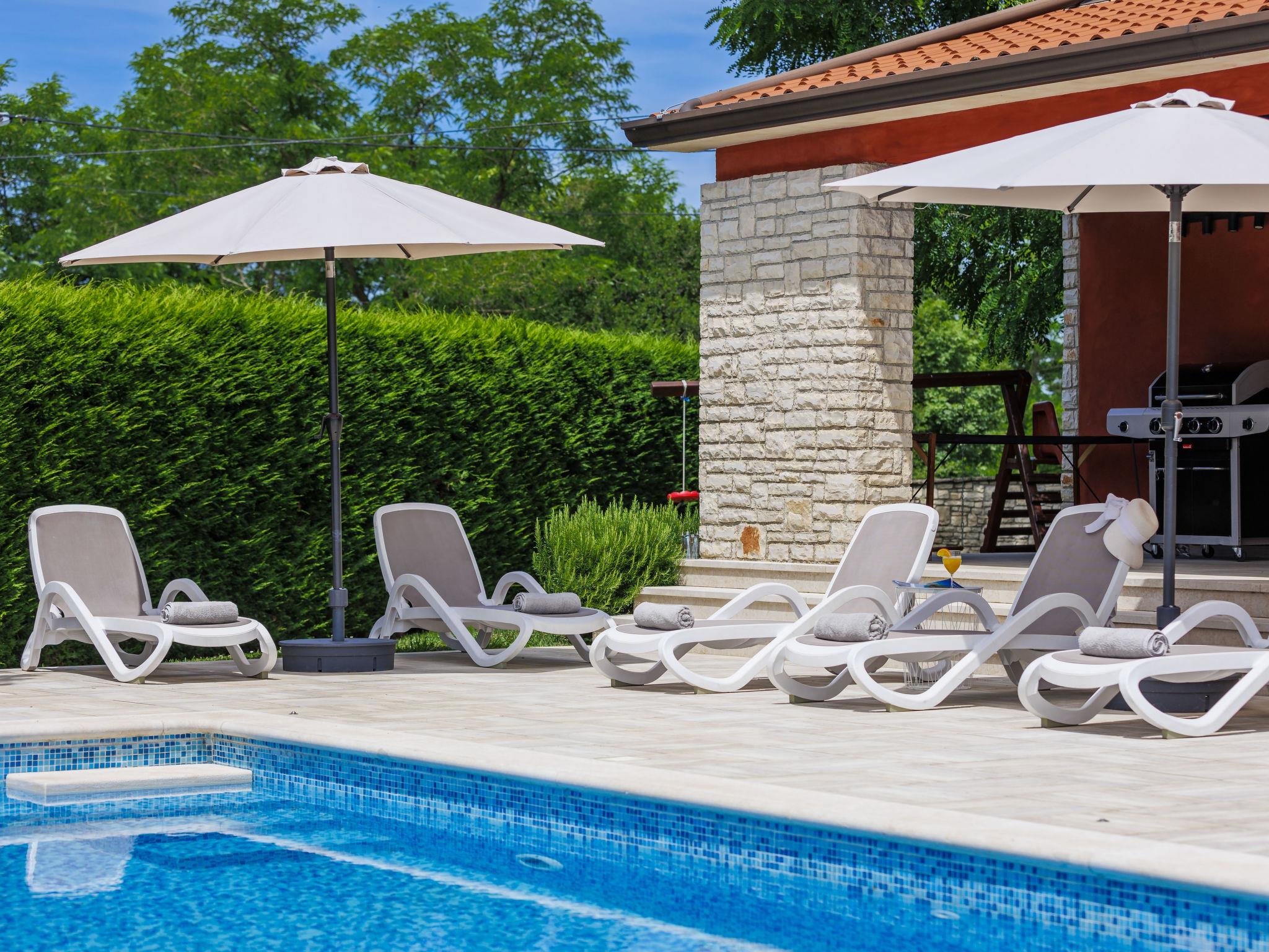 Beautiful single-family house "Villa Wruss", 2 storeys. In the hamlet Sumber 7 km from the centre of Labin, 12 km from the centre of Rabac, in a quiet, sunny position, 12 km from the sea, in the countryside. Private: property 750 m2 (fenced), wildlife garden and trees, swimming pool angular (8 x 4 m, depth 140 cm, seasonal availability: 01.May. - 30.Oct.) with internal staircase. Outdoor shower, terrace, garden furniture, barbecue, children's playground (slide, swing), pool maintenance by the owner/gardener. In the house: internet access, table tennis, table football, trampoline, washing machine. Available: bicycles (3). Parking (for 3 cars) at the house on the premises. Shop 3 km, supermarket 7 km, restaurant 3 km, bus stop 6.3 km, pebble beach 12 km. Please note: airfield 50 km from the property.