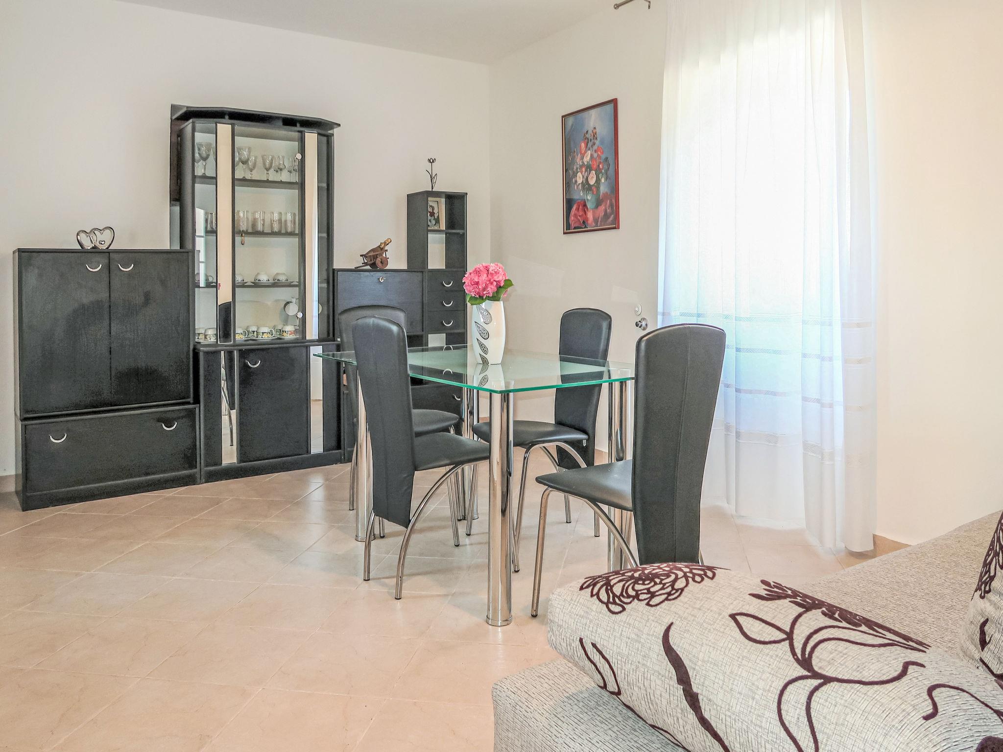 6-room house 145 m2 on 2 levels. Living/dining room with satellite TV and air conditioning. Exit to the terrace. Living room. Exit to the terrace. 1 room with 1 double bed (2 x 90 cm, length 200 cm). Open kitchen (oven, dishwasher, 4 induction hot plates, toaster, kettle, microwave, freezer, electric coffee machine). Shower/WC. Upper floor: entrance hall with air conditioning. 2 rooms, each room with 1 bed (90 cm, length 200 cm), 1 double bed (2 x 90 cm, length 200 cm). Exit to the balcony. 1 room with 1 bed (90 cm, length 200 cm). Bath/WC. Forced-air heating. Heating not available in all rooms. Balcony 12 m2, terrace 30 m2 partly roofed terrace 12 m2. Terrace furniture, deck chairs. Facilities: iron, children's high chair, baby cot, hair dryer. Internet (WiFi, free). Please note: non-smoking house. Available: konoba with open fireplace, oven, fridge, dishwasher, 4 gas rings, kettle, el. electric coffee machine.