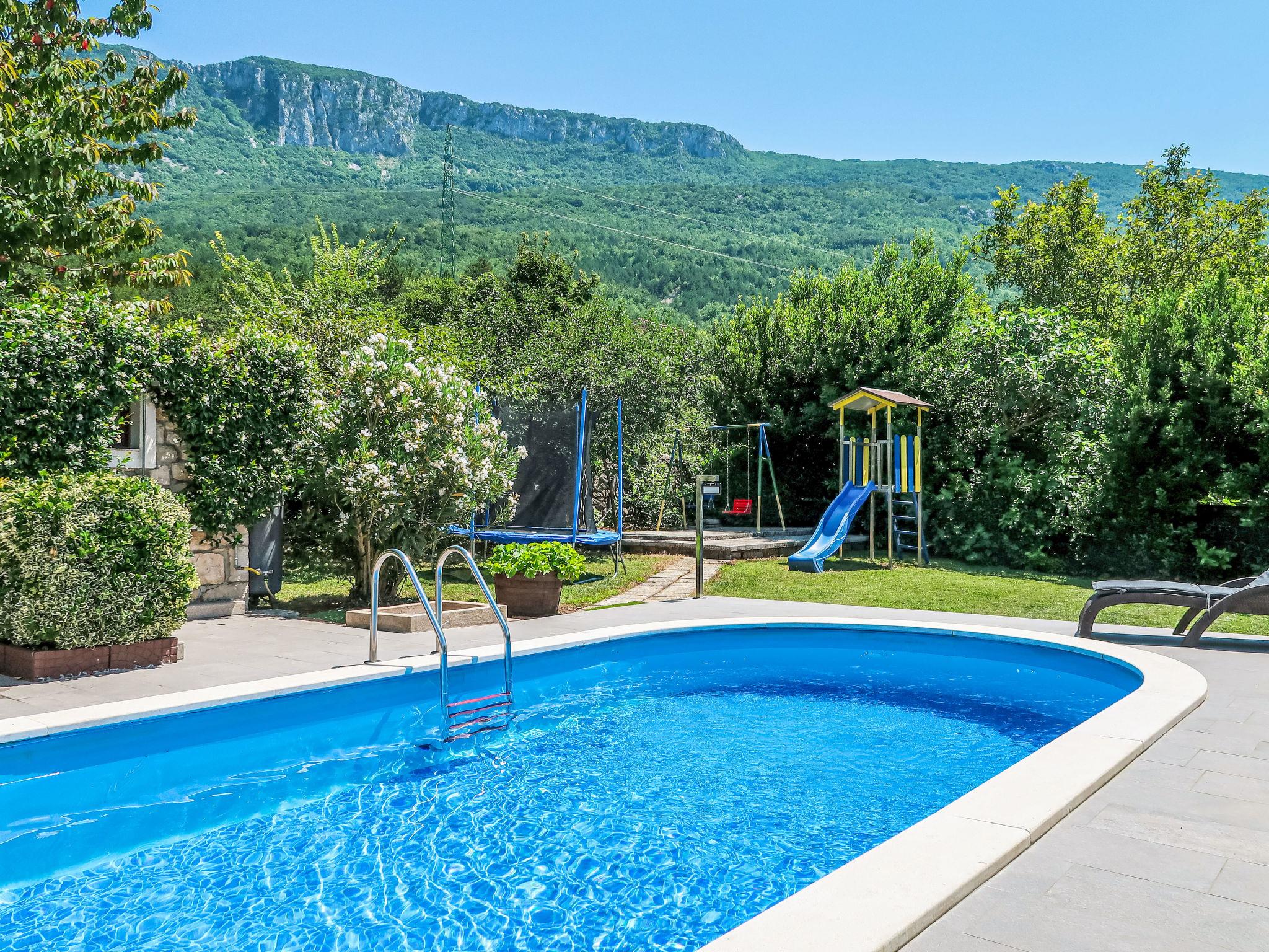 Single-family house "Villa Desanka", 2 storeys. In the hamlet Kožljak 12 km from the centre of Labin, 17 km from the centre of Rabac, in a quiet, sunny position, 6 km from the sea, in the countryside. Private: property 600 m2 with lawn and wildlife garden, swimming pool round (24 m2, depth 140 cm, seasonal availability: 01.May. - 30.Oct.). WC in the pool area, outdoor shower, barbecue (slide, swing), pool maintenance by the owner/gardener. In the house: internet access, trampoline, washing machine. Parking (for 4 cars) at the house on the premises. Shop 3 km, supermarket 12 km, restaurant 3 km, bus stop 2.9 km, pebble beach 6 km. Please note: airfield 55 km from the property.