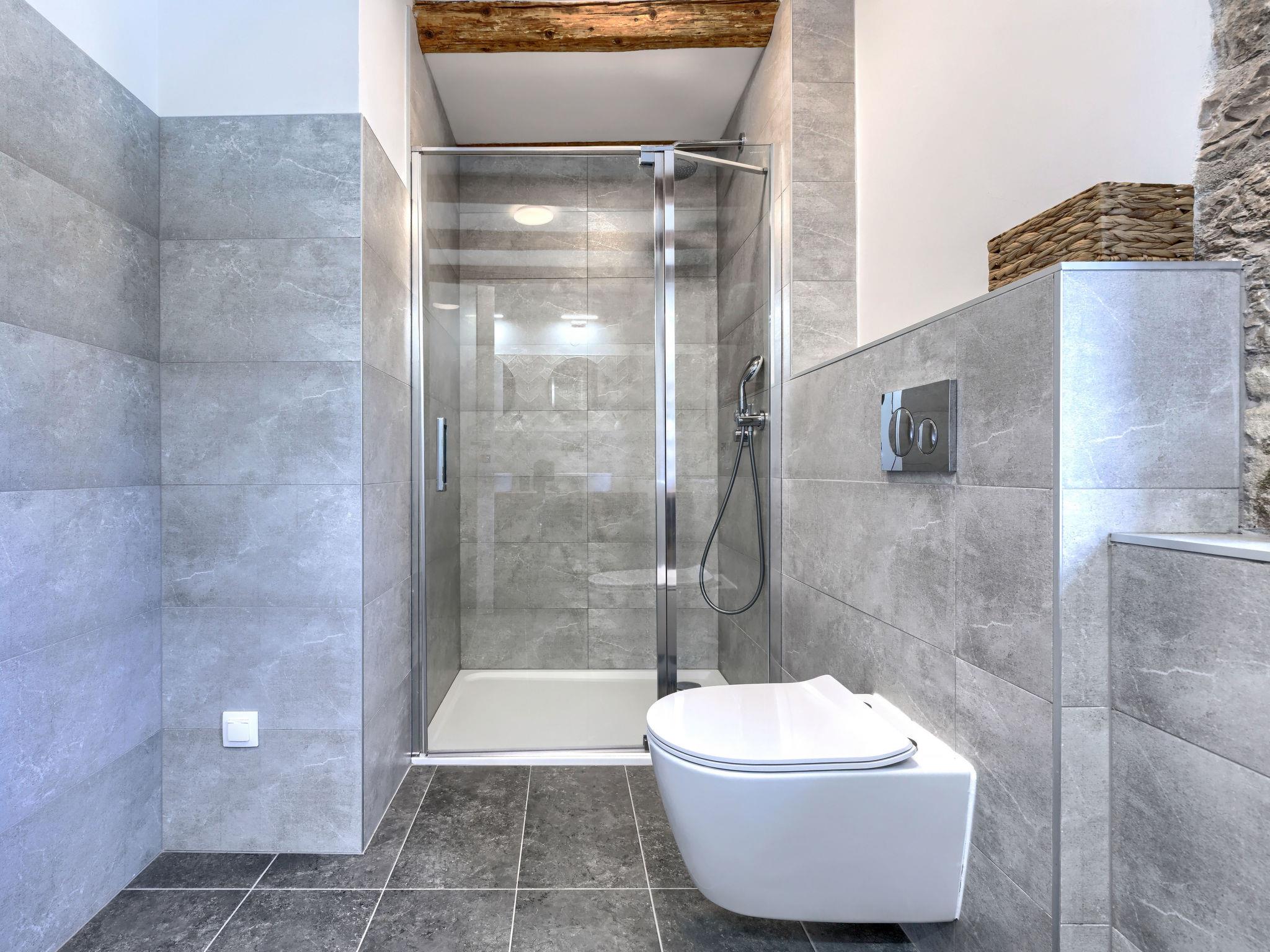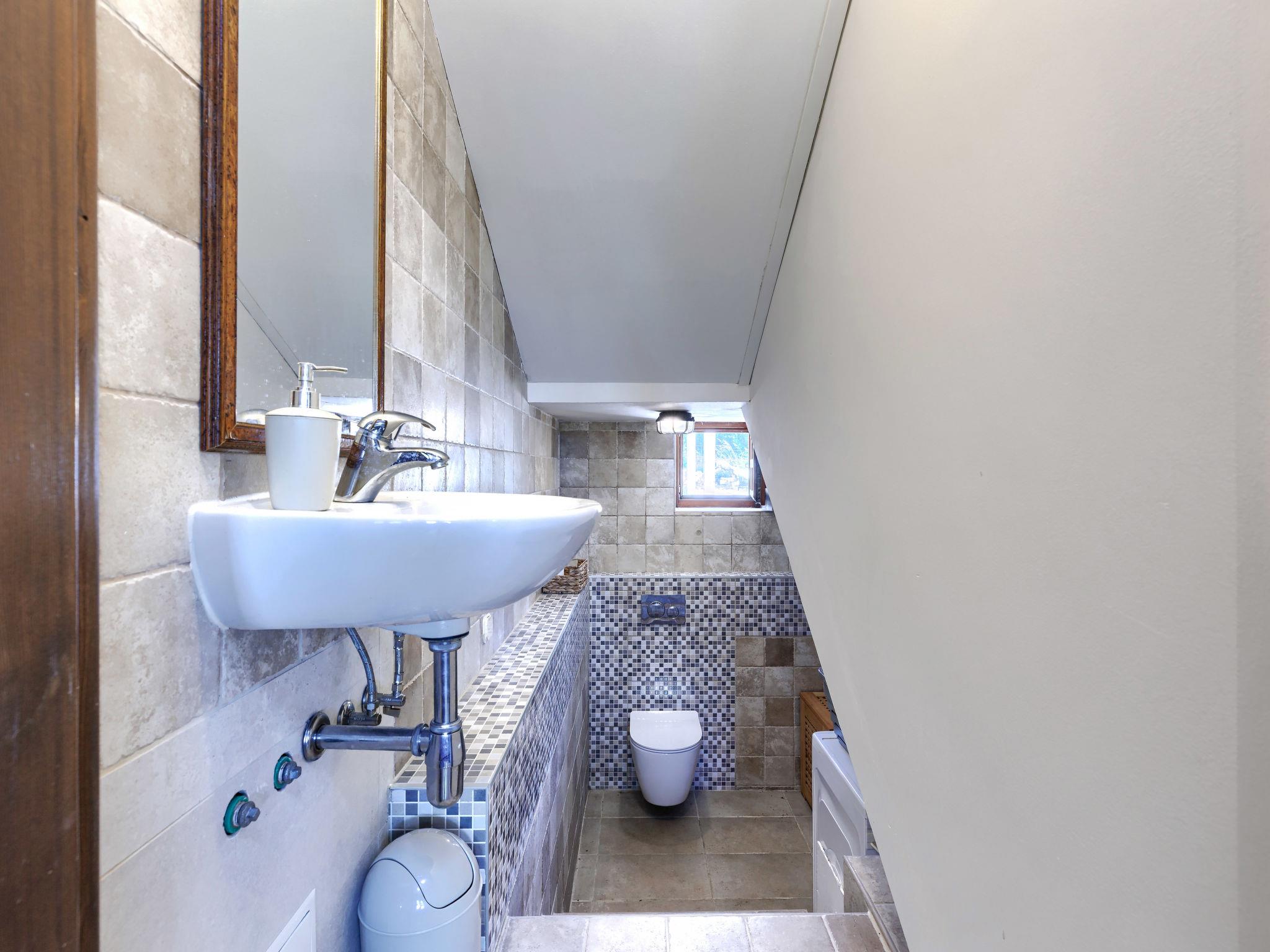 5-room terraced house 200 m2 on 3 levels. Living/dining room with satellite TV and air conditioning. Exit to the terrace, to the swimming pool. Open kitchen (oven, dishwasher, 4 induction hot plates, toaster, kettle, microwave, freezer, electric coffee machine). Sep. WC. Upper floor: walk-through room with 1 double bed (2 x 90 cm, length 200 cm), shower/WC and air conditioning. 1 room with sloping ceilings, ceiling height 186 - 262 cm with 1 bed (90 cm, length 200 cm). 1 room with sloping ceilings, ceiling height 186 - 262 cm with 1 double bed (2 x 90 cm, length 200 cm), shower/WC and air conditioning. Top floor: 1 room with sloping ceilings, ceiling height 115 - 215 cm with 2 beds (90 cm, length 200 cm), shower/WC and air conditioning. Forced-air heating. Terrace 70 m2, terrace 15 m2, roofed. Terrace furniture, barbecue (portable), deck chairs. Facilities: iron, hair dryer. Internet (WiFi, free). Please note: non-smoking house.