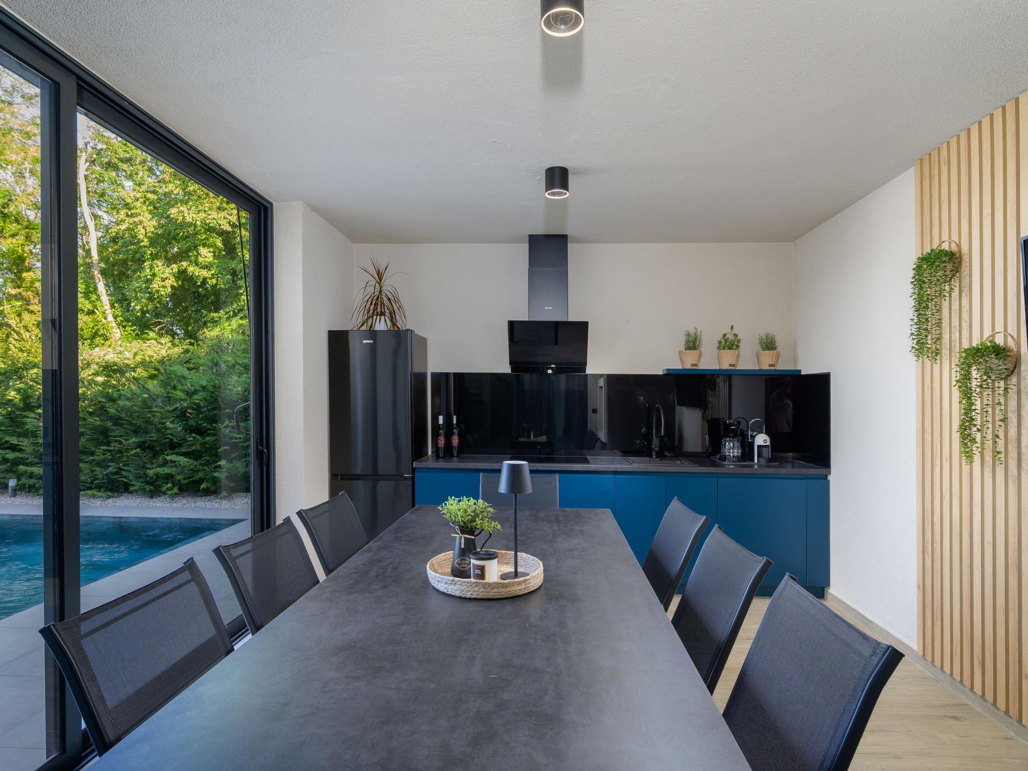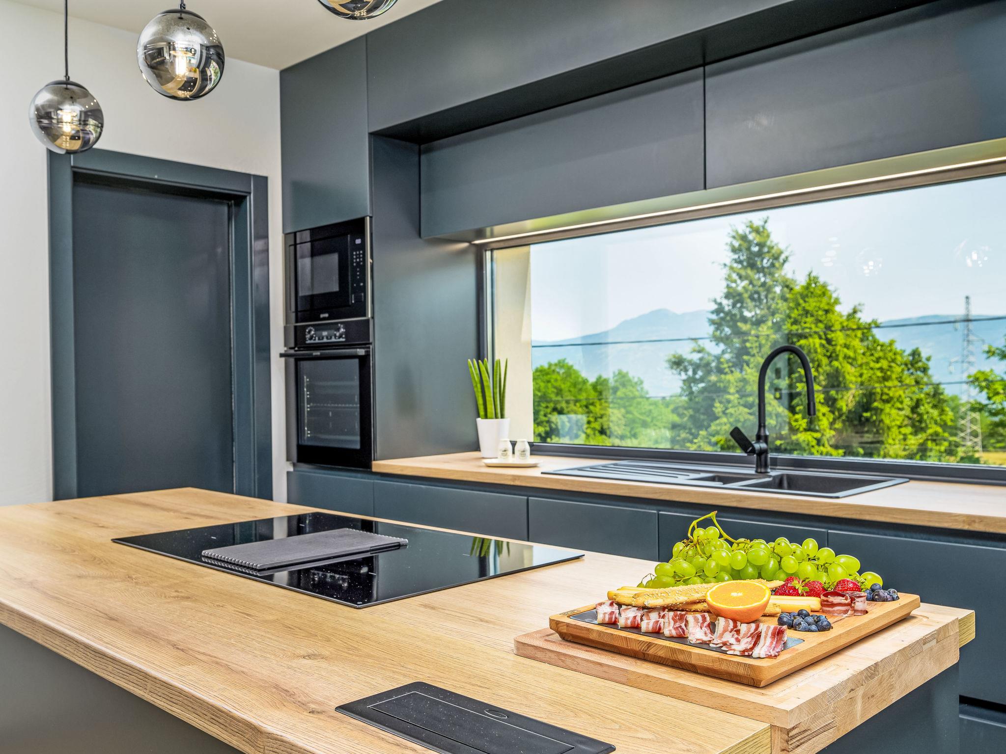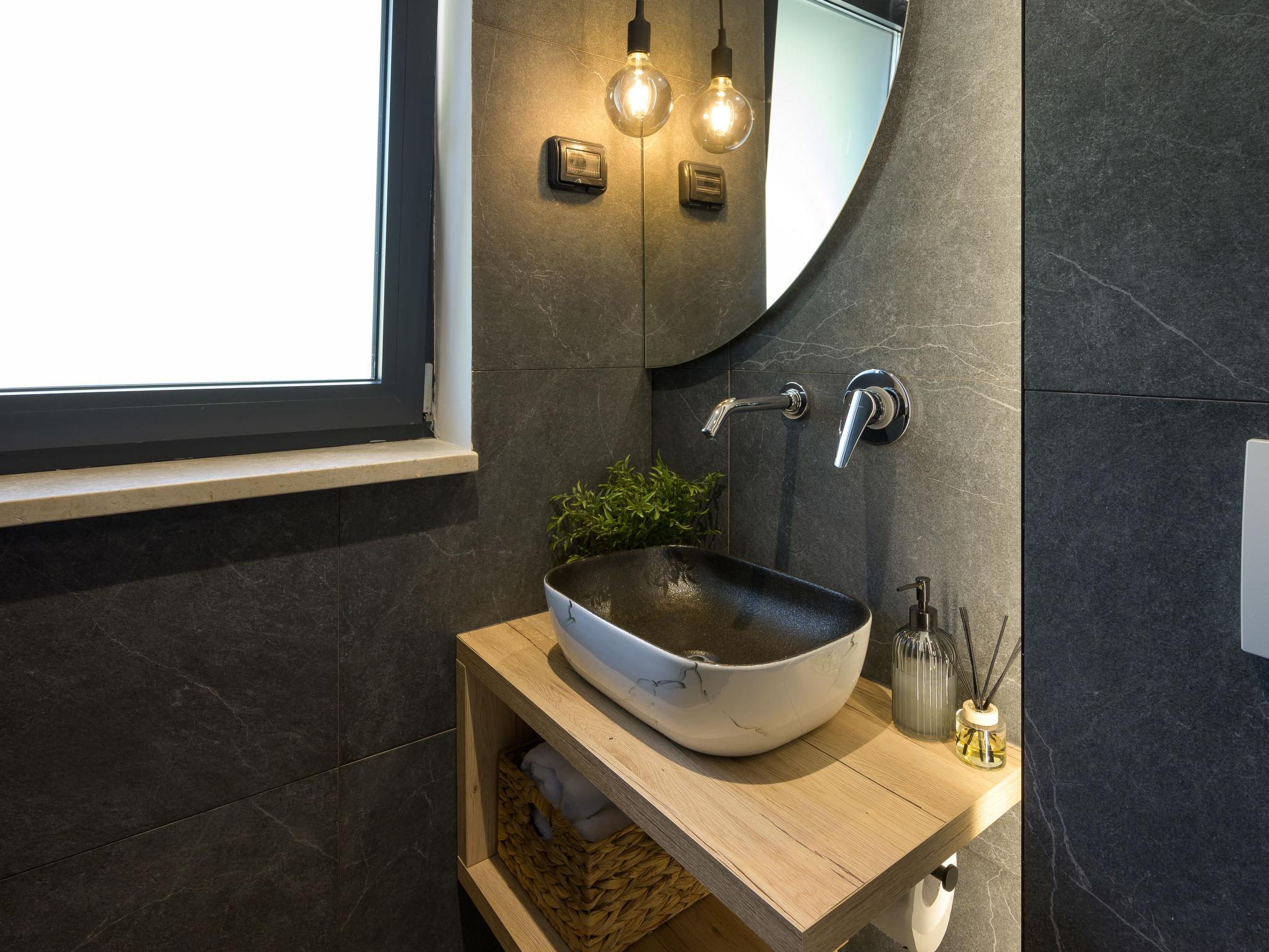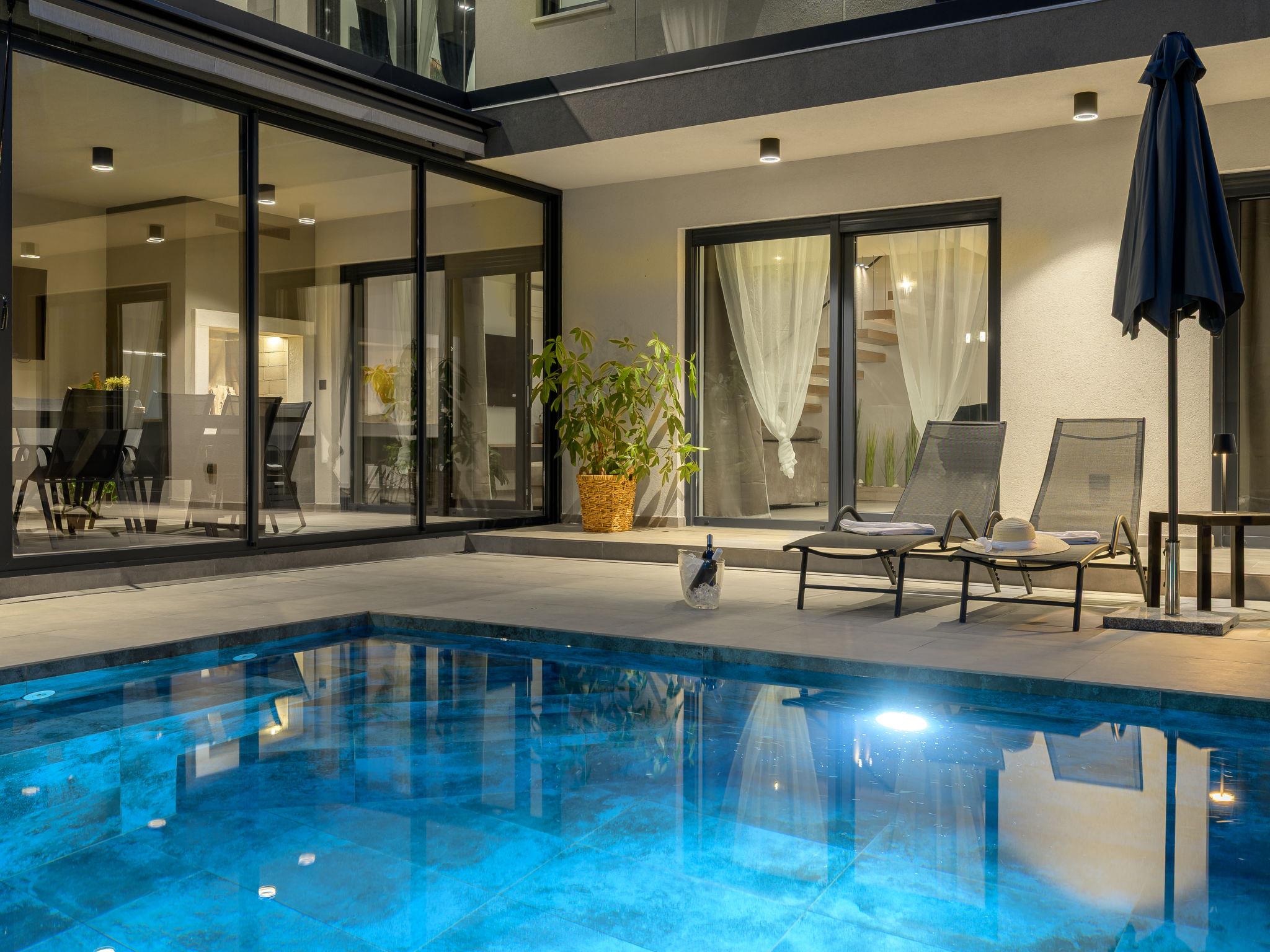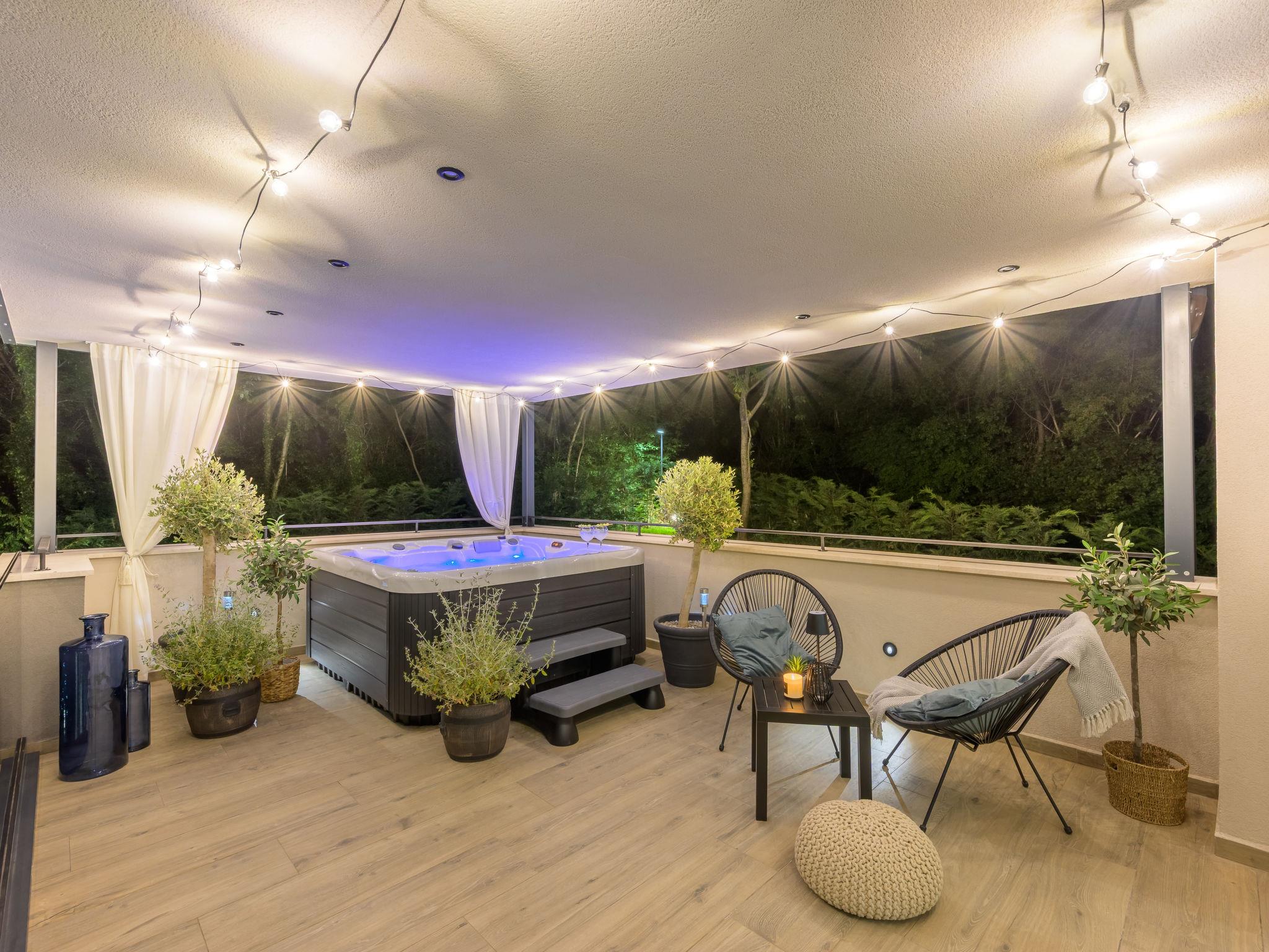 Very beautiful, luxurious villa "Ollea", 3 storeys. In the hamlet Radovici 10 km from the centre of Labin, 15 km from the centre of Rabac, 15 km from the sea. Private: property 900 m2 (fenced) with wildlife garden and trees, swimming pool angular (8 x 4 m, depth 150 cm, seasonal availability: 01.Apr. - 30.Oct.) with internal staircase. Outdoor shower, hot tub, table tennis, barbecue (slide, swing), pool maintenance by the owner/gardener. In the house: internet access, sauna, table football, washing machine, tumble dryer. Roofed, parking (for 4 cars) at the house on the premises. Shop 4 km, supermarket 10 km, restaurant 4 km, bus stop "Labin" 10 km, pebble beach 15 km. The owner does not accept any youth groups. Please note: airfield 53 km from the property. Video surveillance of the driveway and parking.