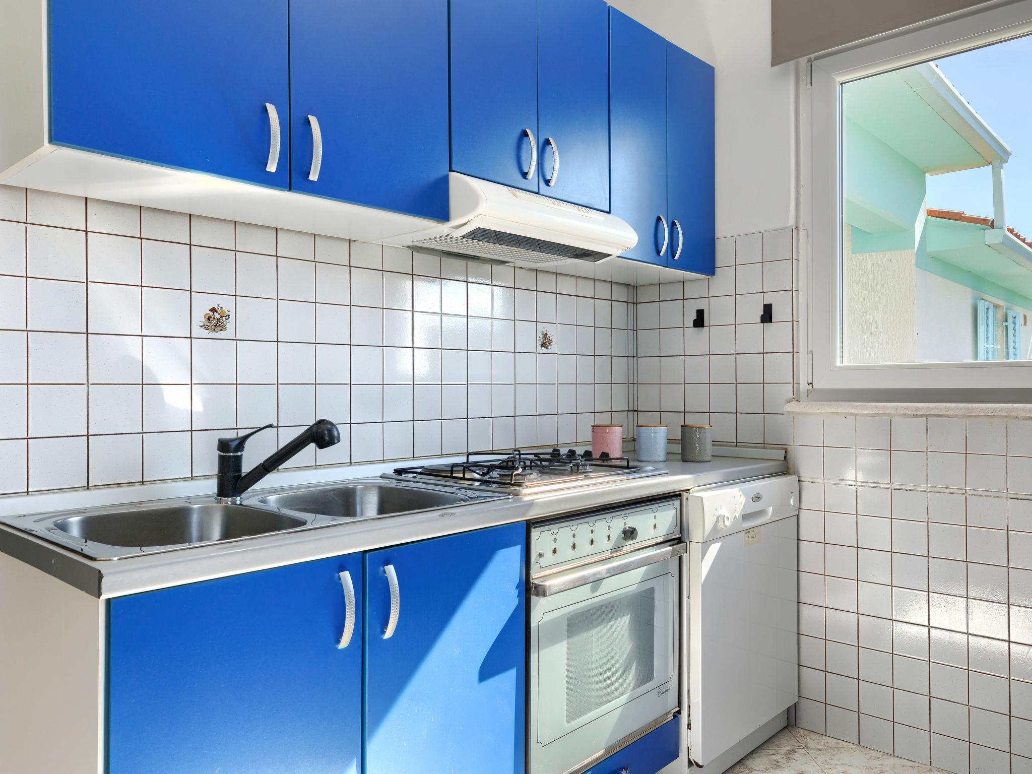 8-room house 300 m2 on 2 levels. Living/dining room with satellite TV and air conditioning. Exit to the swimming pool. 2 rooms, each room with 1 french bed (180 cm, length 200 cm). Open kitchen (oven, dishwasher, 4 ceramic glass hob hotplates, toaster, kettle, microwave, freezer, electric coffee machine). Bath/bidet/WC. Upper floor: (exterior staircase) dining room with kitchen corner and air conditioning. 1 room with 1 french bed (160 cm, length 200 cm). Living/dining room with satellite TV and air conditioning. Exit to the balcony. 2 rooms, each room with 1 french bed (180 cm, length 200 cm). 1 room with 1 bed (90 cm, length 200 cm). Open kitchen (1 hot plate, oven, 3 gas rings, toaster, kettle, freezer, electric coffee machine). Bath/bidet/WC, shower/WC. No heating option. Balcony 6 m2, terrace 6 m2, roofed. Terrace furniture, balcony furniture, deck chairs. Facilities: iron, hair dryer. Internet (WiFi, free). Please note: non-smoking house. Maximum 2 pets/ dogs allowed. On the ground floor: apartment with living/dining area, open kitchen and 2 bedrooms. On the first floor: one apartment with dining room, kitchen corner and 1 bedroom, the second apartment with living/dining area, open kitchen and 3 bedrooms.